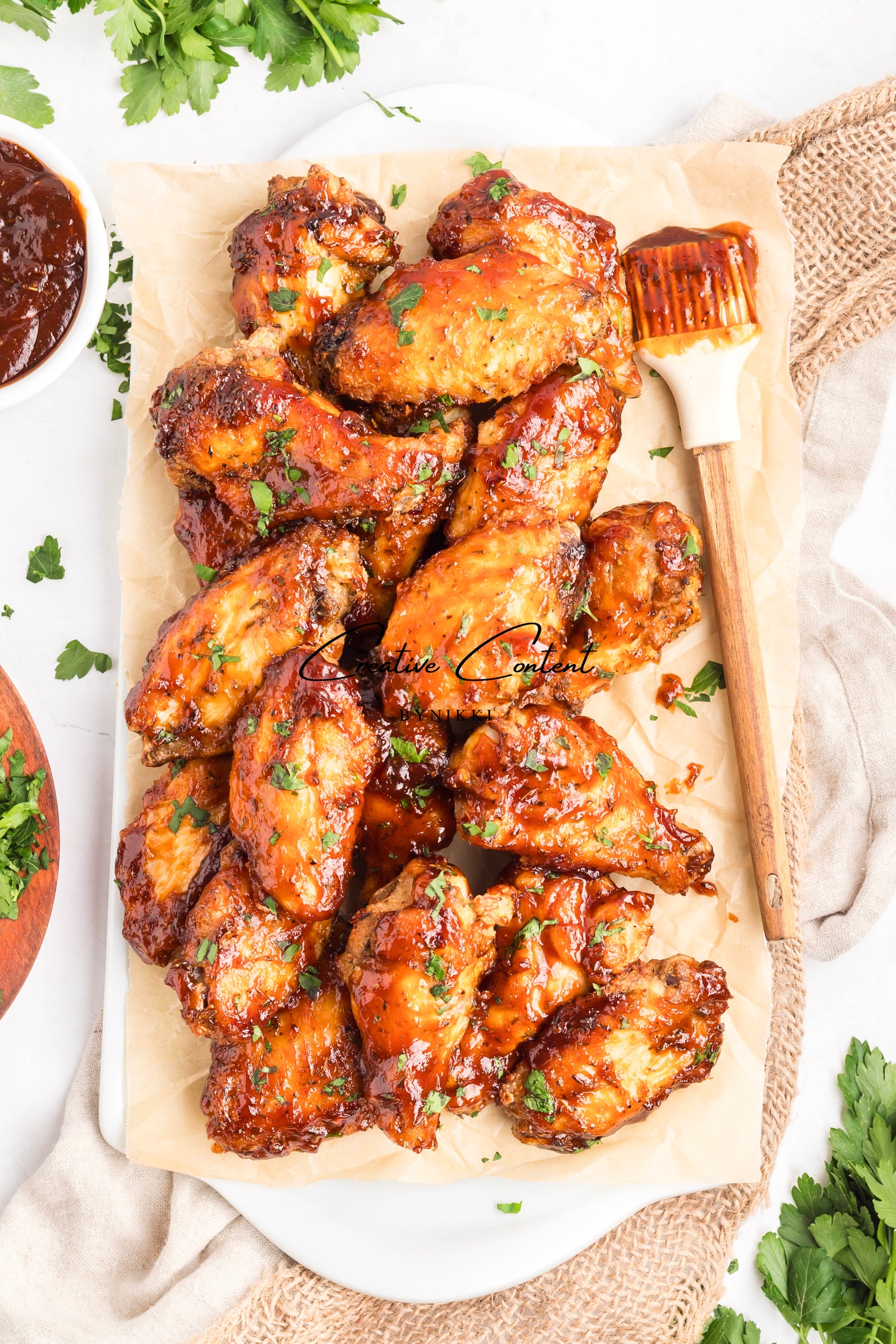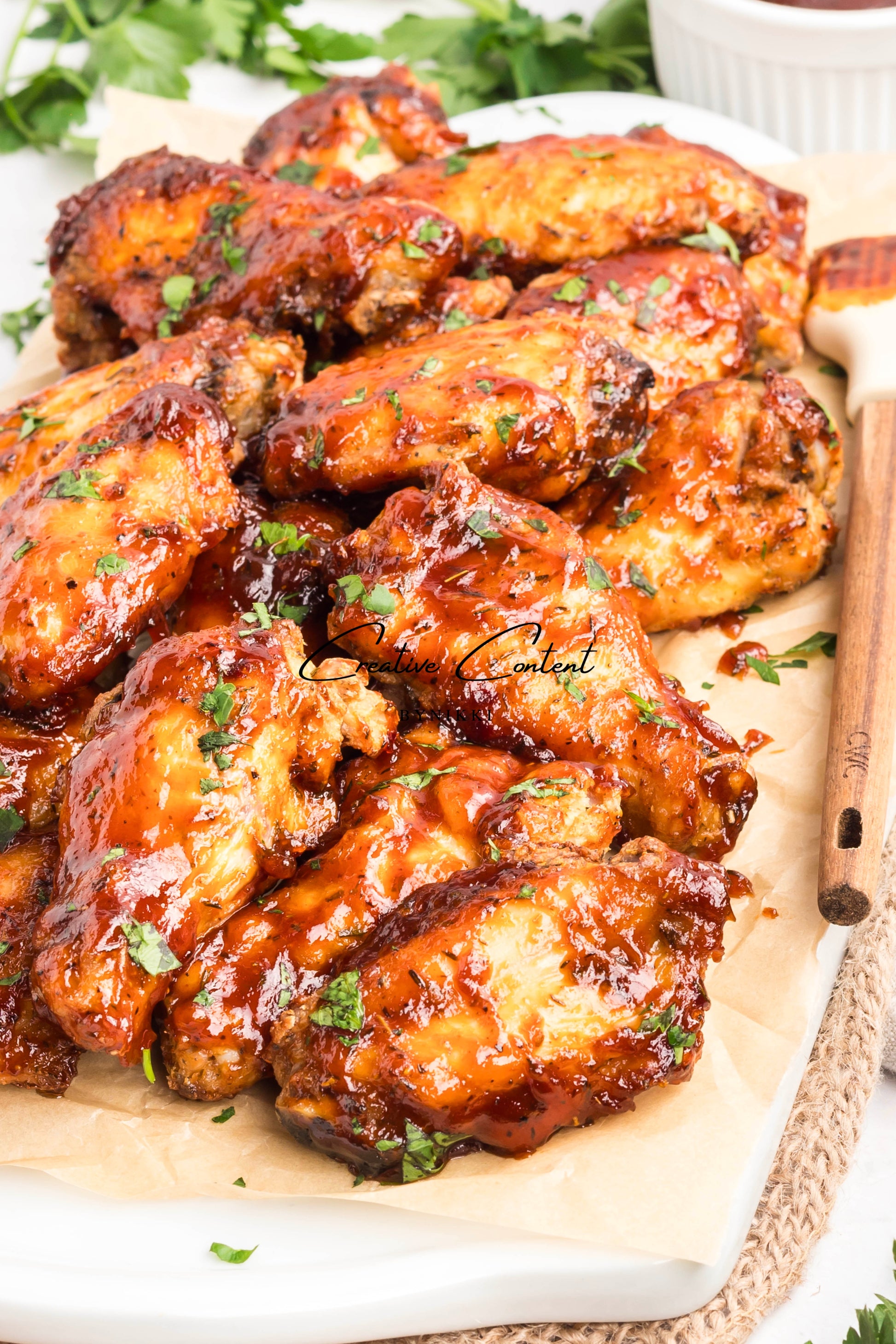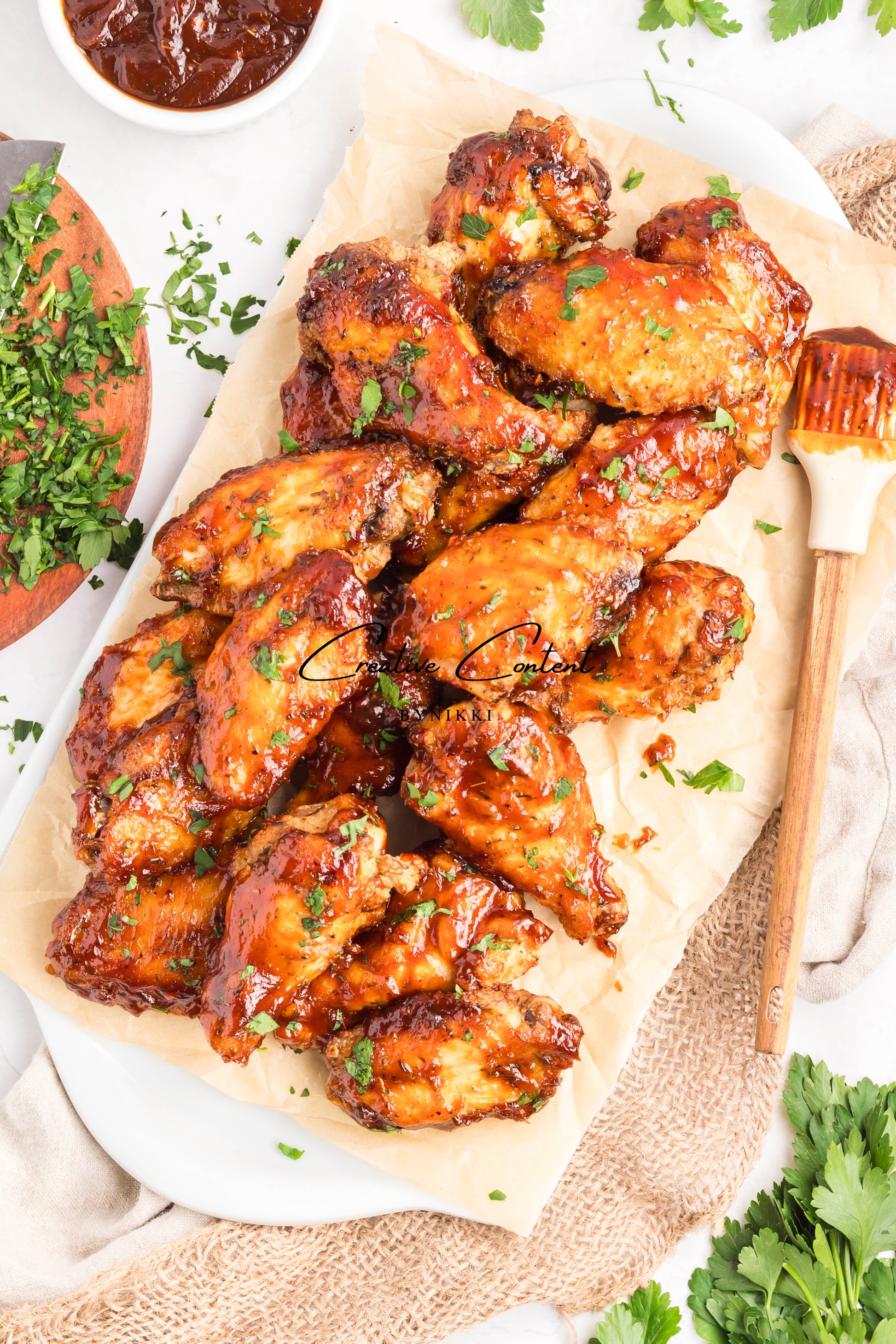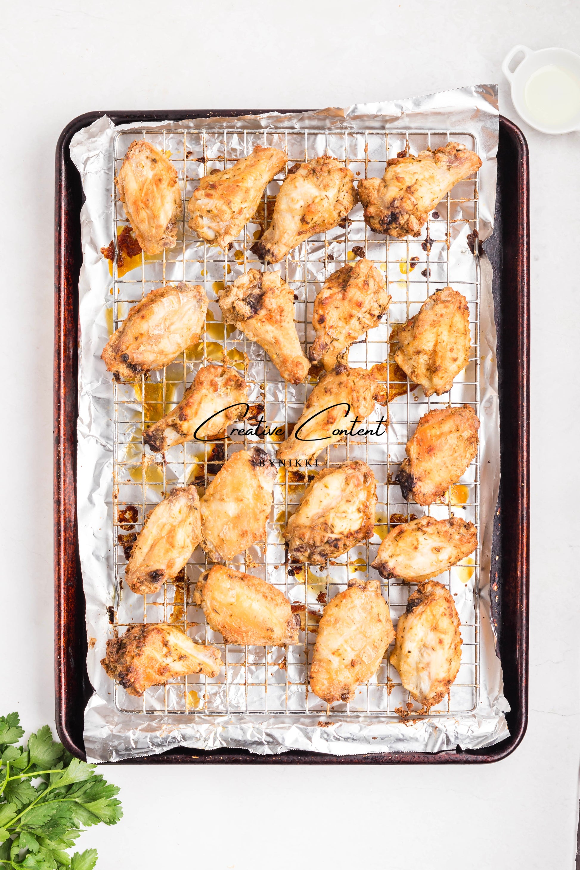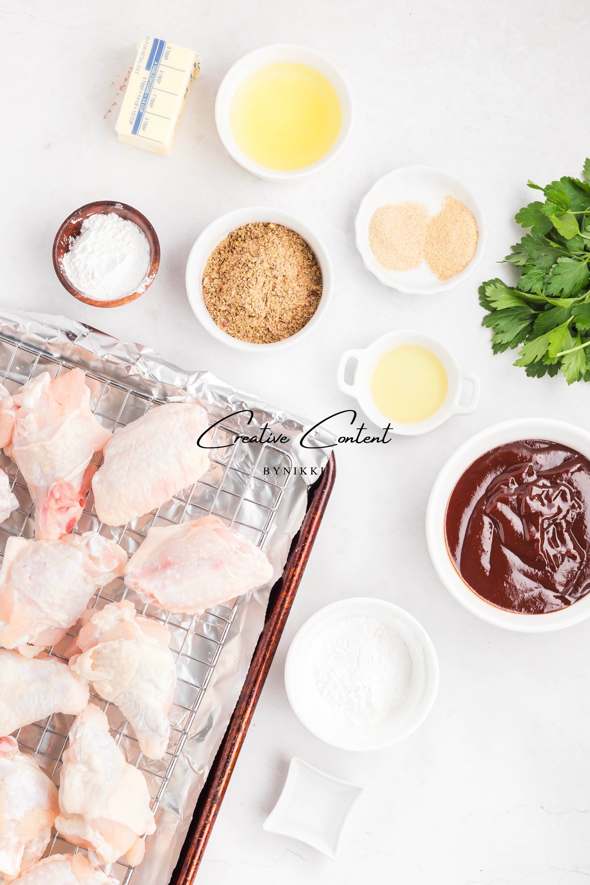 - Featured Ingredients: chicken wings, avocado oil, baking powder, jerk seasoning, garlic powder, onion powder, barbecue sauce, chicken stock, unsalted butter, parsley, cornstarch, and water.