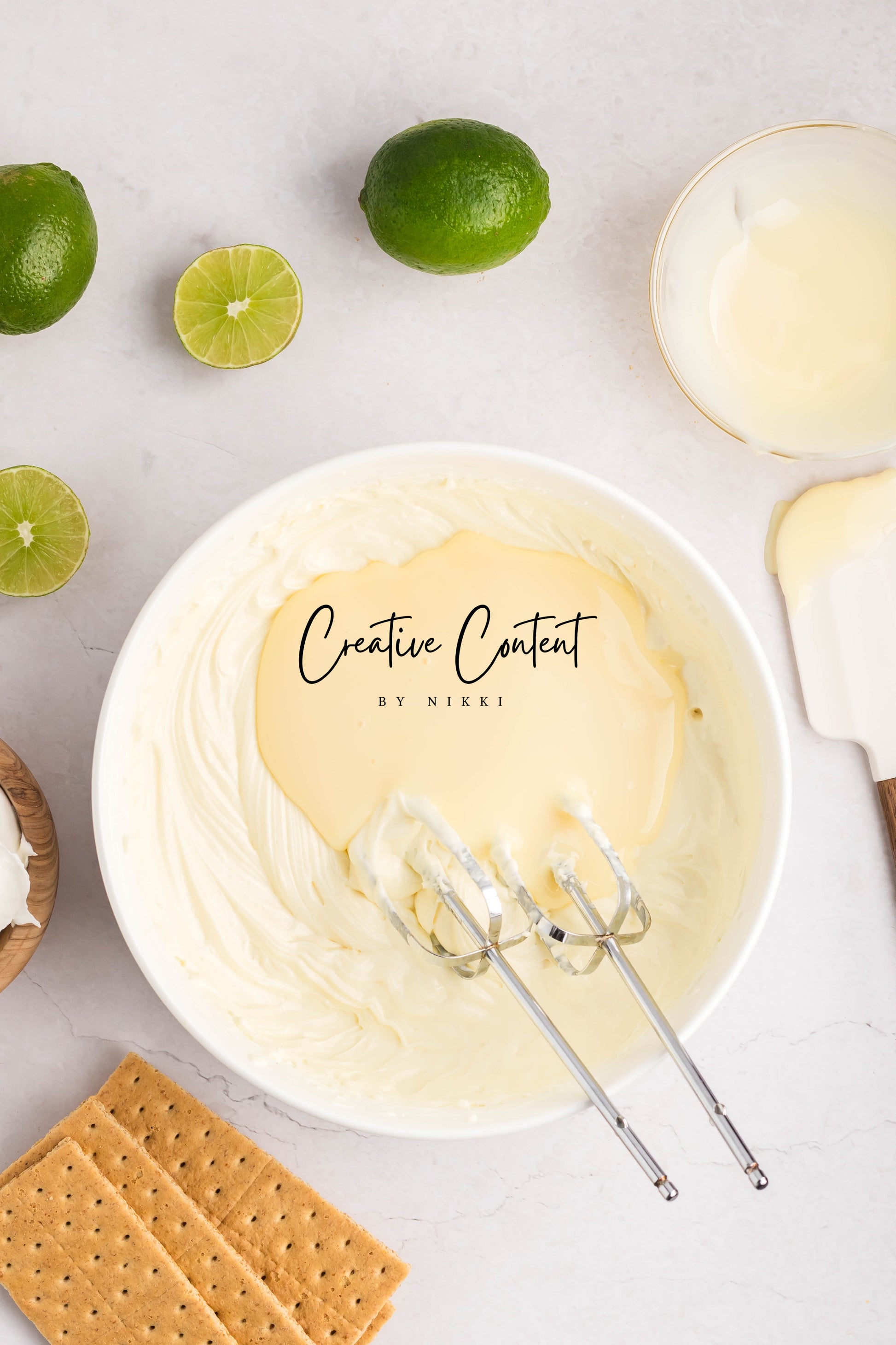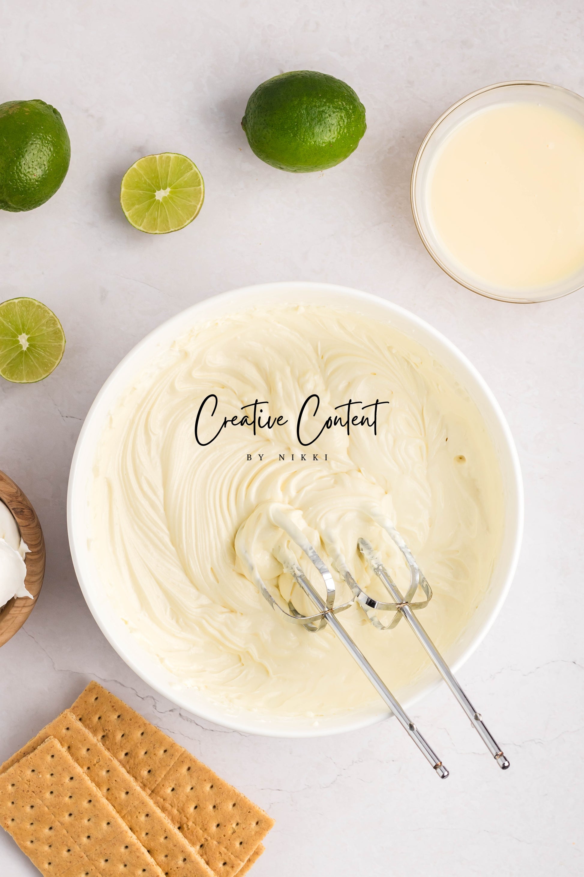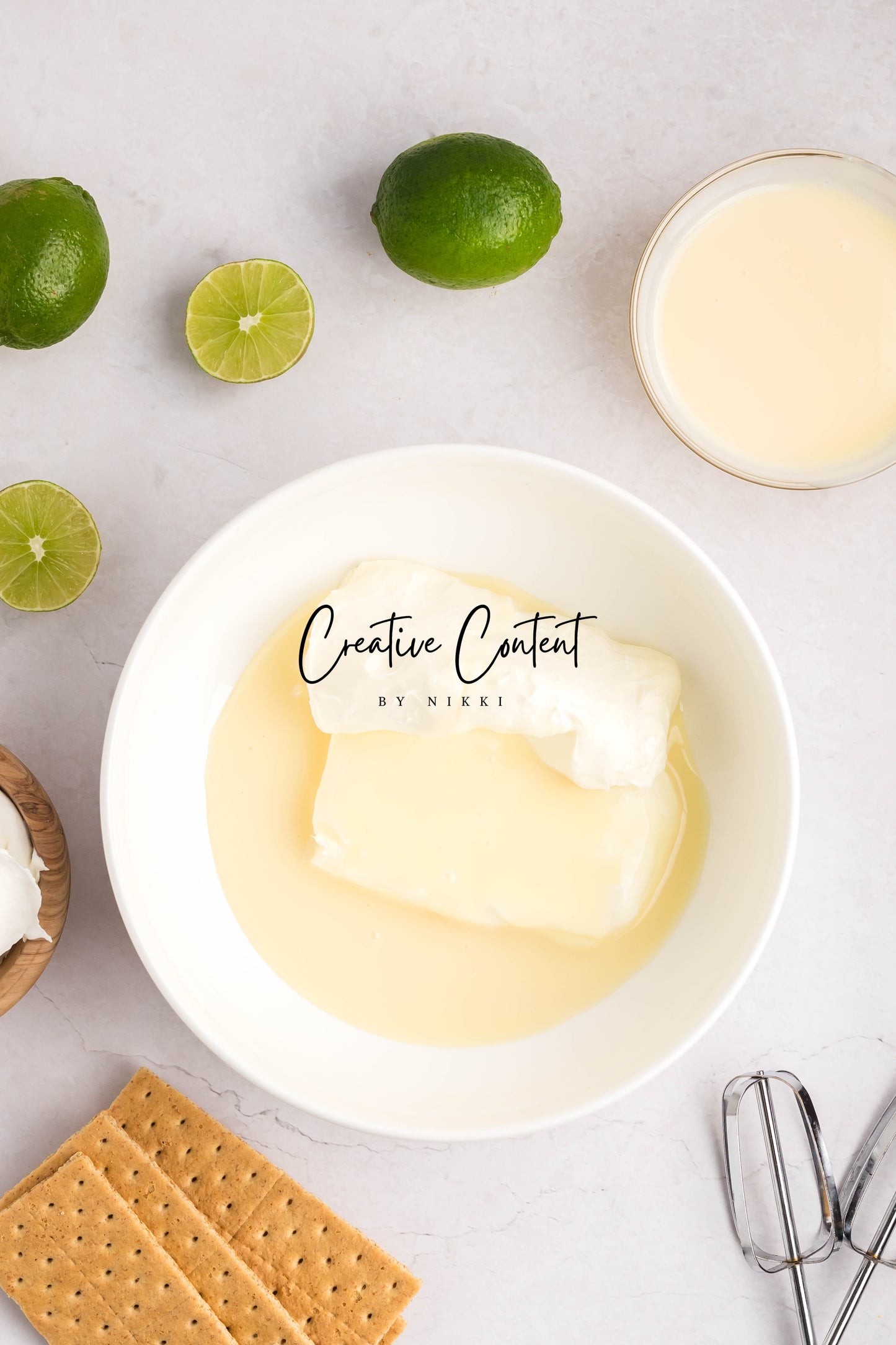 - Ingredients: cream cheese, sweetened condensed milk, whipped cream, vanilla extract, lime juice, lime zest, graham crackers.