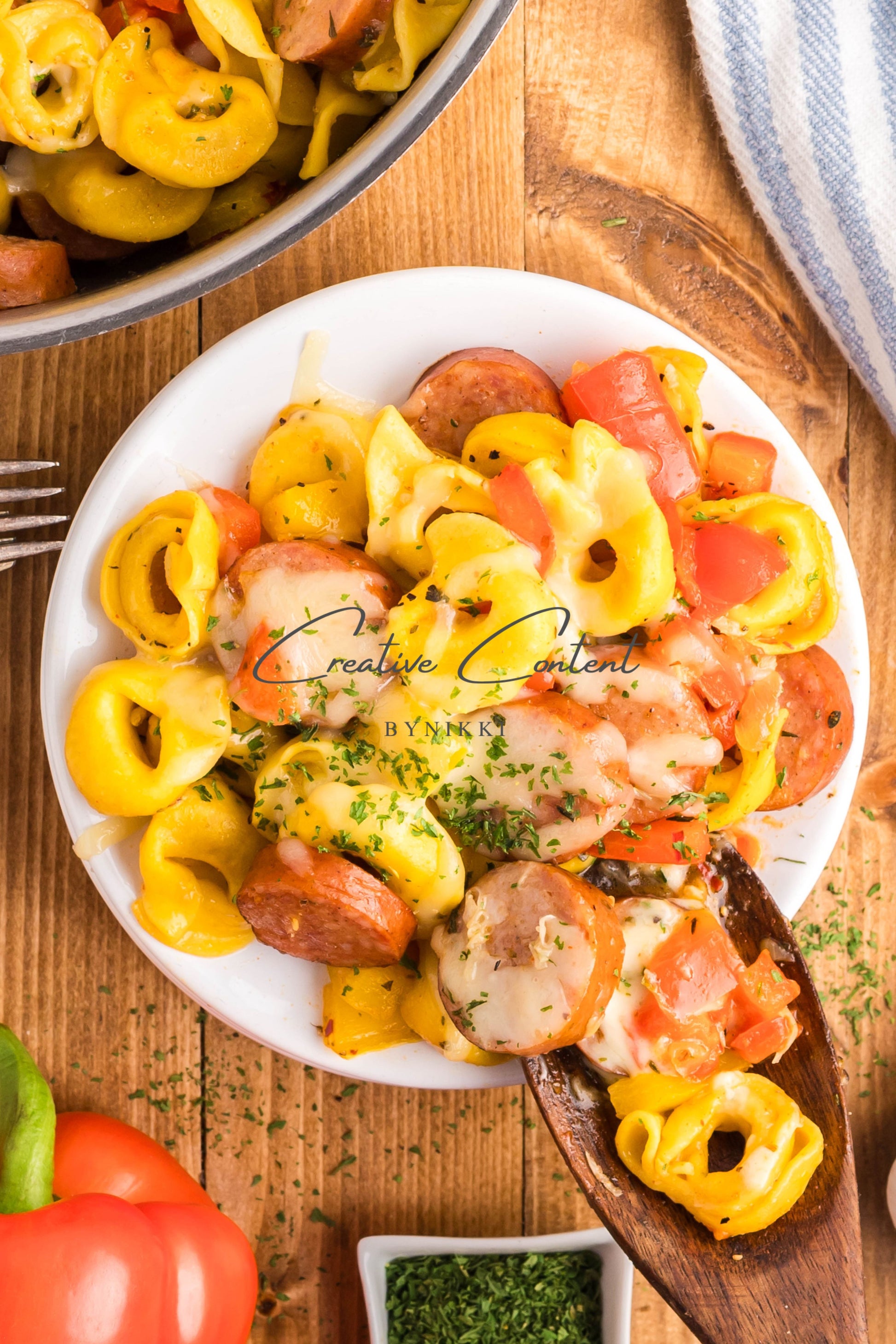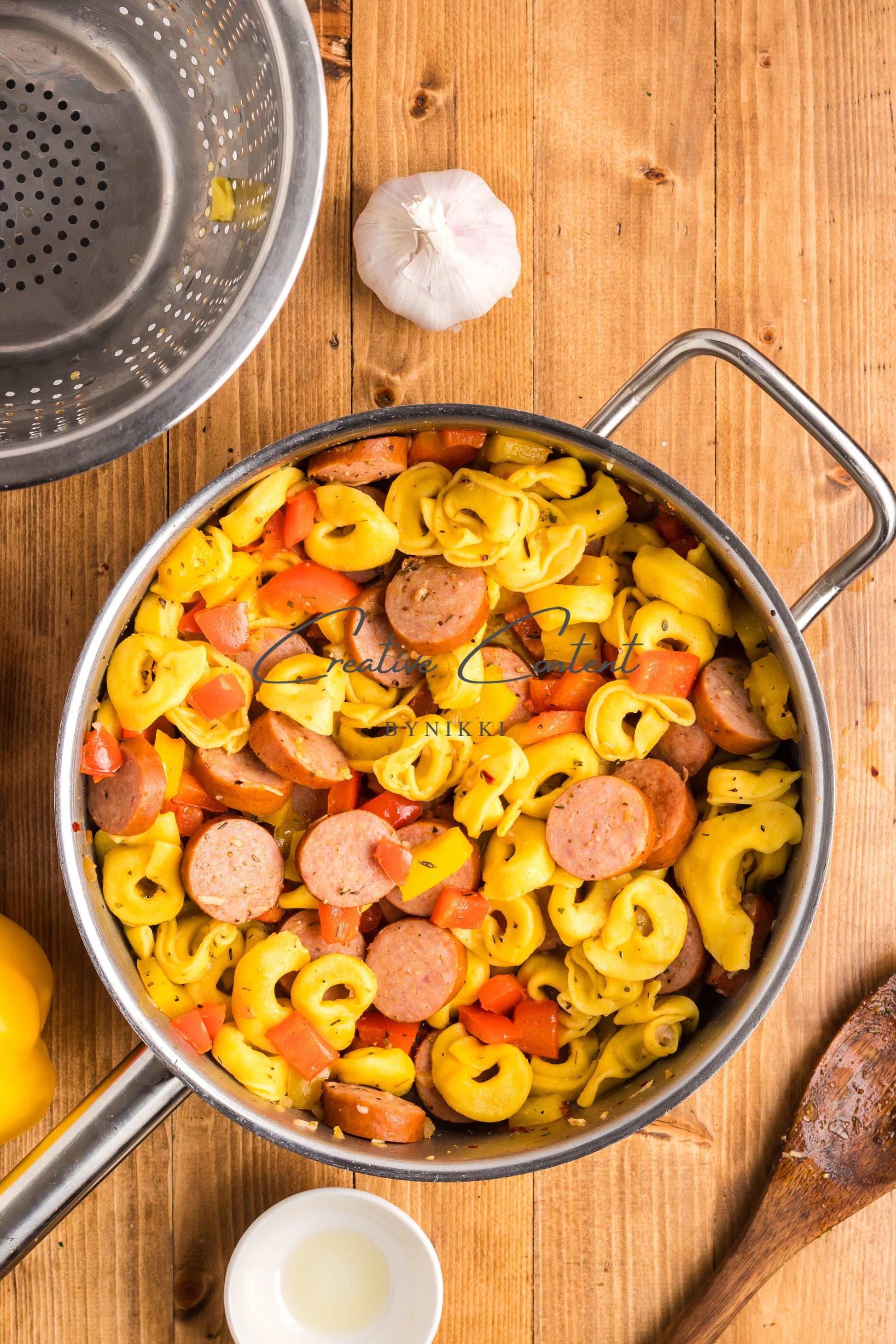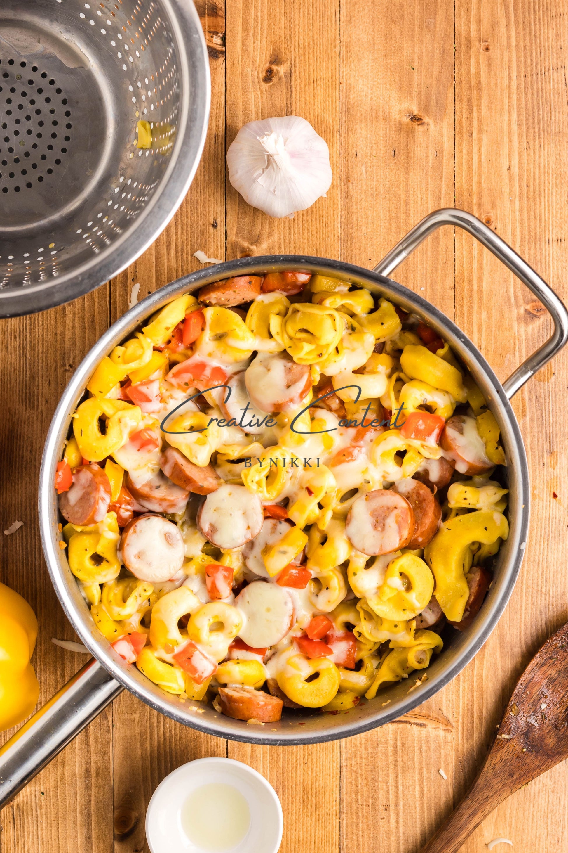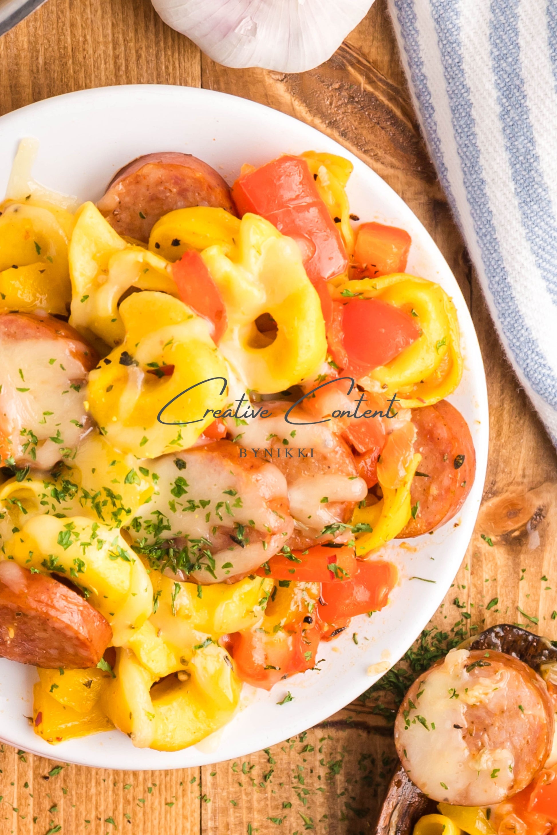- Ingredients: avocado oil, kielbasa, red bell pepper, yellow onion, kosher salt, black pepper, garlic, cheese tortellini, chicken stock, Italian seasoning, sweet paprika, red pepper flakes, mozzarella cheese, dried parsley