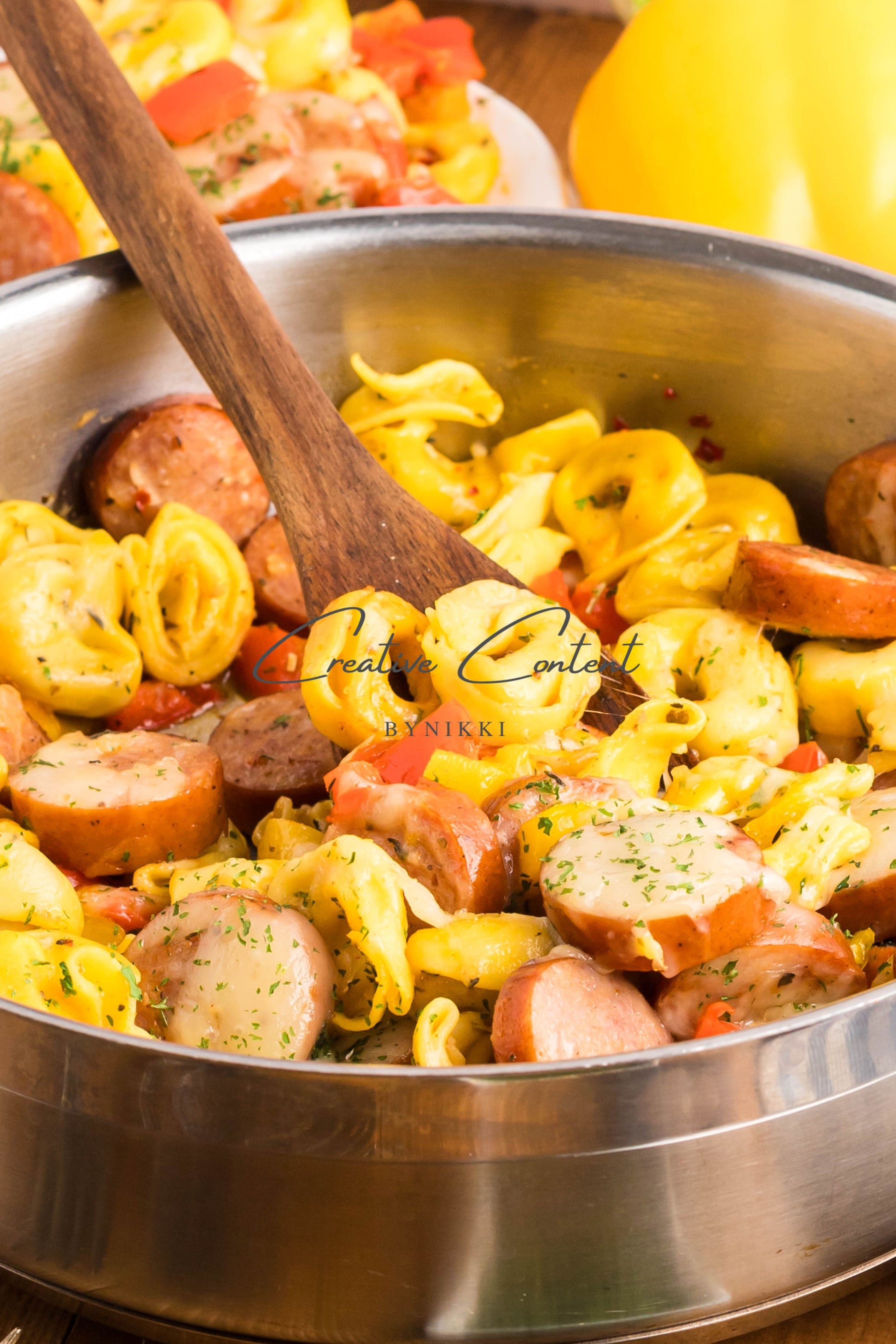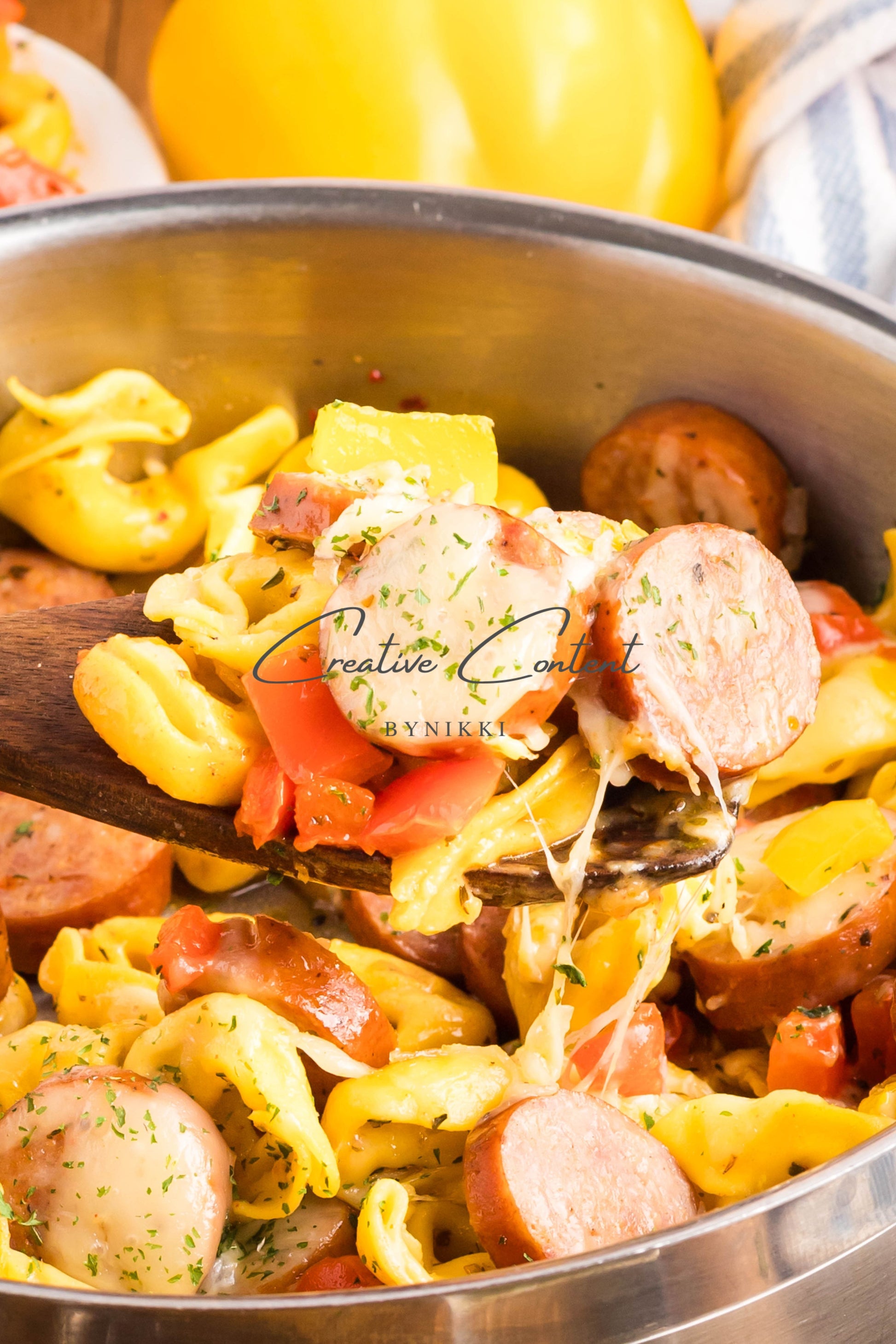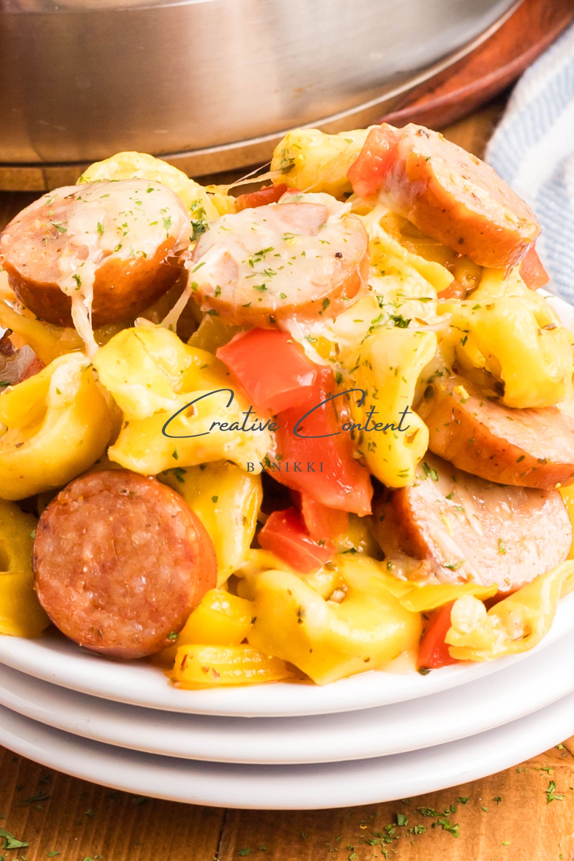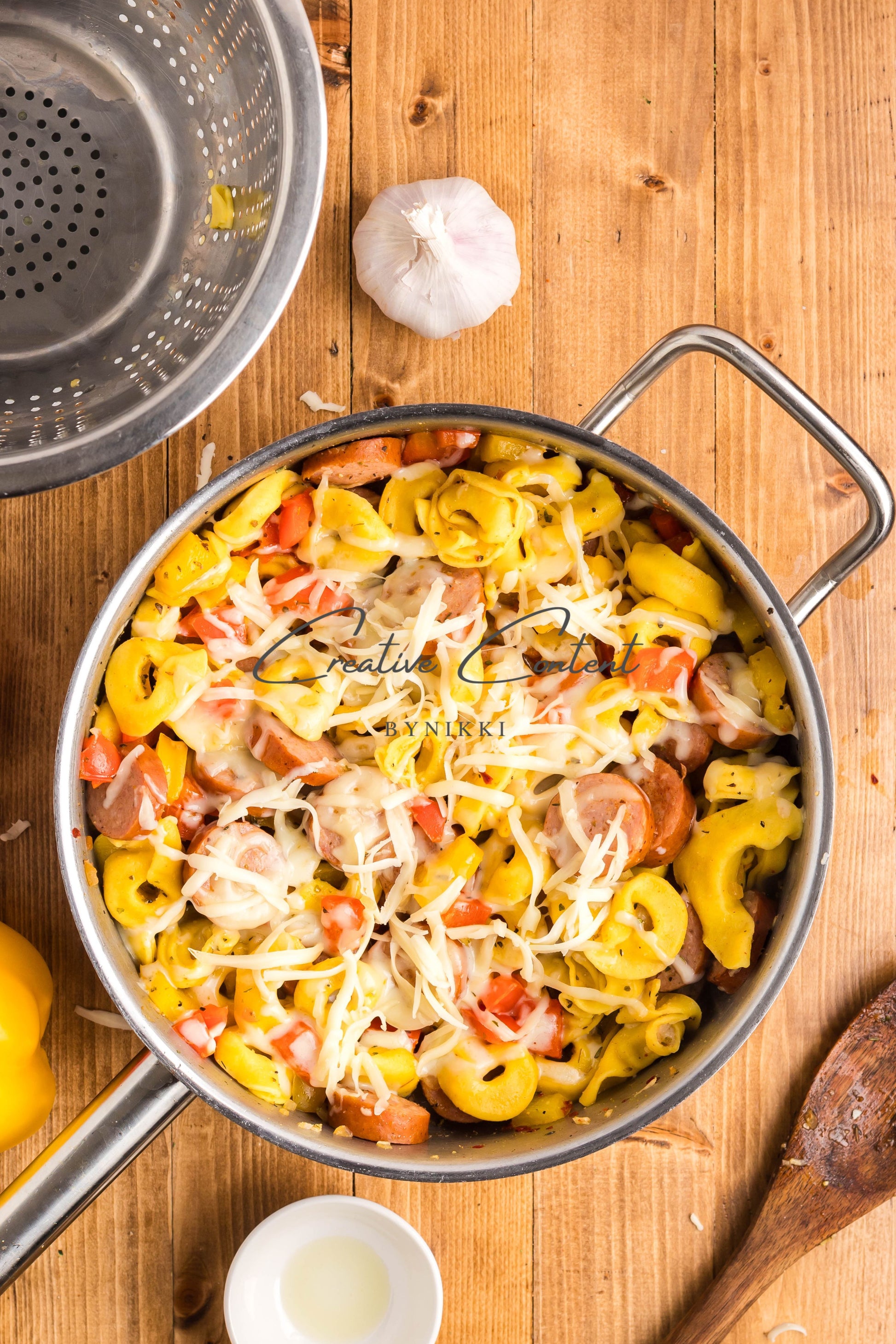 - Ingredients: avocado oil, kielbasa, red bell pepper, yellow onion, kosher salt, black pepper, garlic, cheese tortellini, chicken stock, Italian seasoning, sweet paprika, red pepper flakes, mozzarella cheese, dried parsley