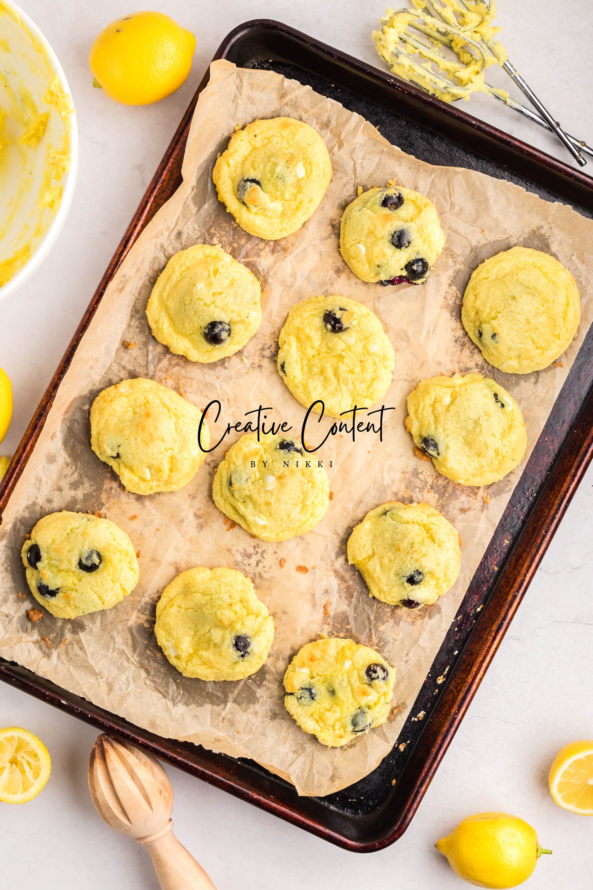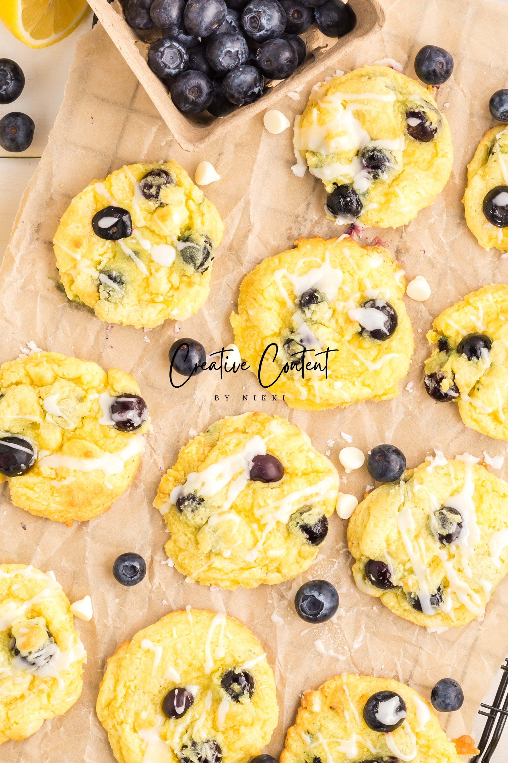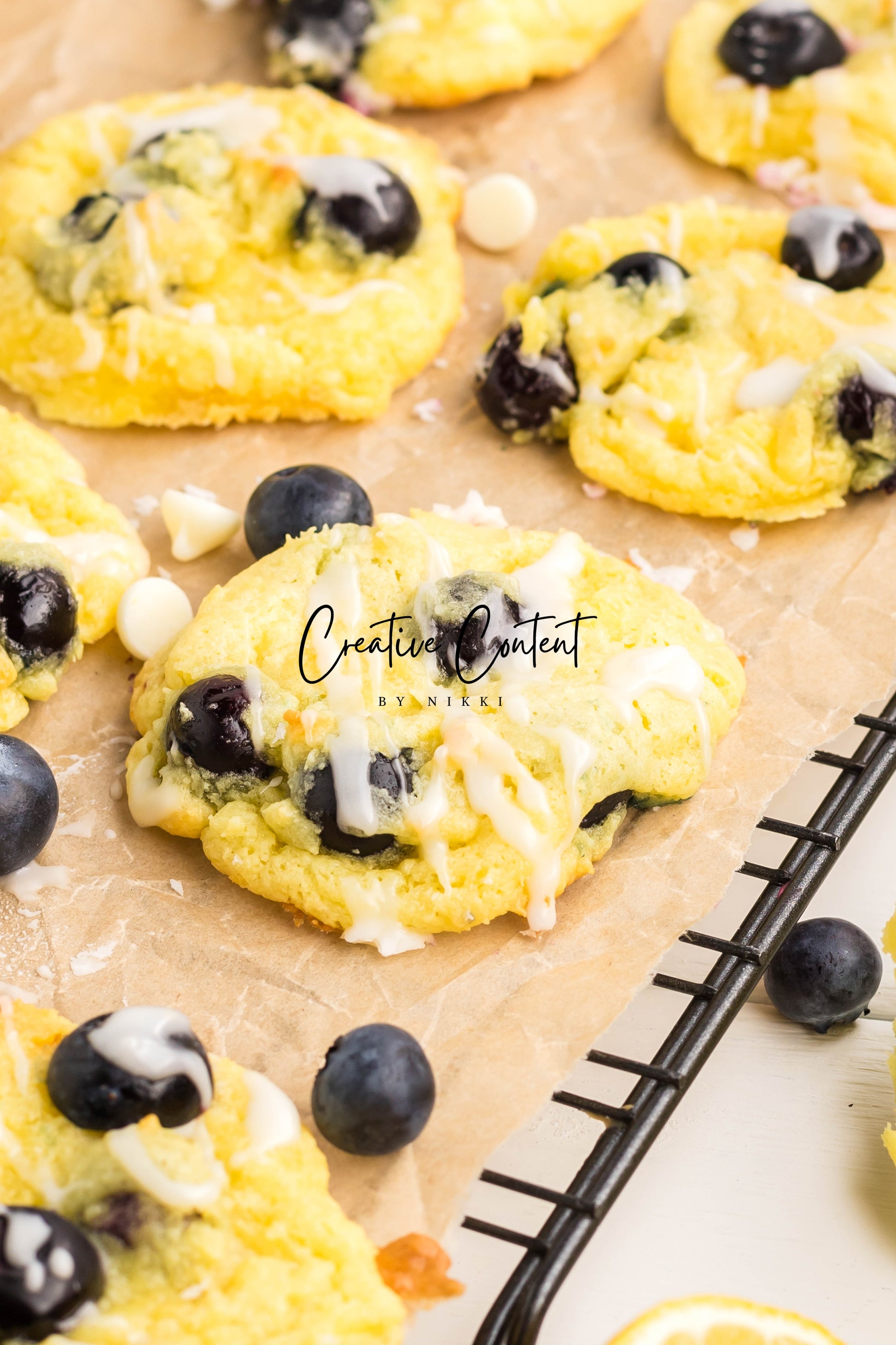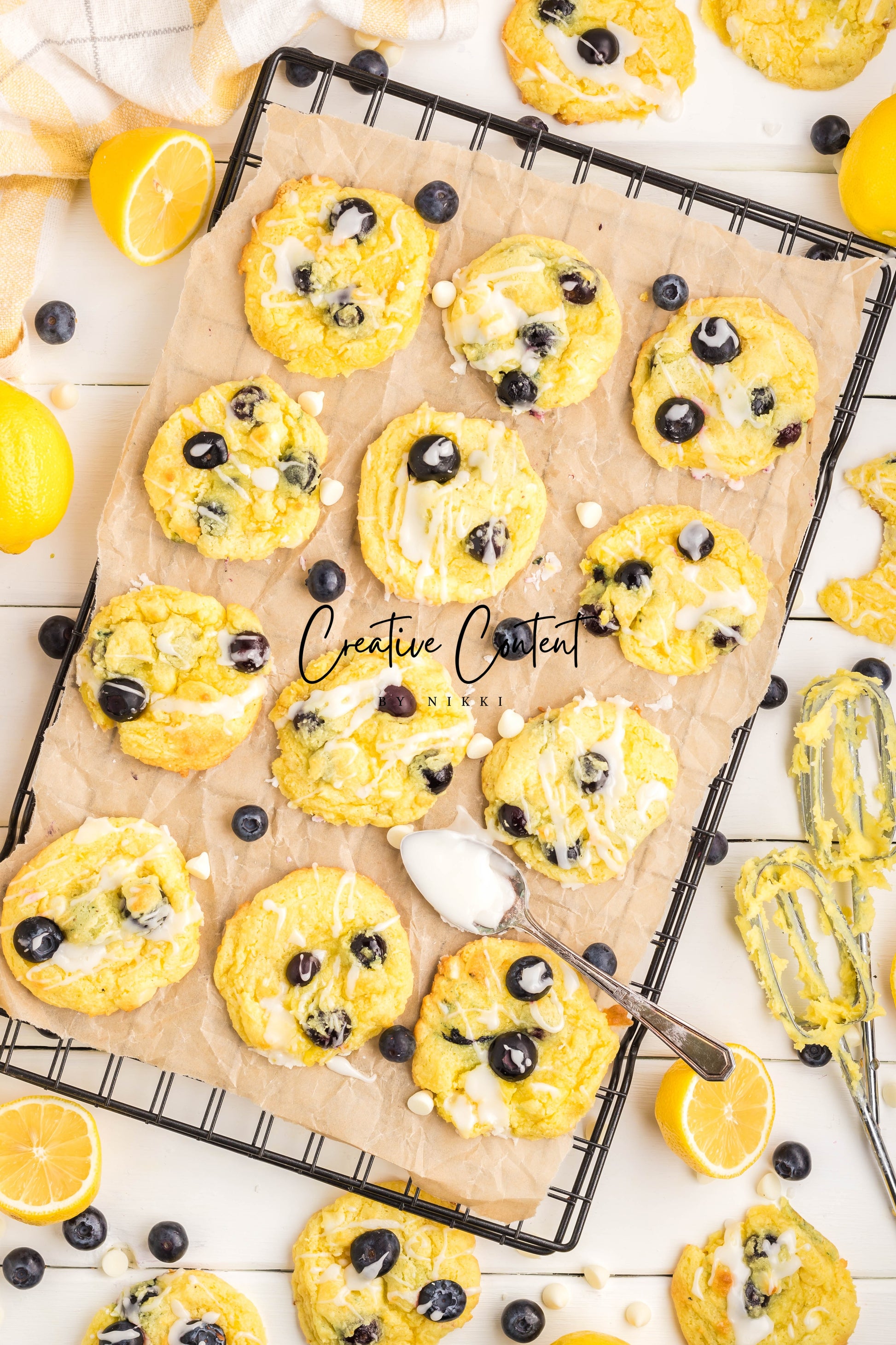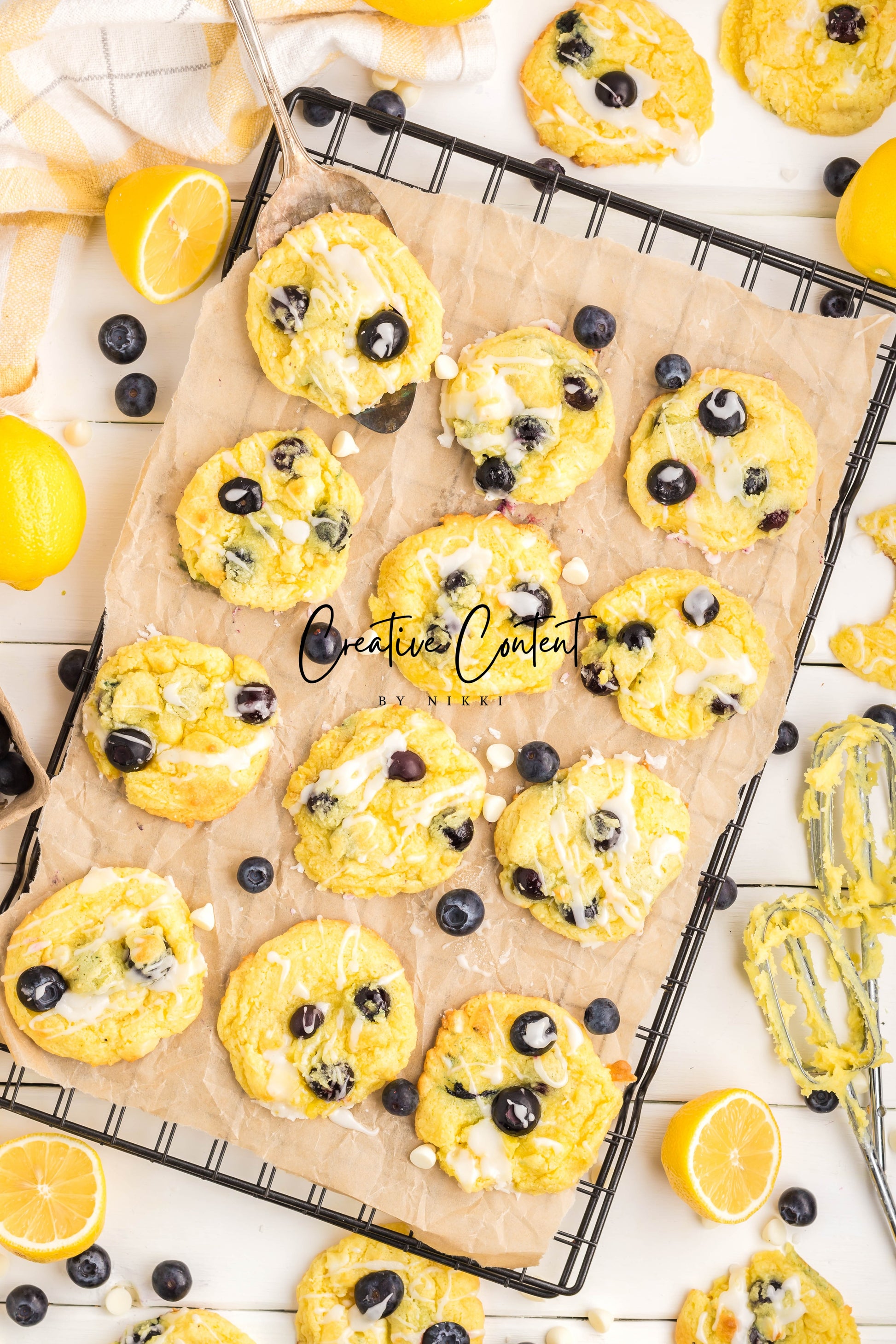 These lemon blueberry cake cookies are soft and flavorful. They have a bright citrus taste with bursts of blueberries in every bite. The white chocolate chips add a touch of sweetness. Perfect for a quick treat in the spring or summer. If you love lemon and blueberries you will love these cookies.