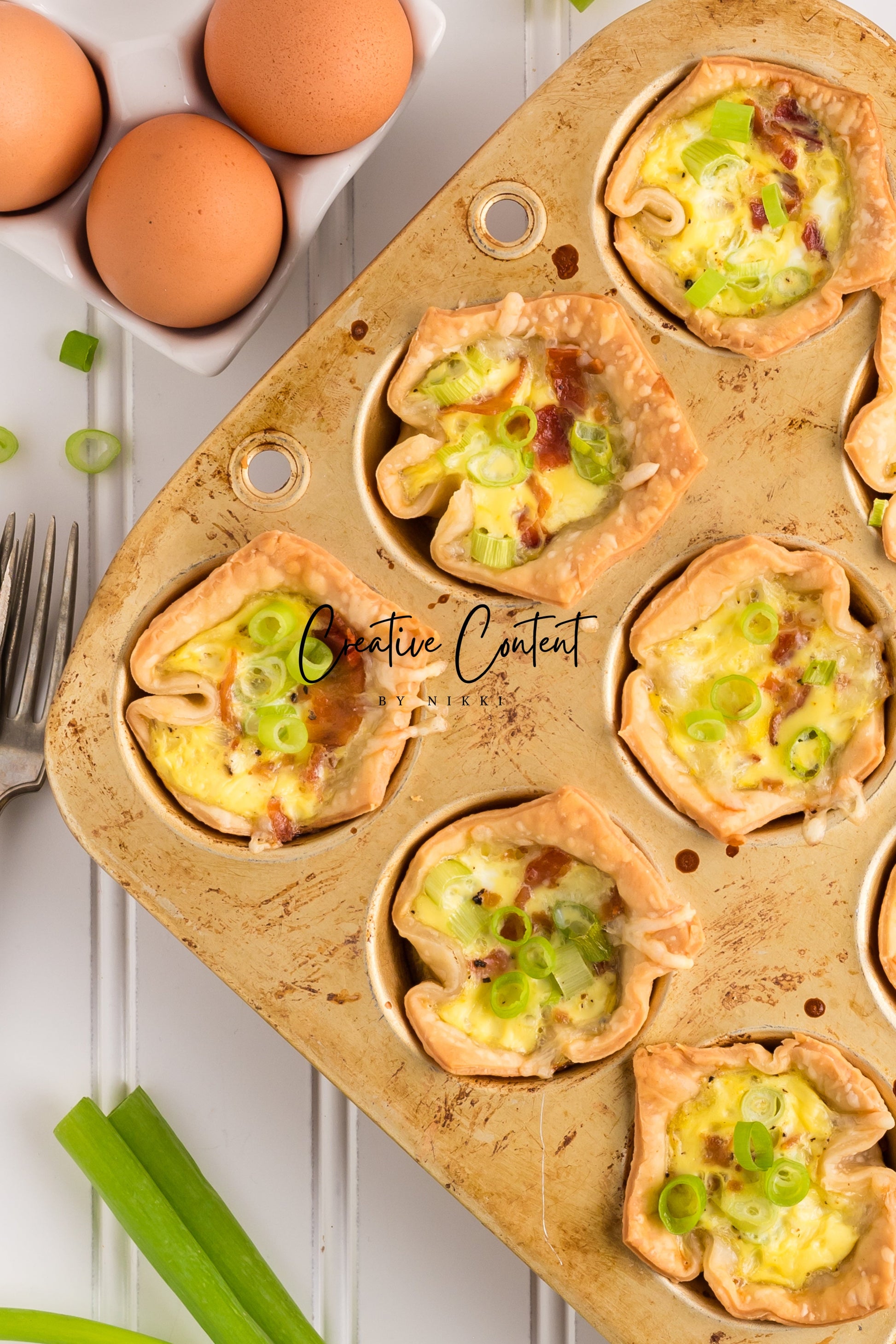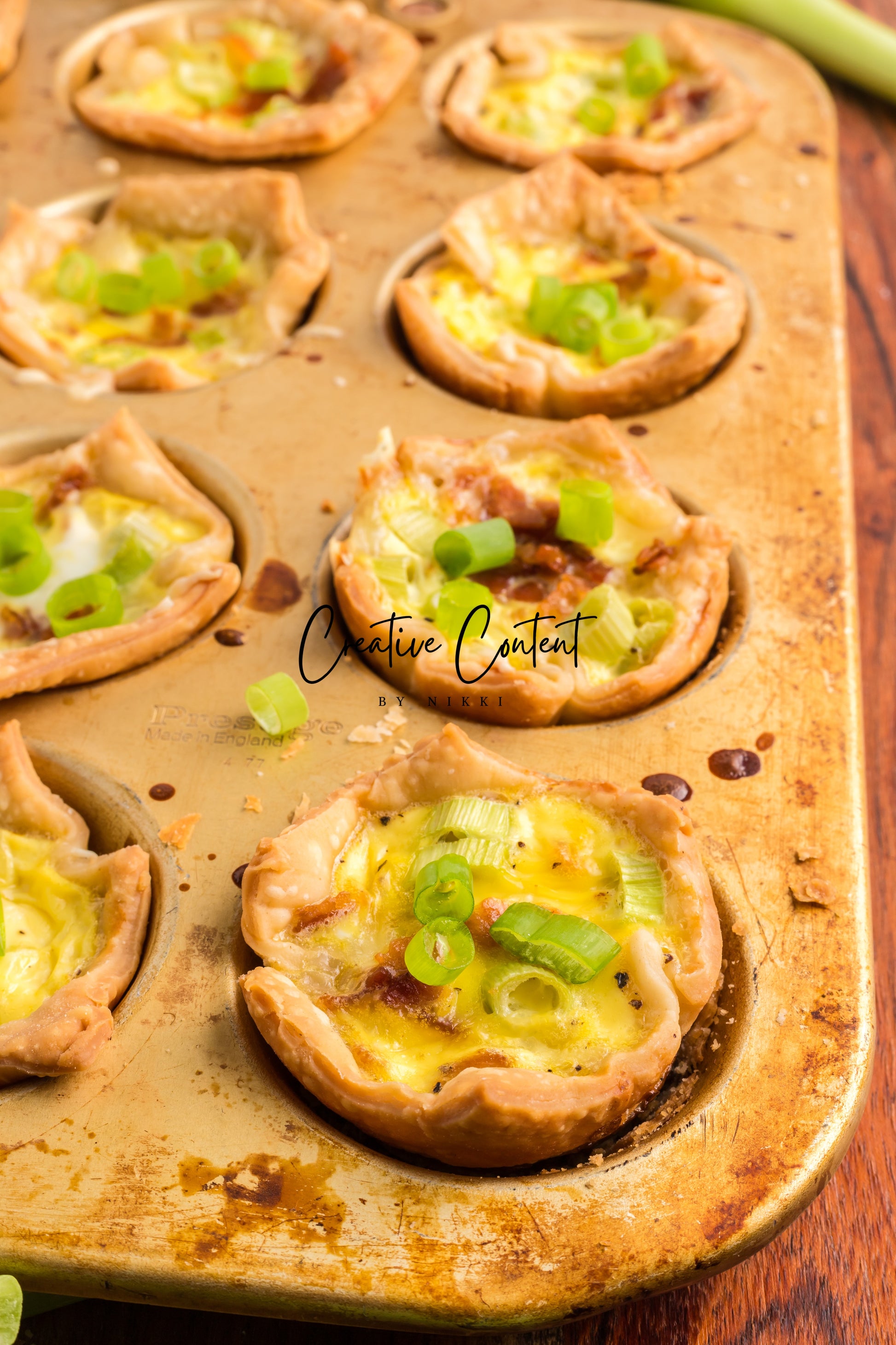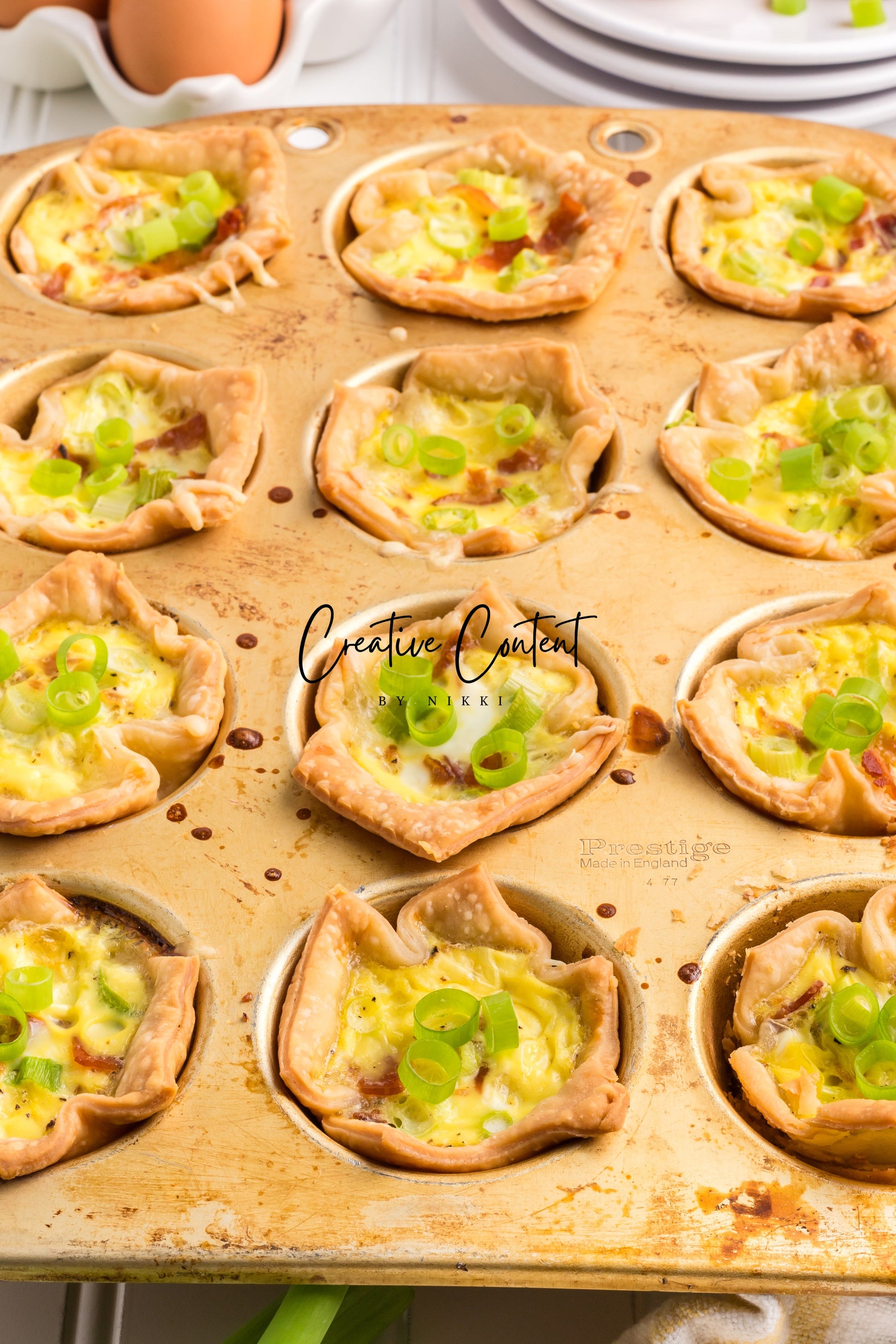 This recipe of mini Quiche Lorraines are full of egg, bacon, and cheese. The creamy custard filling, salty bacon, and crunchy green onions is truly a delectable treat. The premade easy pie crusts make this a breeze to make for your next brunch. This is a great recipe that is pure comfort and is great on a cold day or perfect for the summertime when you want something light.