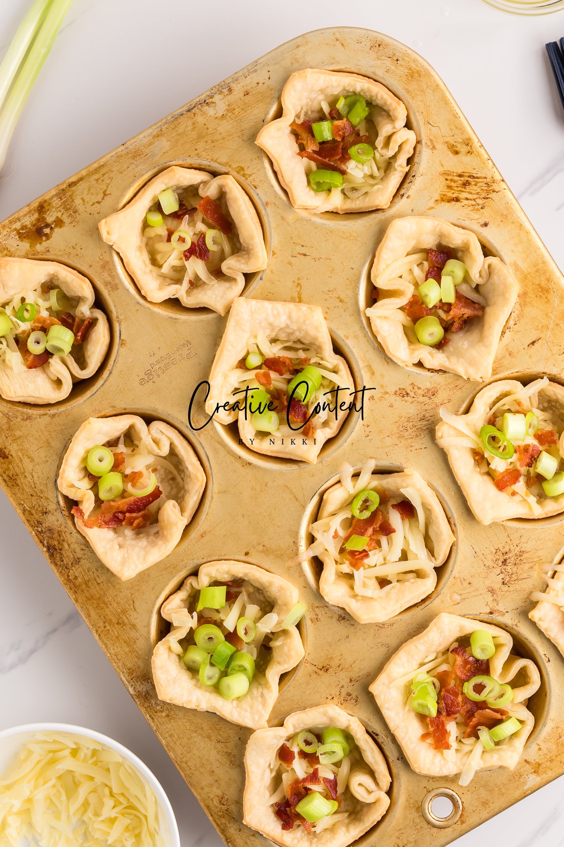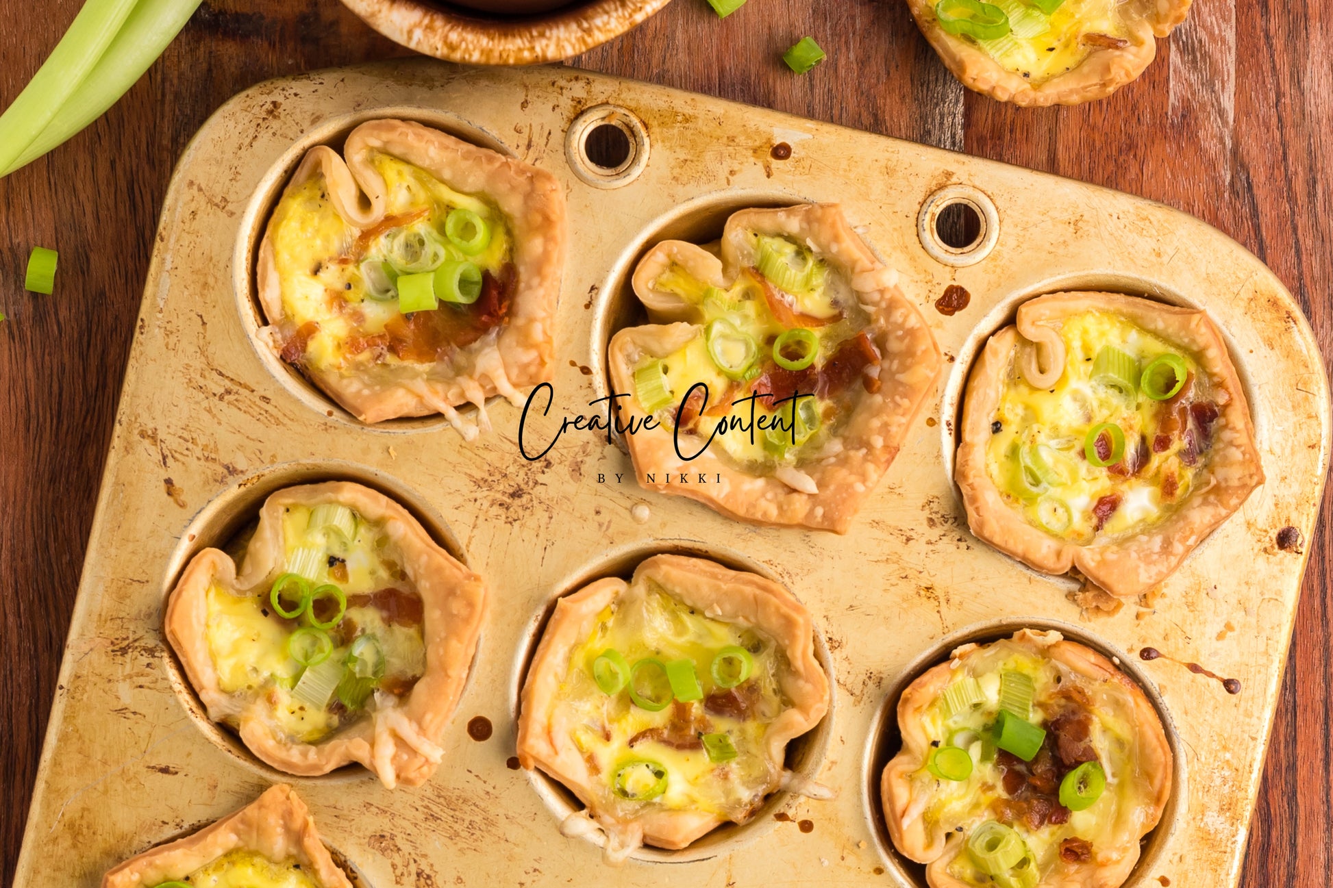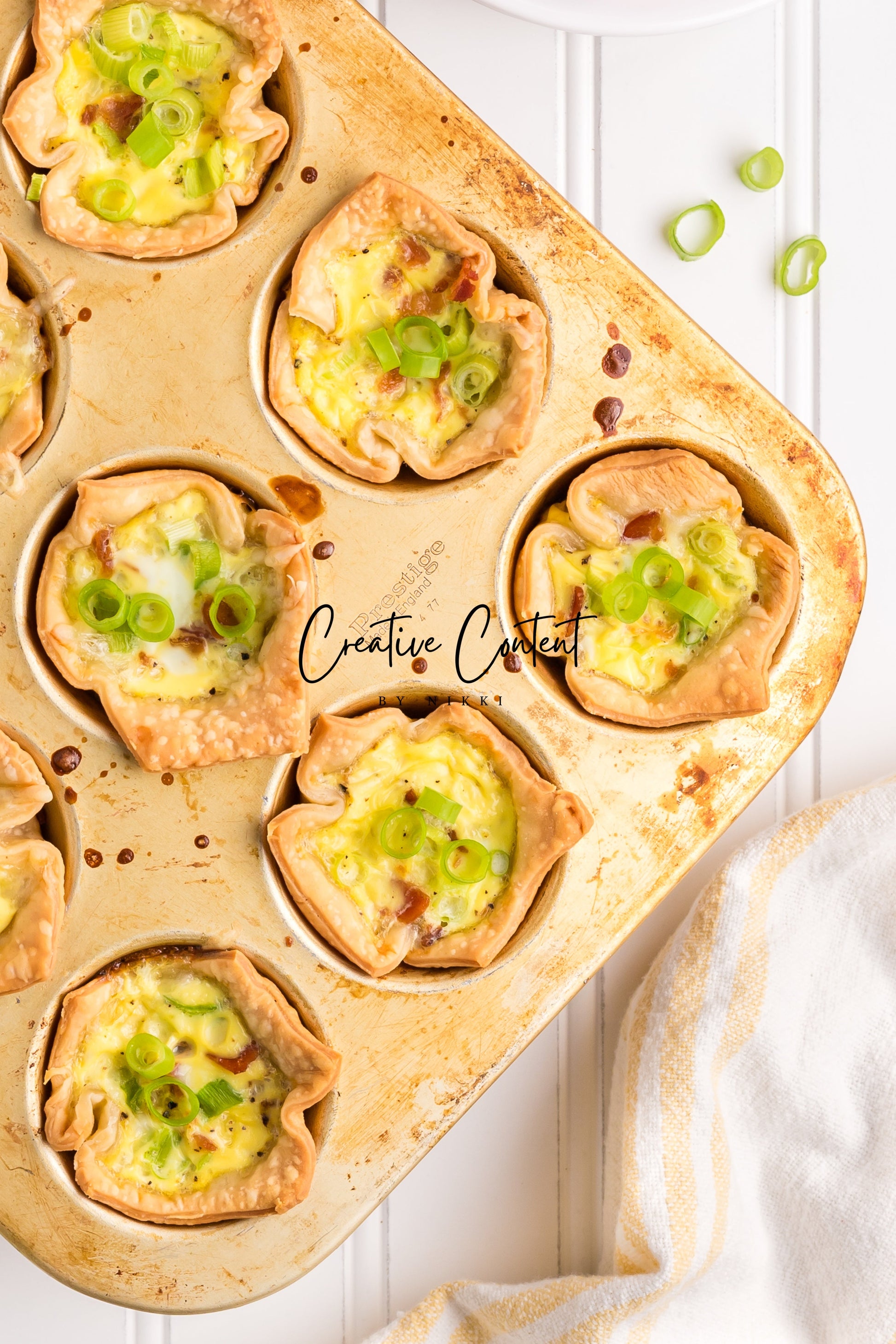 This recipe of mini Quiche Lorraines are full of egg, bacon, and cheese. The creamy custard filling, salty bacon, and crunchy green onions is truly a delectable treat. The premade easy pie crusts make this a breeze to make for your next brunch. This is a great recipe that is pure comfort and is great on a cold day or perfect for the summertime when you want something light.