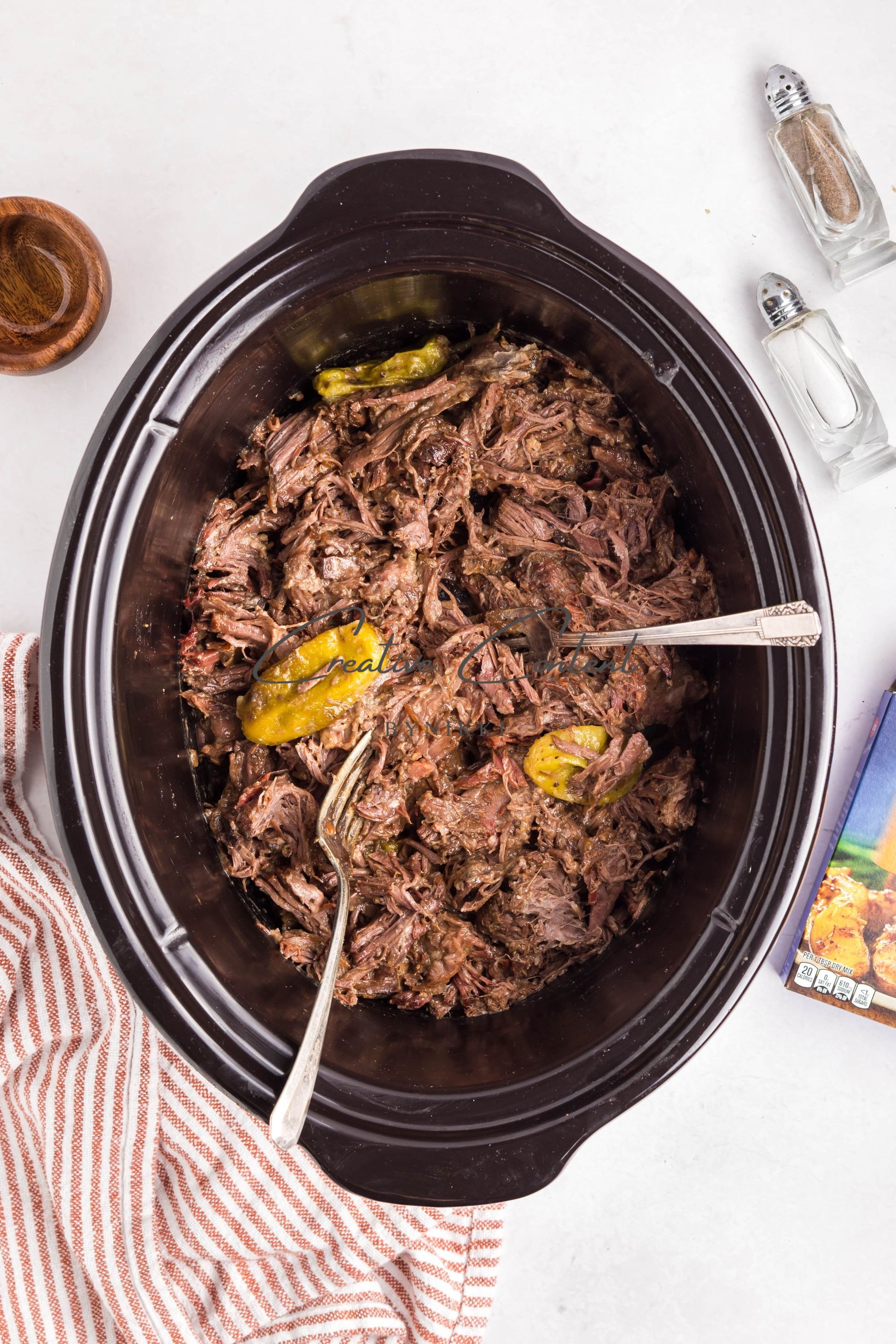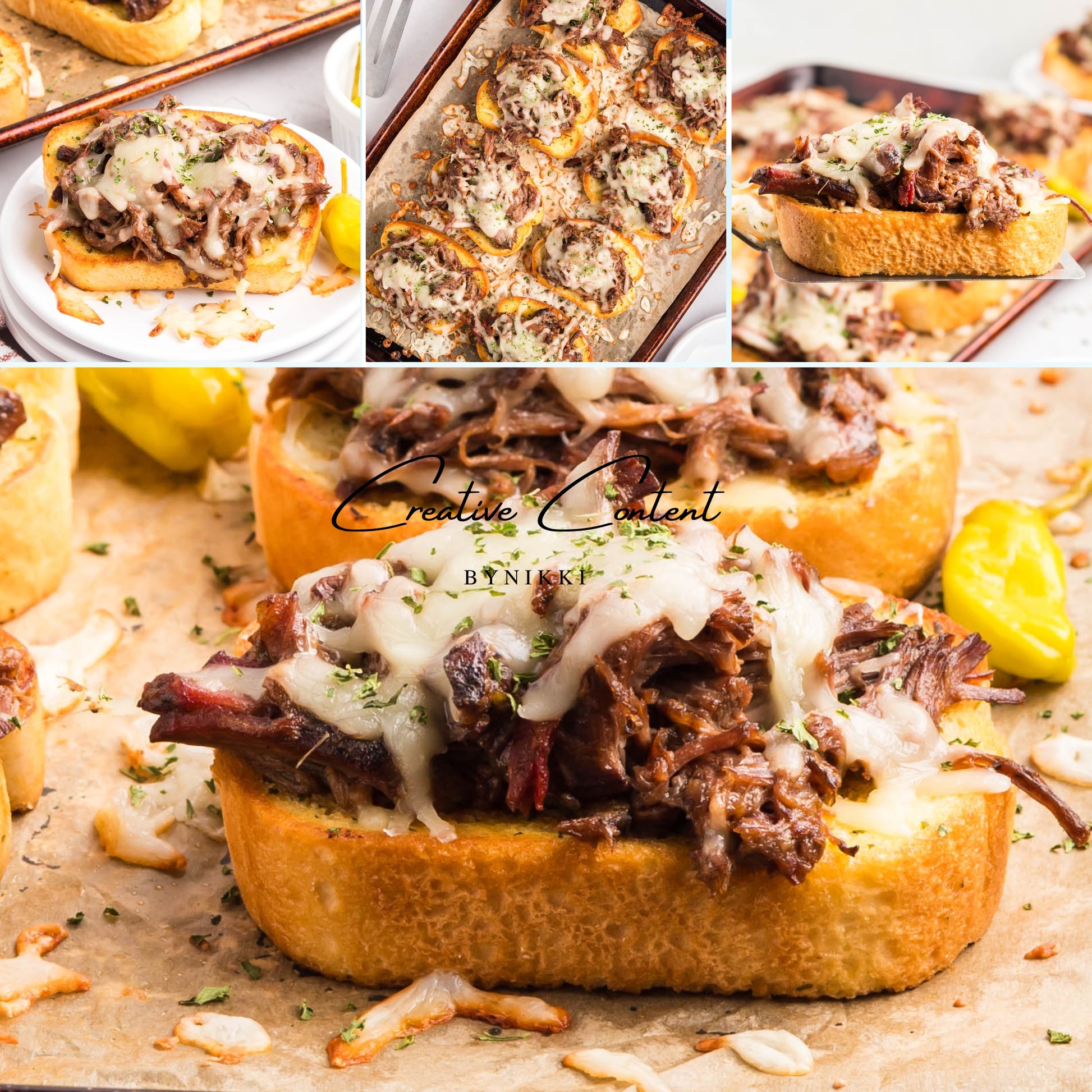 - Ingredients: olive oil, chuck roast, salt, pepper, ranch dressing mix, dry onion soup mix, butter, pepperoncini peppers, Texas Toast, mozzarella cheese, dried parsley