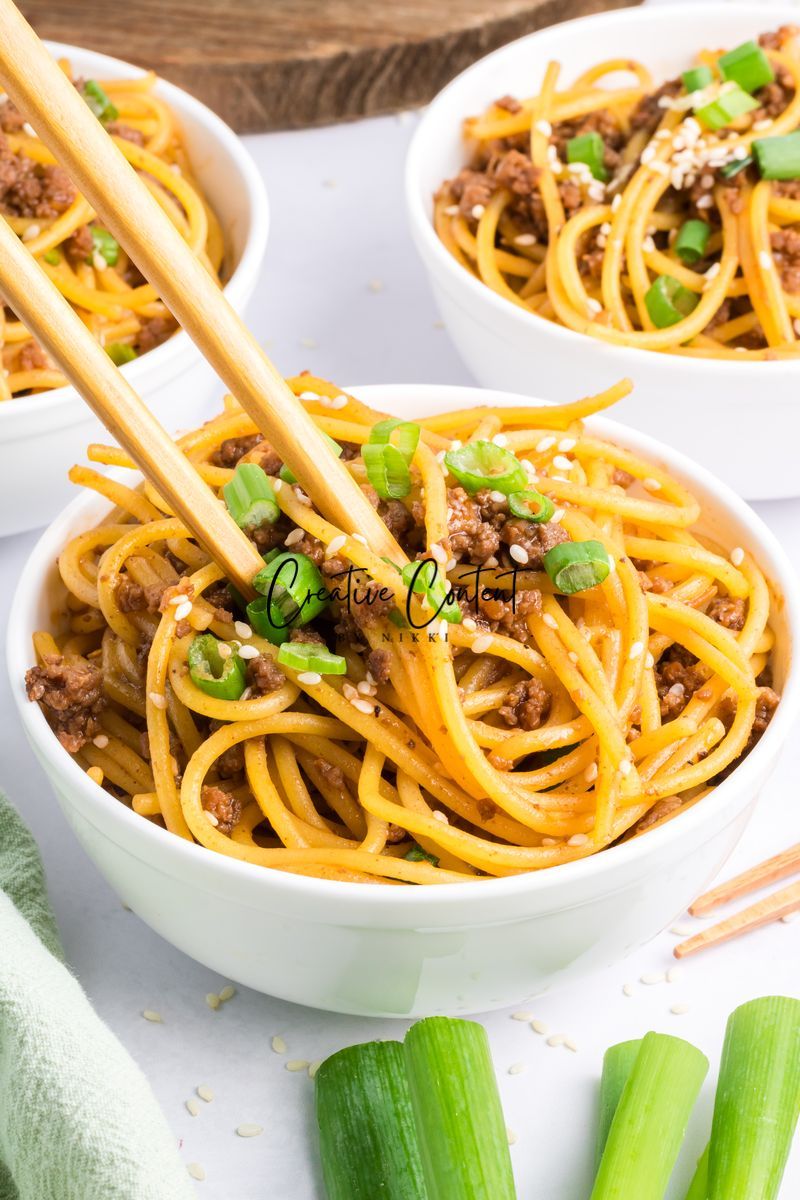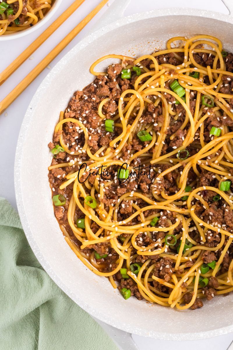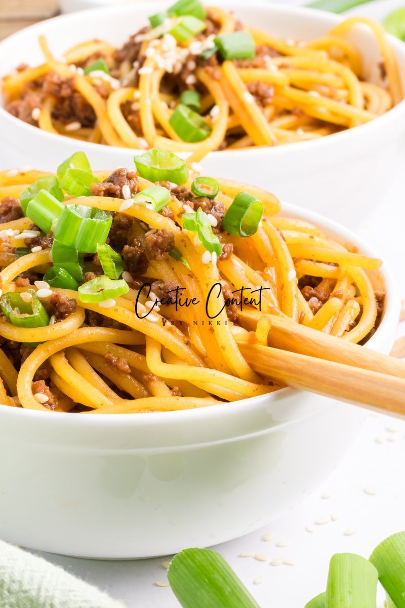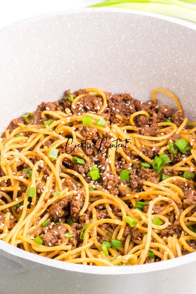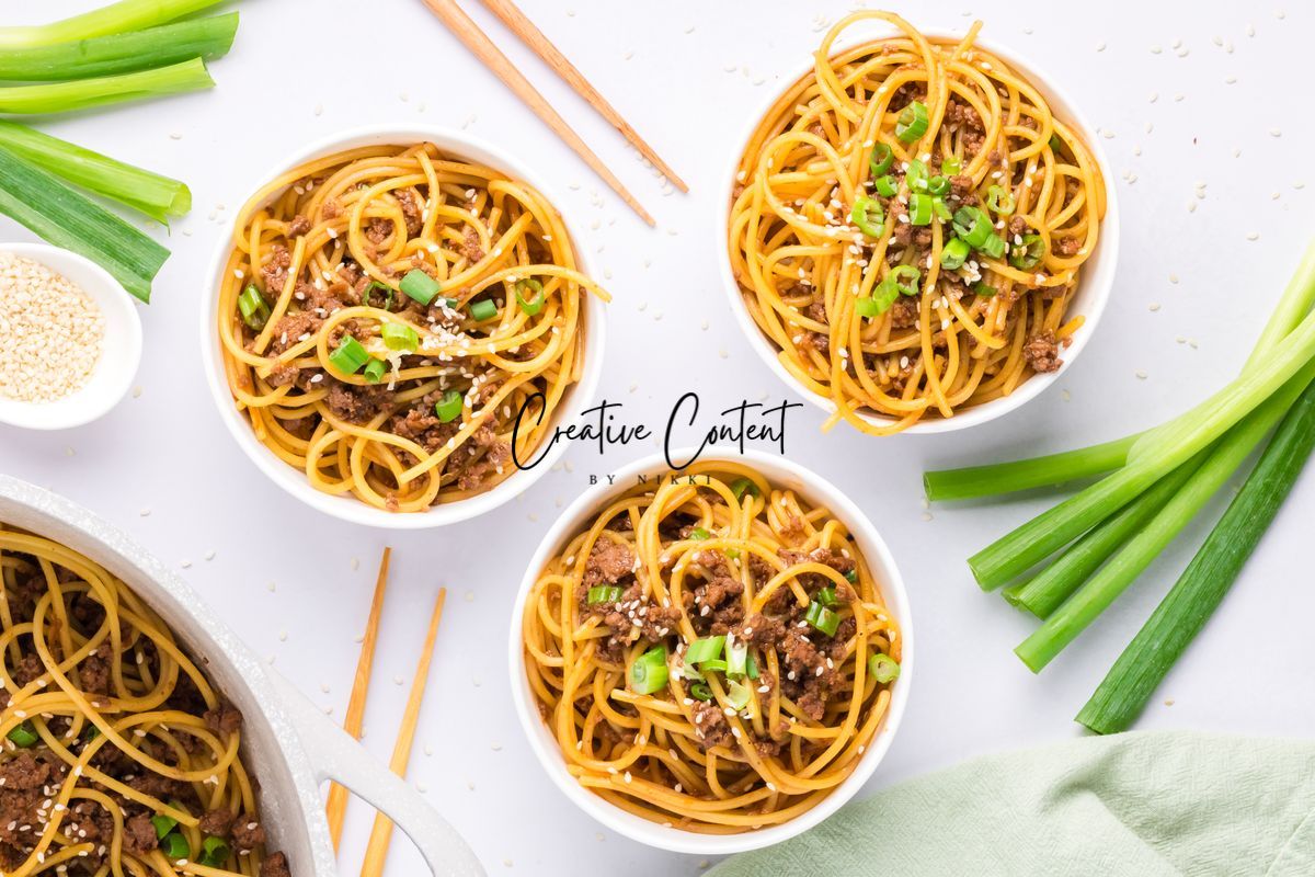 This Mongolian ground beef and noodles is a hearty and delicious dinner that will have everyone wanting more. The Asian flavors of the sesame oil, soy sauce, hoisin sauce, and ginger come together for a perfect dinner. Everything is made in one pot and is ready in 30 minutes.