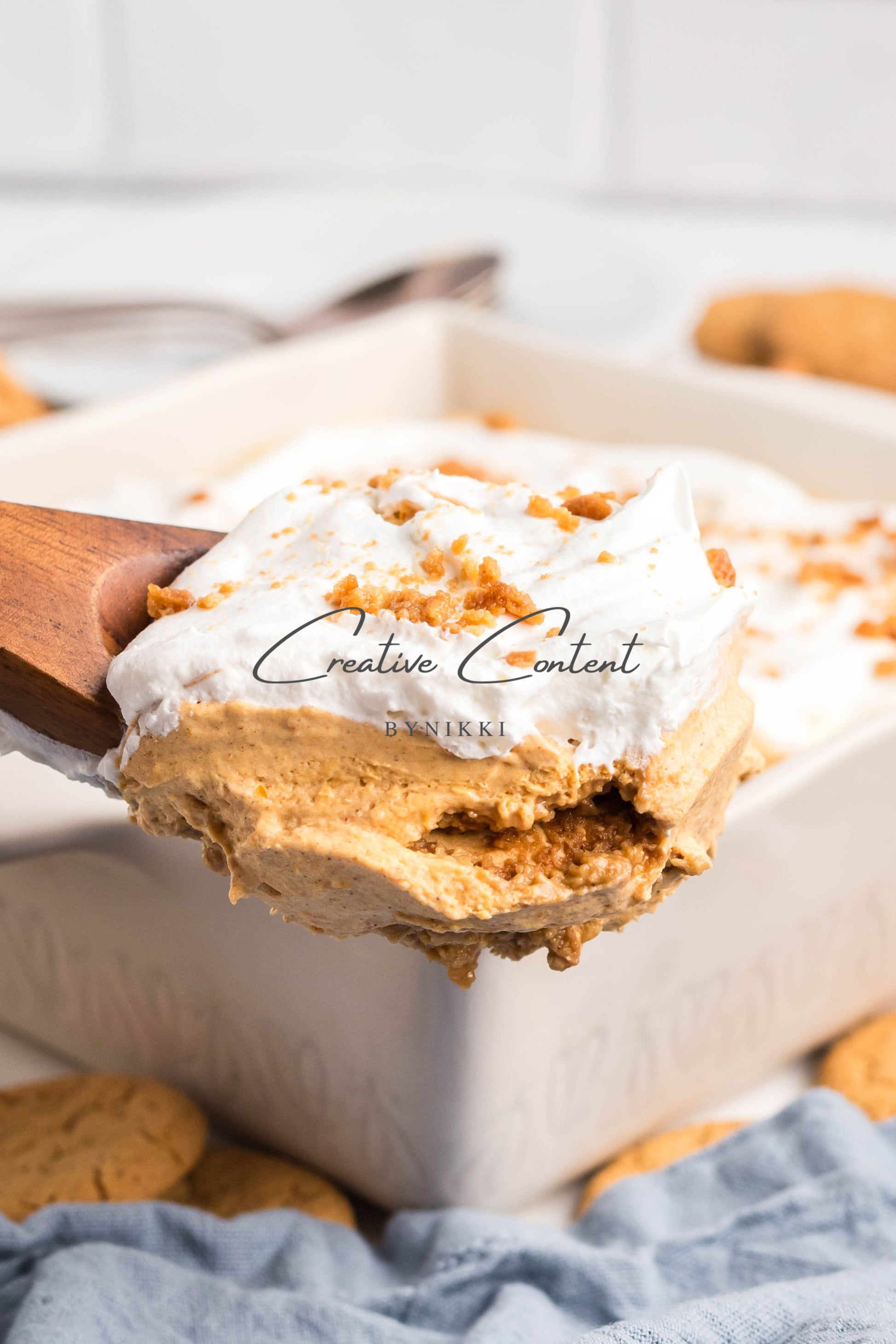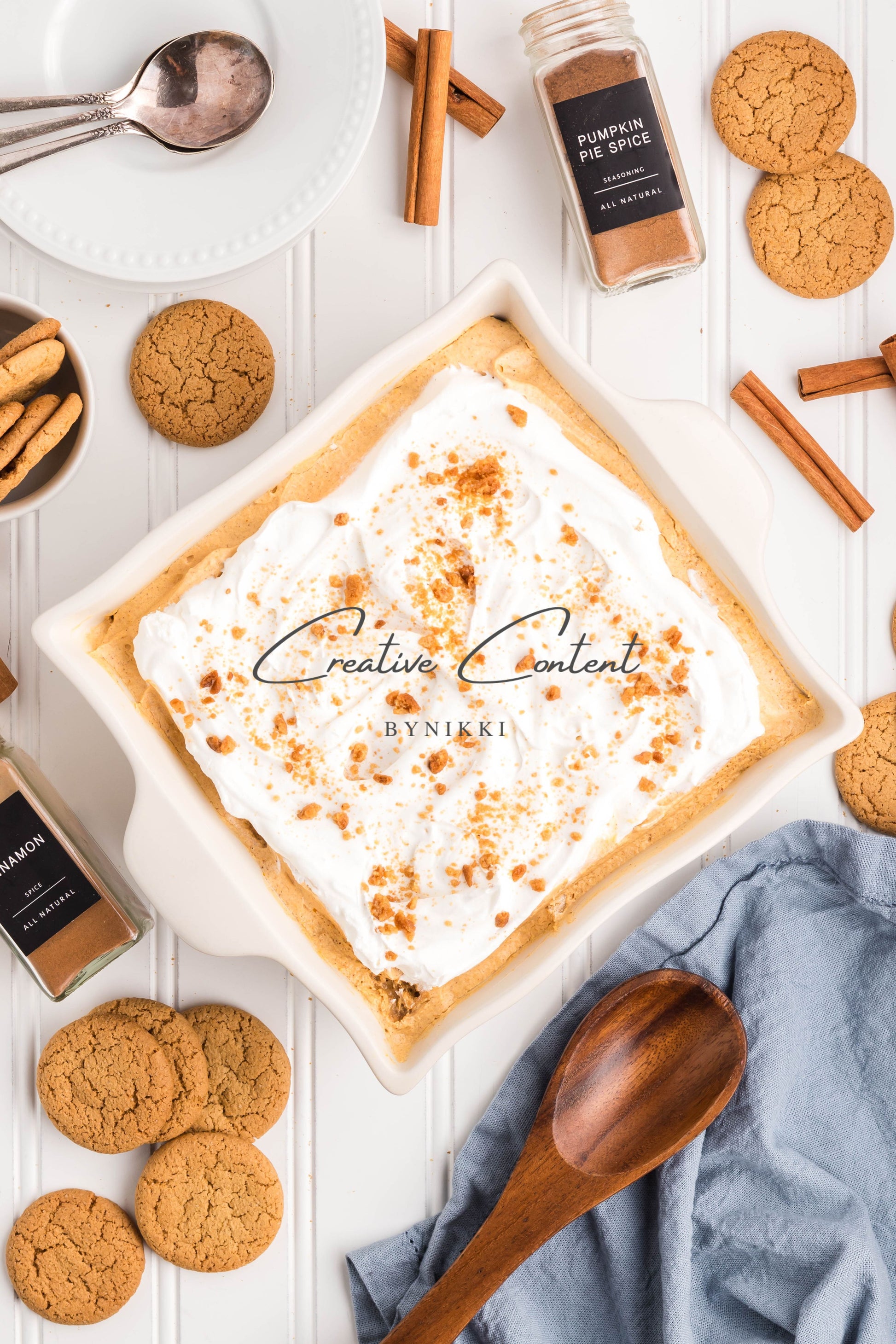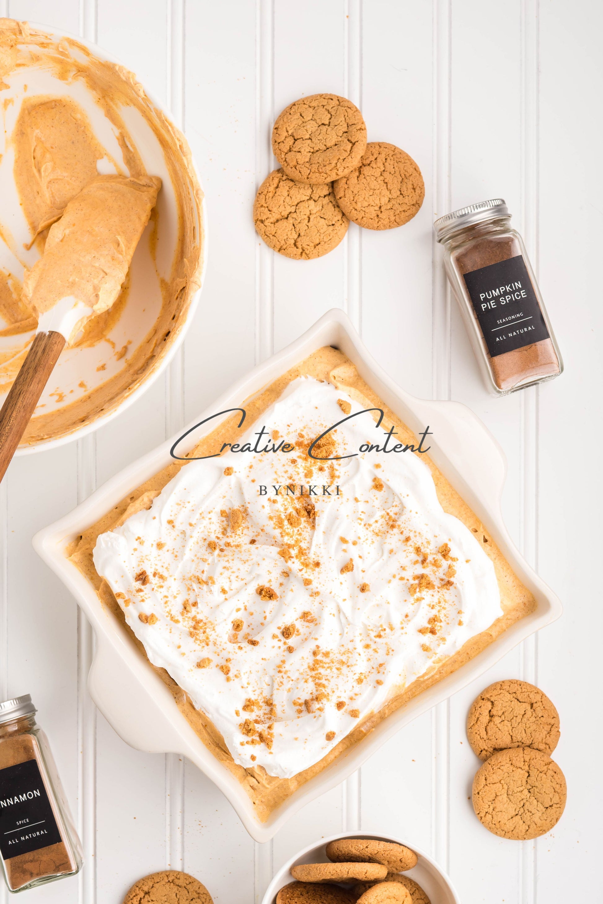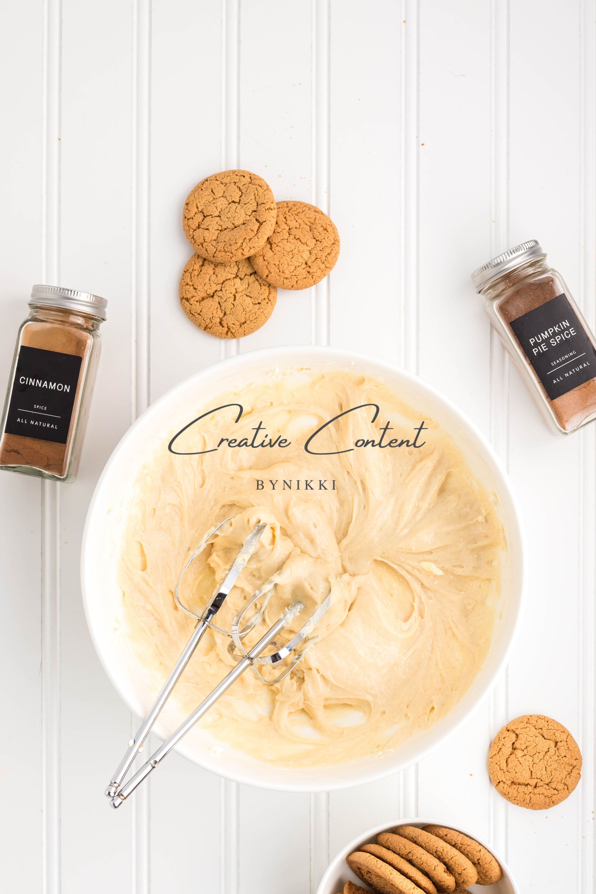 - Ingredients: cream cheese, brown sugar, white sugar, vanilla extract, pumpkin, pumpkin pie spice, cinnamon, cool whip, gingersnaps
