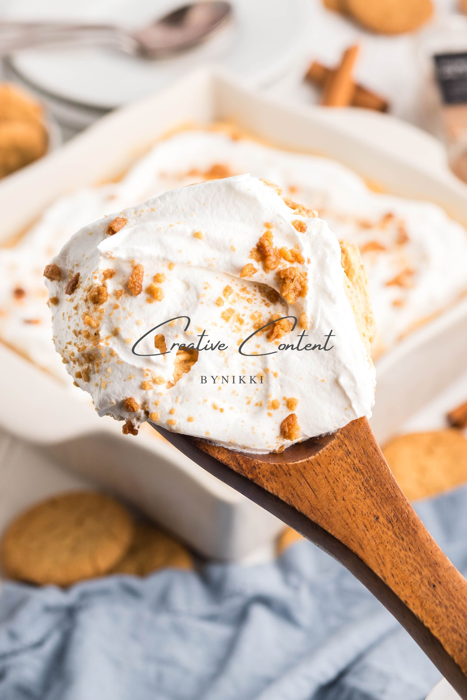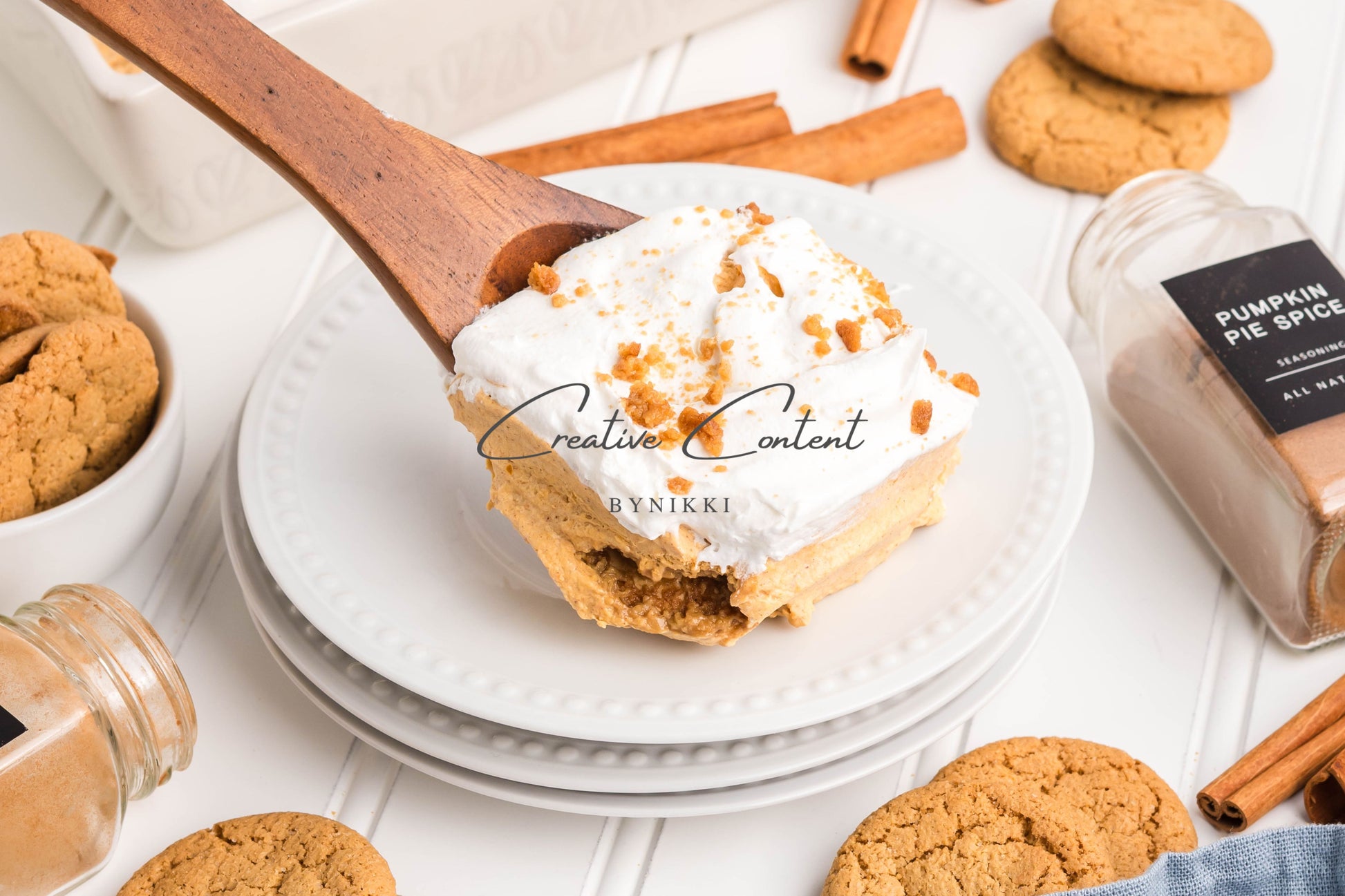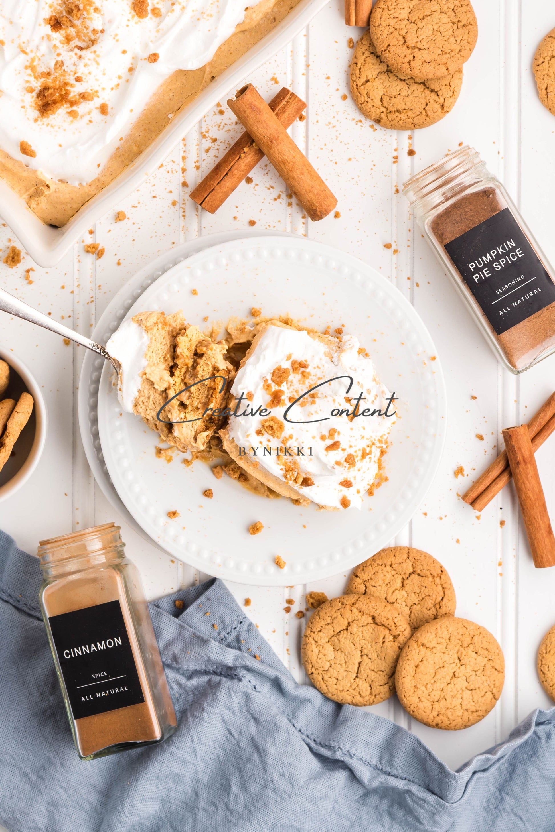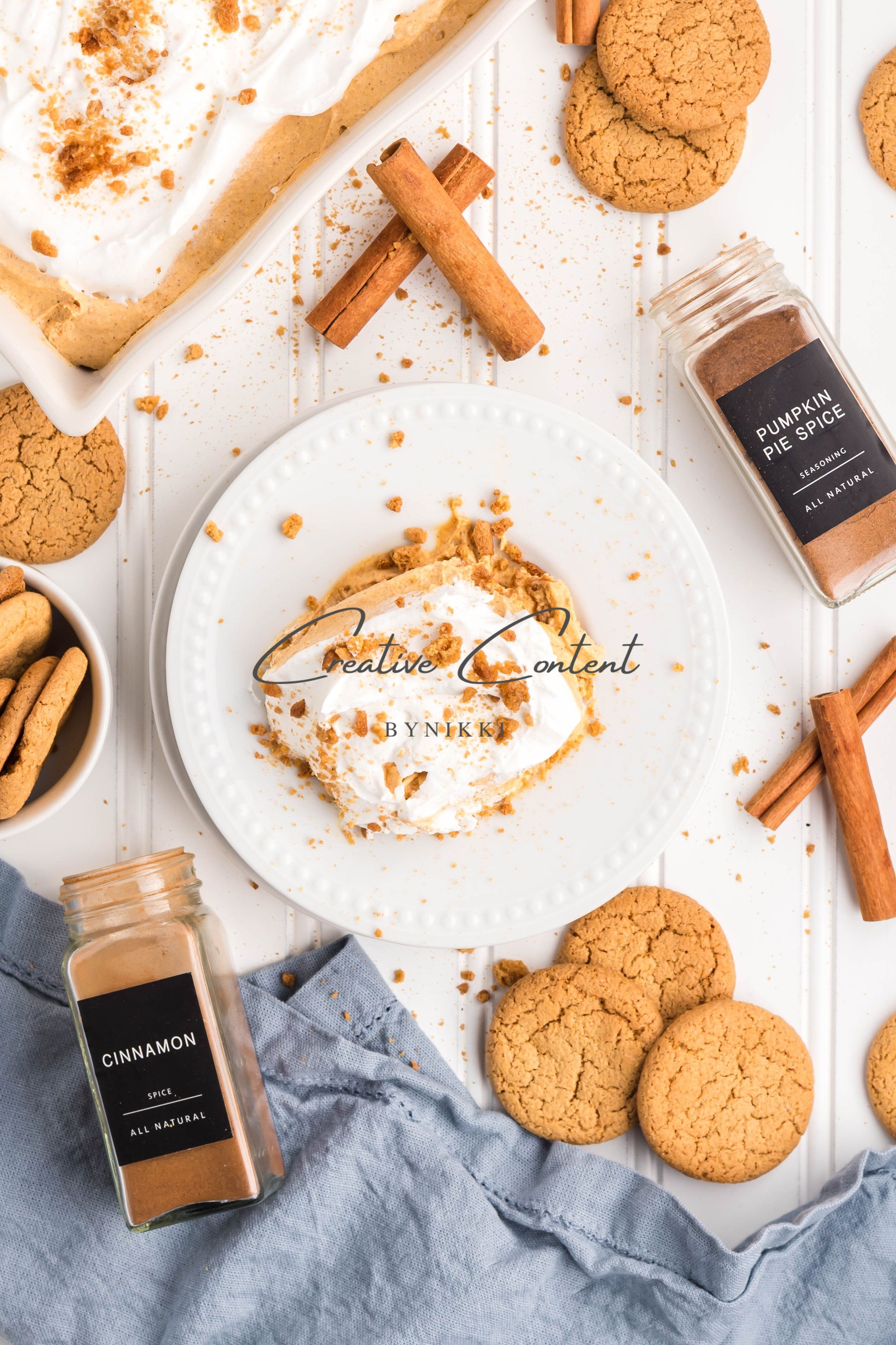- Ingredients: cream cheese, brown sugar, white sugar, vanilla extract, pumpkin, pumpkin pie spice, cinnamon, cool whip, gingersnaps