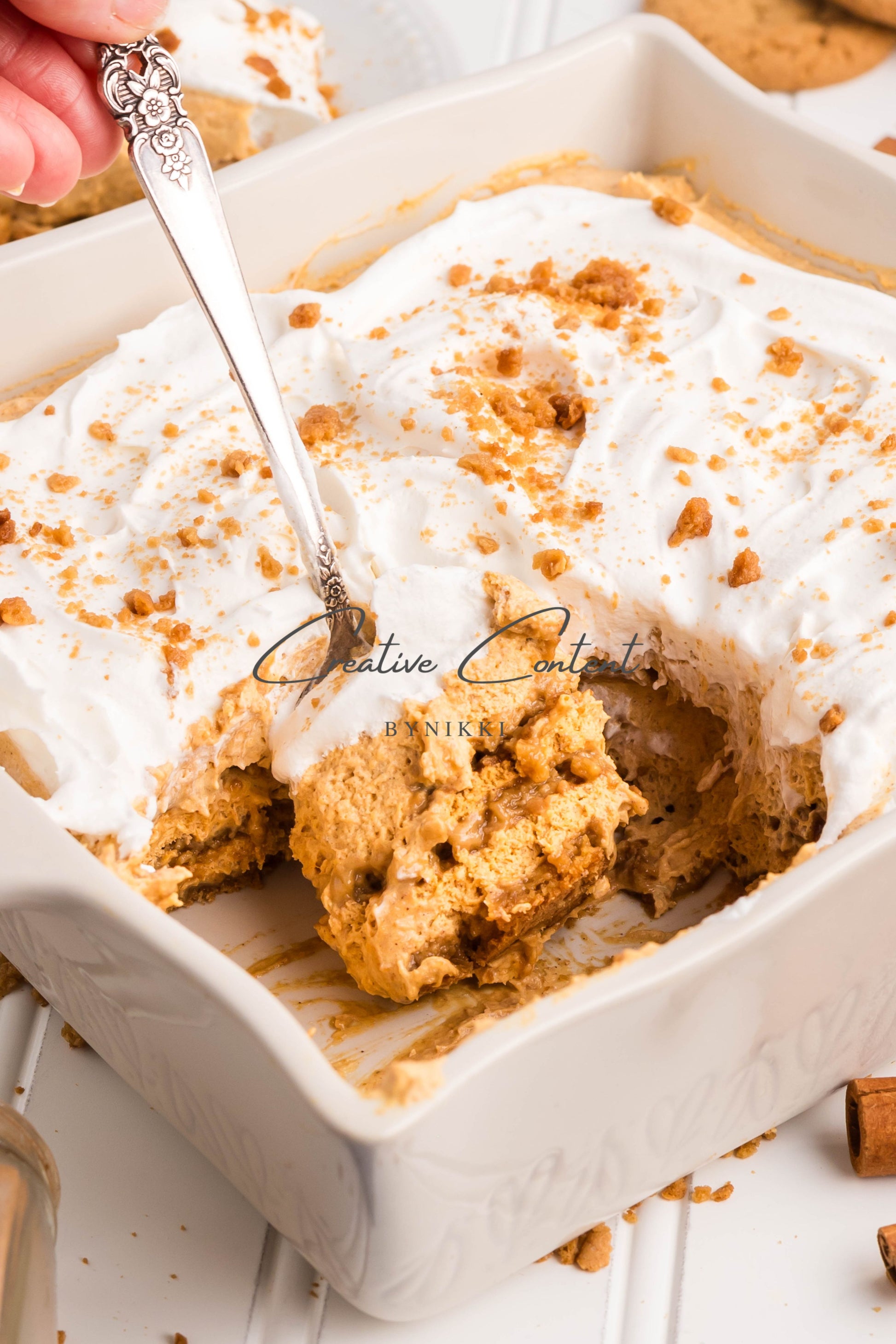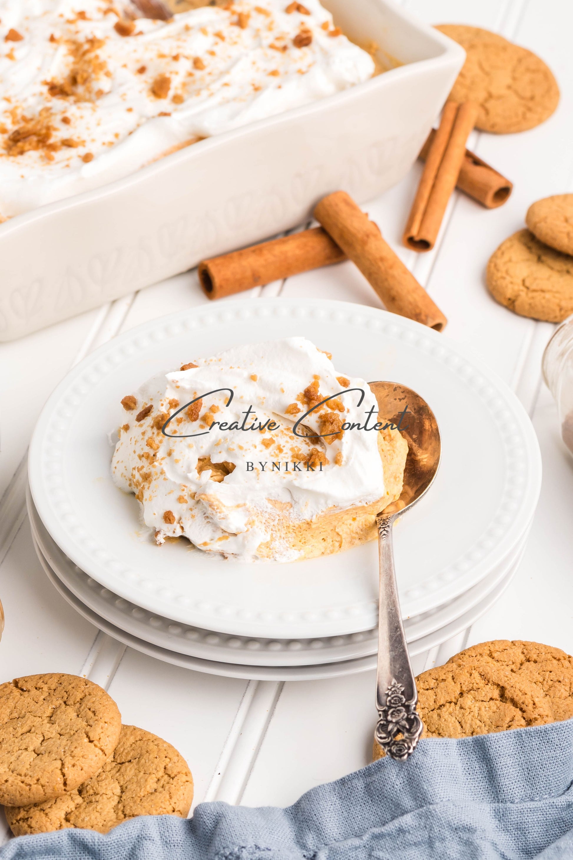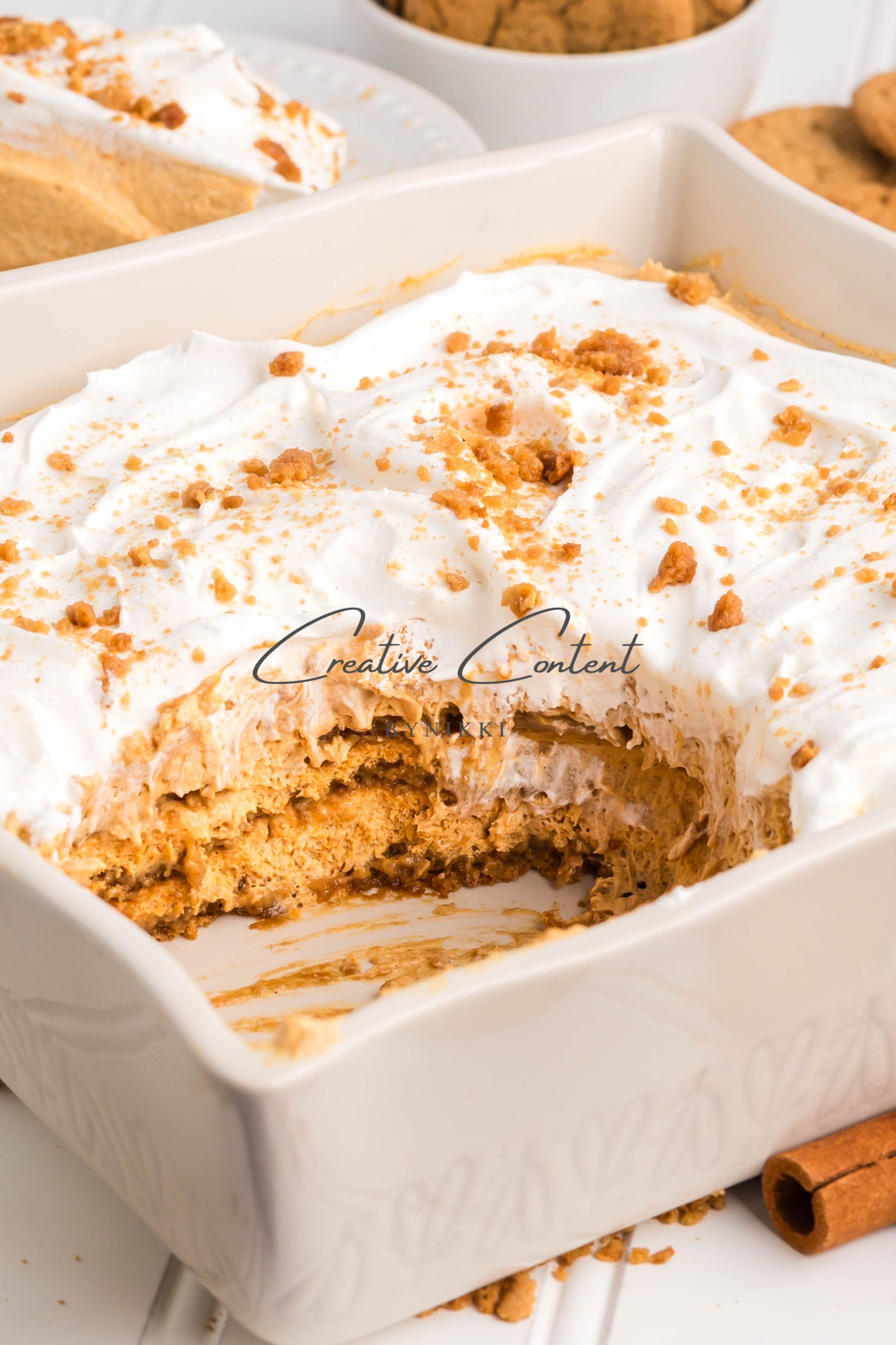No Bake Pumpkin Icebox Cake is a simple and delicious fall dessert. It layers creamy pumpkin filling with crisp gingersnap cookies for the perfect mix of texture and flavor. This dessert comes together quickly and doesn’t require any baking, which makes it perfect for busy days.