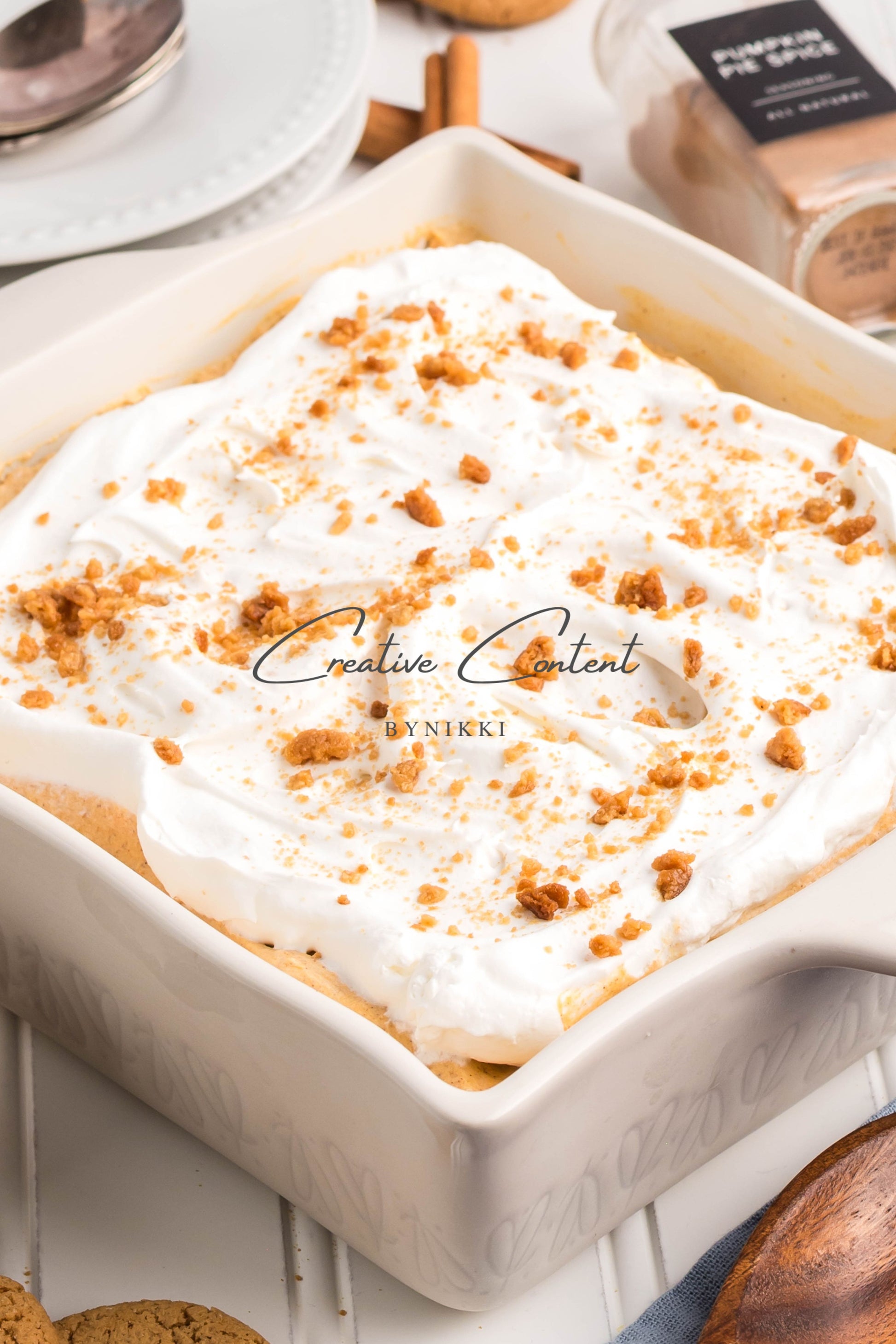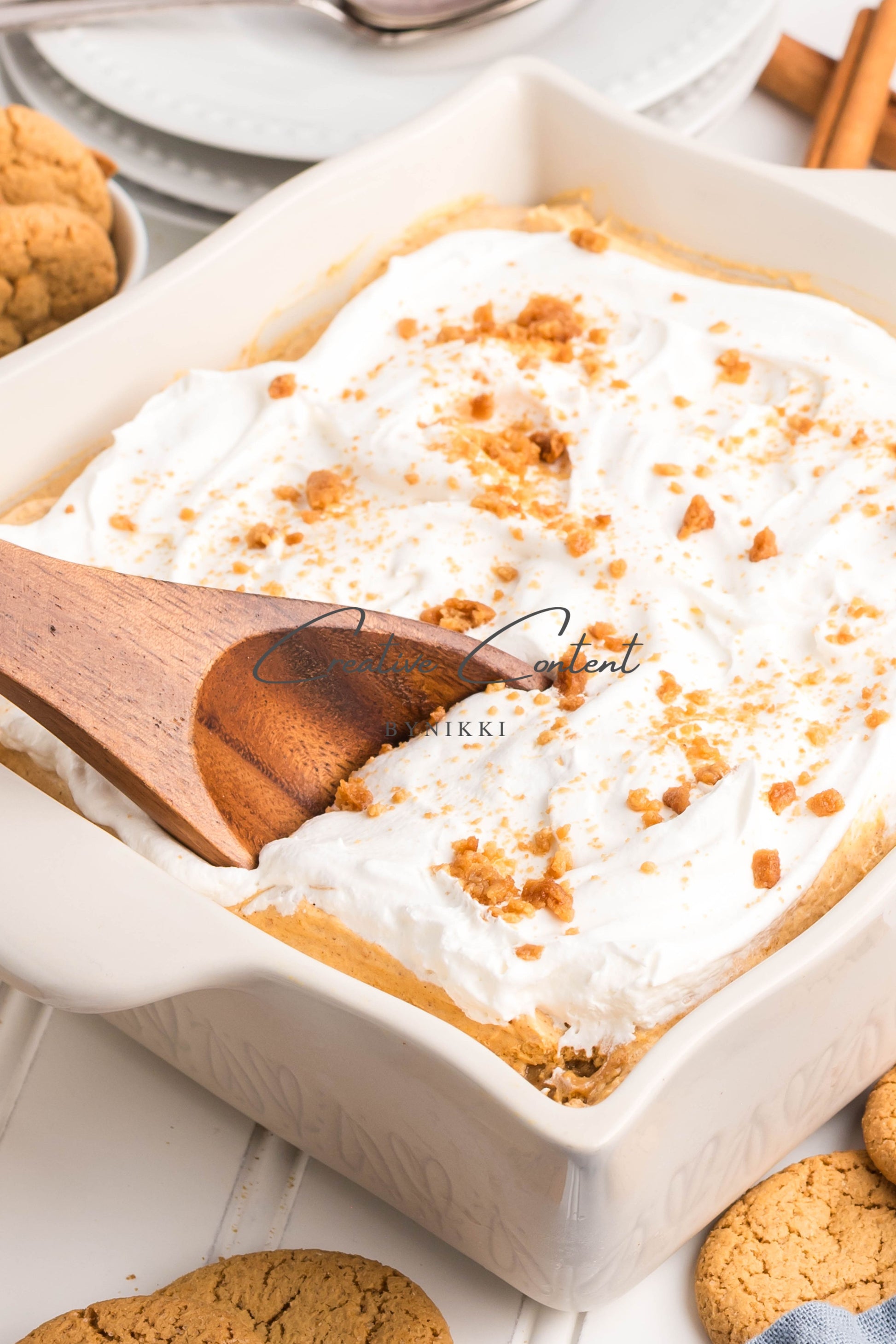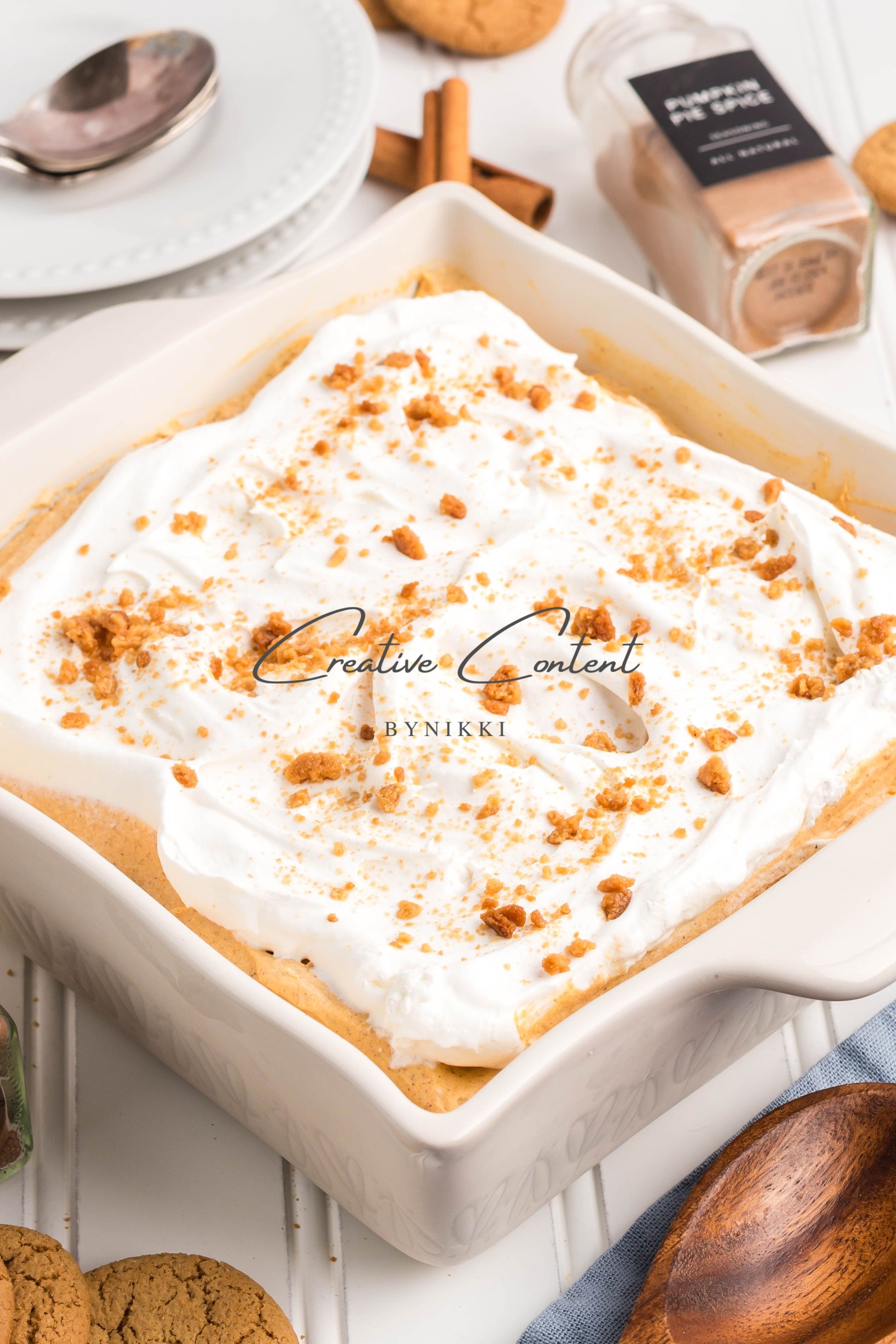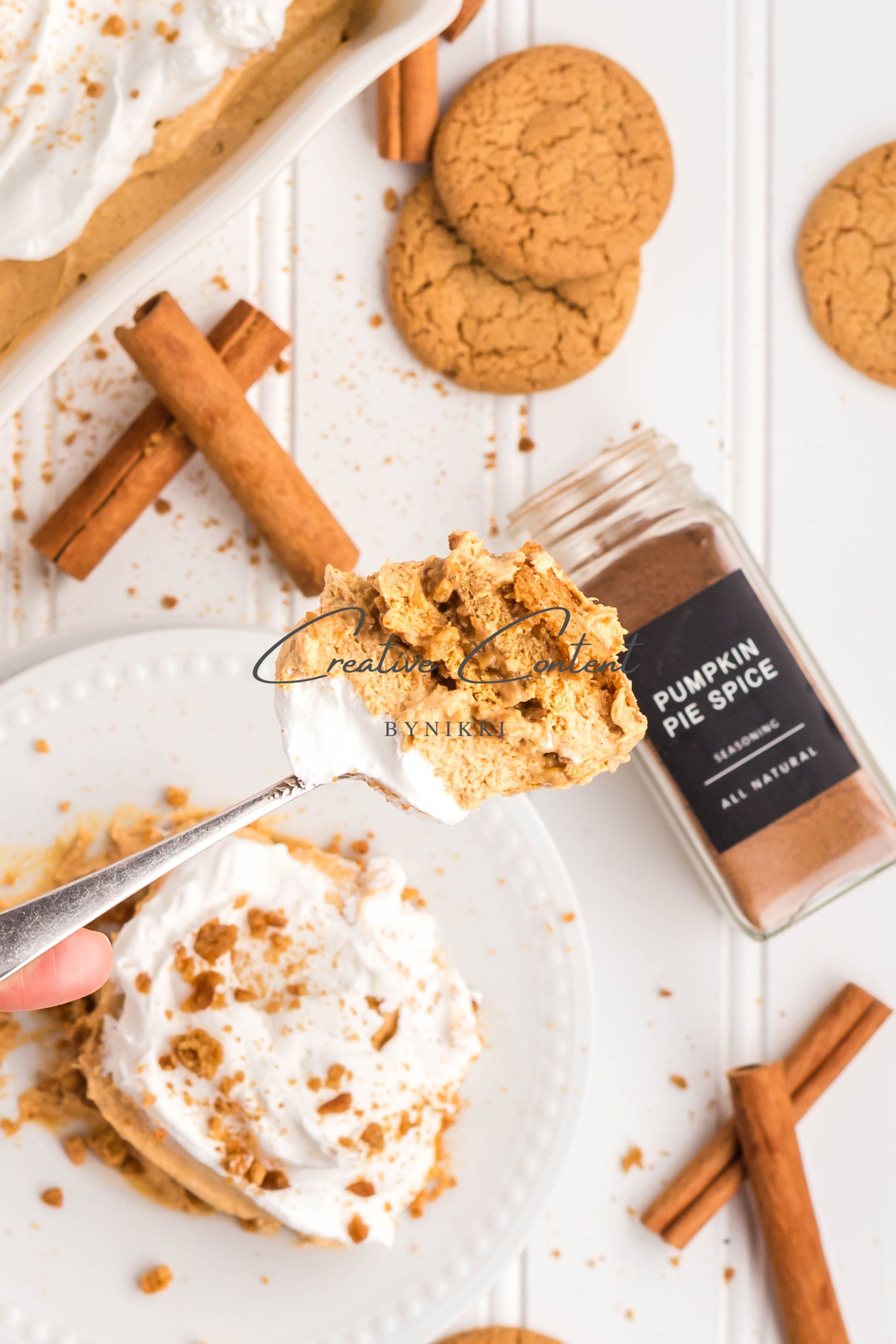 No Bake Pumpkin Icebox Cake is a simple and delicious fall dessert. It layers creamy pumpkin filling with crisp gingersnap cookies for the perfect mix of texture and flavor. This dessert comes together quickly and doesn’t require any baking, which makes it perfect for busy days.