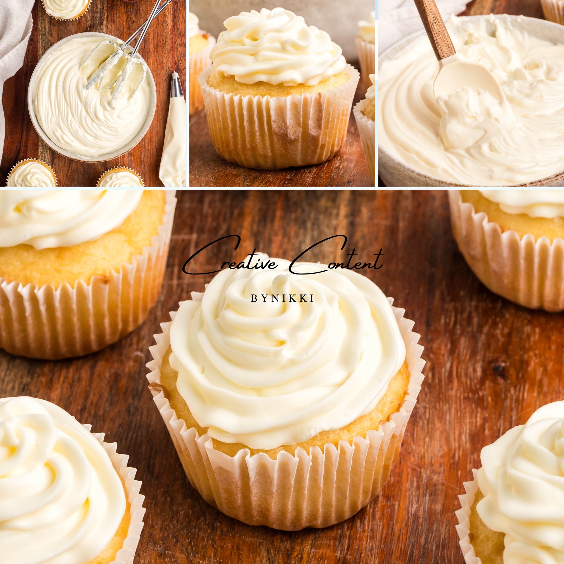- Ingredients: cream cheese, powdered sugar, vanilla extract, and heavy cream.
