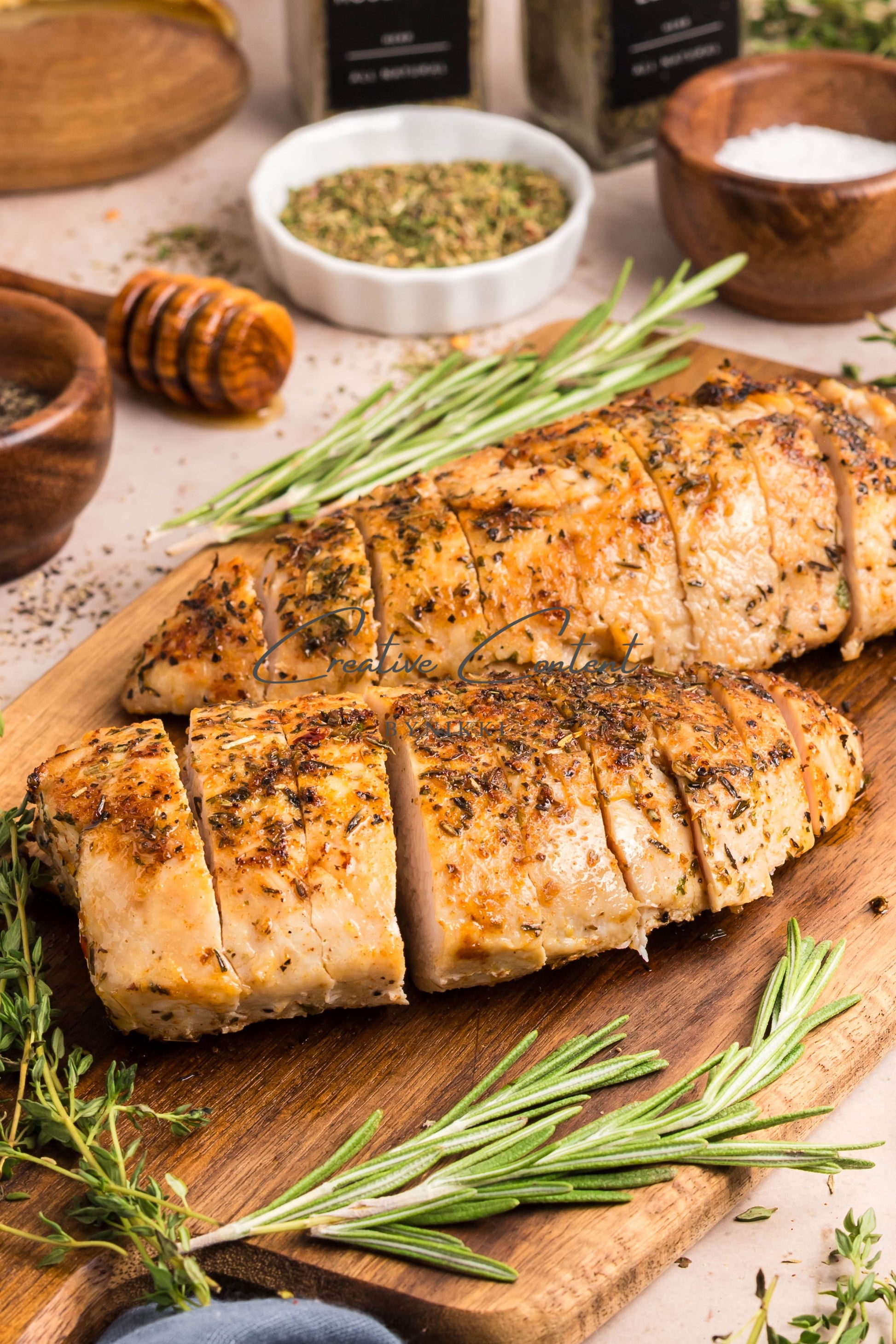 - Ingredients: Turkey breast tenderloins, avocado oil, honey, Italian seasoning, paprika, coarse kosher salt, black pepper, garlic powder, onion powder, dried thyme, dried rosemary