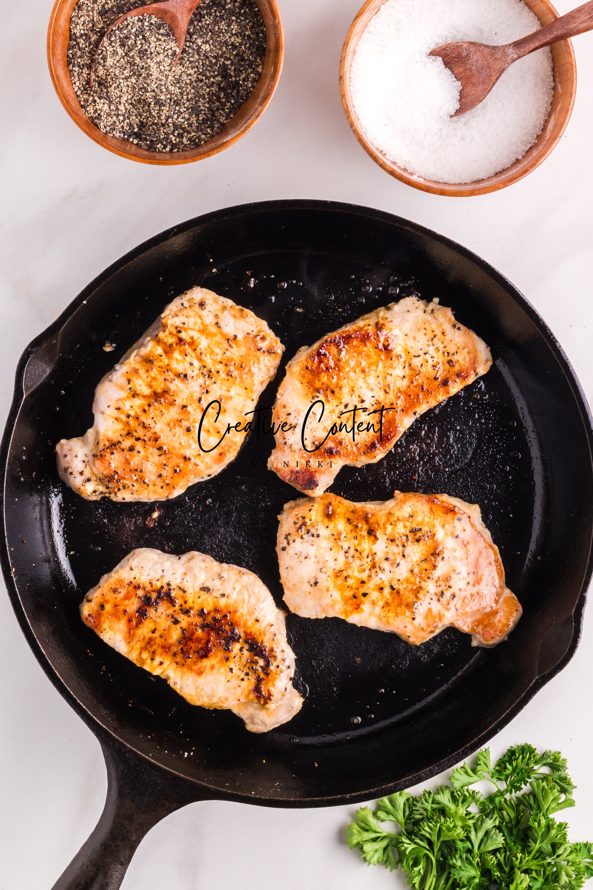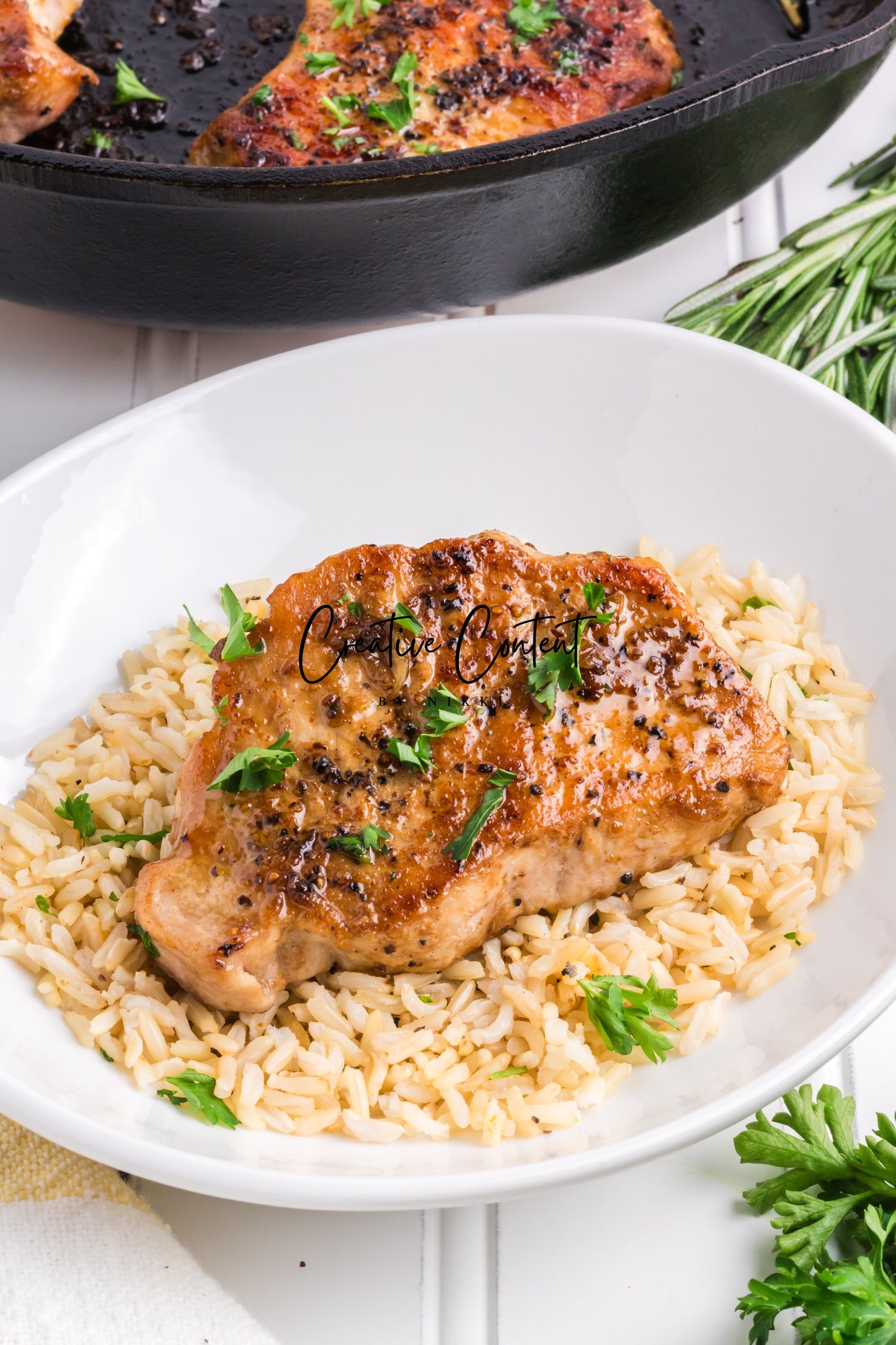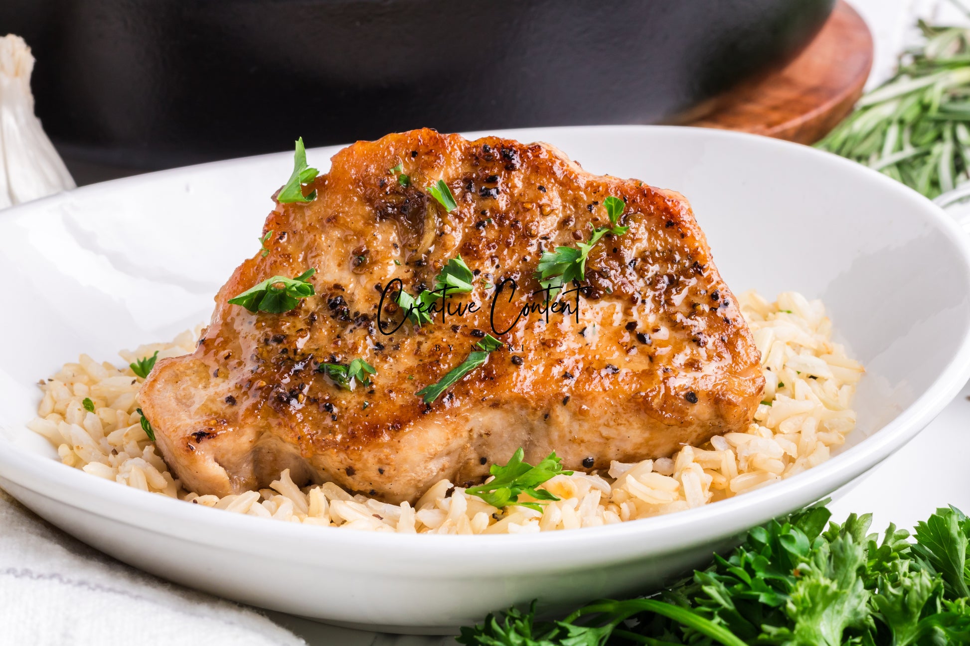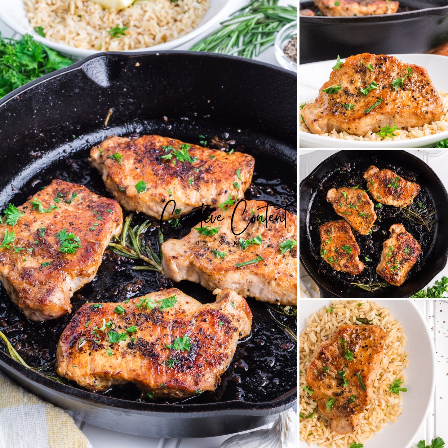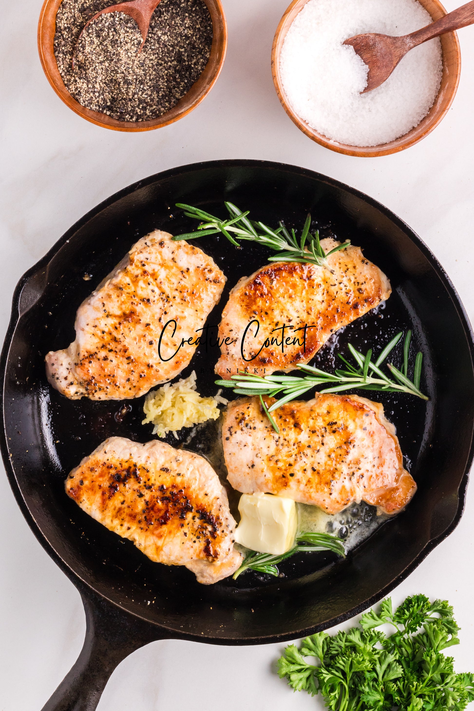 This pan seared pork chops recipe creates the most juicy, tender, and full of flavor dinner. The butter, minced garlic, and rosemary make for the perfect dinner. In just 15 minutes you will have savory juicy pork chops. This is a great dish for a busy weeknight or when you have friends over.