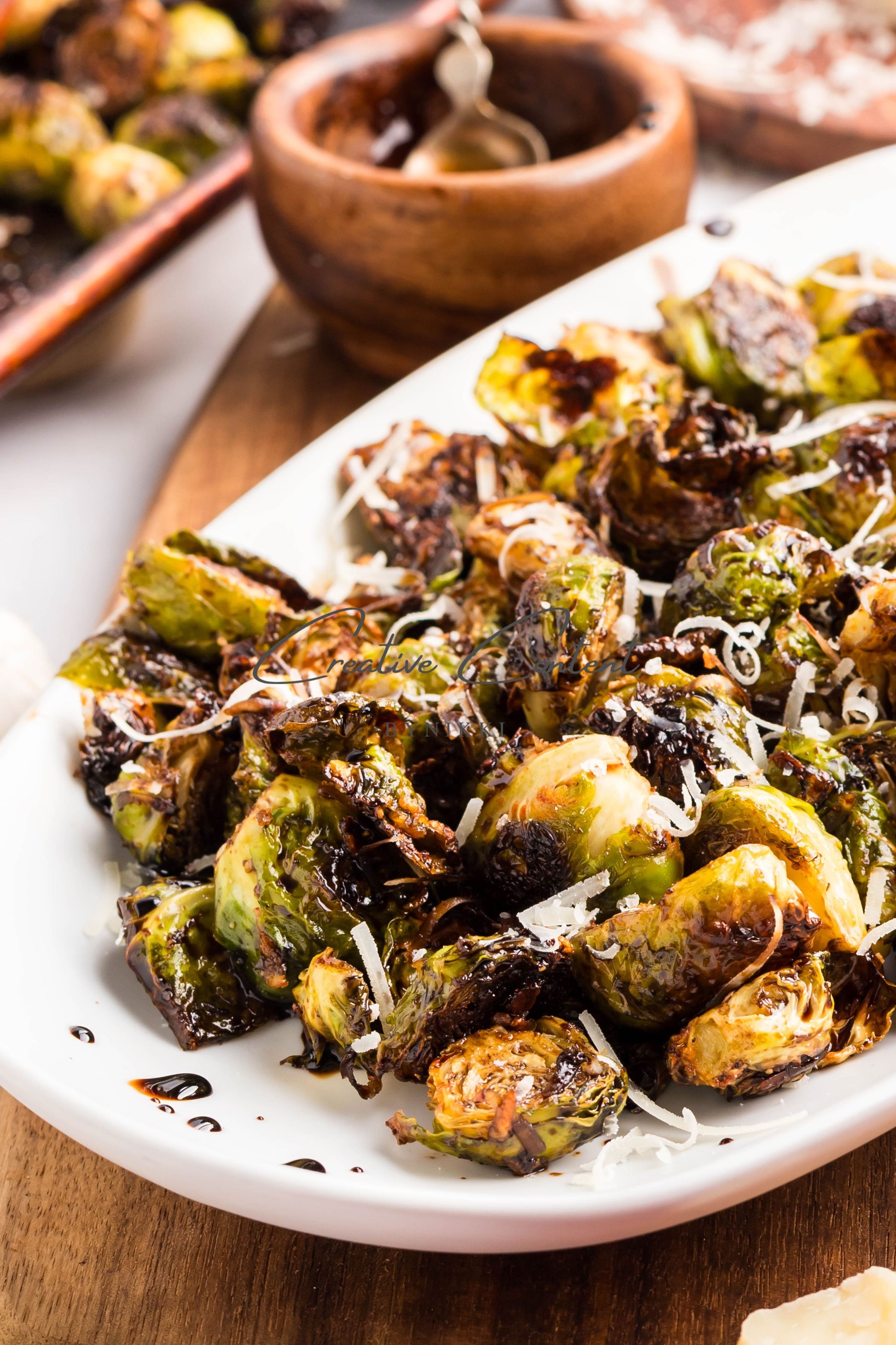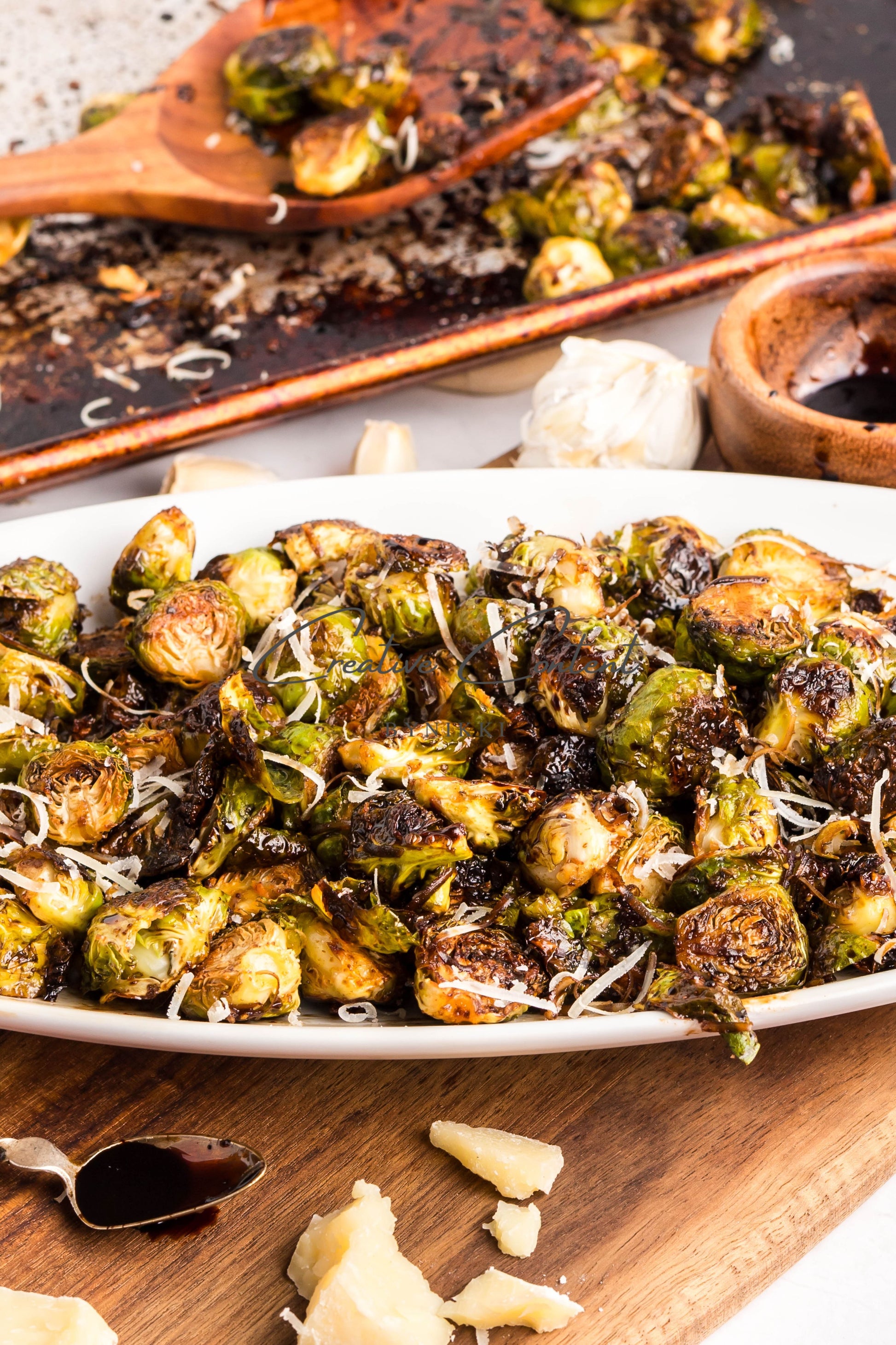 Parmesan Garlic Roasted Brussels Sprouts + Balsamic Glaze - Exclusive