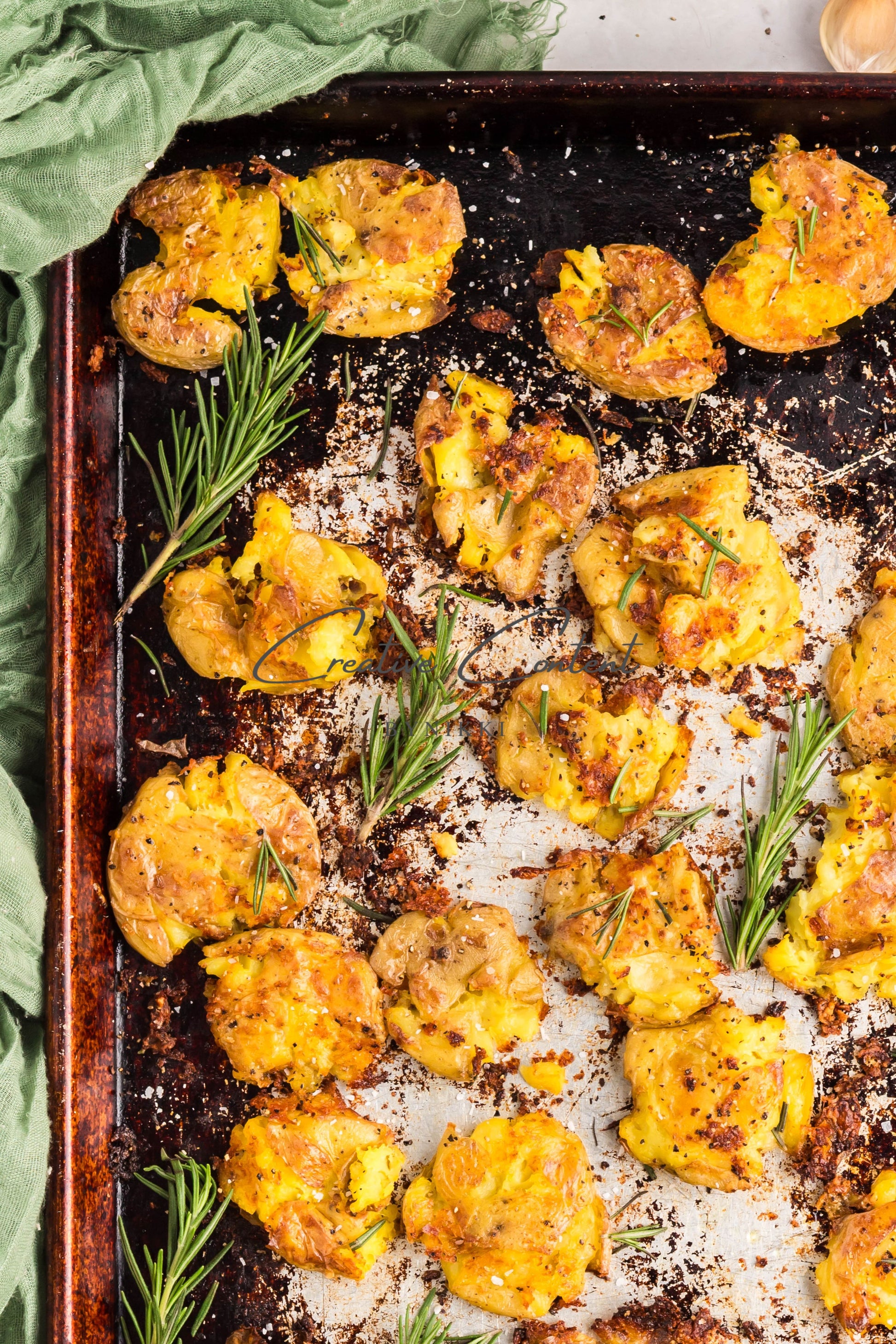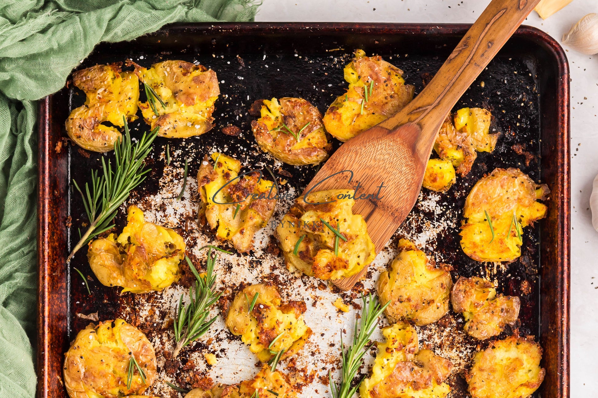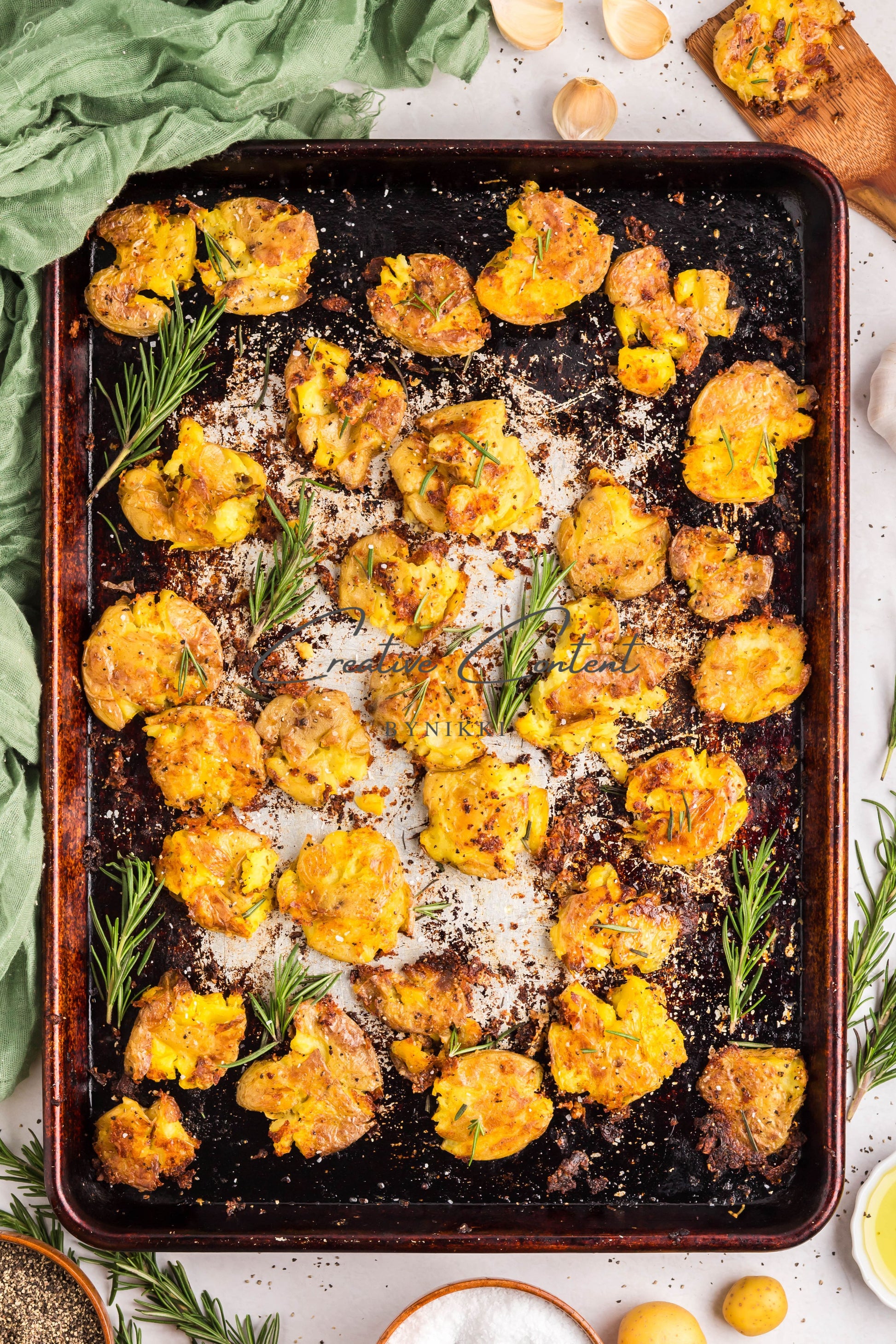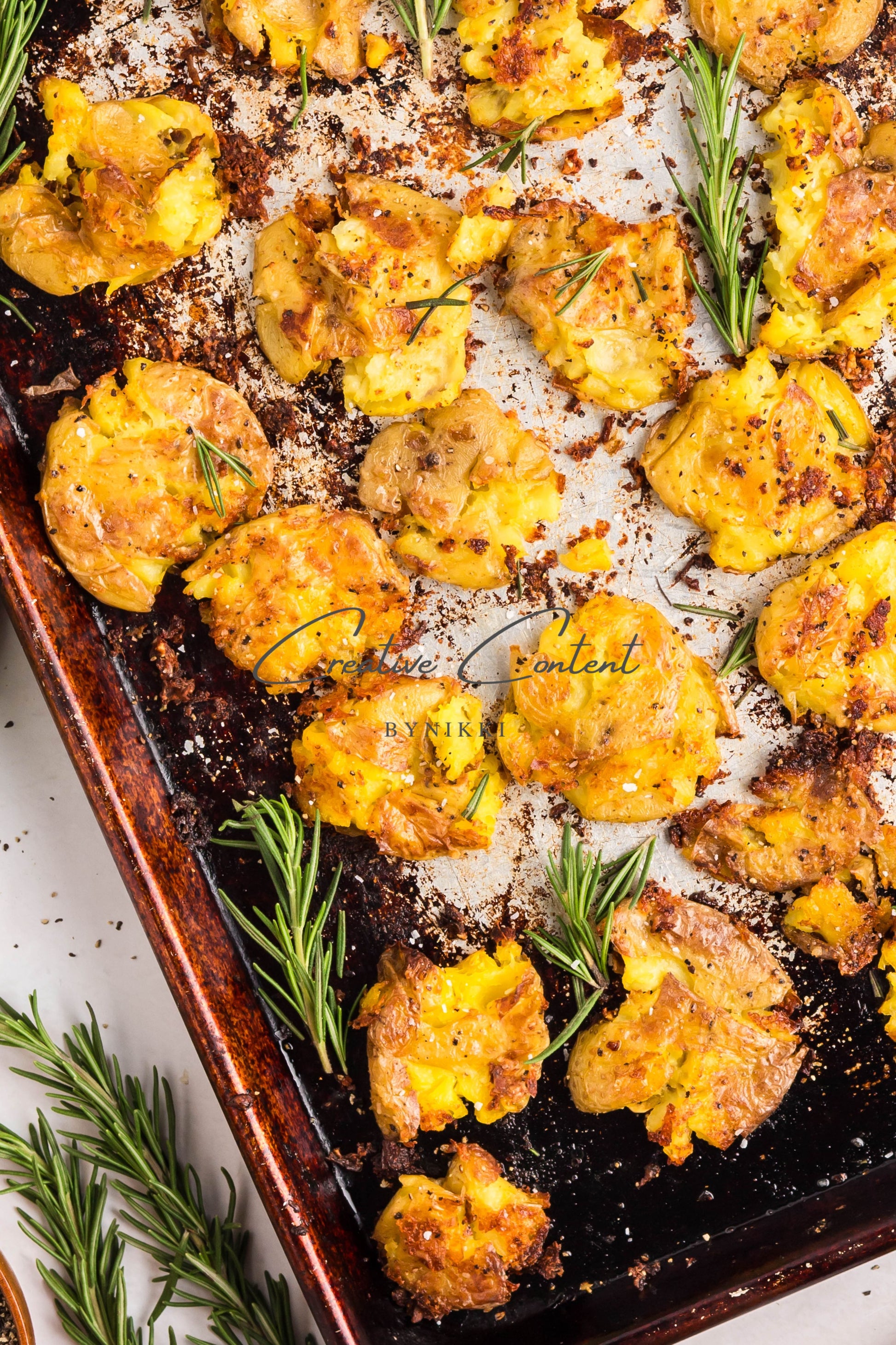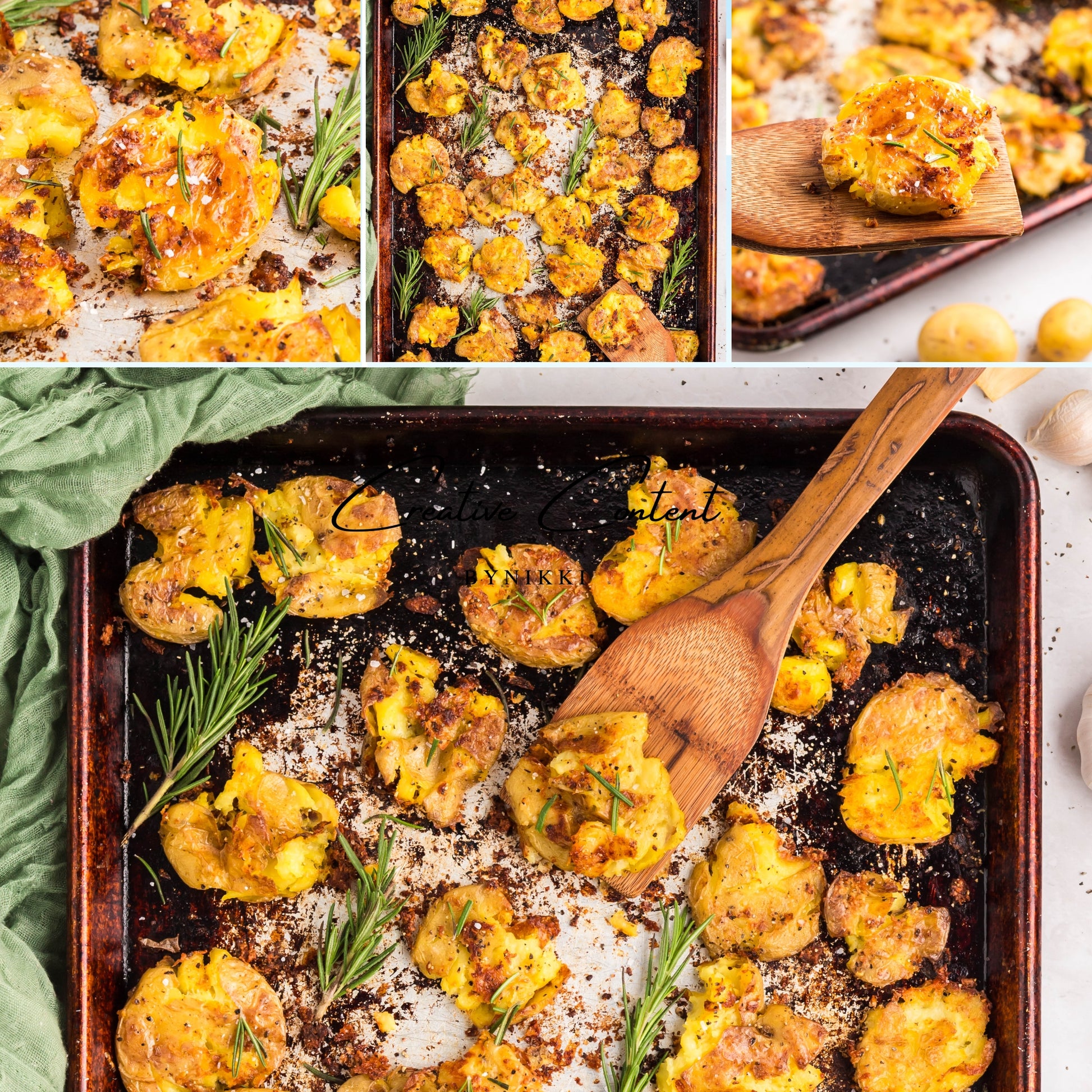 - Ingredients: baby Yukon gold potatoes, avocado oil, garlic, coarse kosher salt, black pepper, garlic powder, parmesan cheese, rosemary