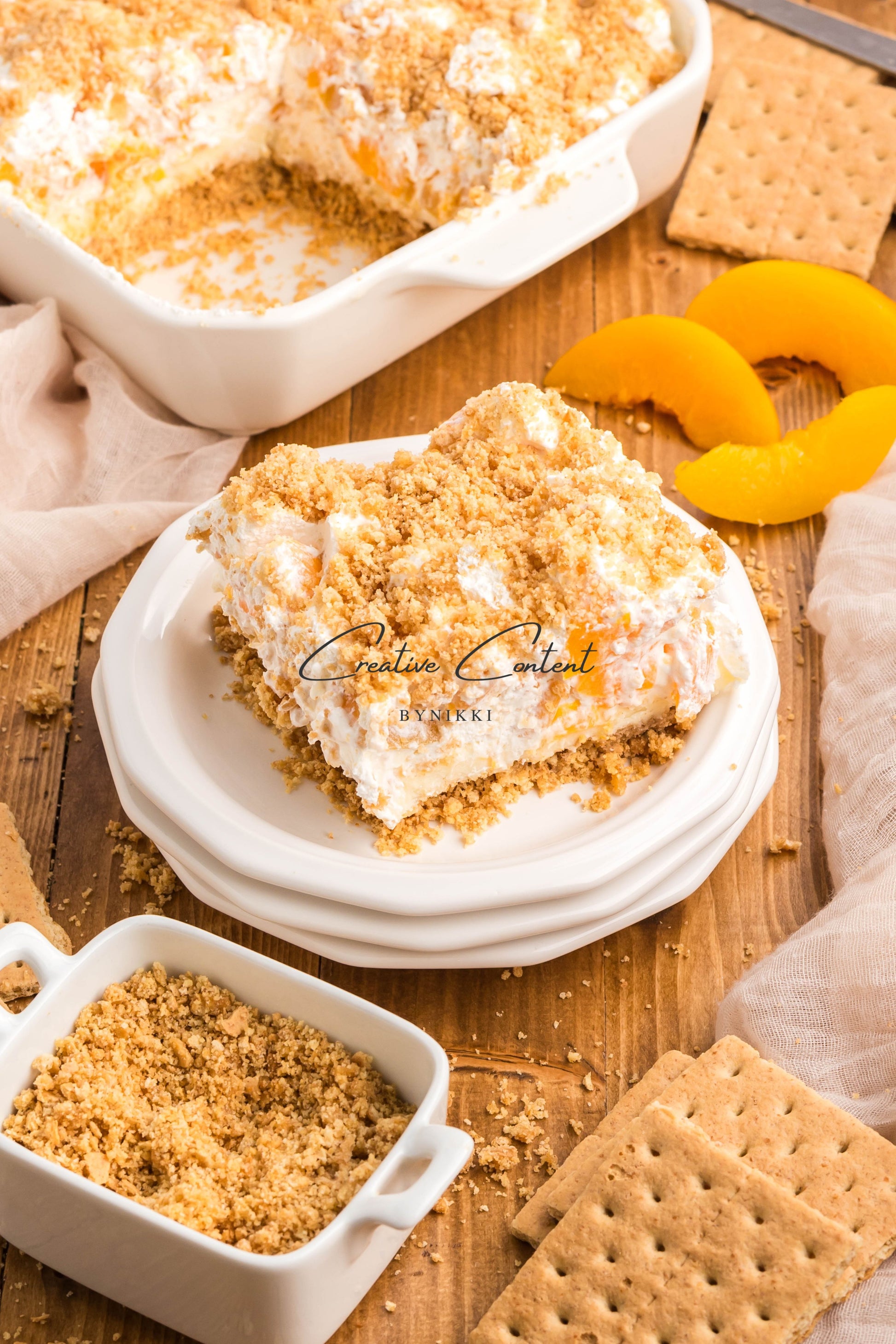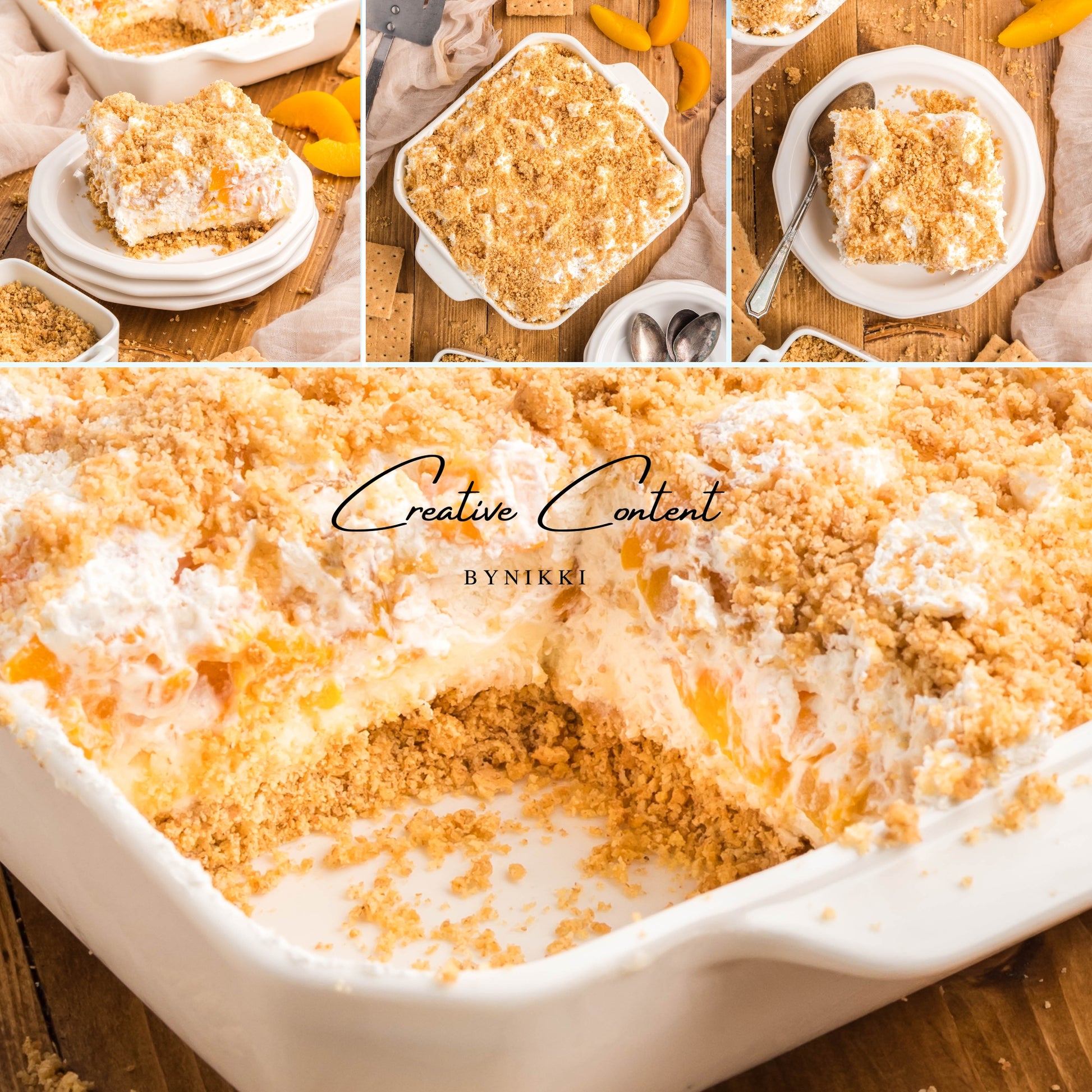This Peaches and Cream Dessert is a refreshing and indulgent treat that's perfect for any occasion. The combination of creamy layers and sweet peaches makes each bite irresistible. With a simple, no-bake setup, it's easy to prepare and comes together in no time. The graham cracker crust adds a delicious crunch that complements the smooth filling.