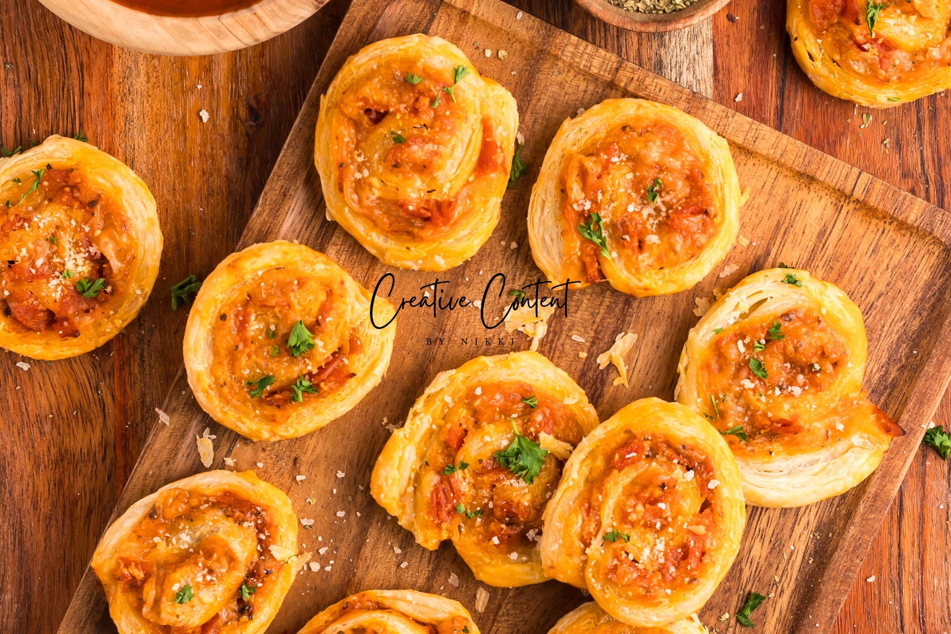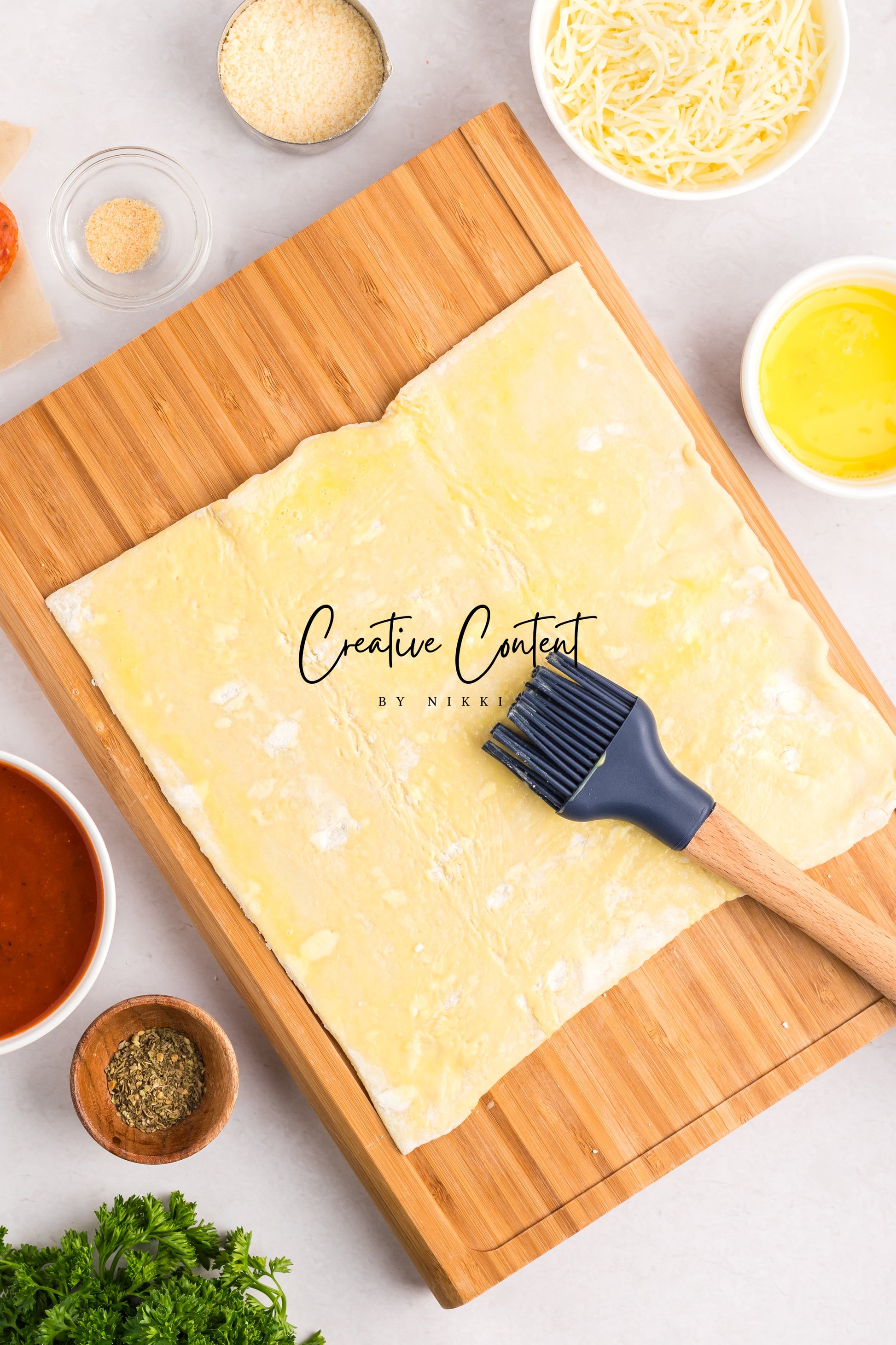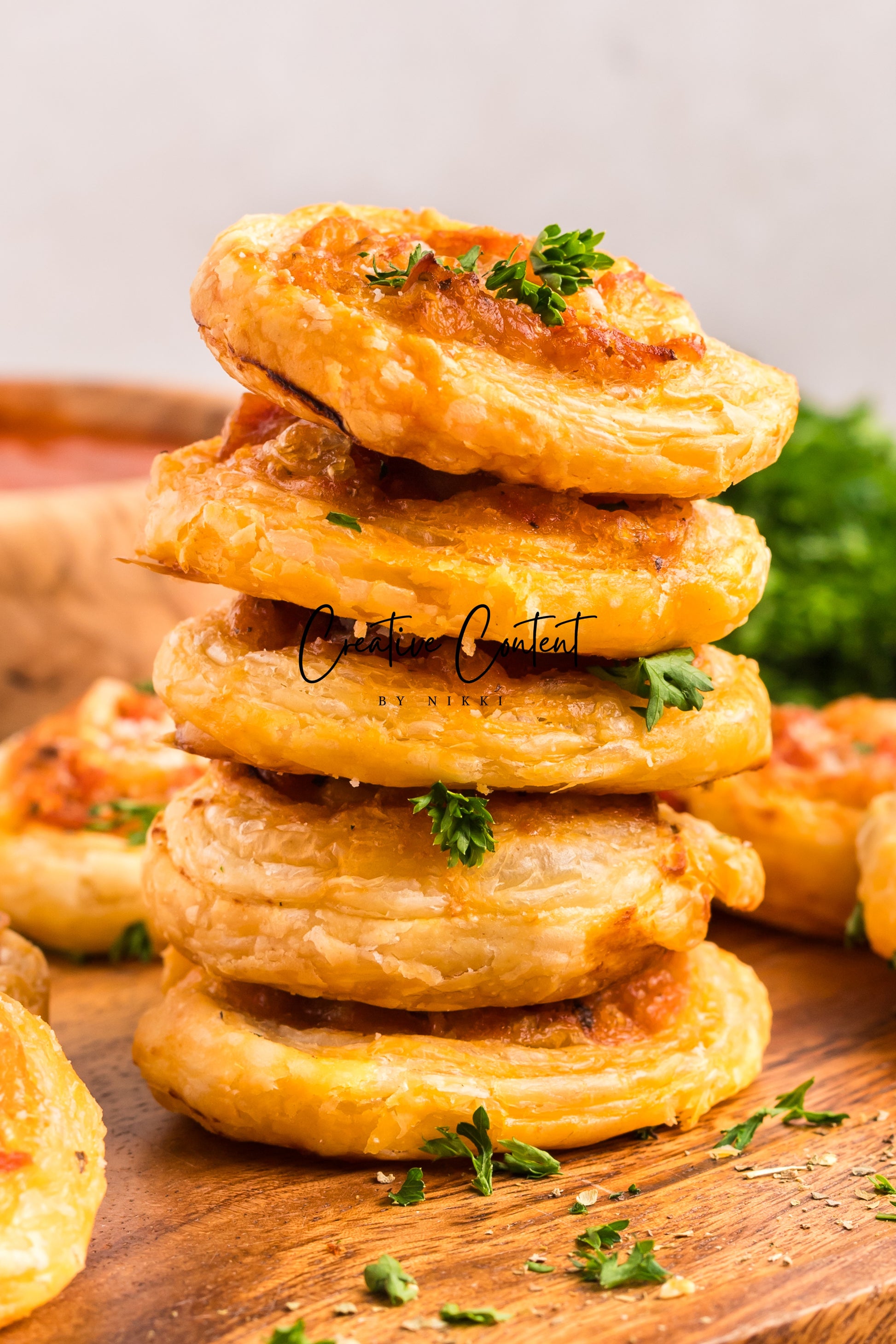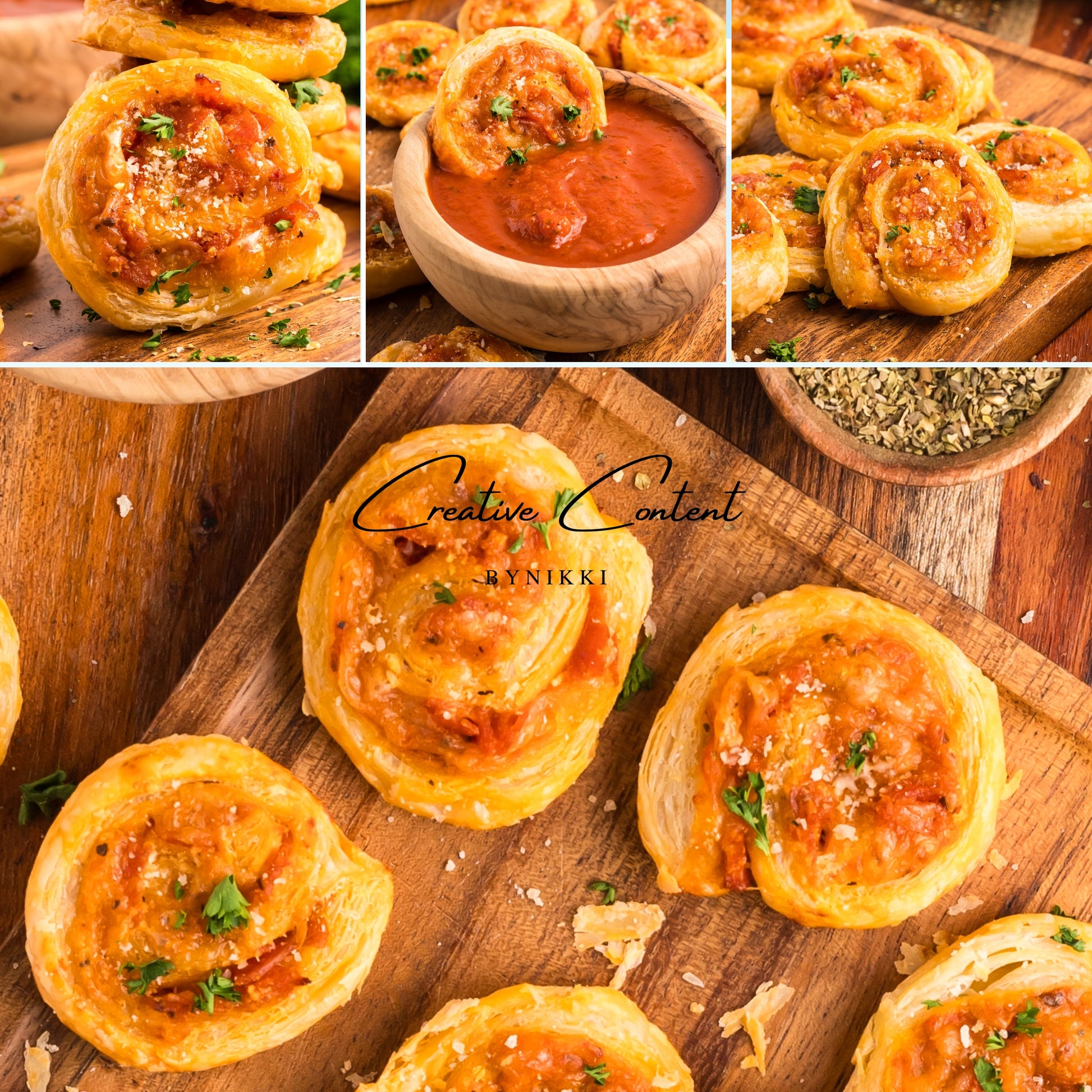 - Featured Ingredients; puff pastry, pizza sauce or marinara sauce, mozzarella cheese, pepperoni, Italian seasoning, garlic powder, avocado oil, parmesan cheese, and basil.