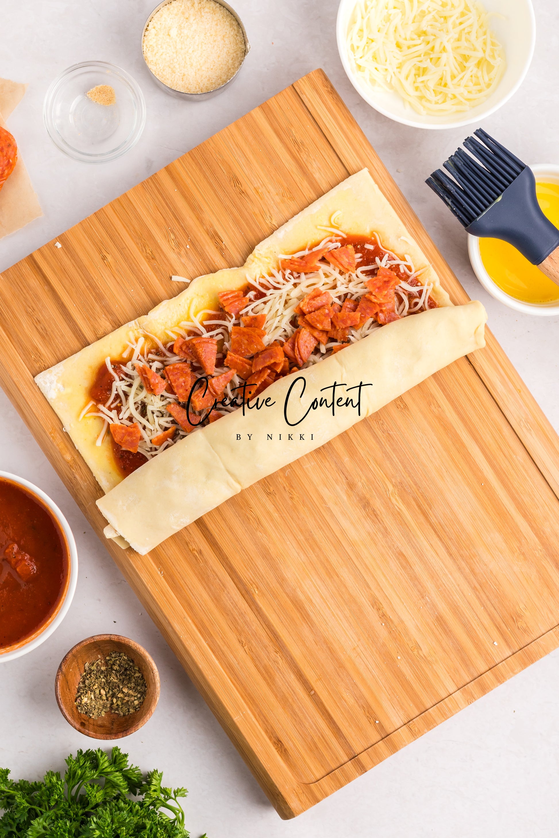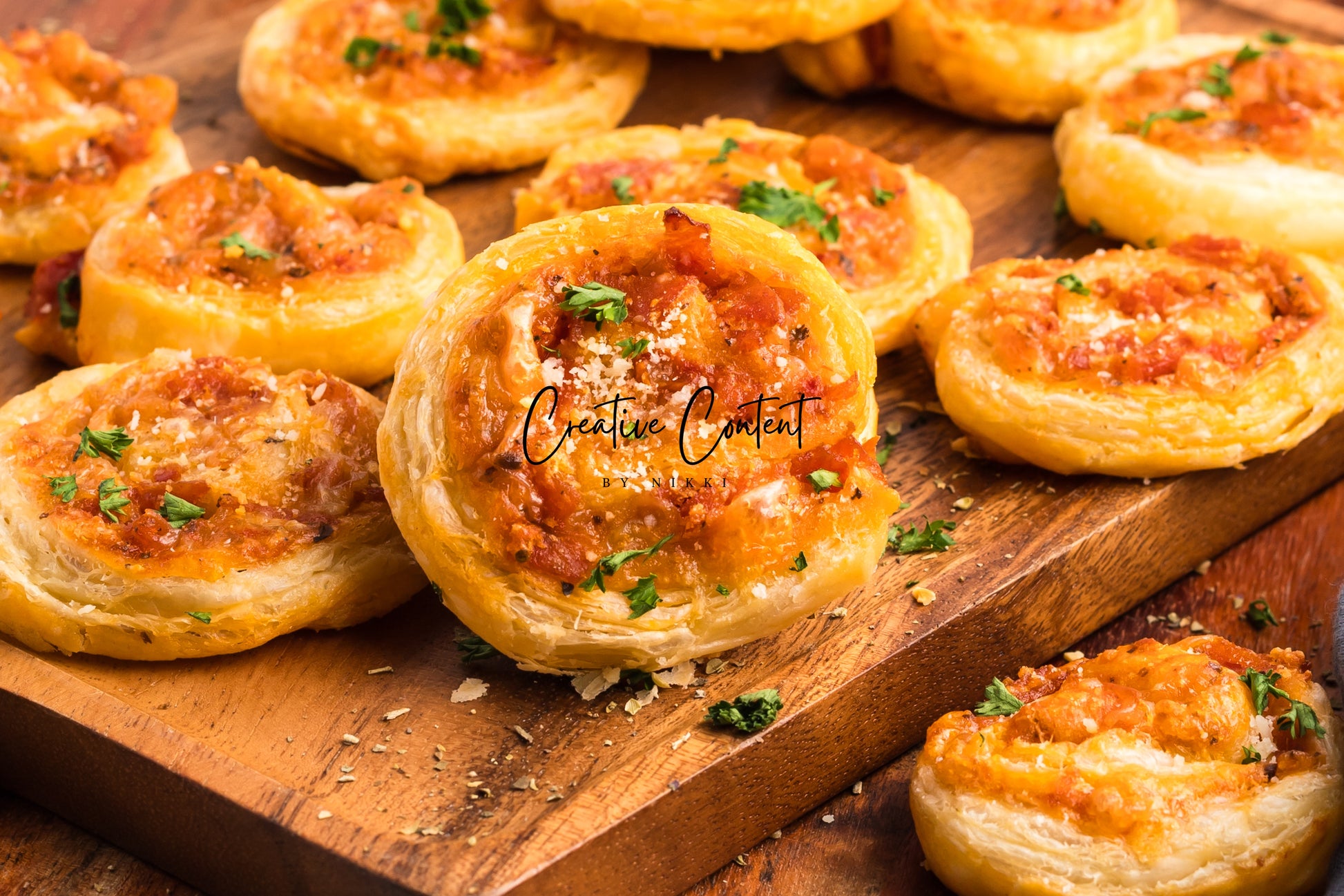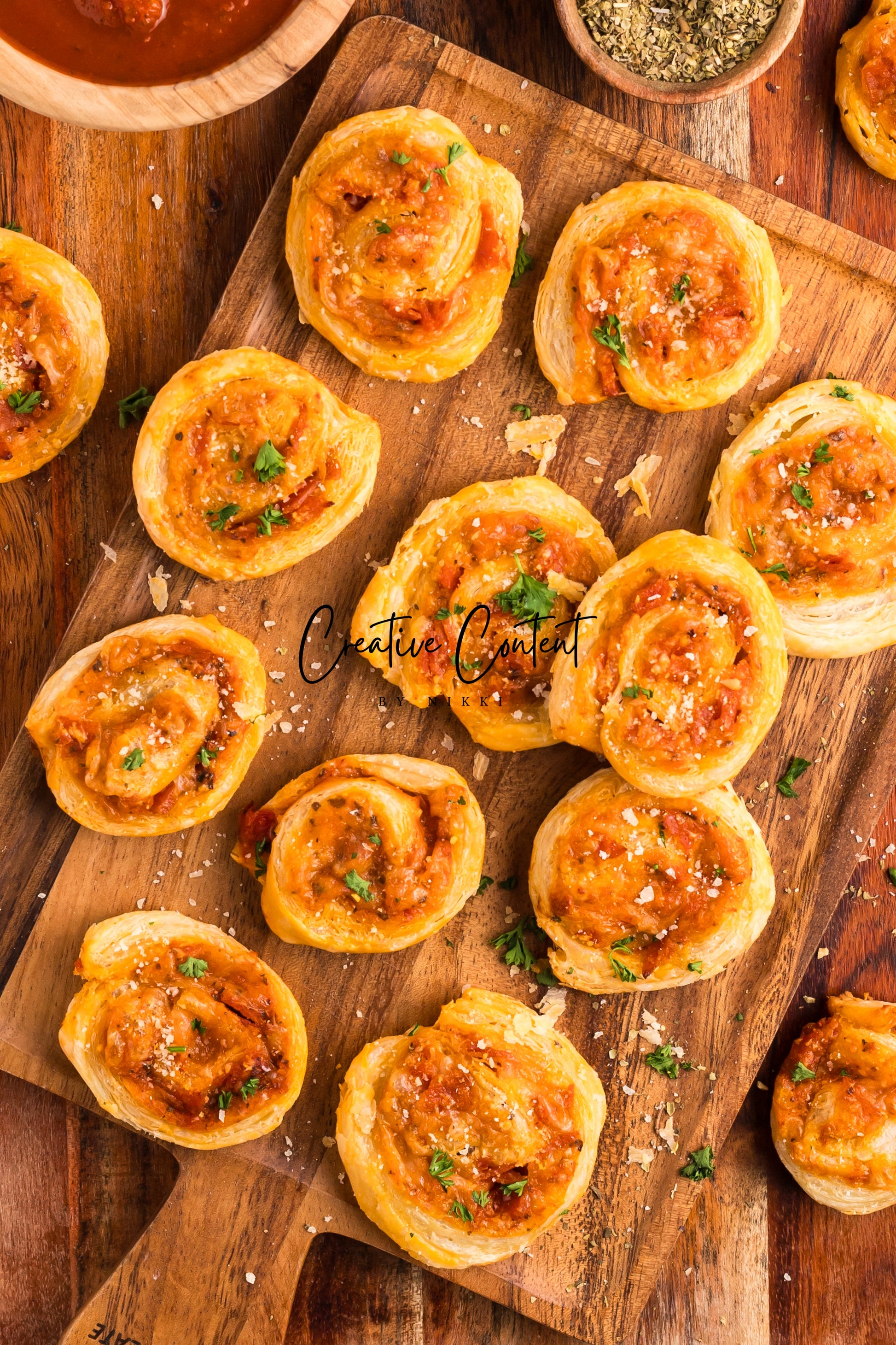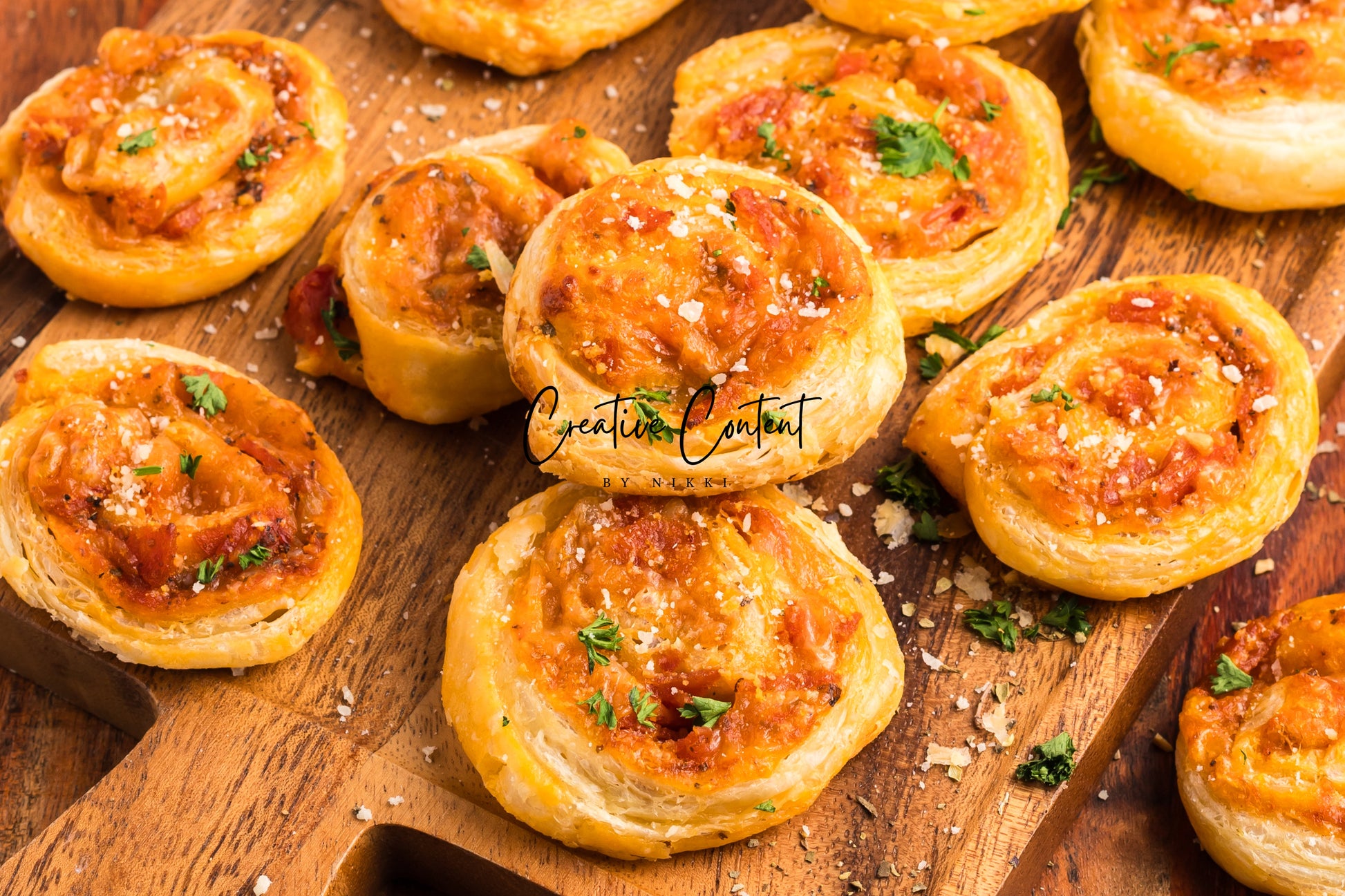 - Featured Ingredients; puff pastry, pizza sauce or marinara sauce, mozzarella cheese, pepperoni, Italian seasoning, garlic powder, avocado oil, parmesan cheese, and basil.