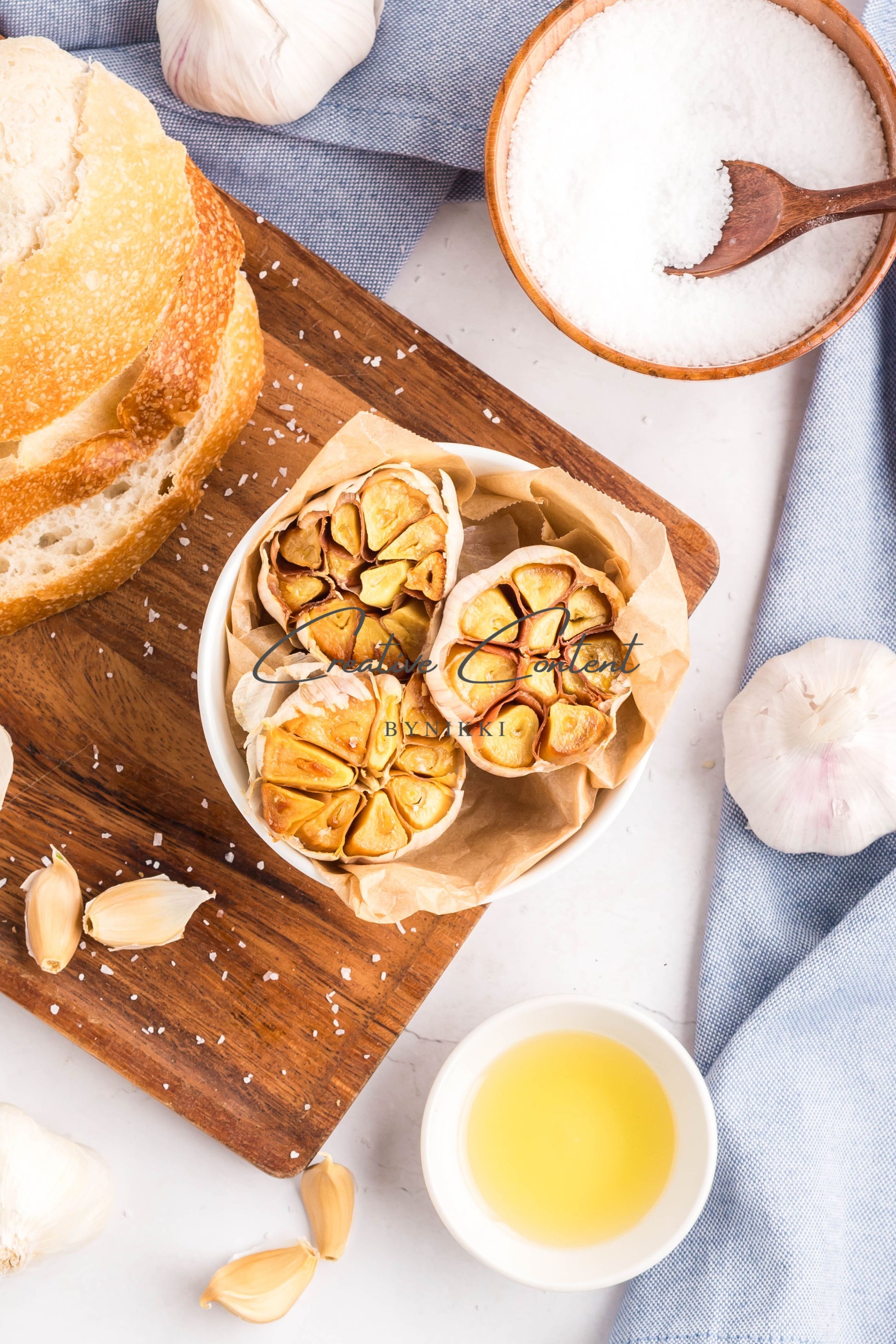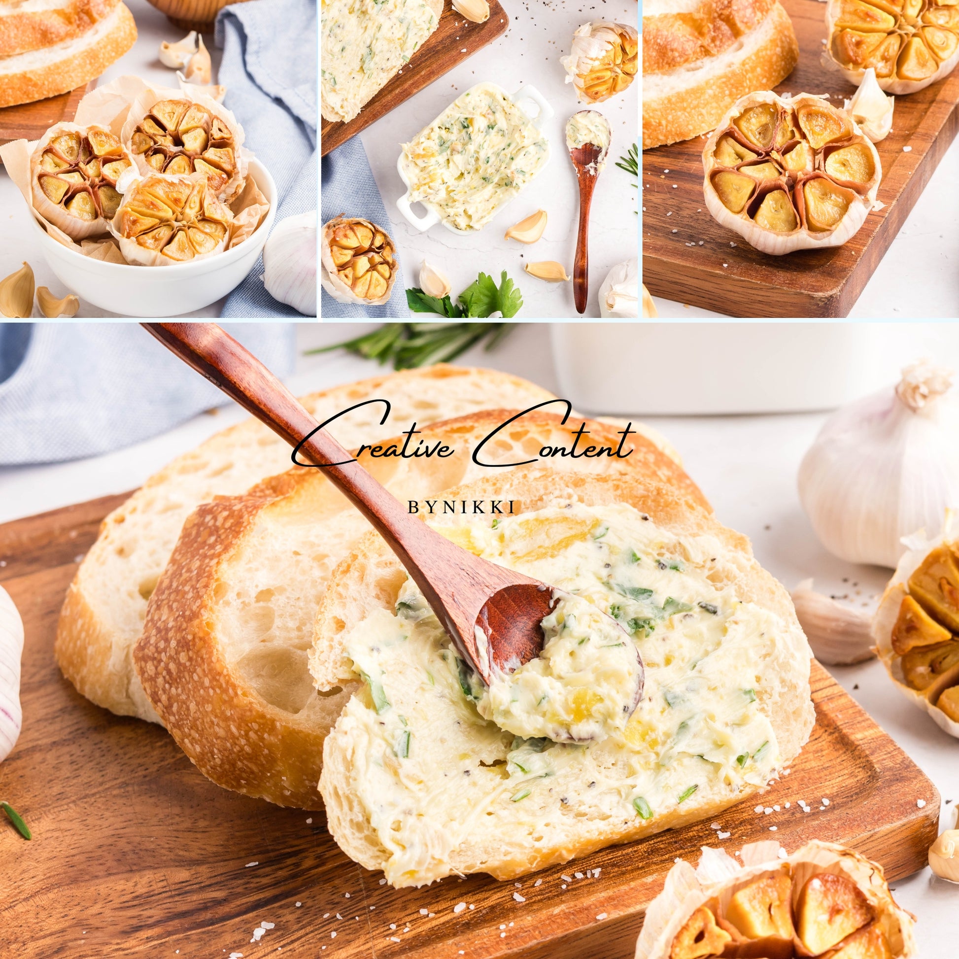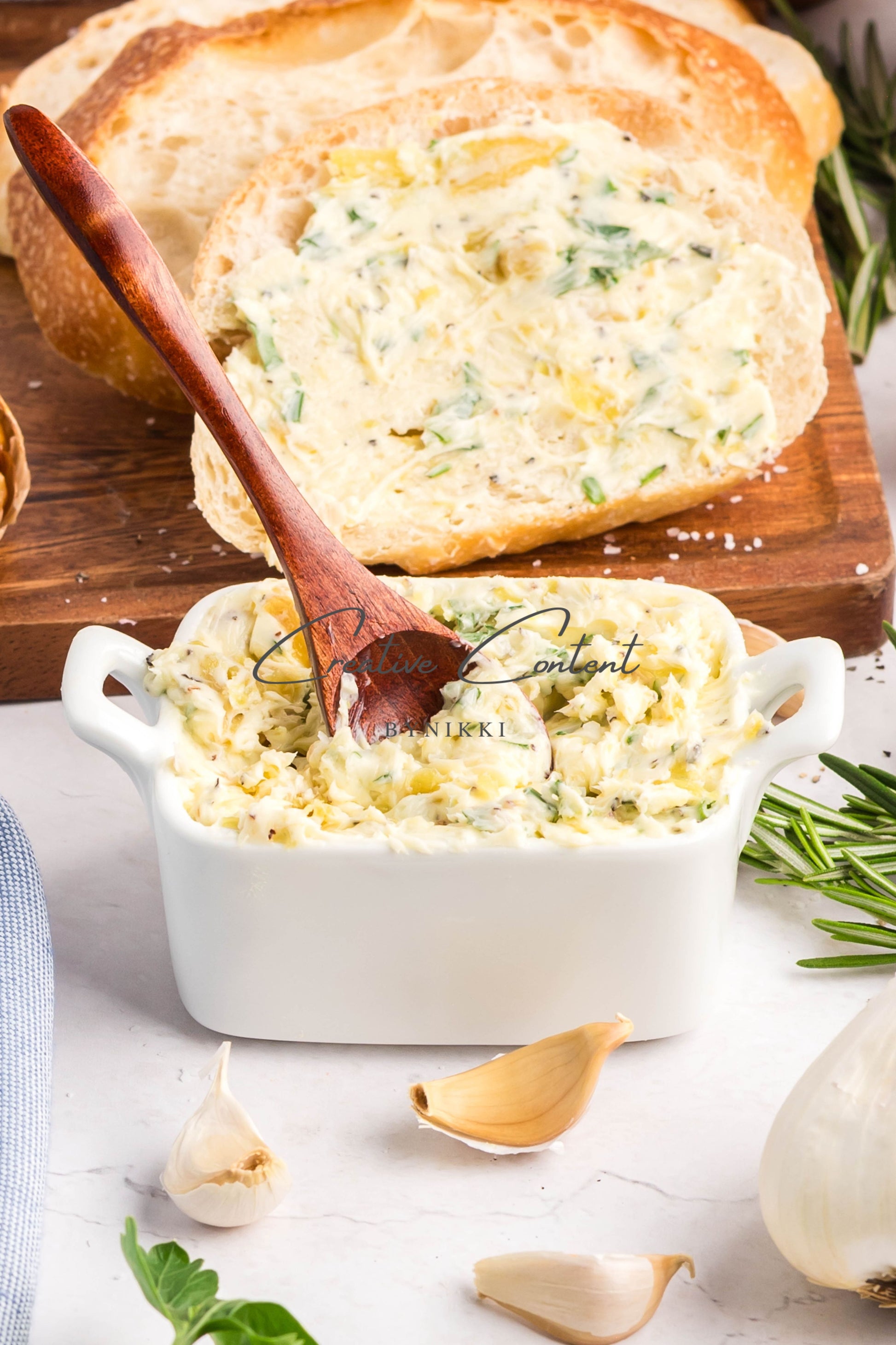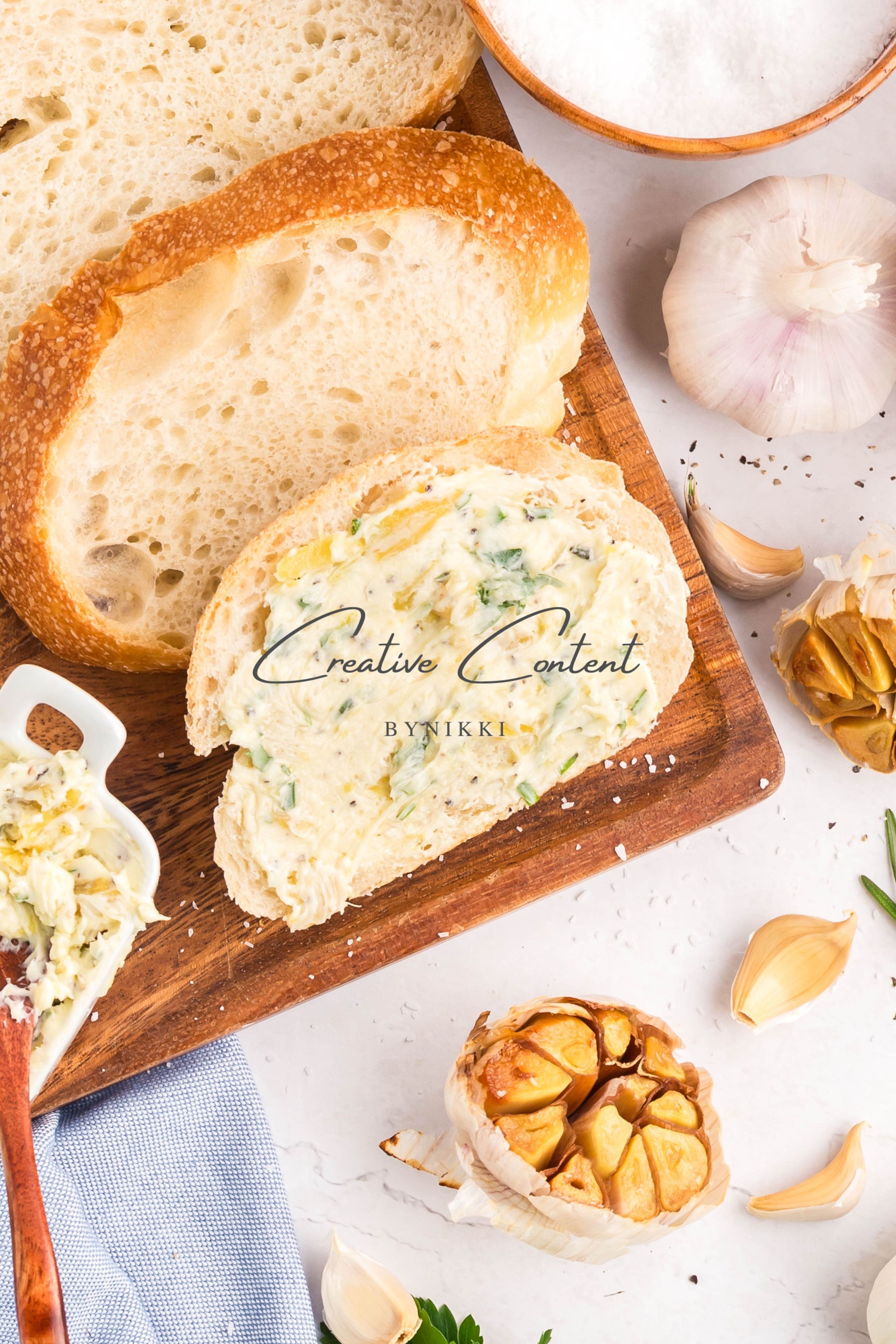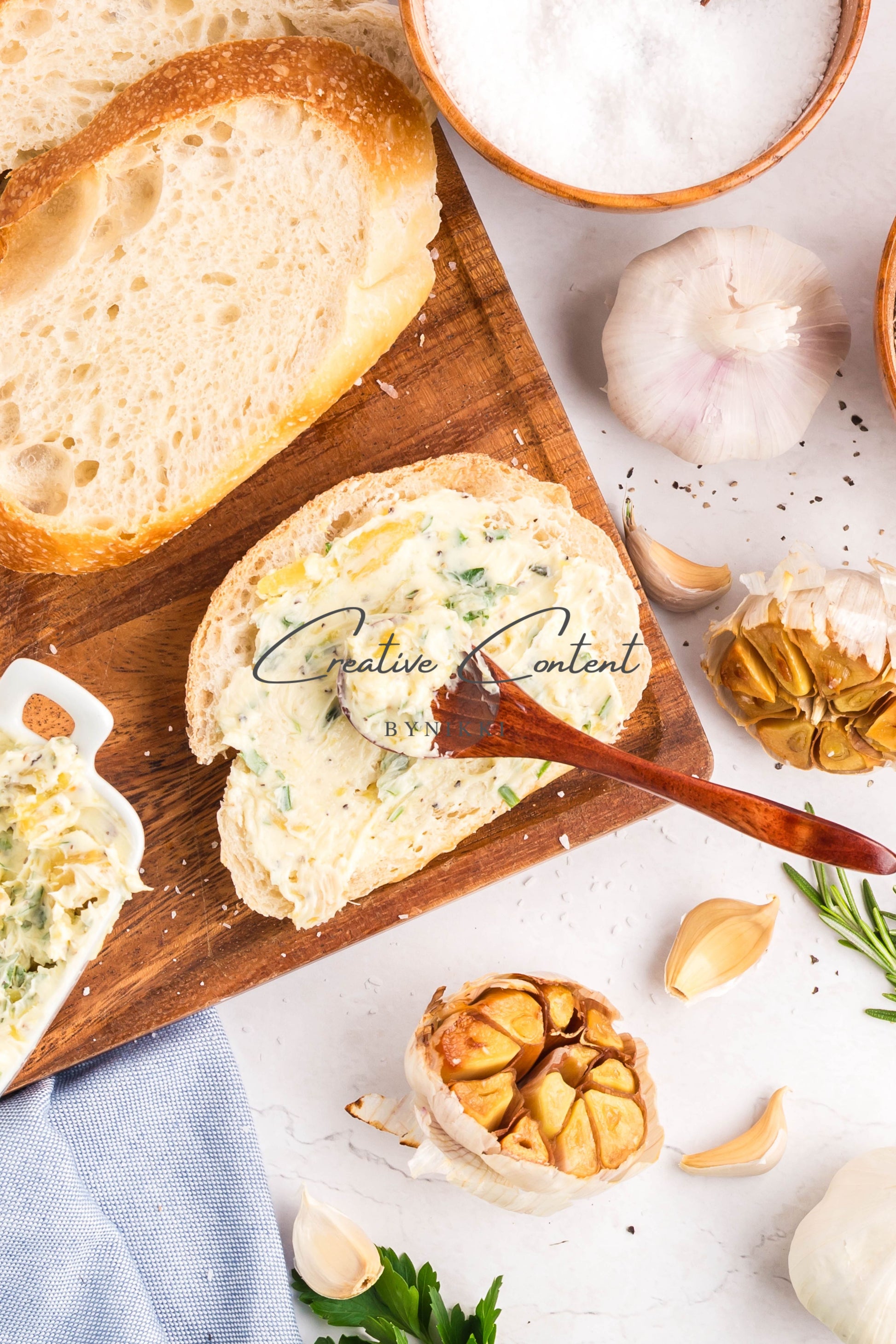 - Ingredients: garlic, avocado oil, kosher salt, butter, rosemary, chives, parsley, black pepper