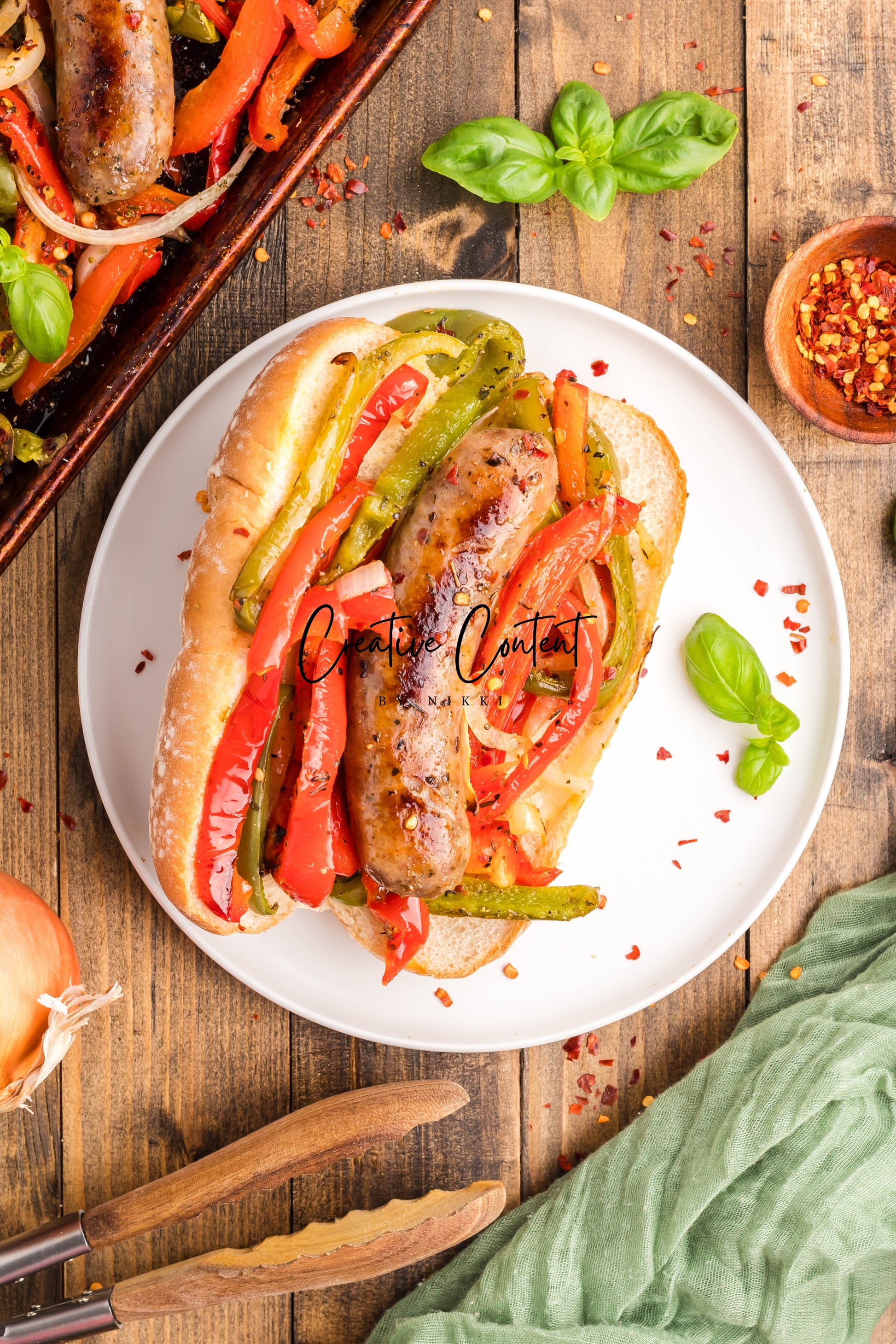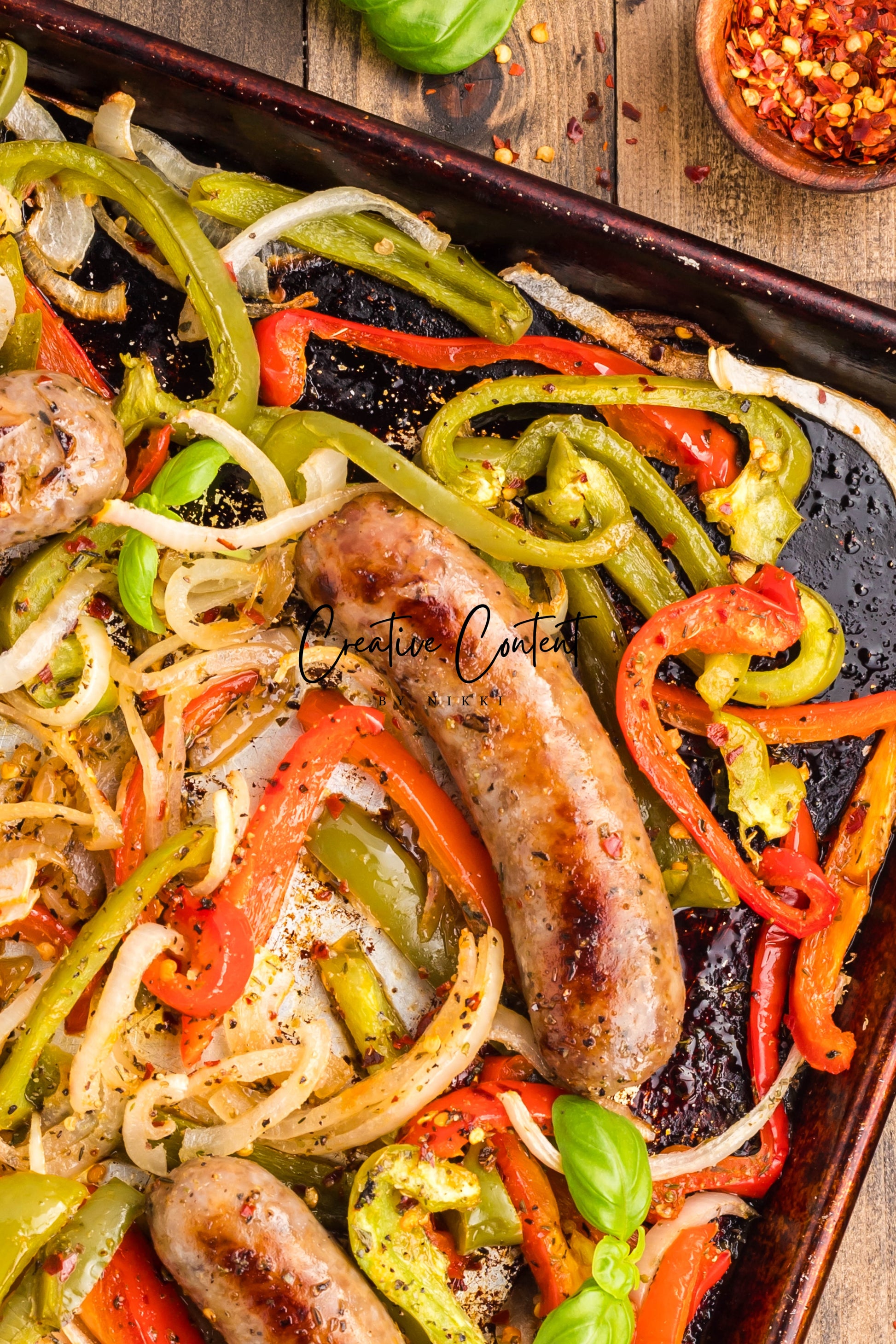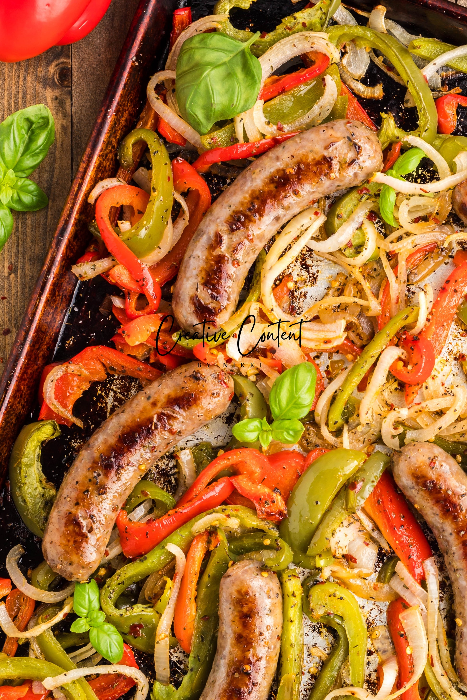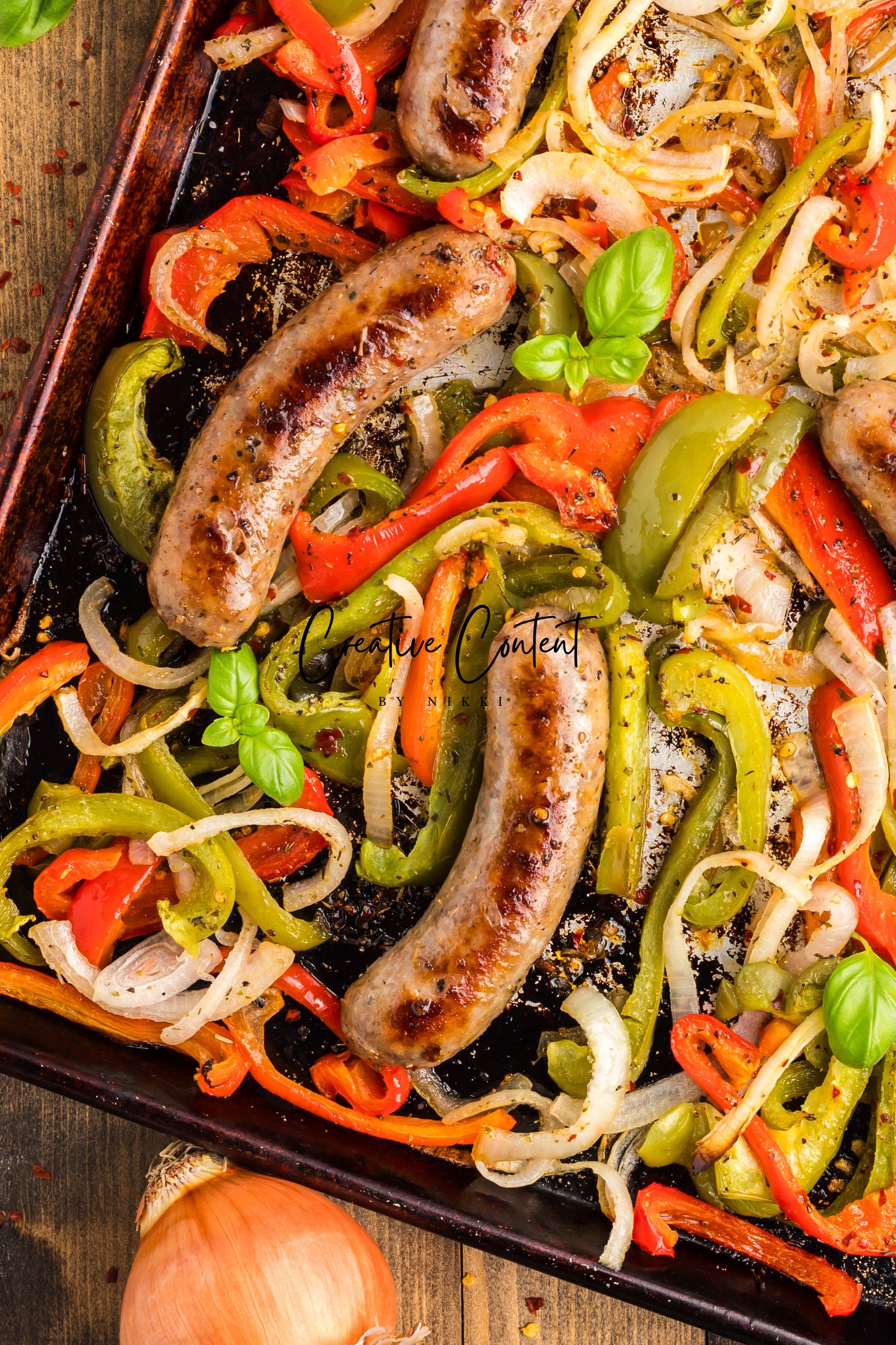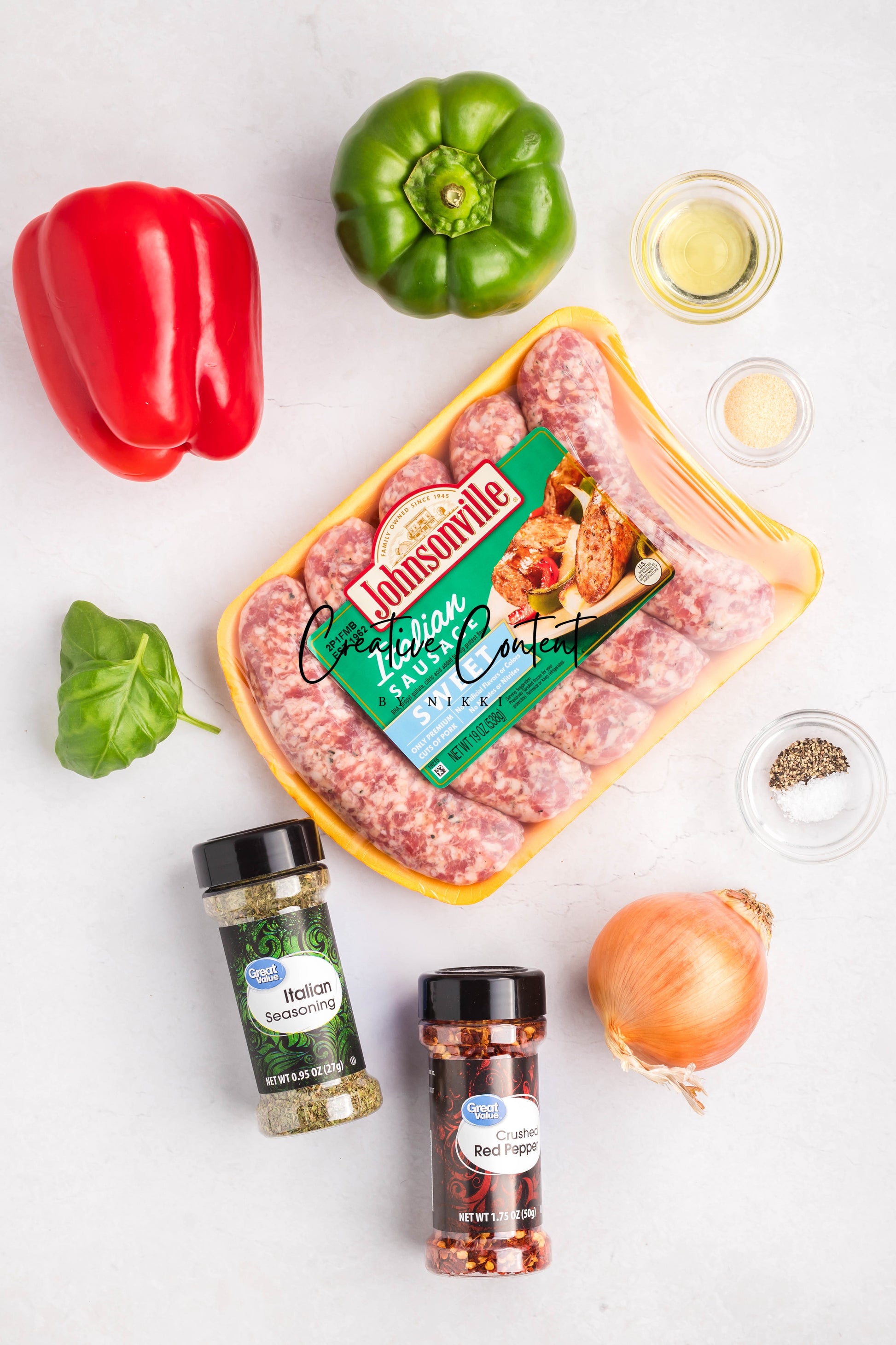 - Ingredients: Italian sausage, red bell peppers, green bell peppers, yellow onions, avocado oil, Italian seasoning, red pepper flakes, kosher salt, black pepper