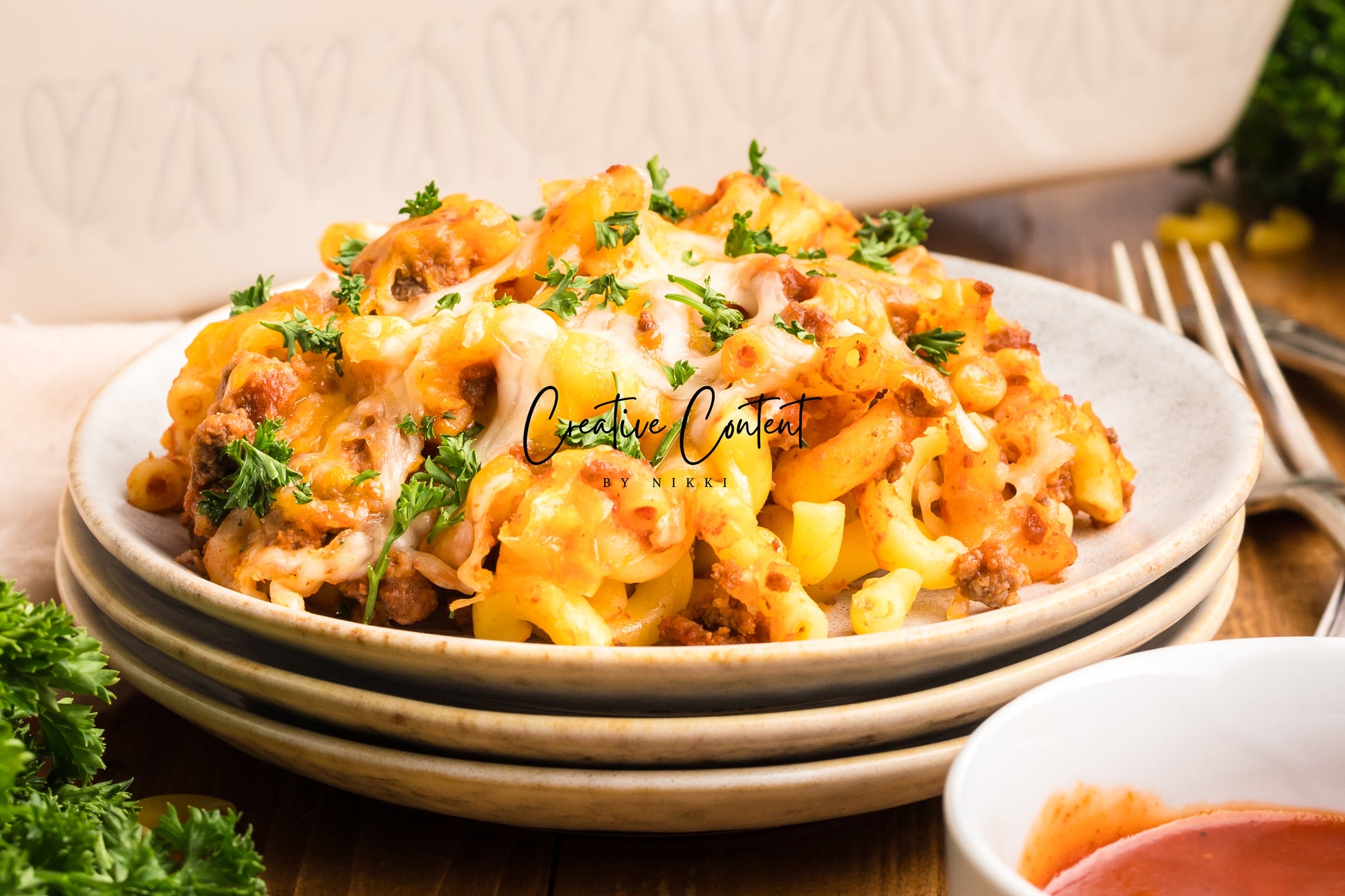This Sloppy Joe Casserole is an easy dish made with the all time favorite Manwich sauce. The flavors of the Manwich and the pasta is a great twist over a sandwich. This is a savory dish with loads of cheese. The hearty dish is one that will be loved by all. This is a great dish to make for a busy weekday night.
