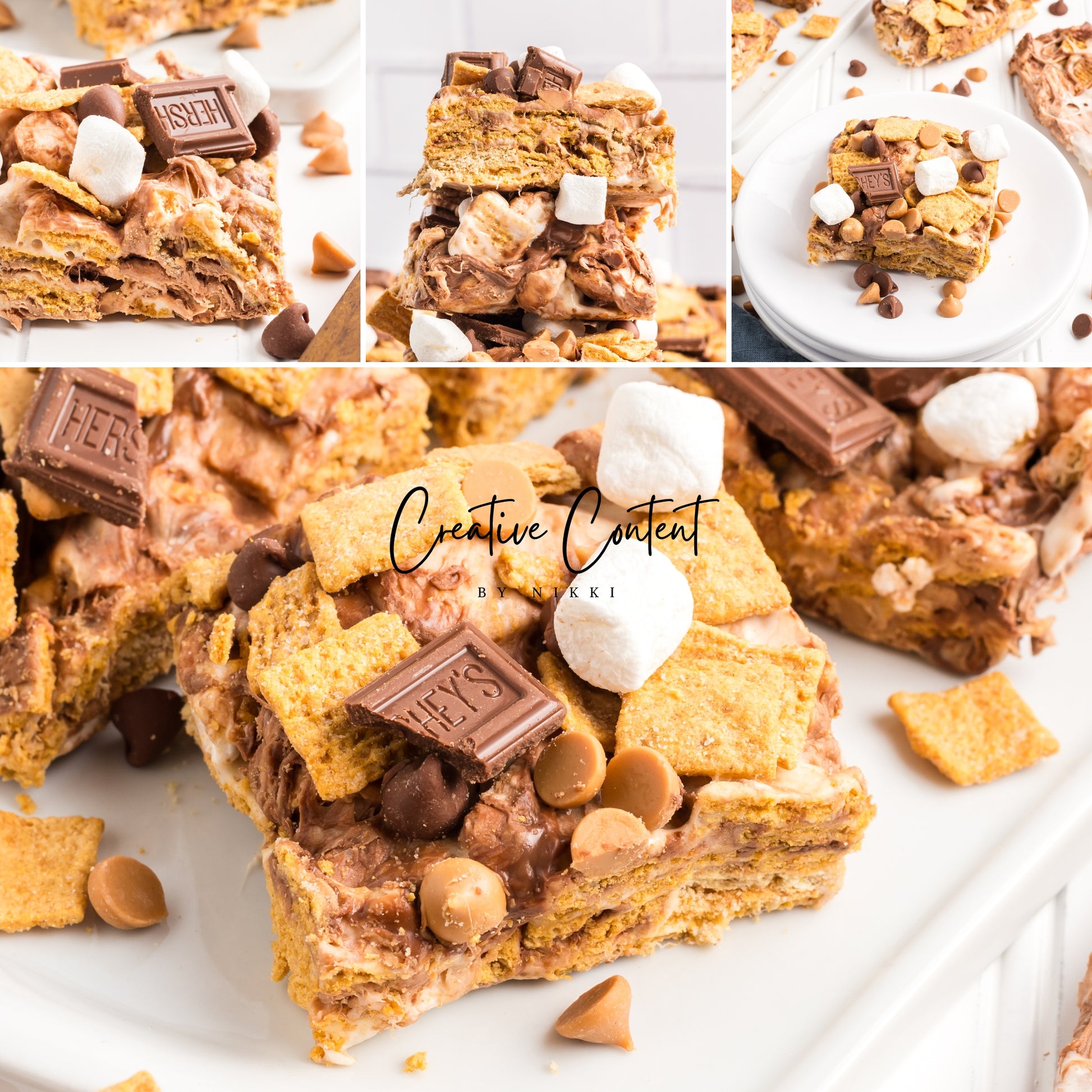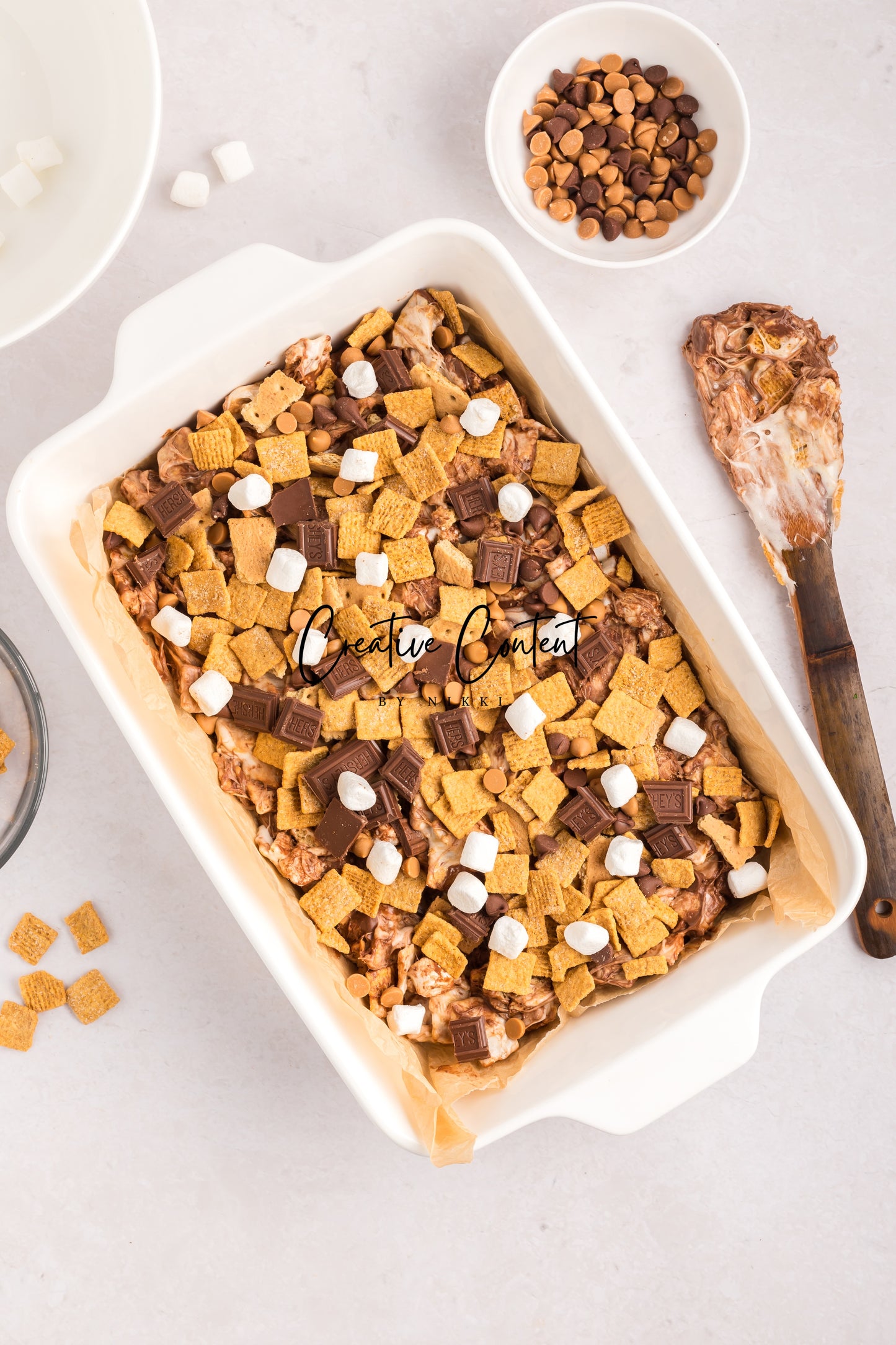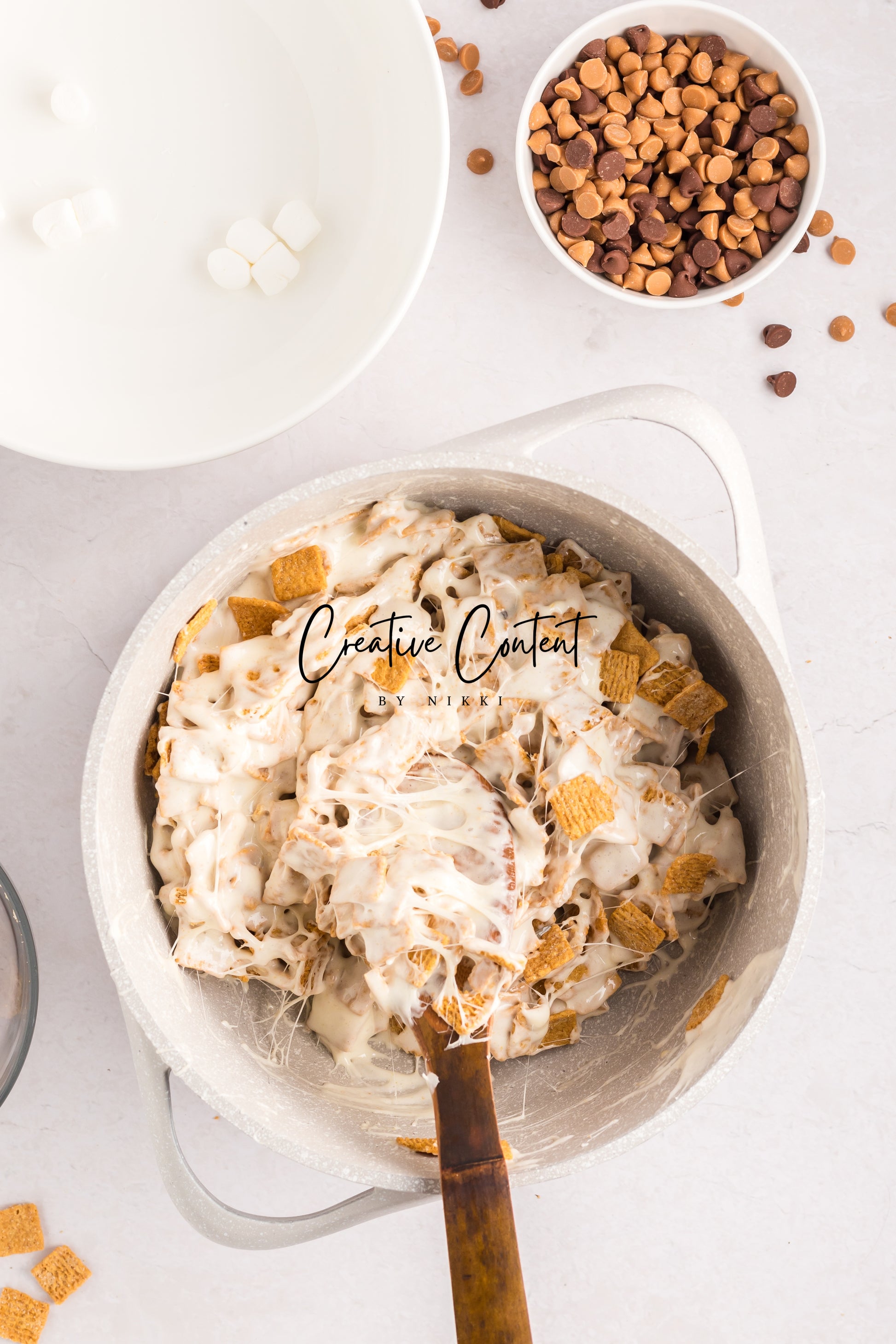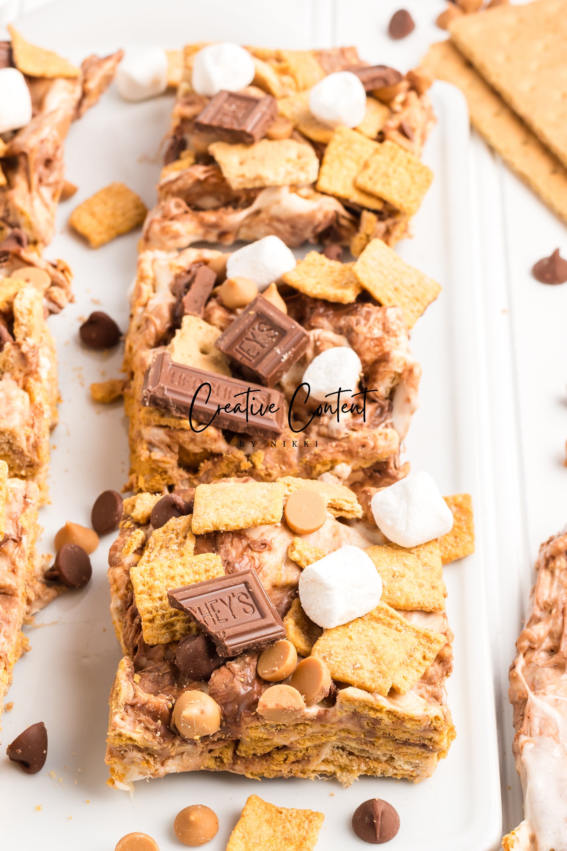 - Featured Ingredients; salted butter, mini marshmallows, Golden Grahams Cereal, graham crackers, Hershey bars, and chocolate and peanut butter chips