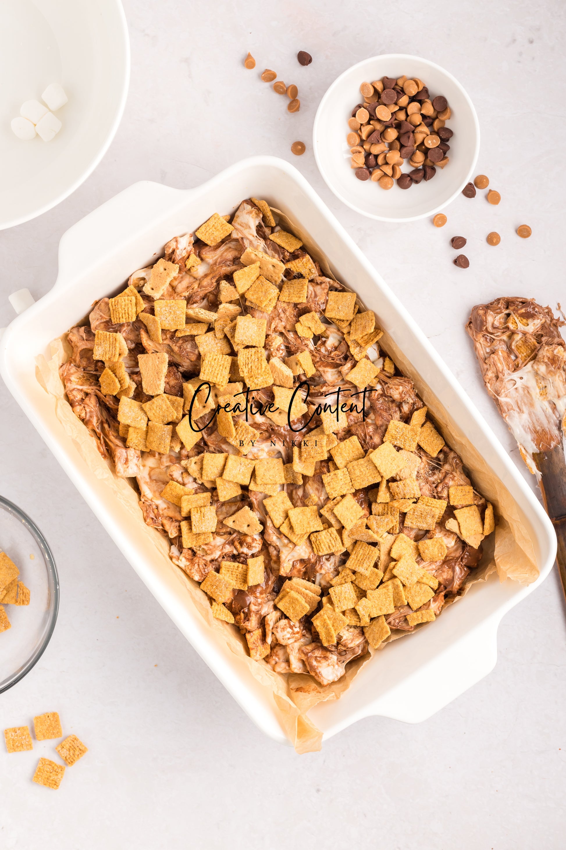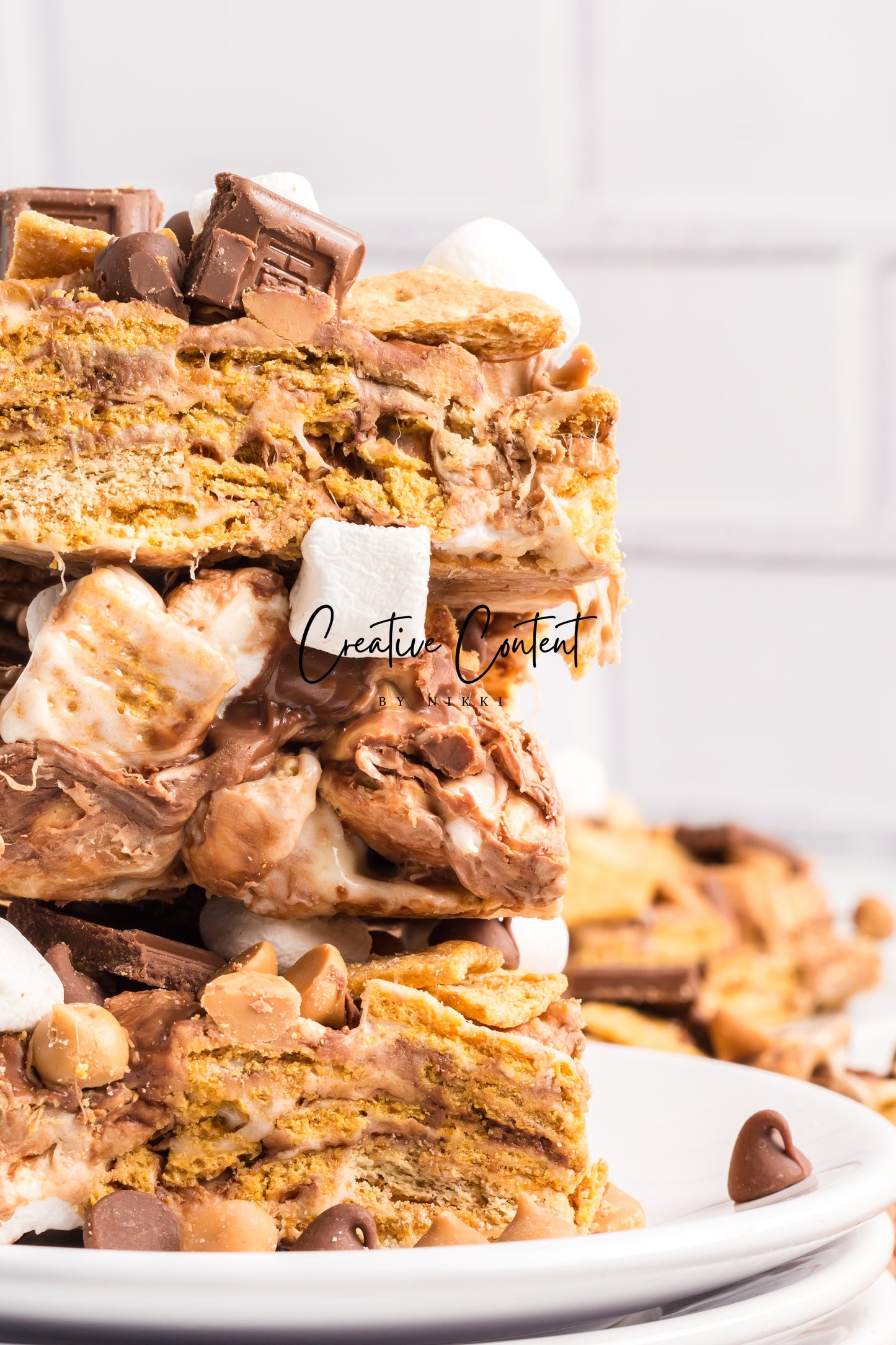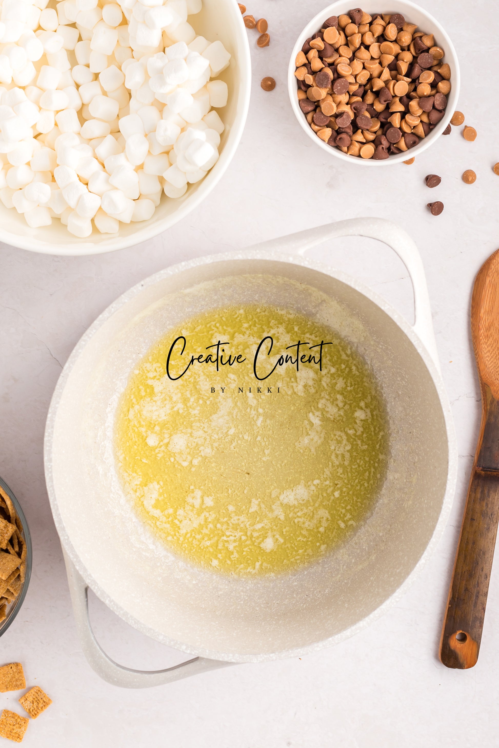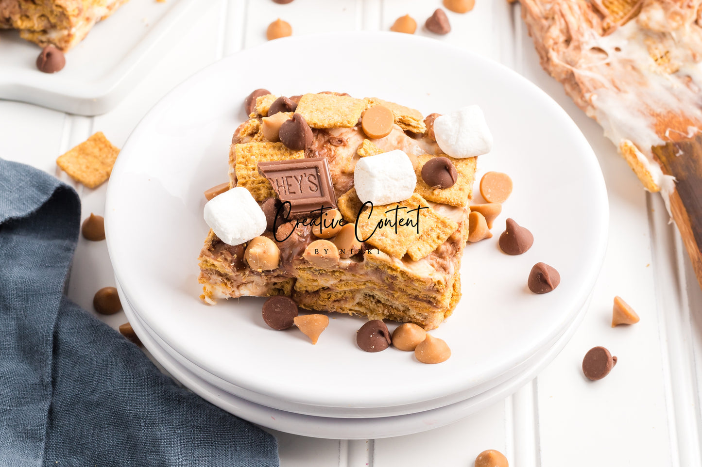 - Featured Ingredients; salted butter, mini marshmallows, Golden Grahams Cereal, graham crackers, Hershey bars, and chocolate and peanut butter chips