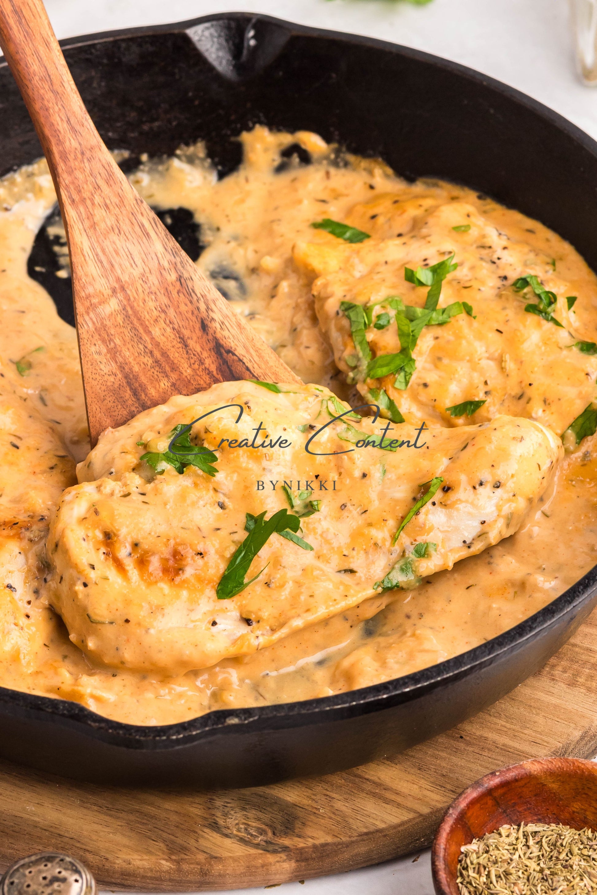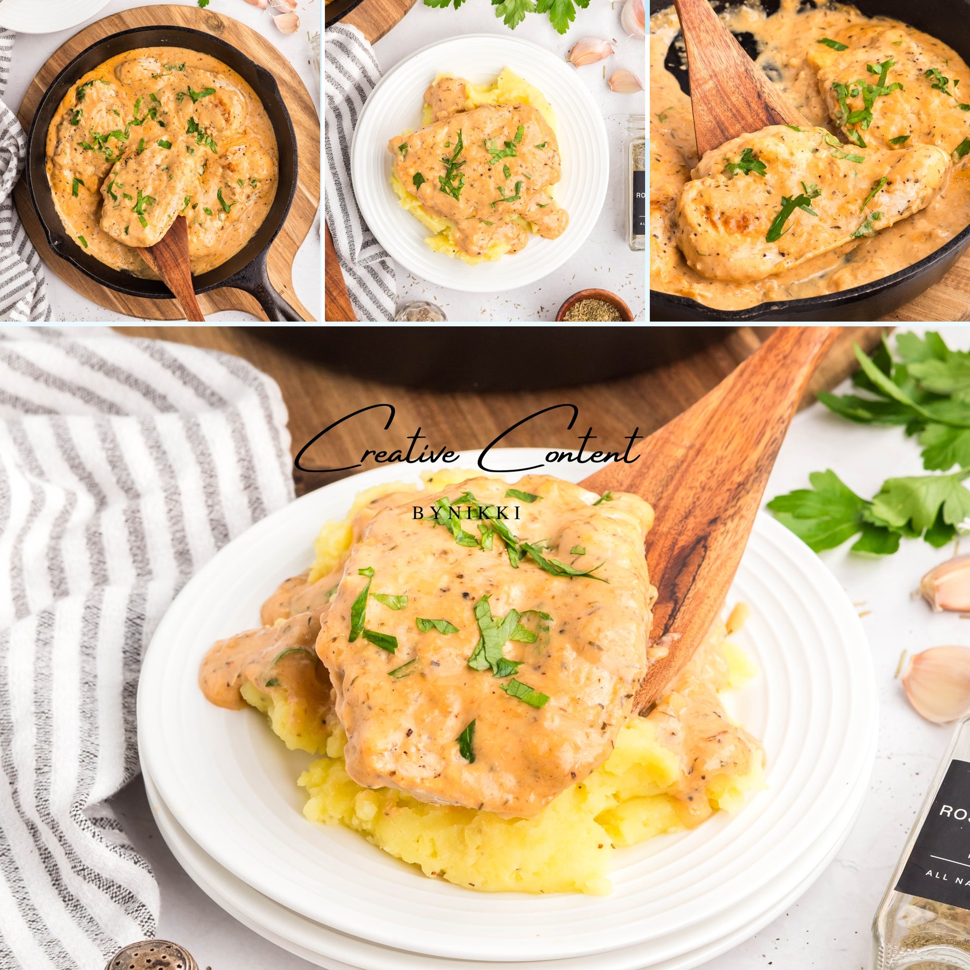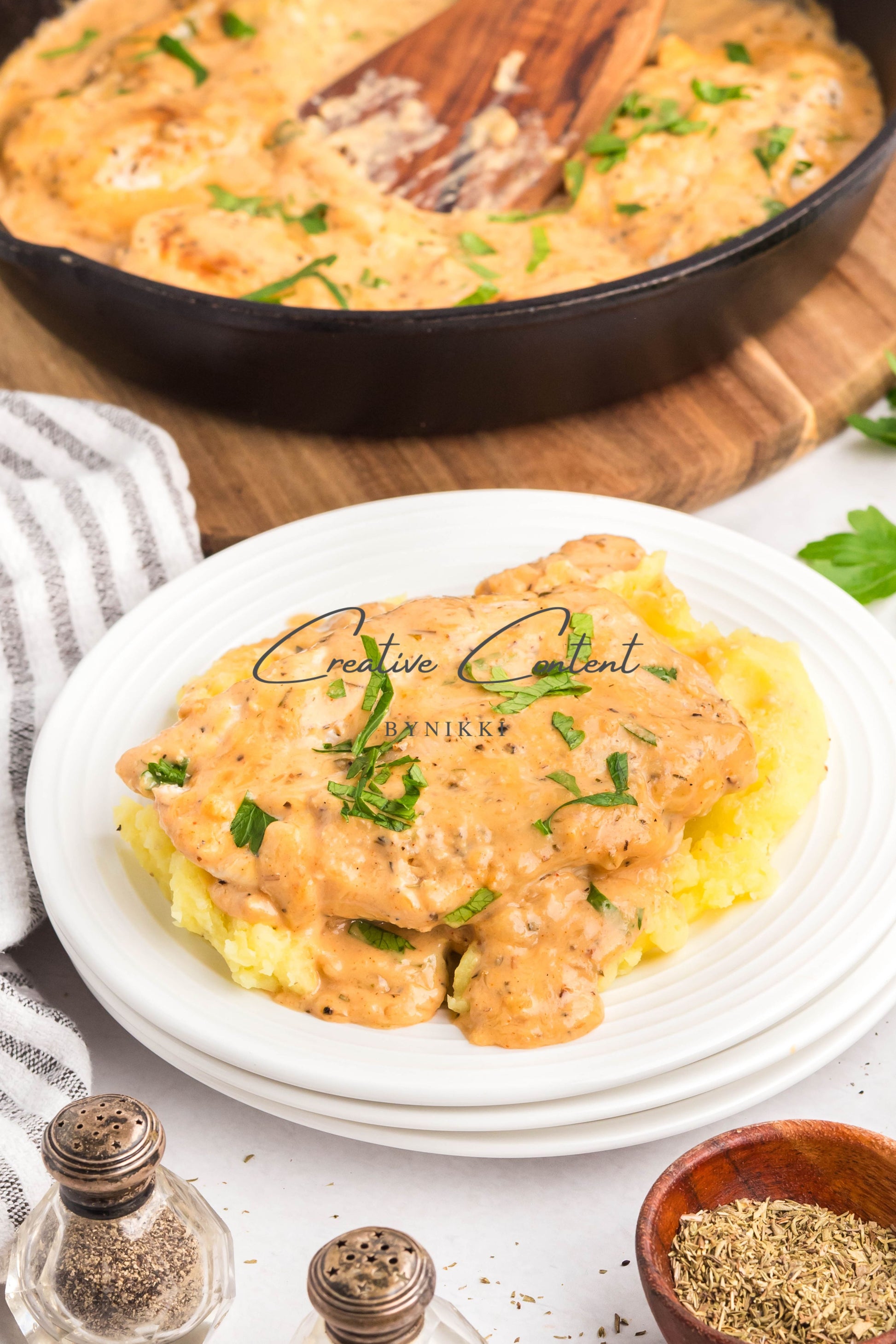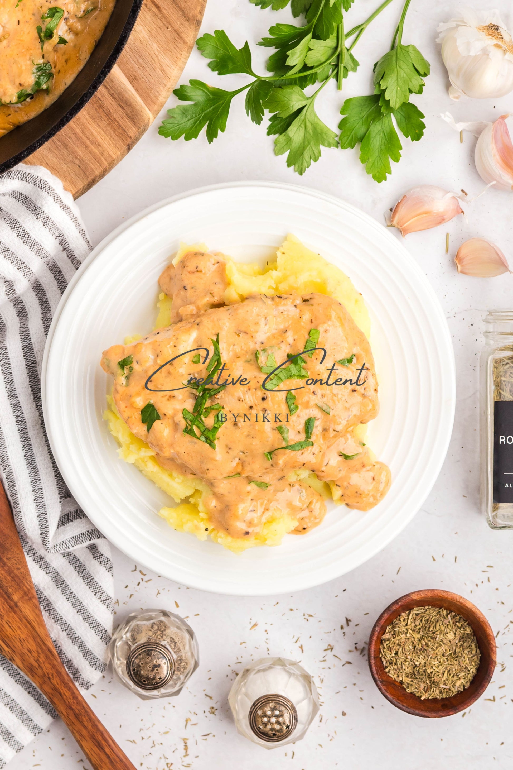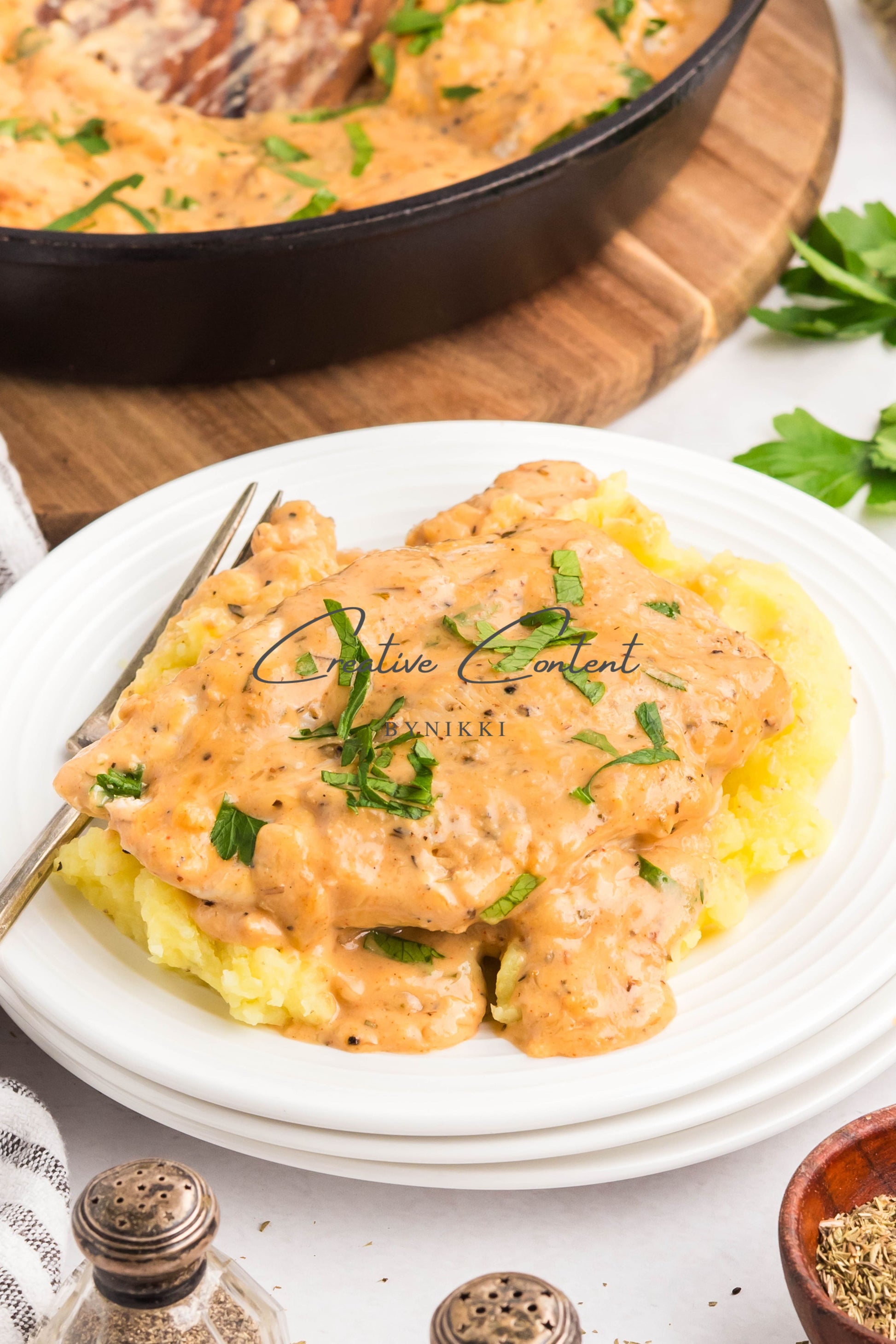 This smothered chicken is a comforting and flavorful dish that comes together easily. Tender chicken breasts are seasoned and cooked to perfection before being covered in a creamy, savory sauce. The sauce combines cream of chicken soup, herbs, and Parmesan cheese for a rich taste.