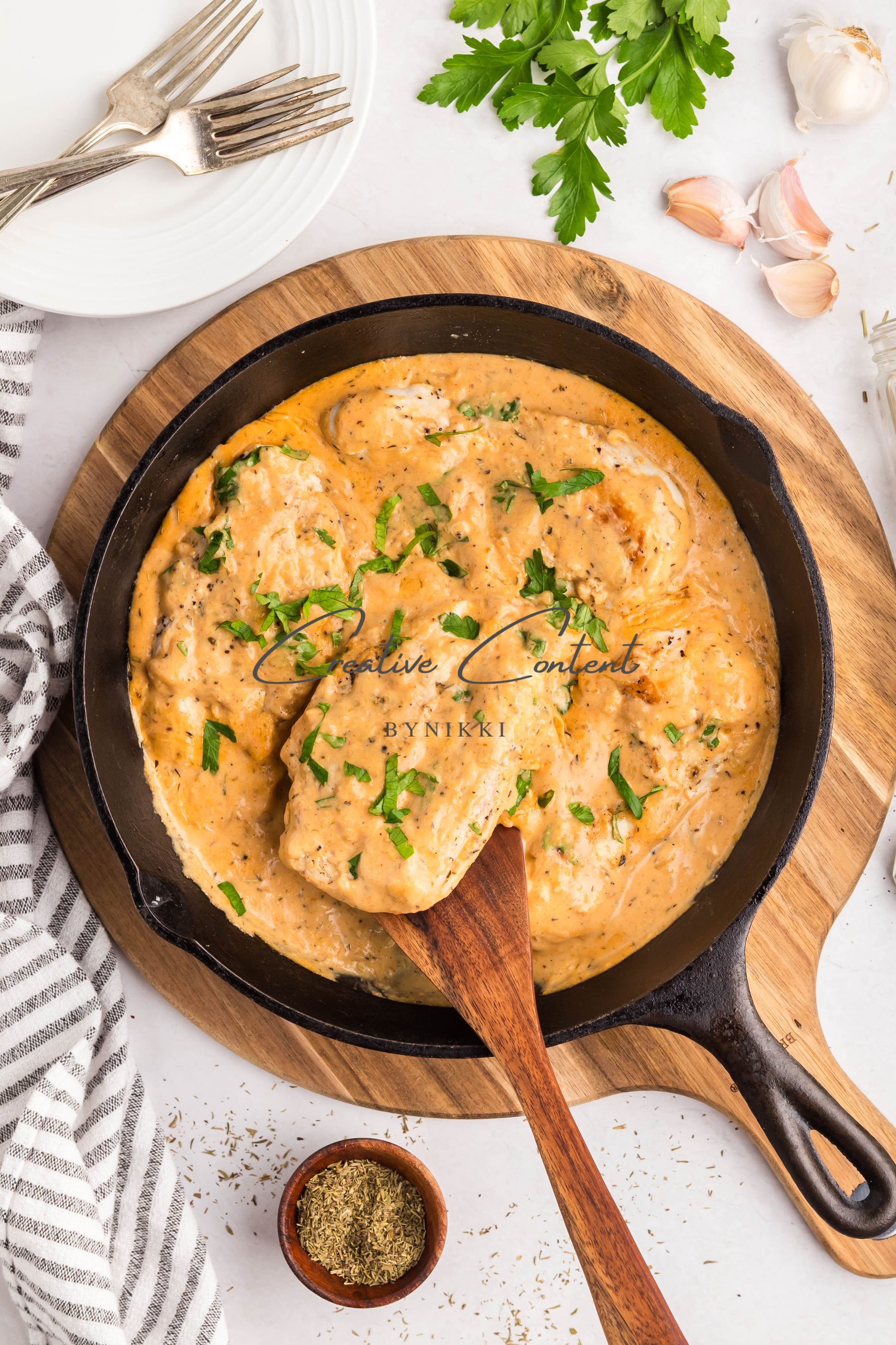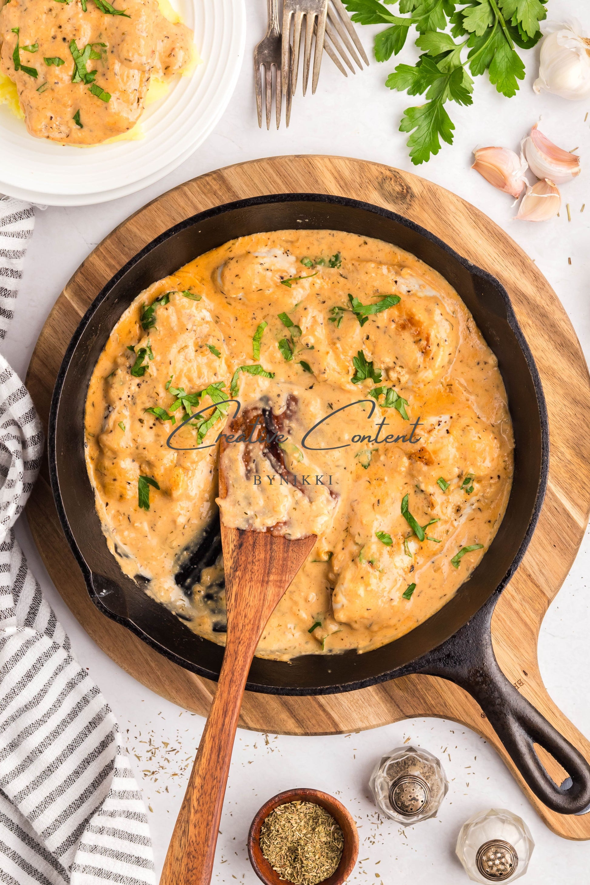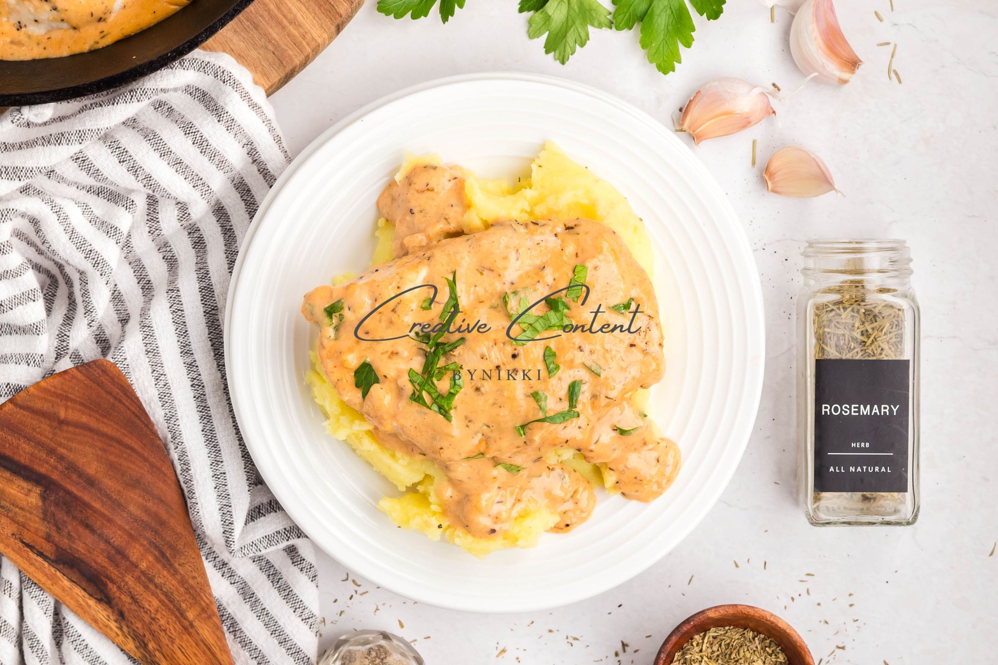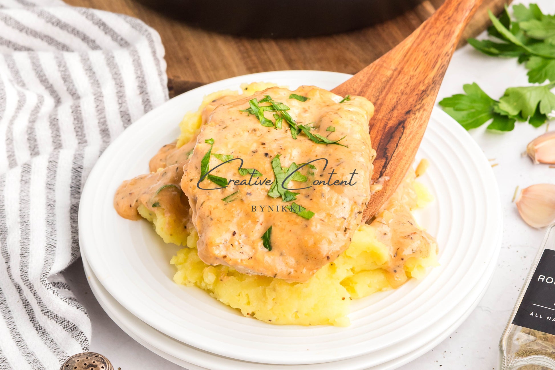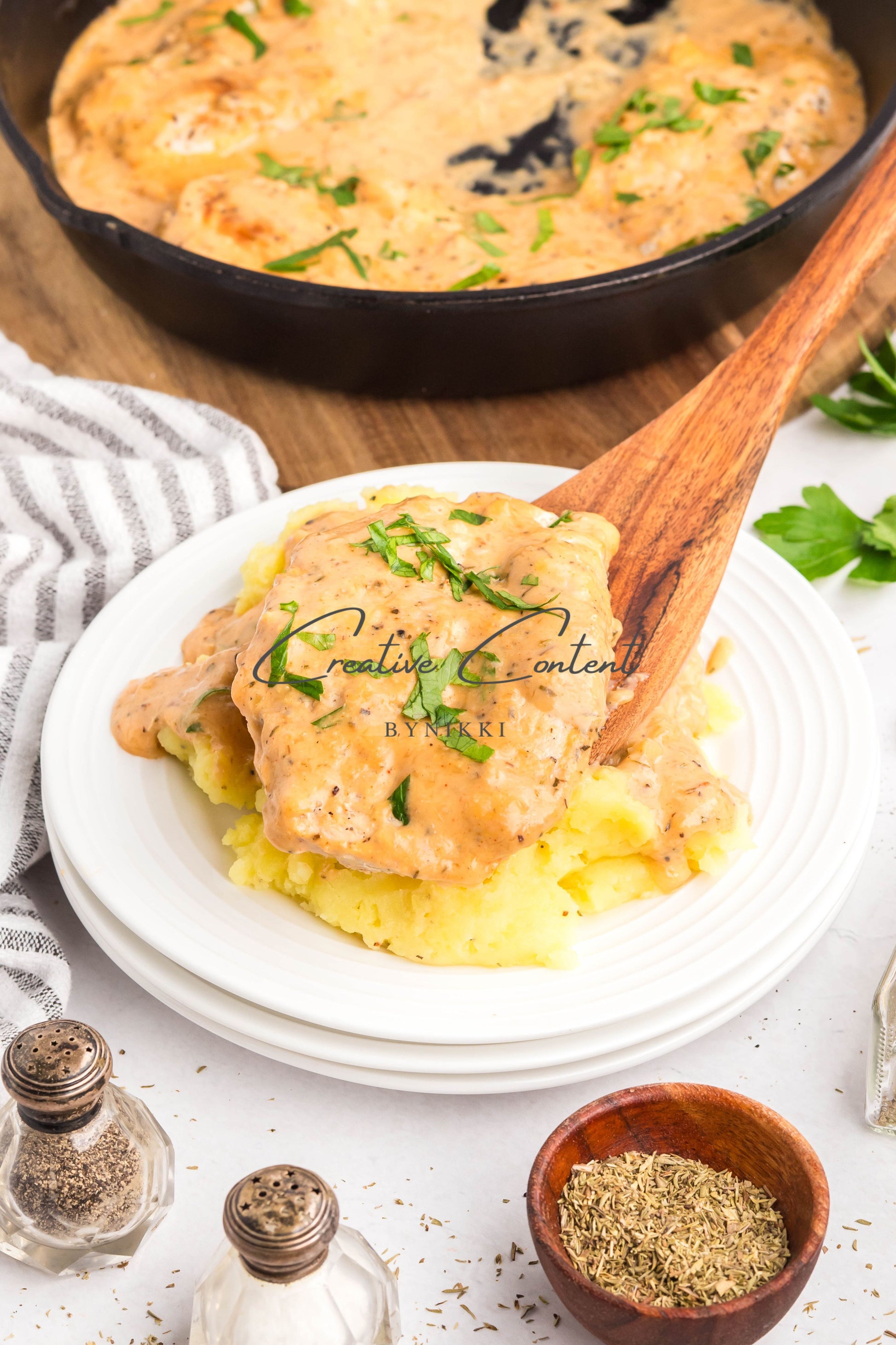 This smothered chicken is a comforting and flavorful dish that comes together easily. Tender chicken breasts are seasoned and cooked to perfection before being covered in a creamy, savory sauce. The sauce combines cream of chicken soup, herbs, and Parmesan cheese for a rich taste.