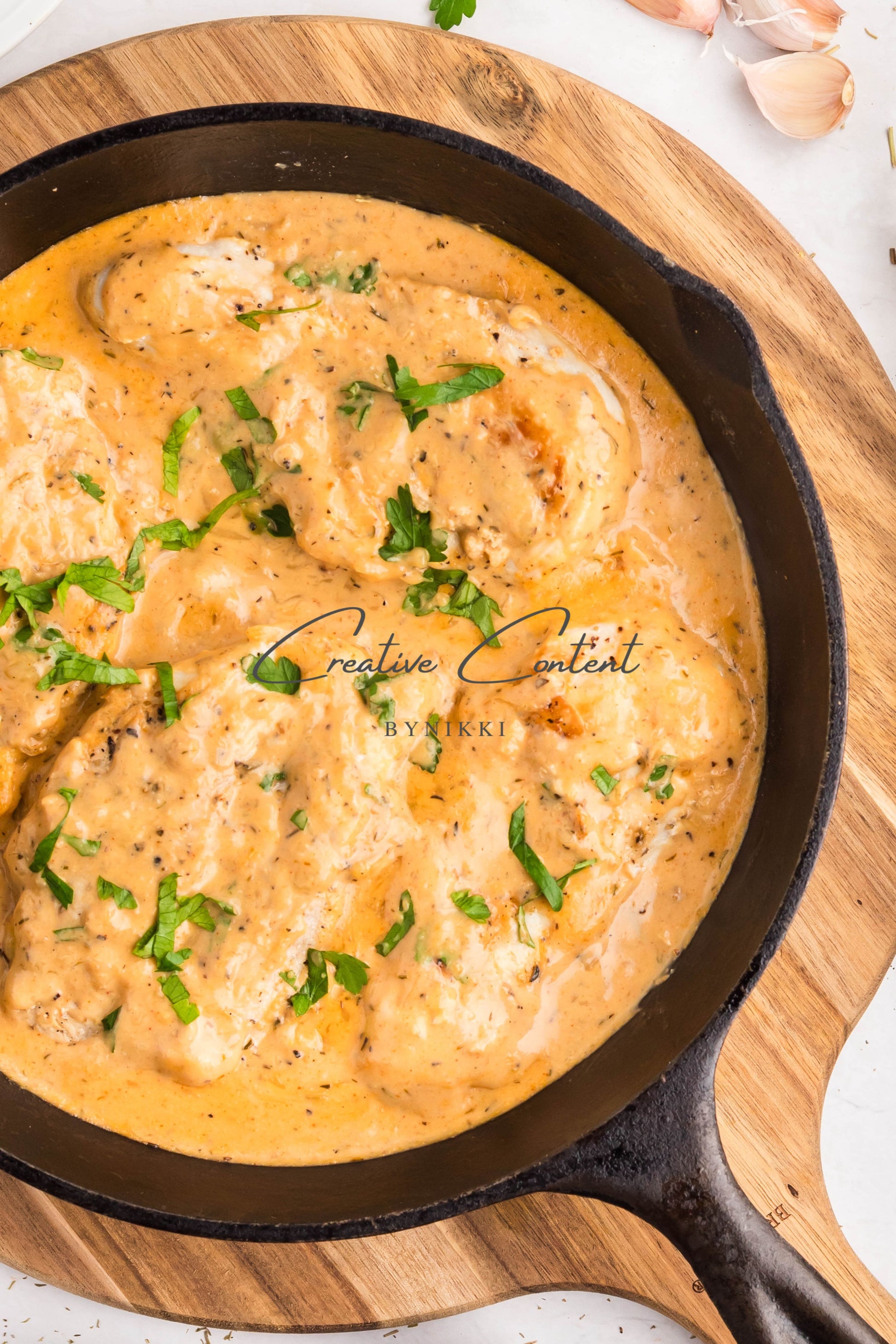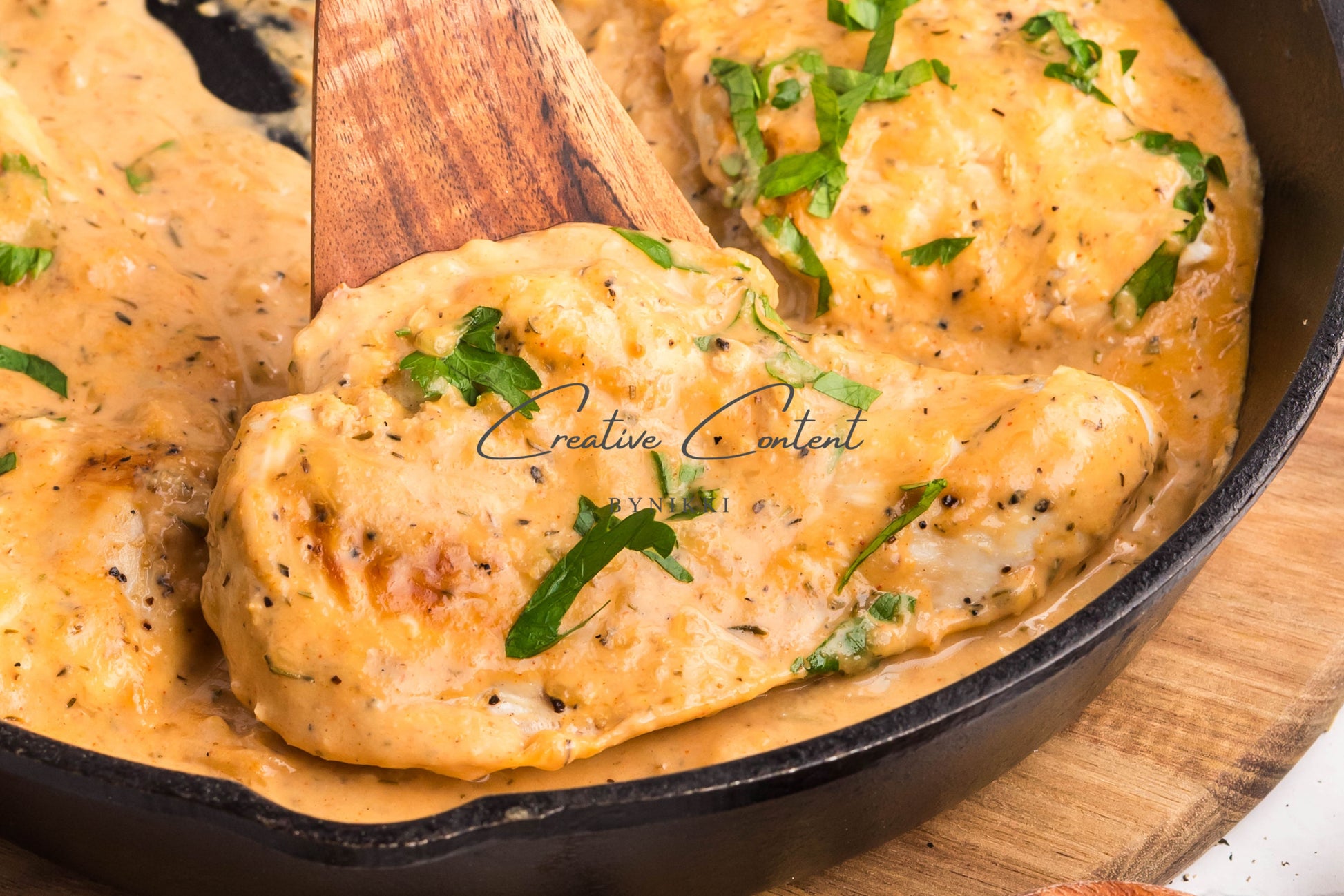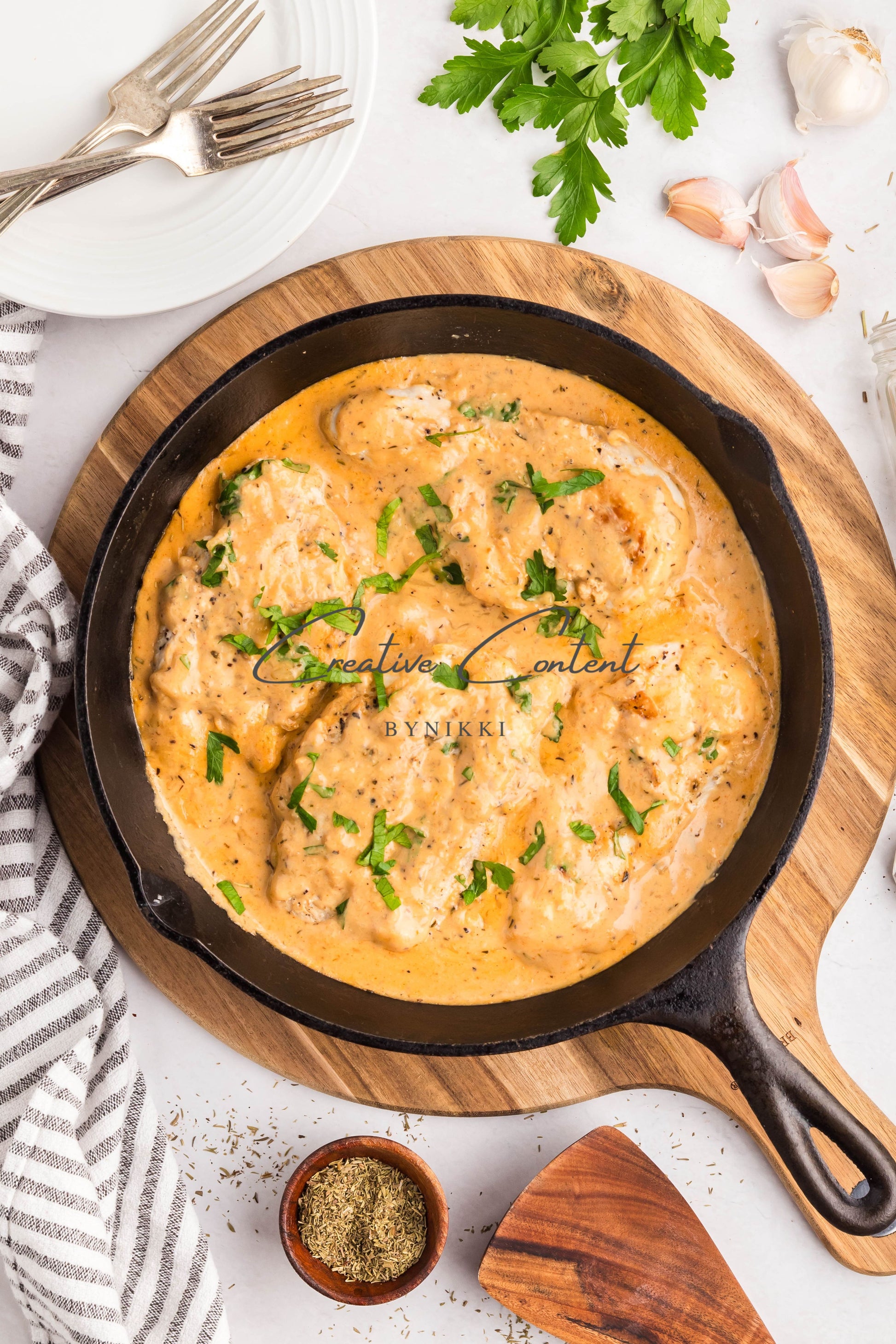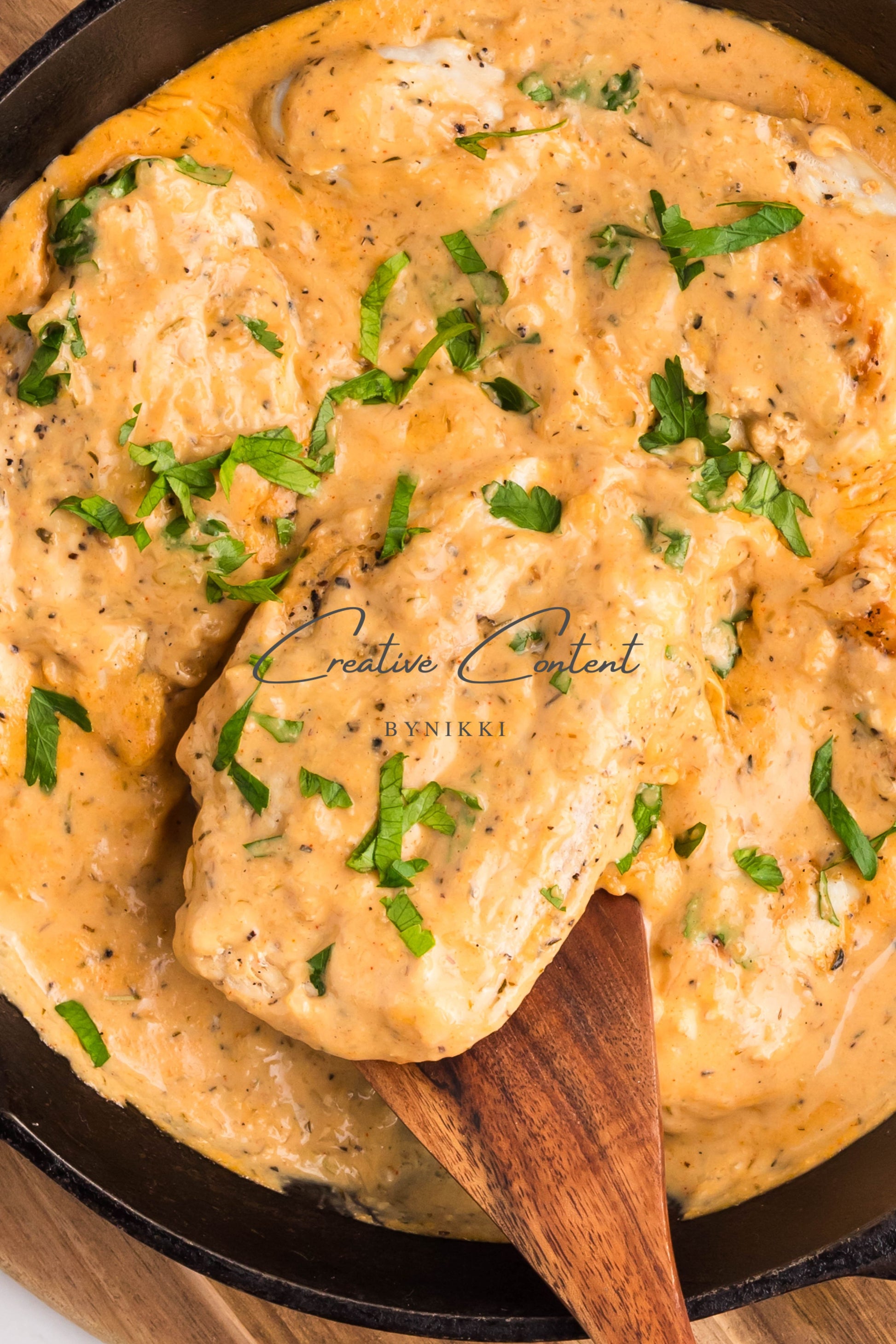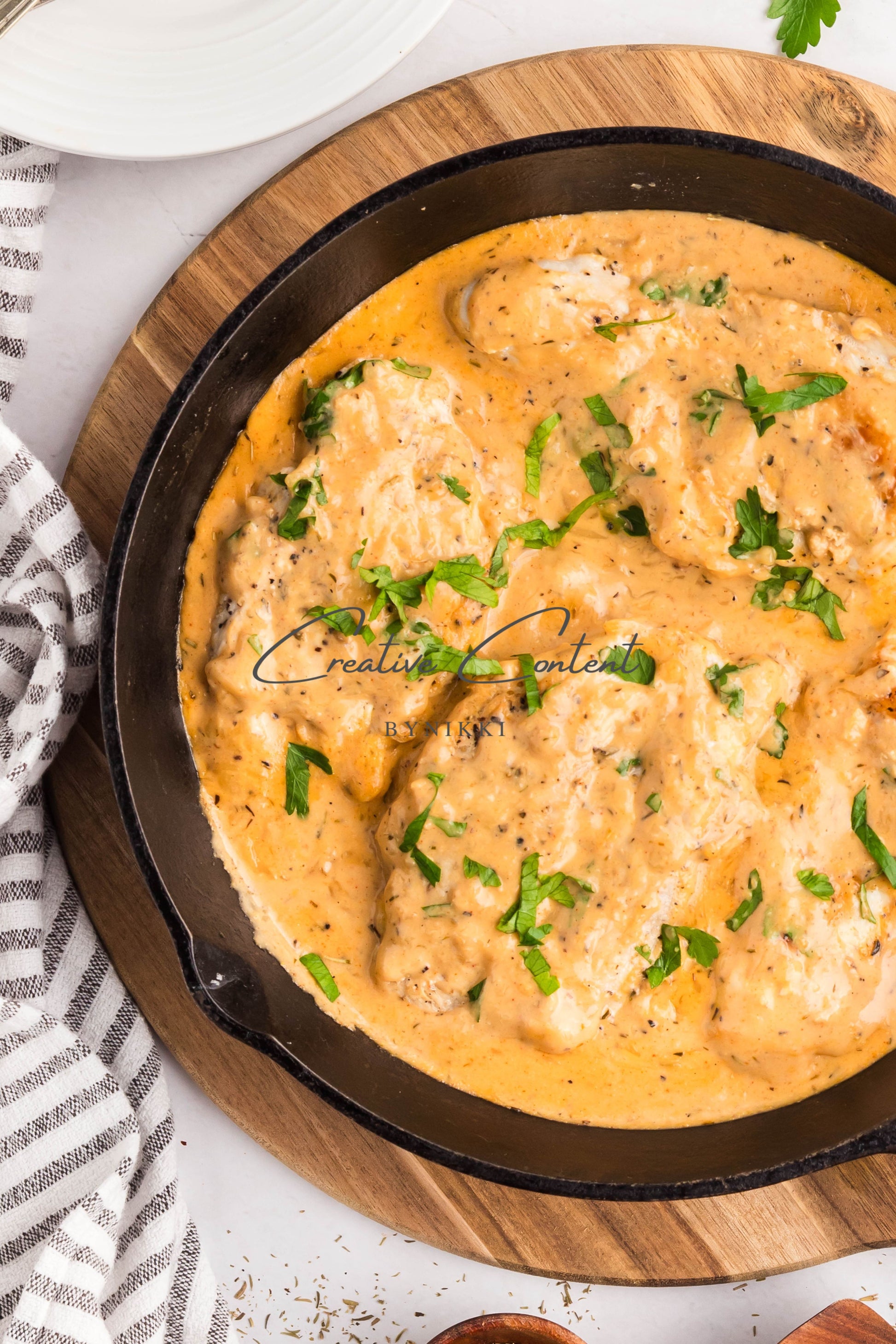This smothered chicken is a comforting and flavorful dish that comes together easily. Tender chicken breasts are seasoned and cooked to perfection before being covered in a creamy, savory sauce. The sauce combines cream of chicken soup, herbs, and Parmesan cheese for a rich taste.