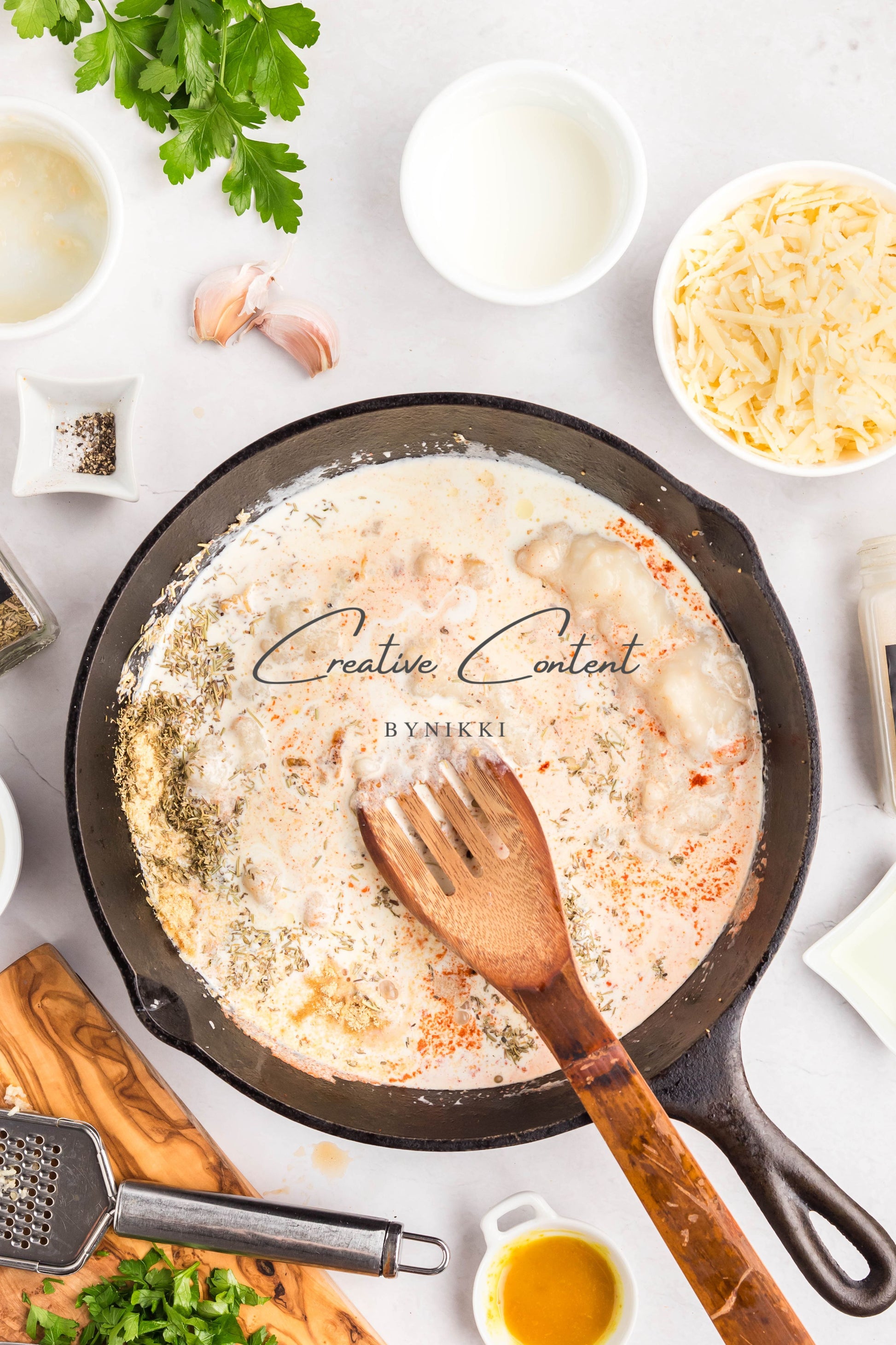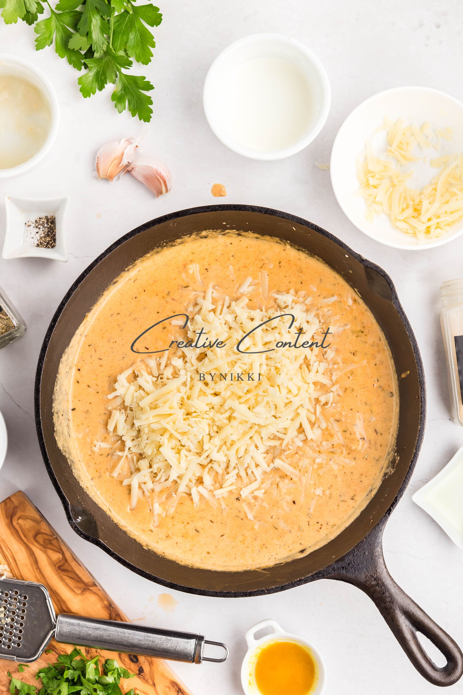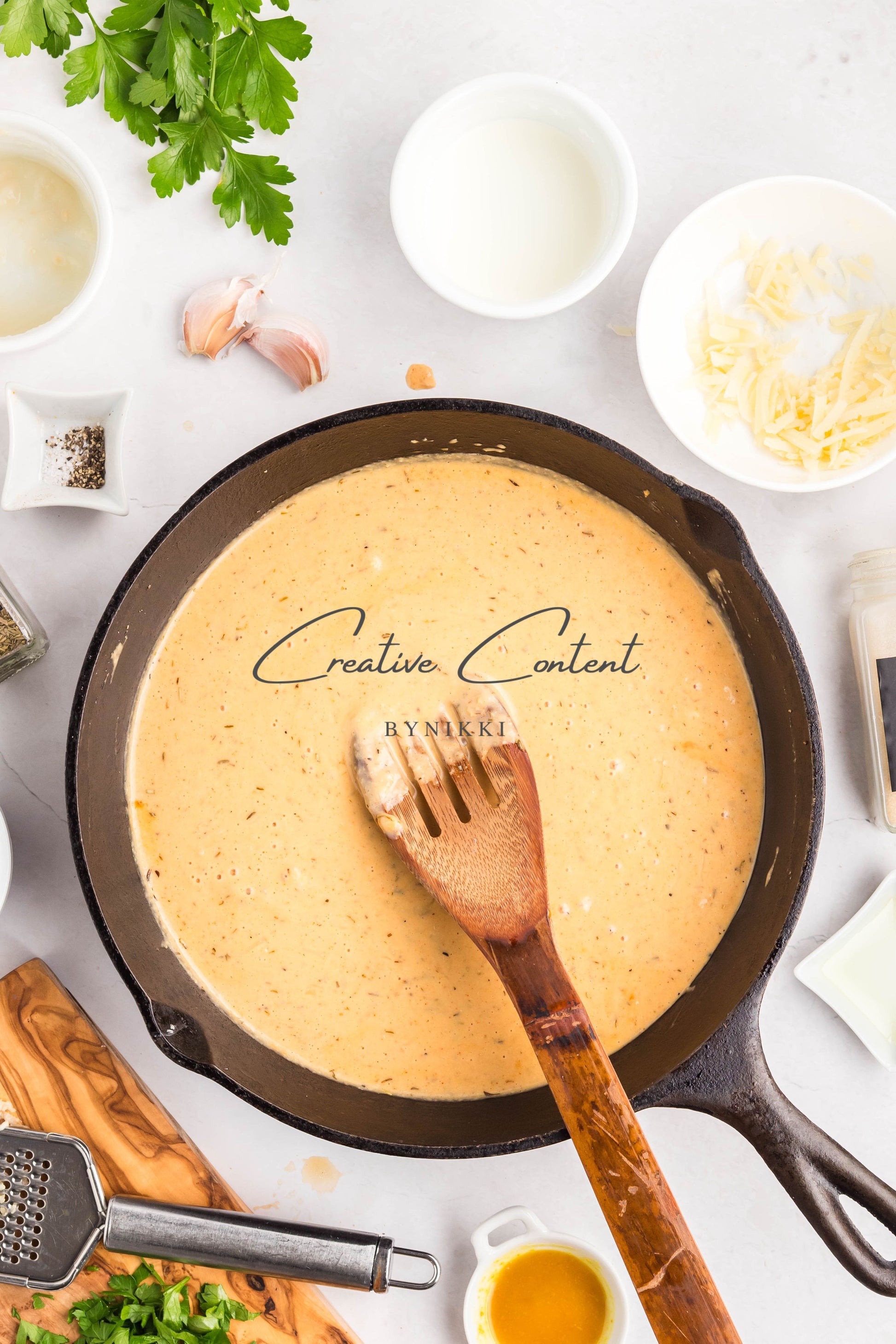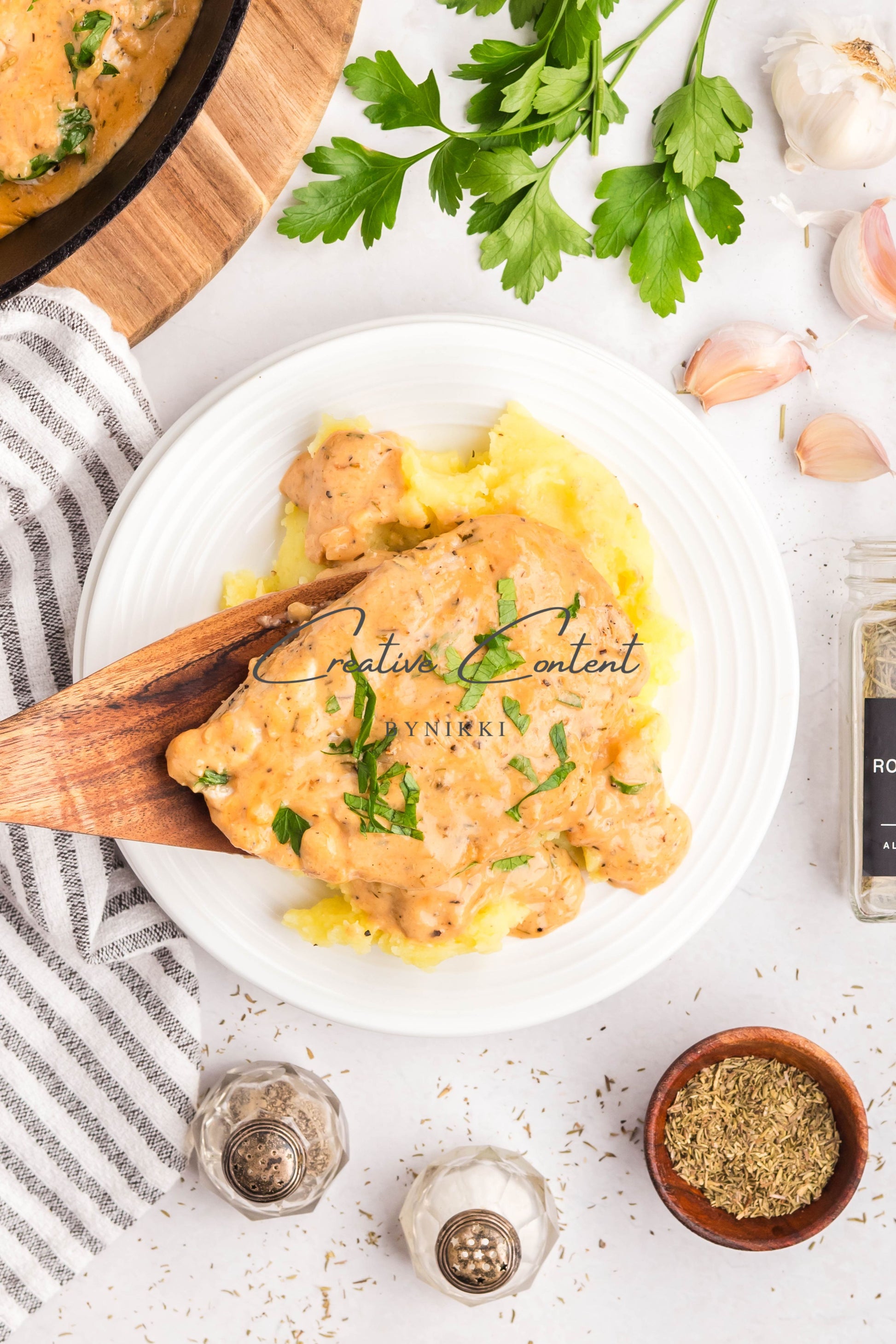 - Ingredients: avocado oil, chicken breasts, black pepper, coarse kosher salt, garlic powder, onion powder, garlic cloves, cream of chicken soup, heavy cream, low-sodium chicken Better Than Bouillon, onion powder, garlic powder, dried thyme, dried rosemary, grated Parmesan cheese, chopped parsley