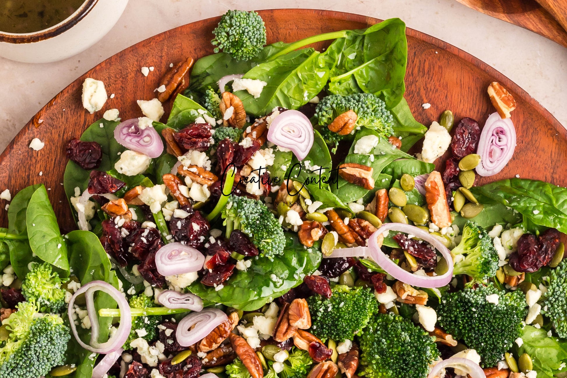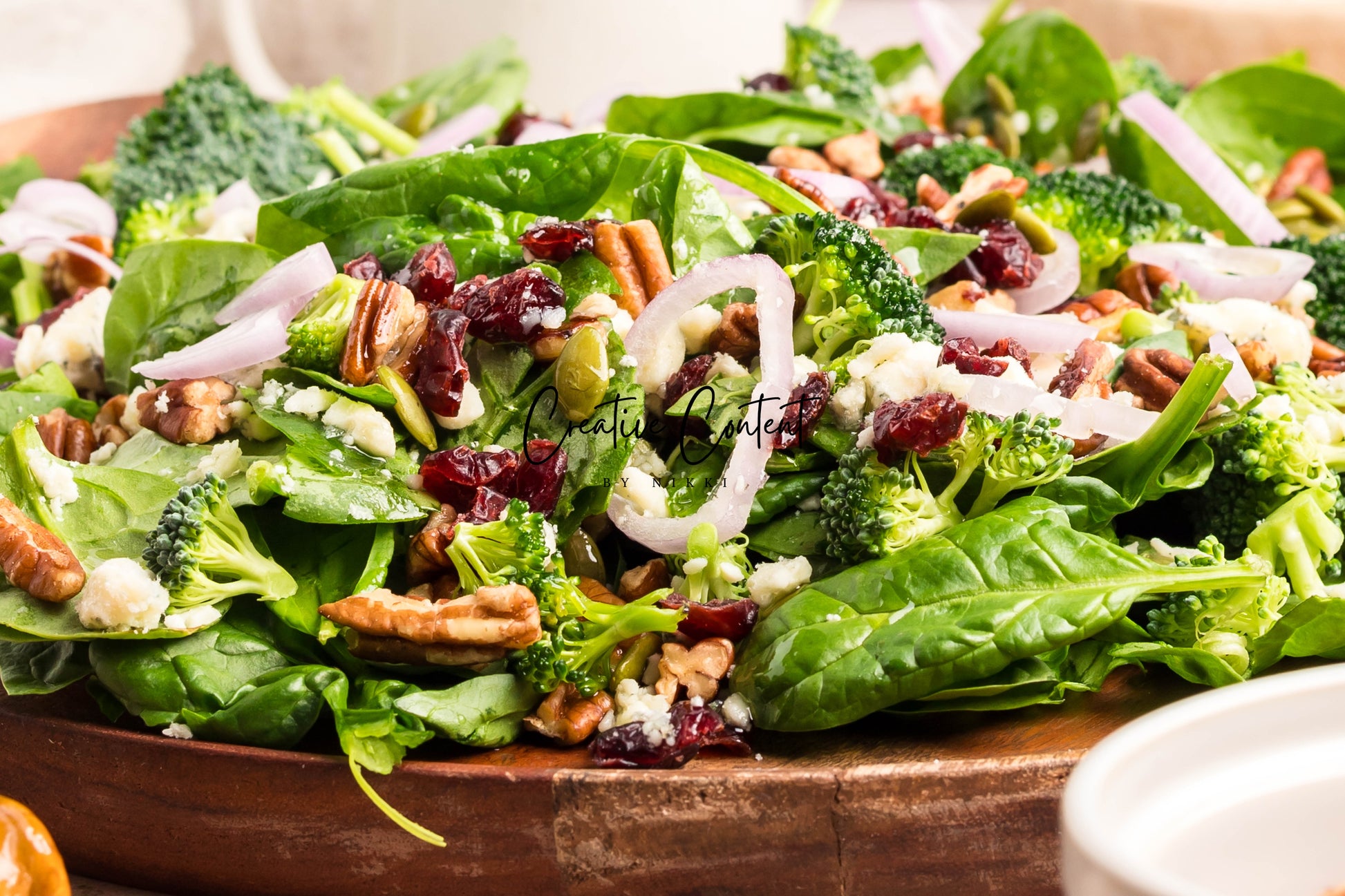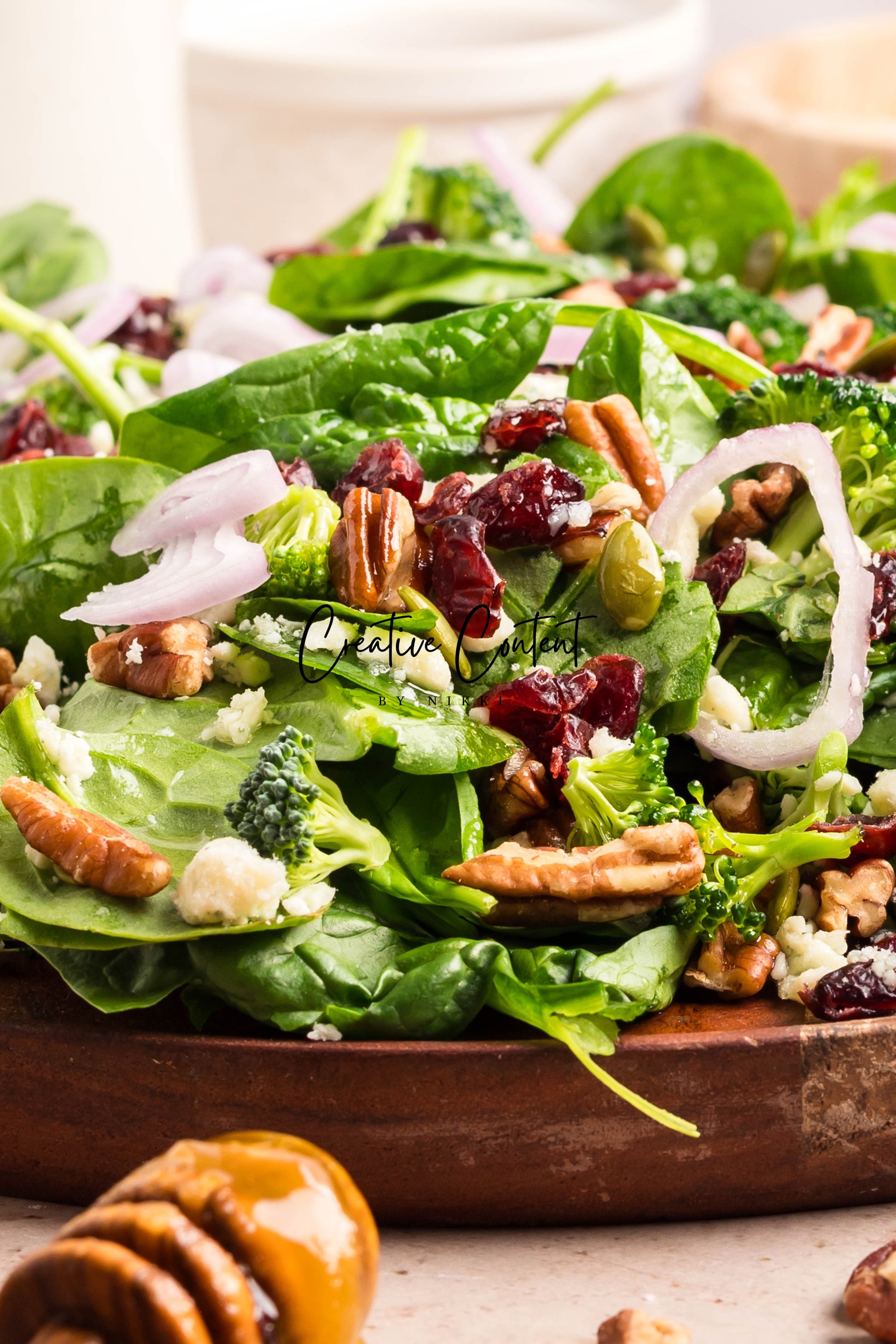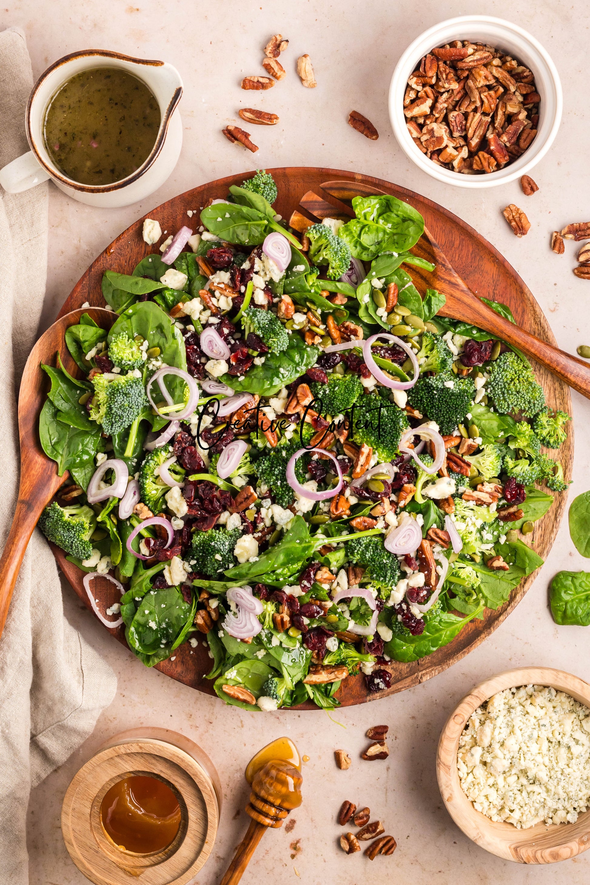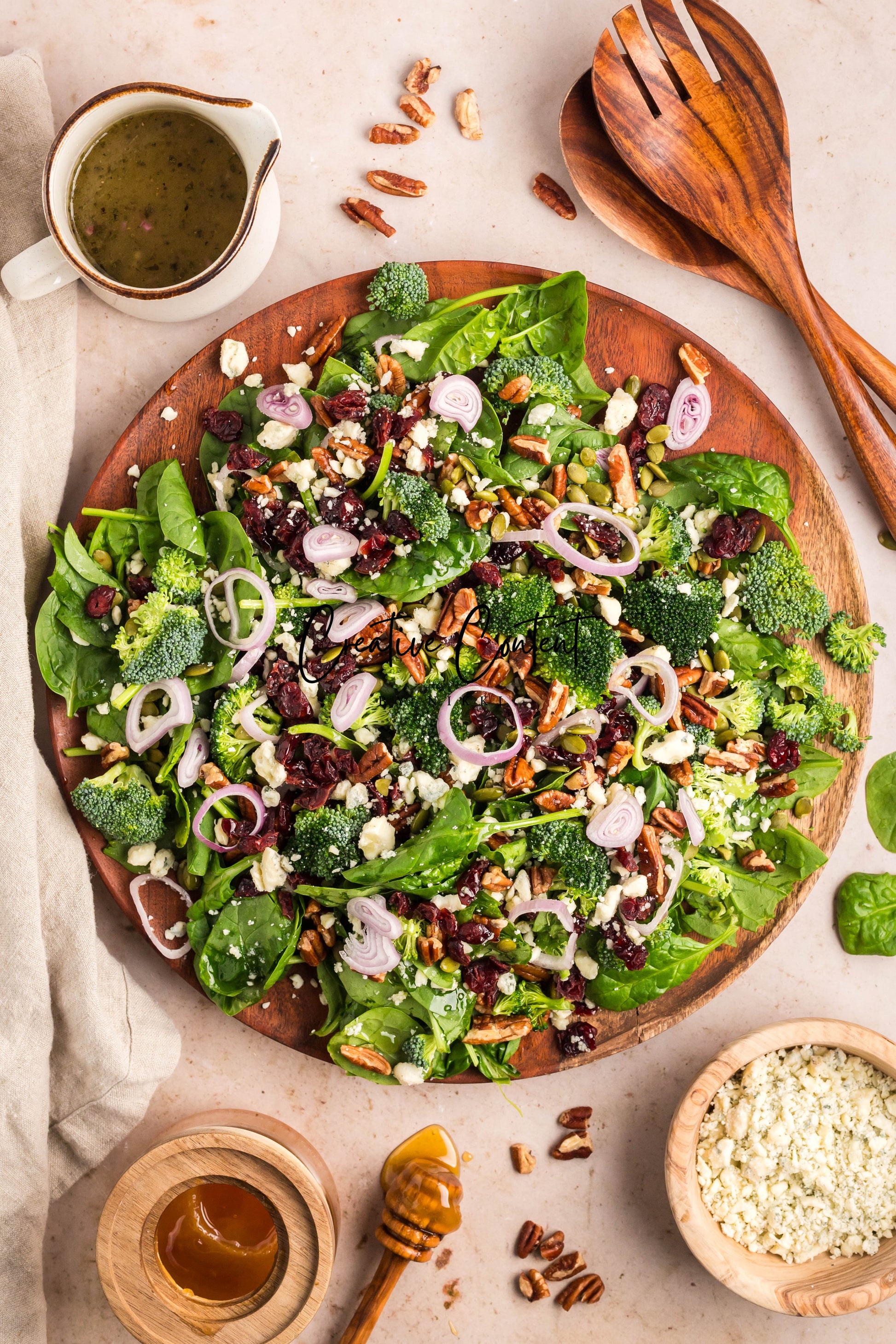 - Featured Ingredients: Avocado oil, balsamic vinegar, honey, garlic, Dijon mustard, kosher salt, black pepper, spinach, chopped broccoli, blue cheese, pecans, dried cranberries, and pumpkin seeds.
