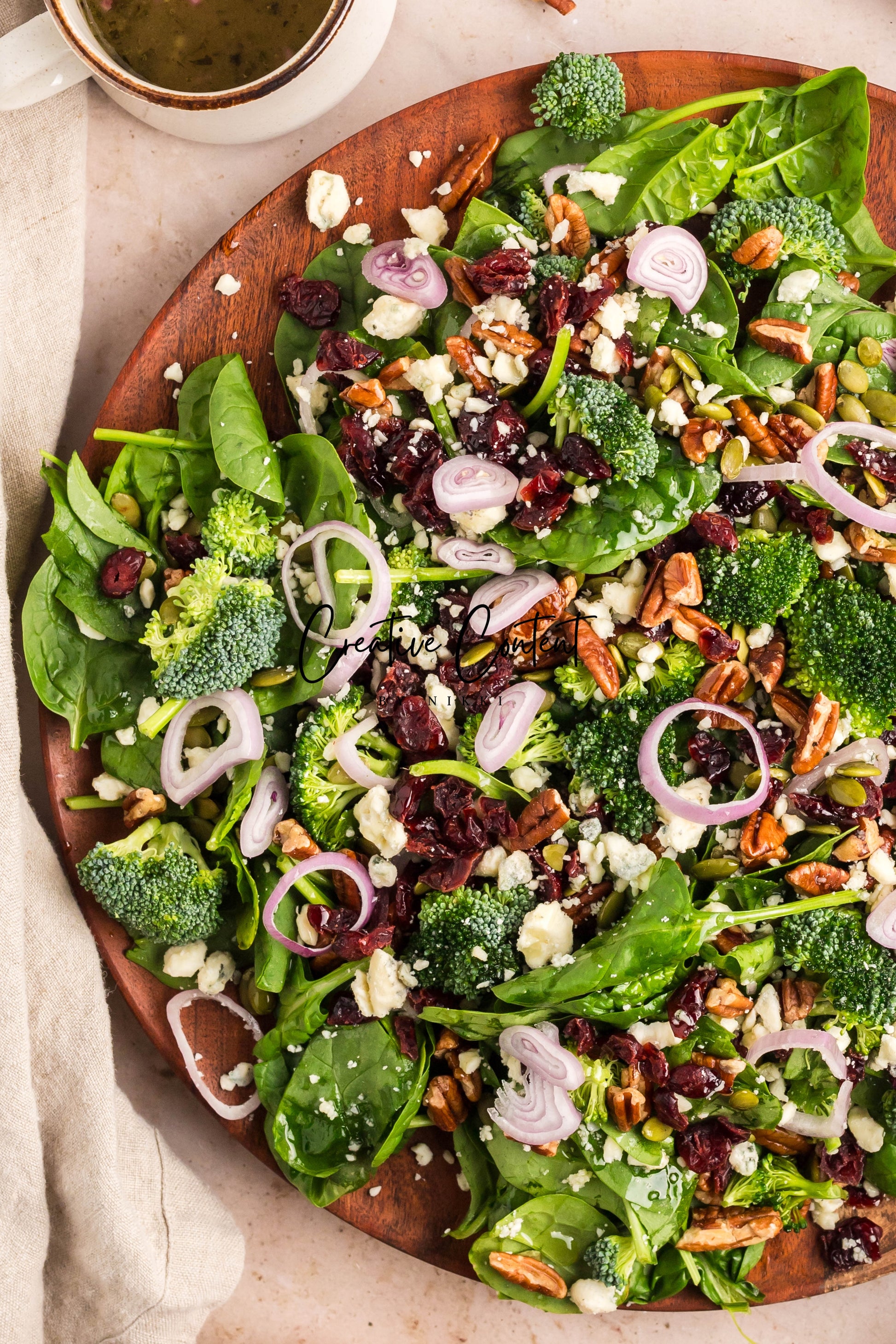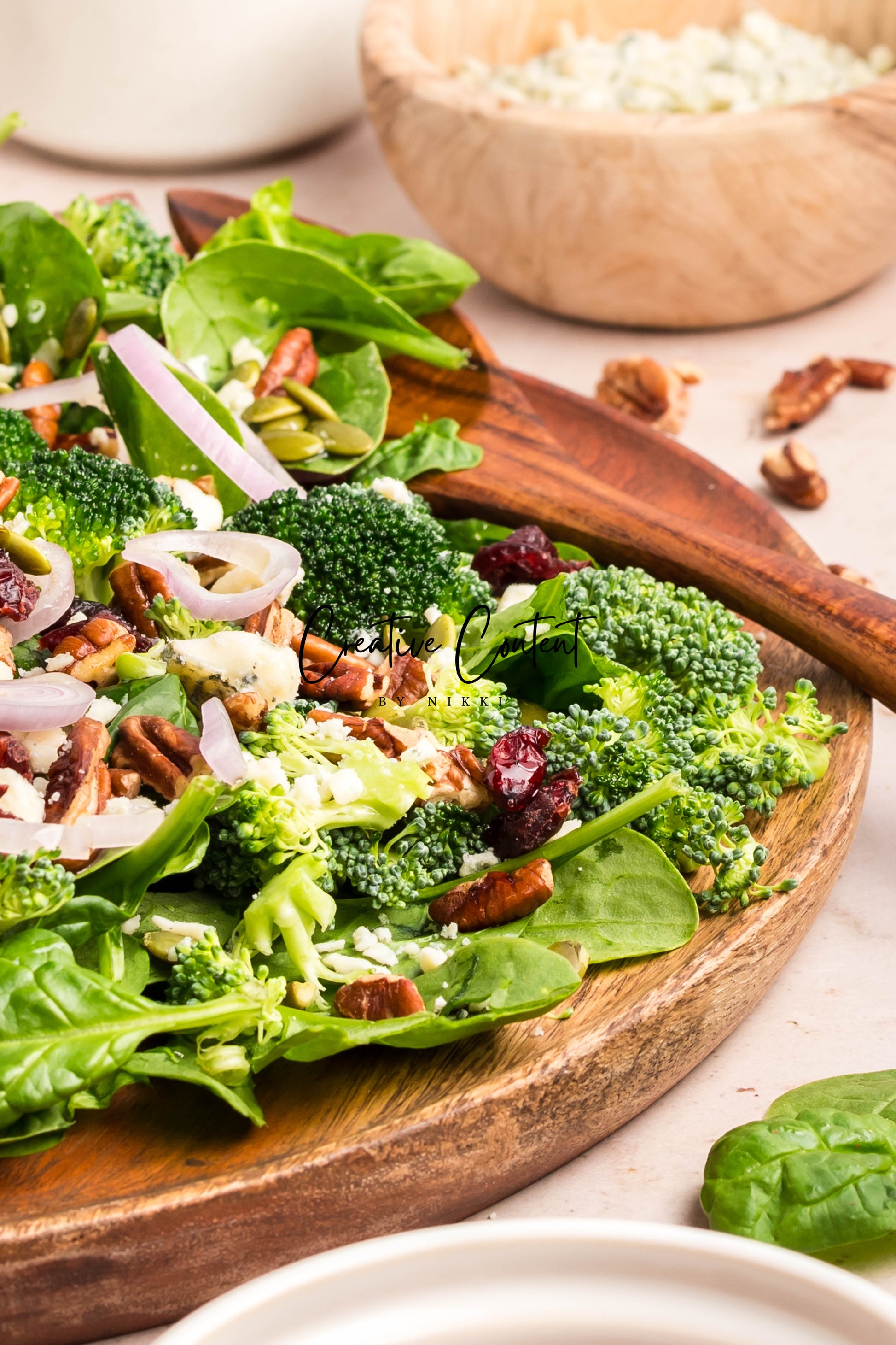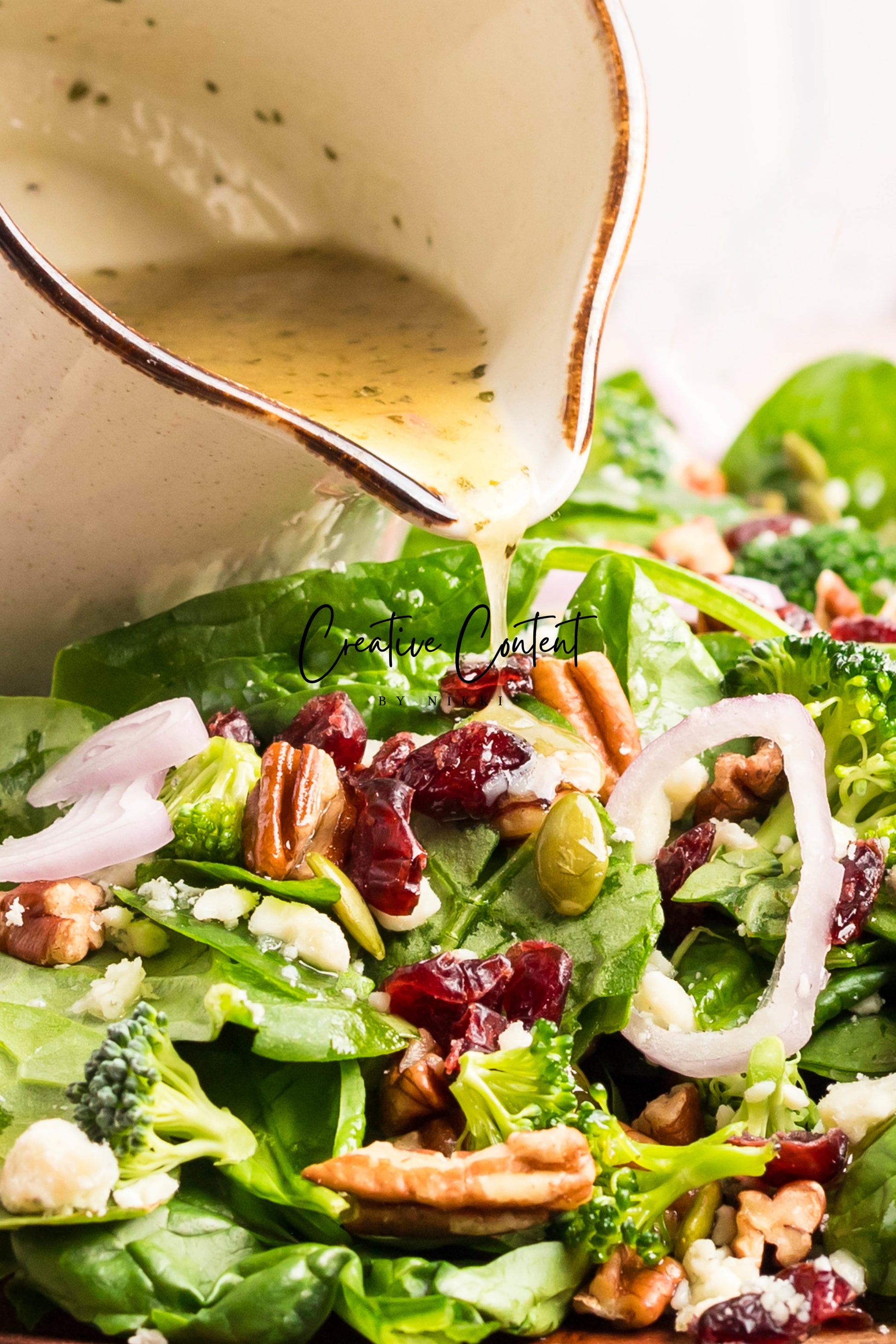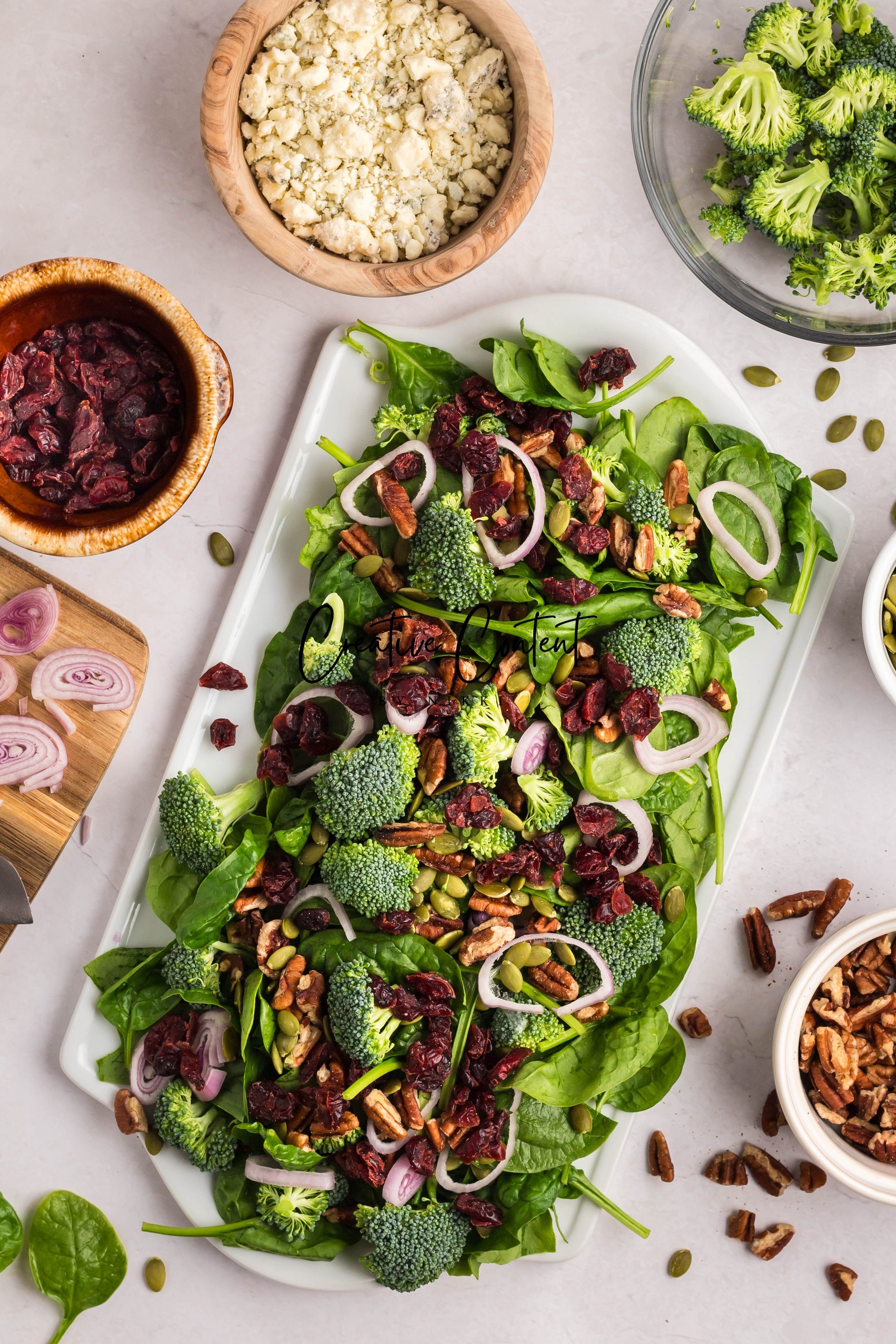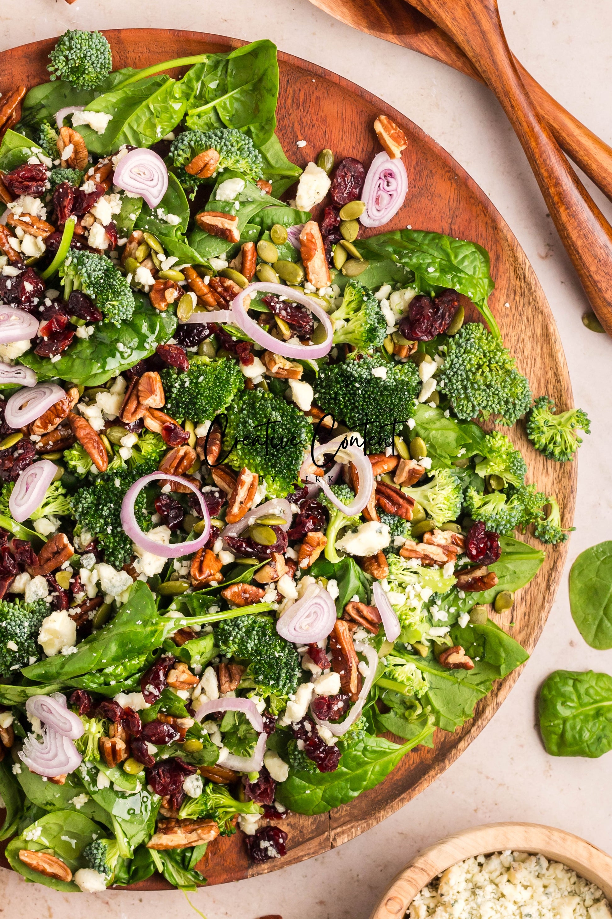 - Featured Ingredients: Avocado oil, balsamic vinegar, honey, garlic, Dijon mustard, kosher salt, black pepper, spinach, chopped broccoli, blue cheese, pecans, dried cranberries, and pumpkin seeds.
