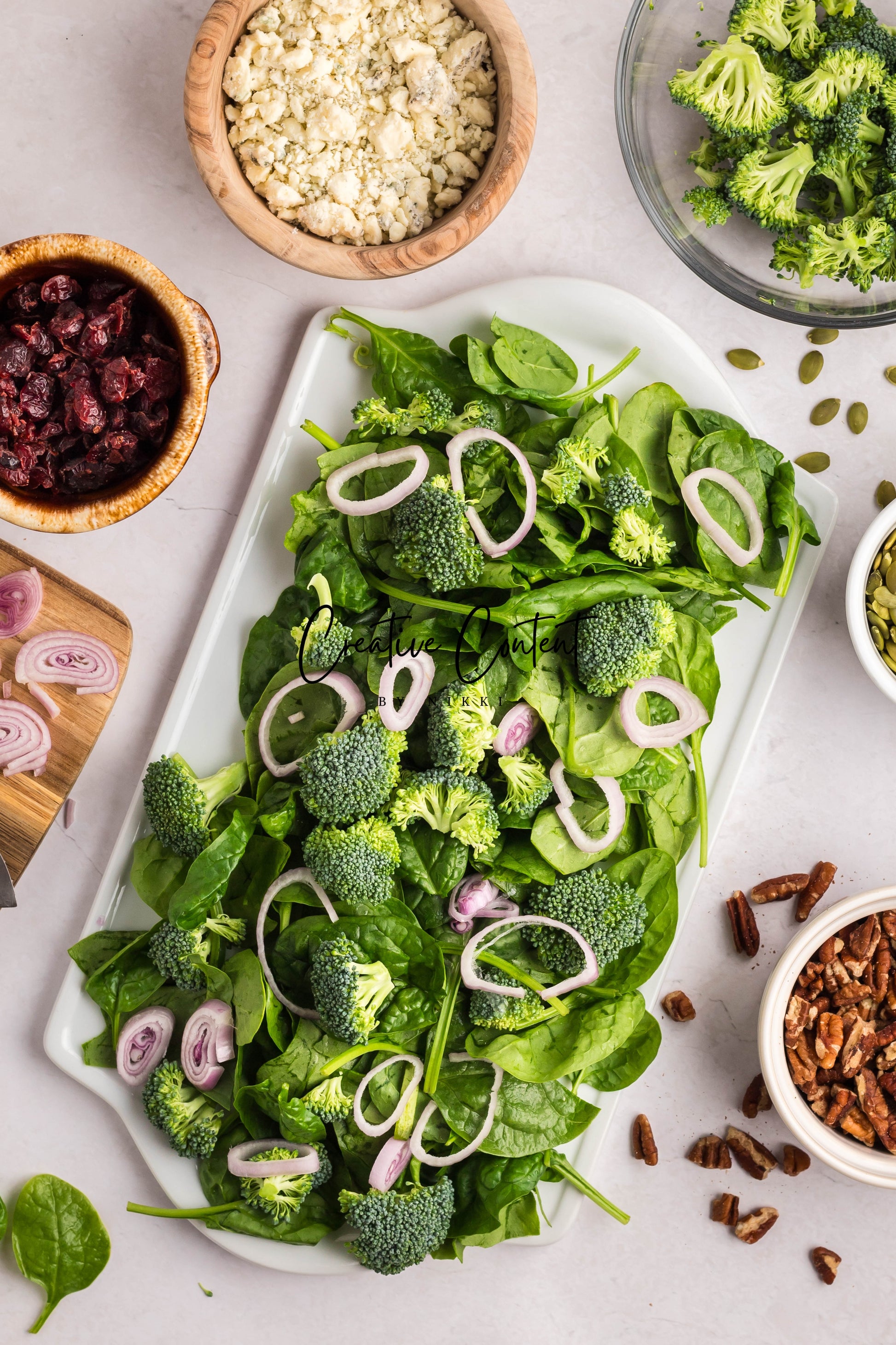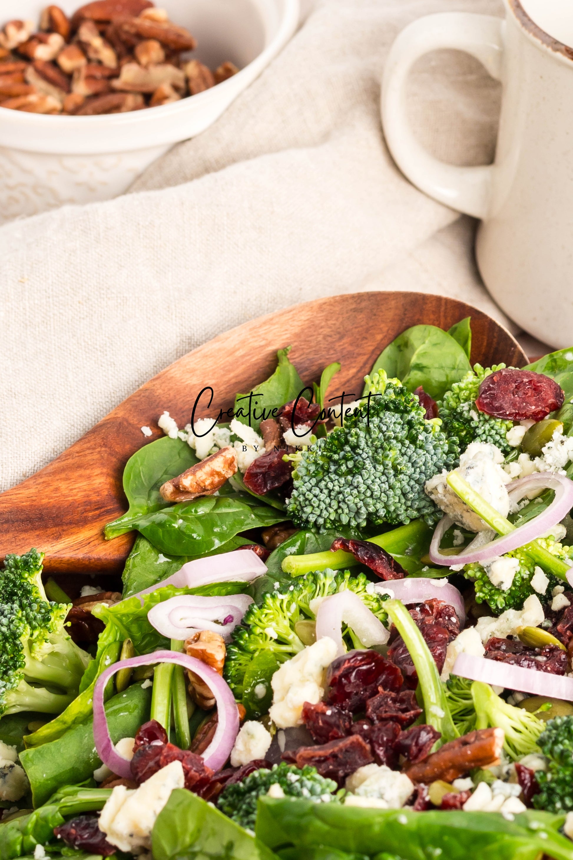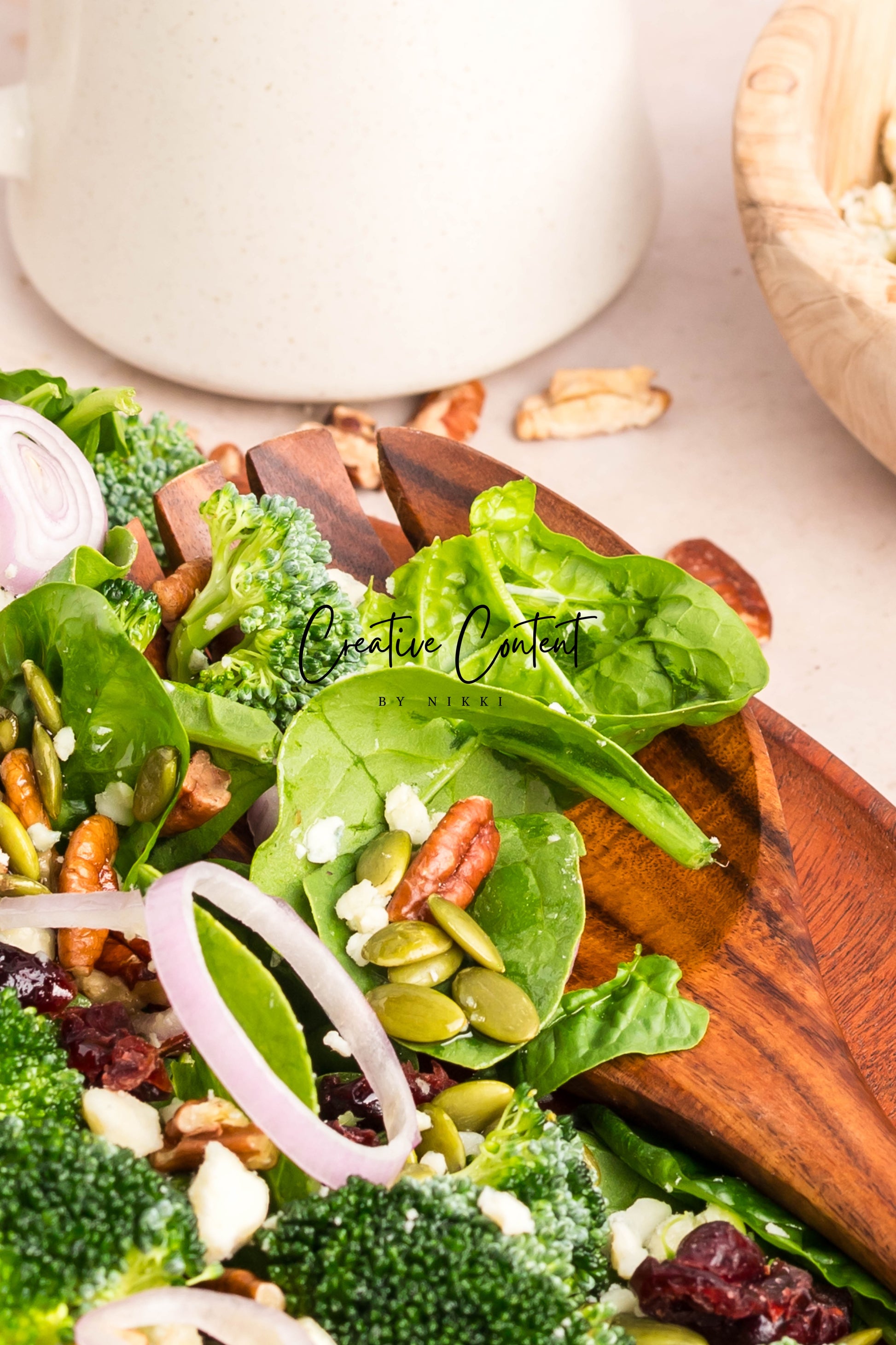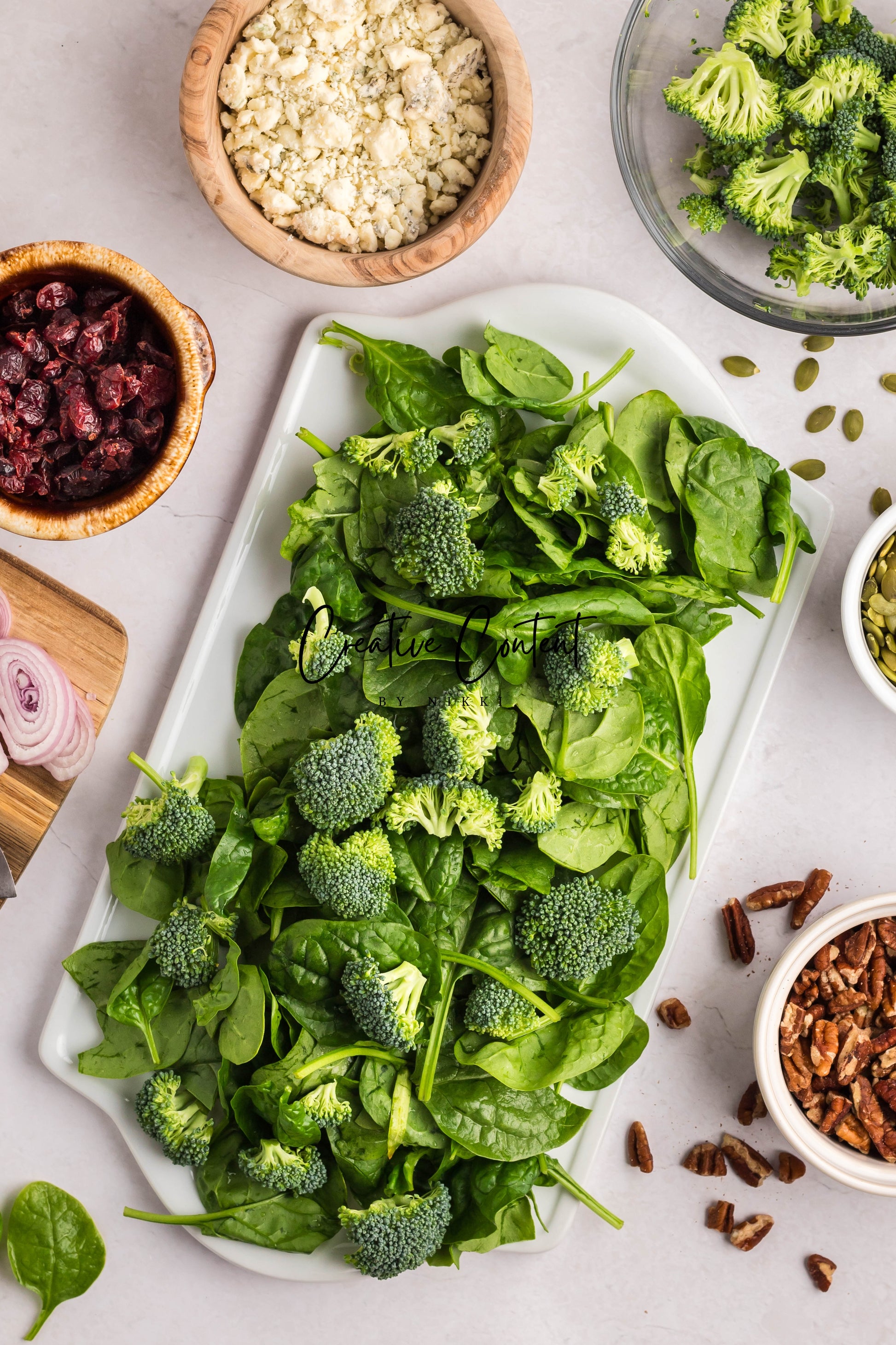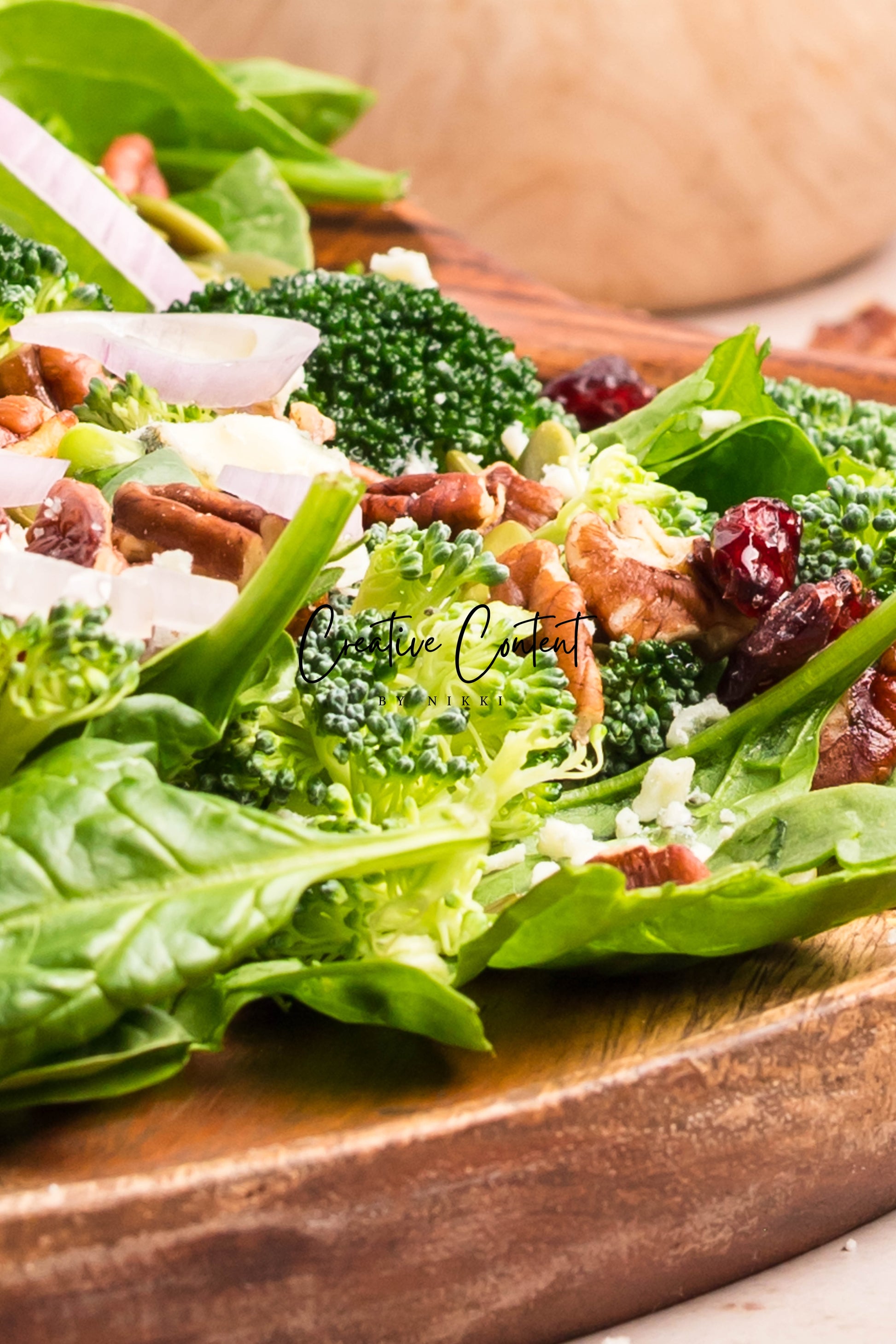 - Featured Ingredients: Avocado oil, balsamic vinegar, honey, garlic, Dijon mustard, kosher salt, black pepper, spinach, chopped broccoli, blue cheese, pecans, dried cranberries, and pumpkin seeds.