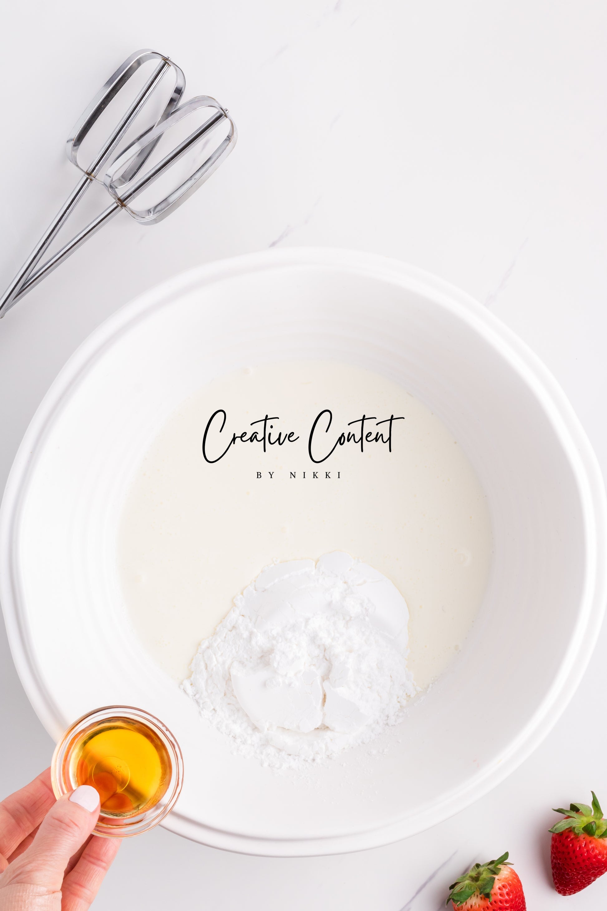 Featured Ingredients; Strawberries, heavy cream, powdered sugar, vanilla, and graham crackers.