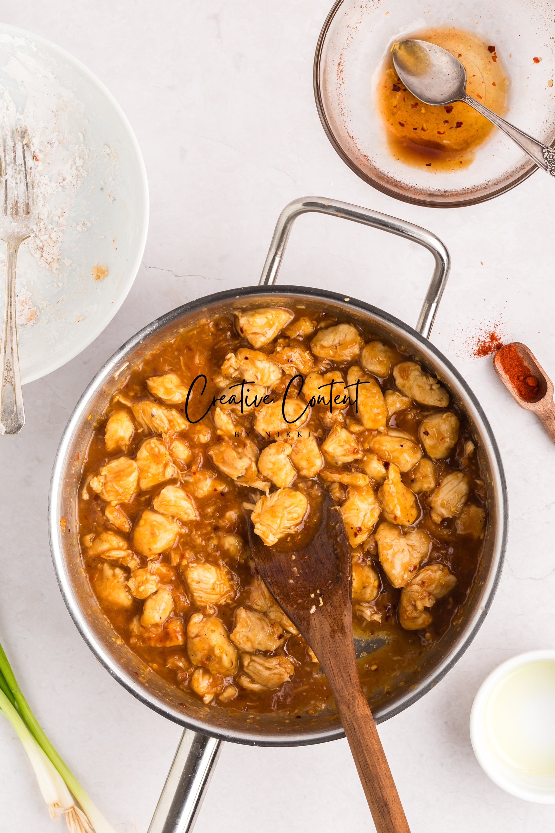 This sweet and spicy chicken is full of the savory-sweet chili sauce. The tender chicken has a slight crispiness to it. This is a great dish that is ready in under 20 minutes. The sweetness from the honey and spiciness from the red chili flakes and garlic make this an amazing sauce.