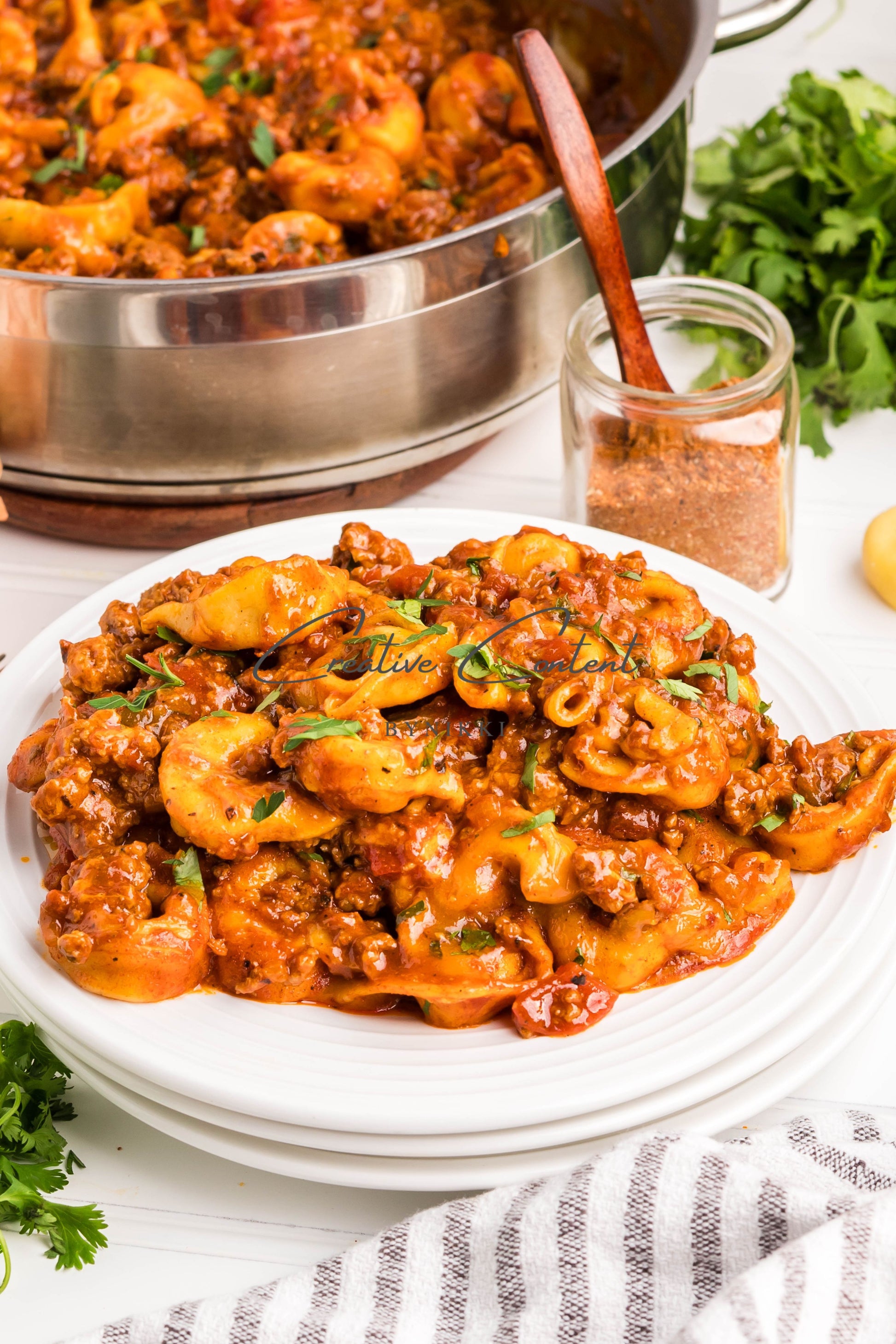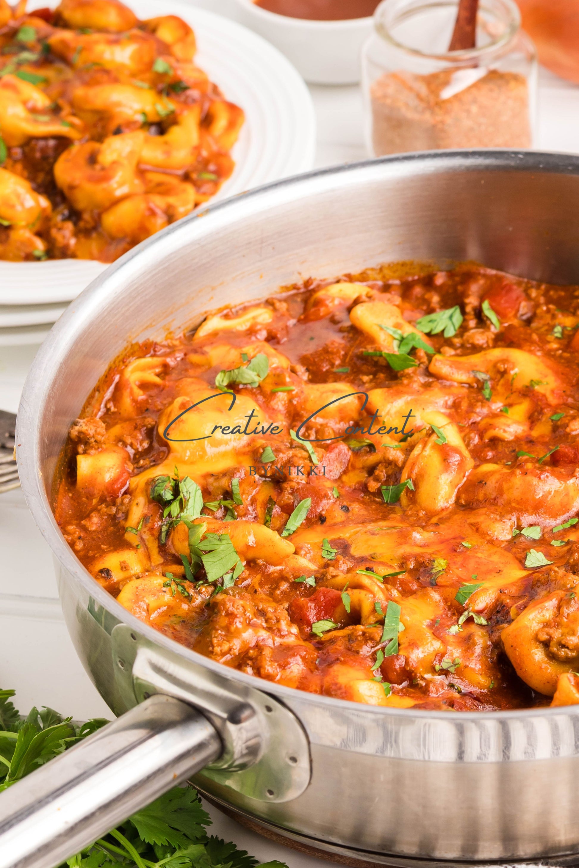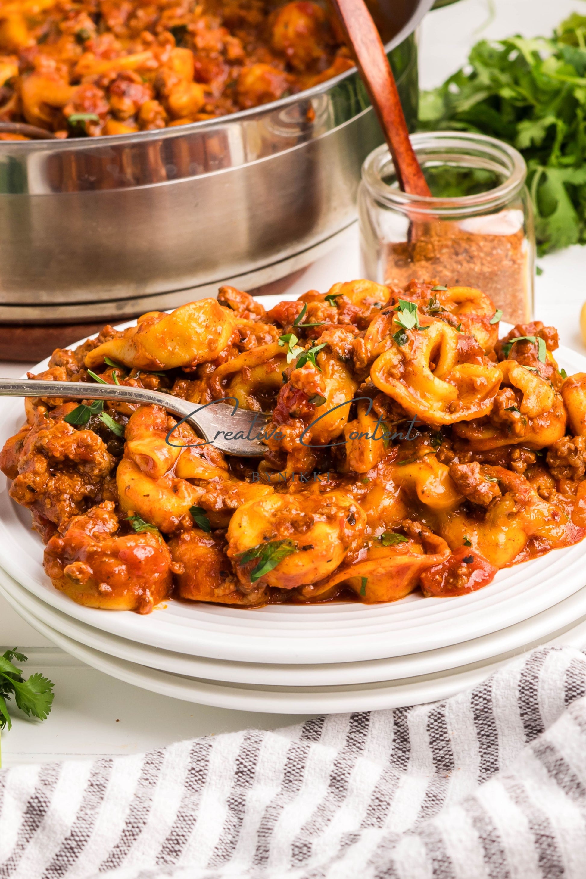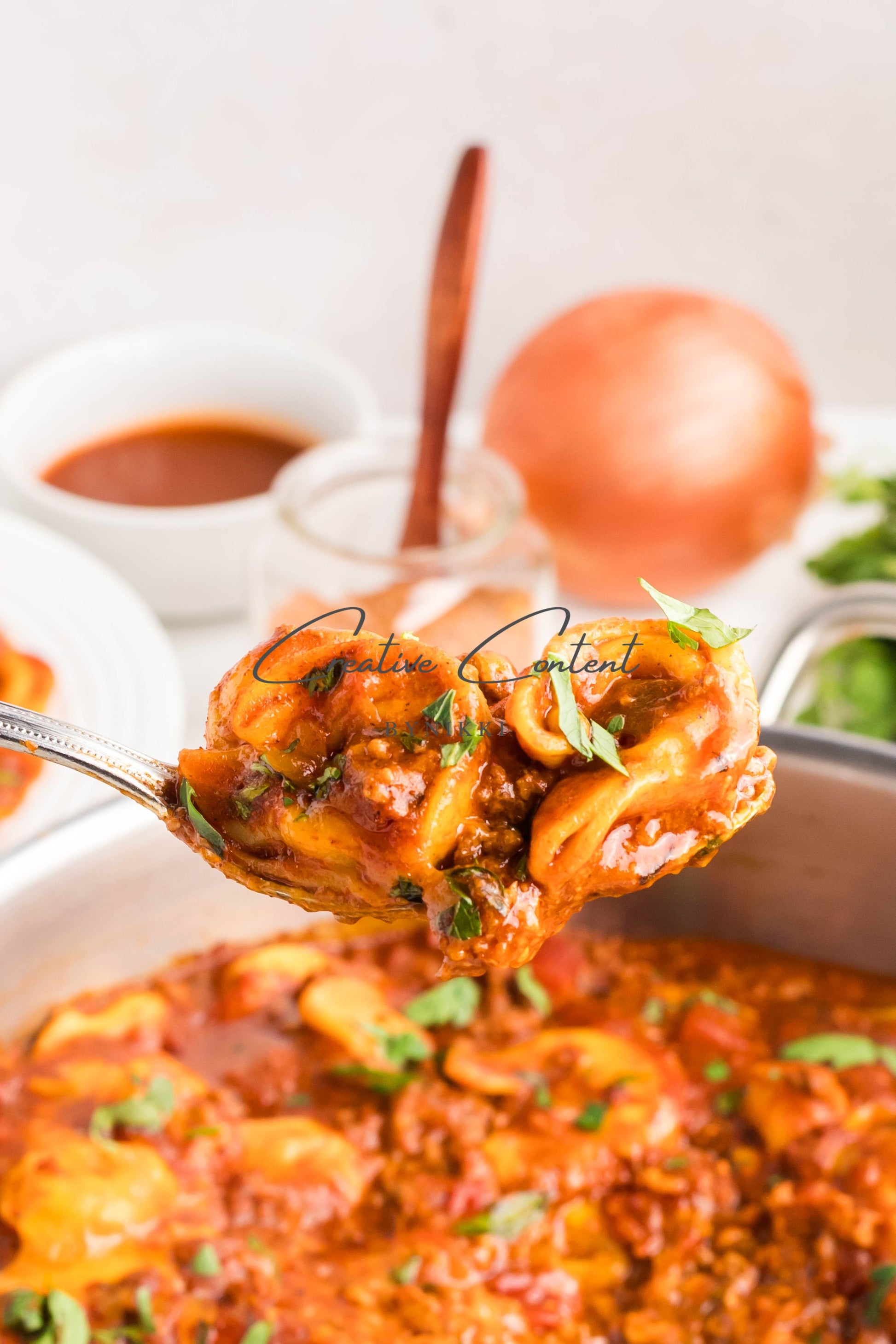 This Taco Tortellini is a simple and satisfying meal that comes together quickly. Ground beef and onions form a flavorful base that pairs perfectly with the sauce. Cheese tortellini soaks up the sauce, making every bite rich and comforting.