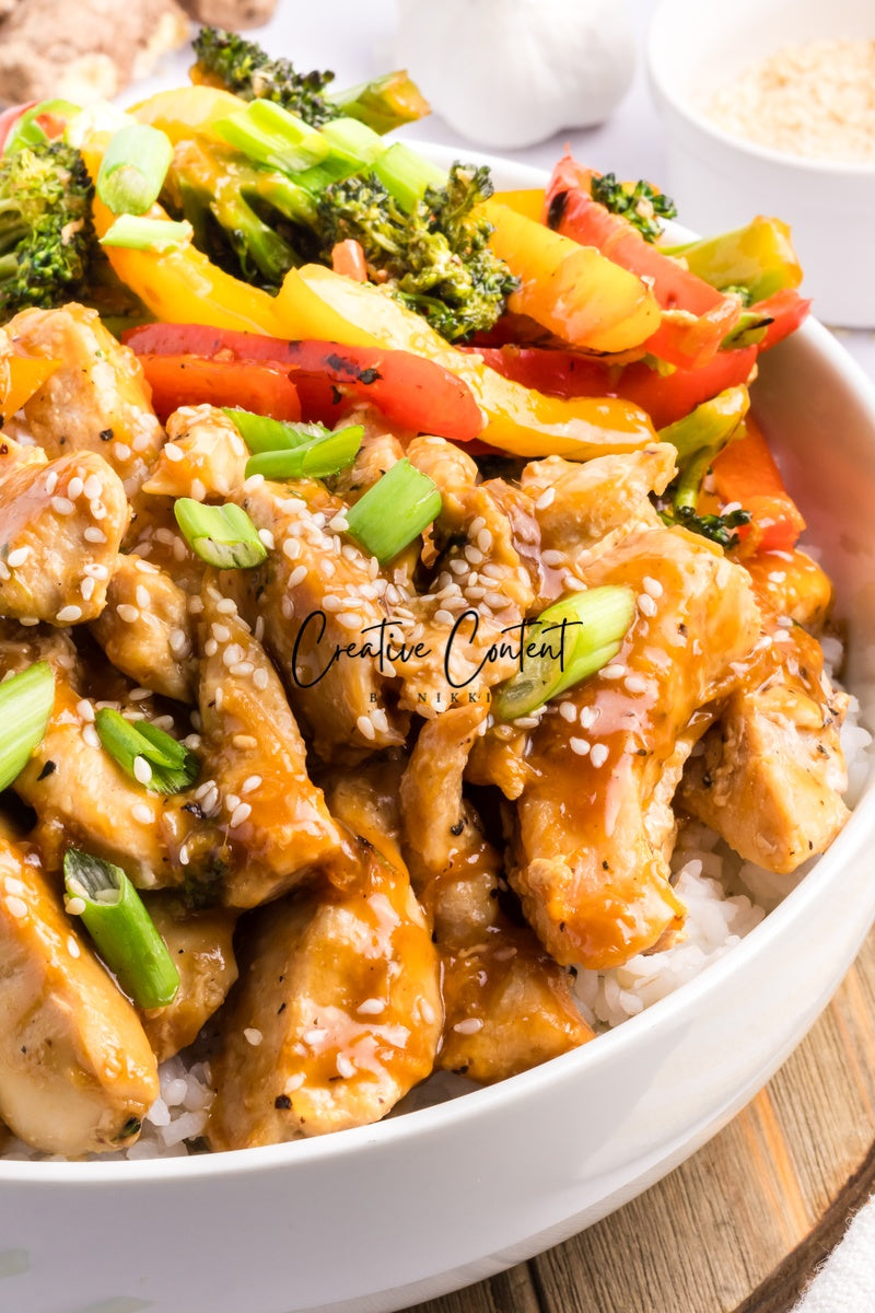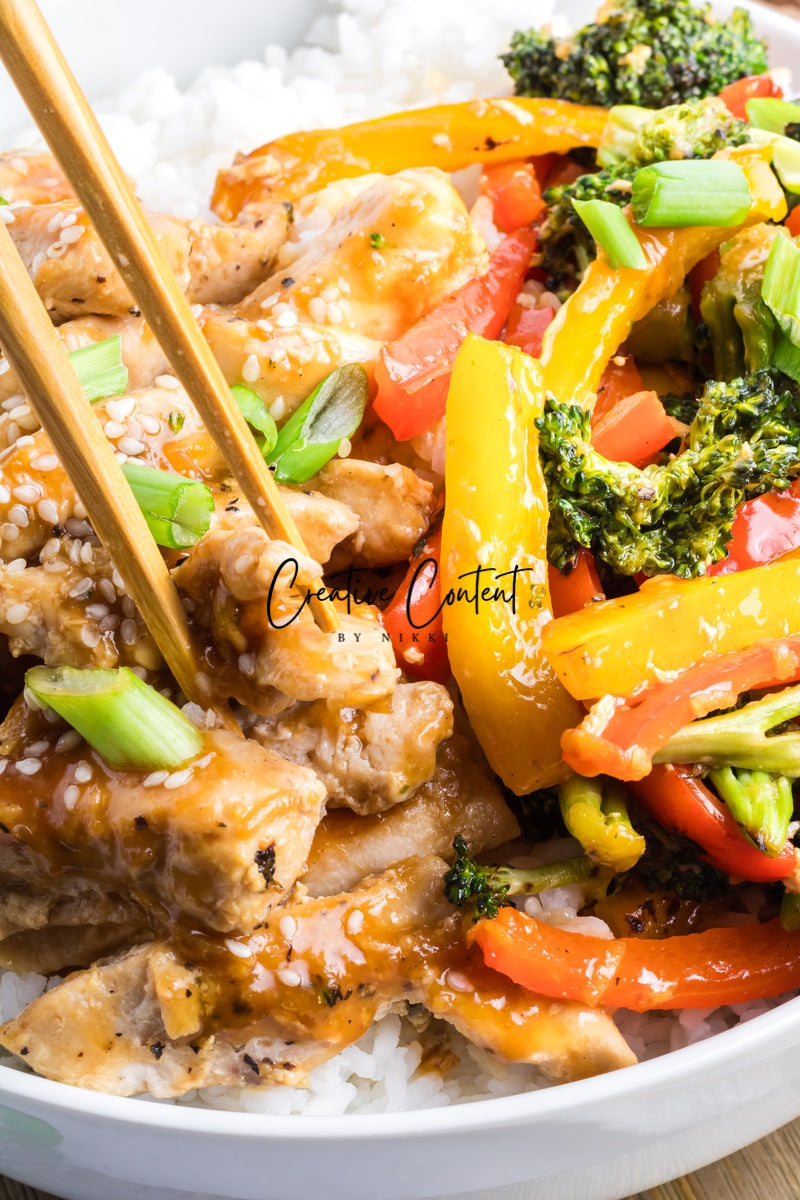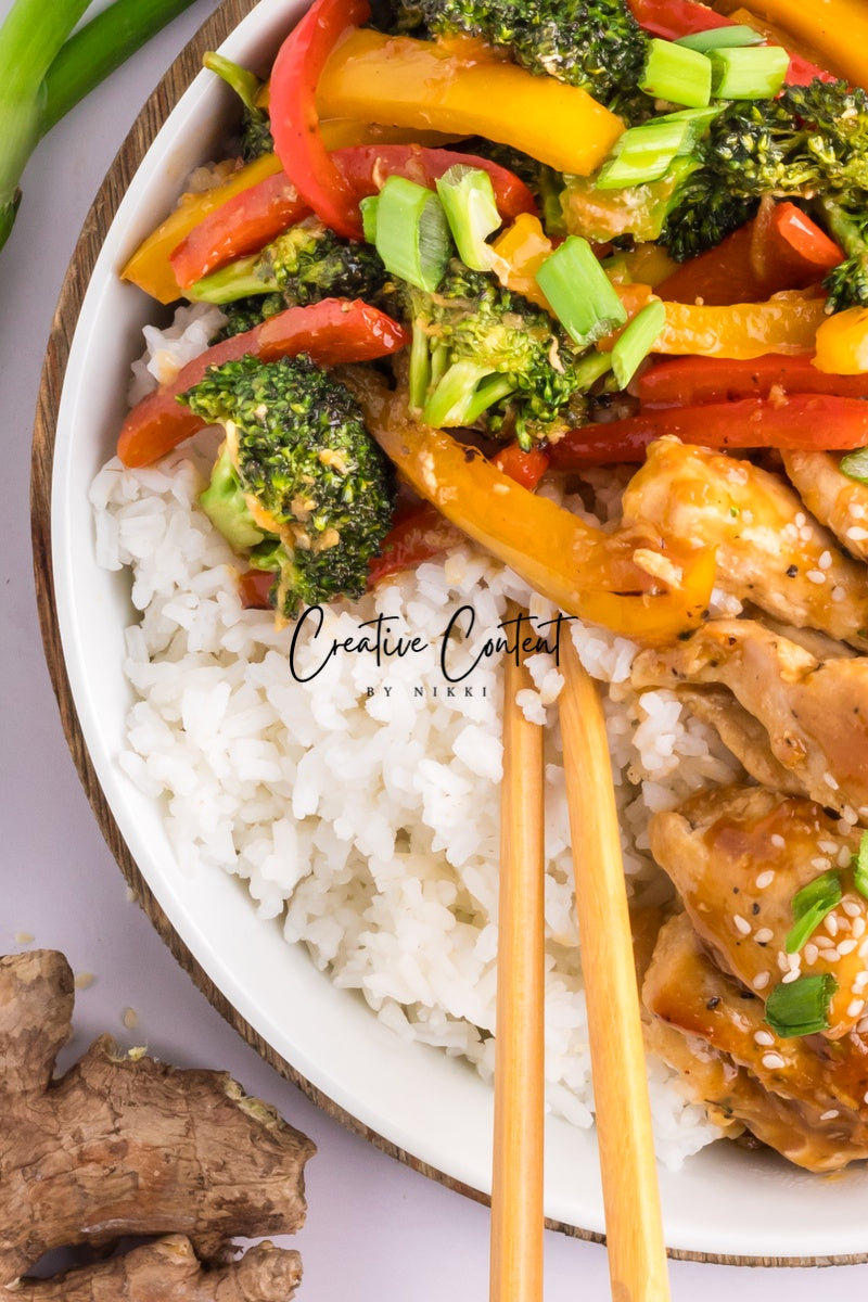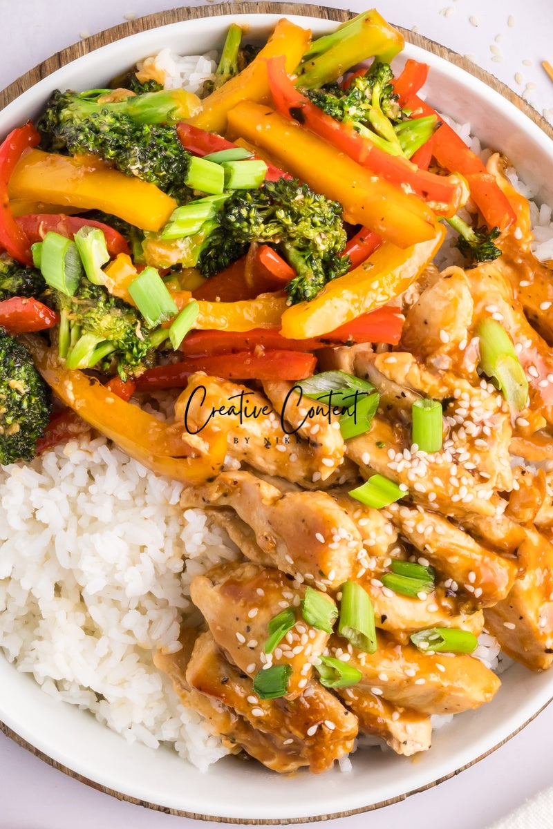 This teriyaki bowl recipe has so much robust flavor from the soy sauce and honey that coats the chicken, peppers, and broccoli florets. This is a great meal for a busy weeknight dinner or when you want to meal prep for lunches all week long. The Asian-infused flavors with the broccoli and bell peppers create a hearty dish that is healthy and satisfying.