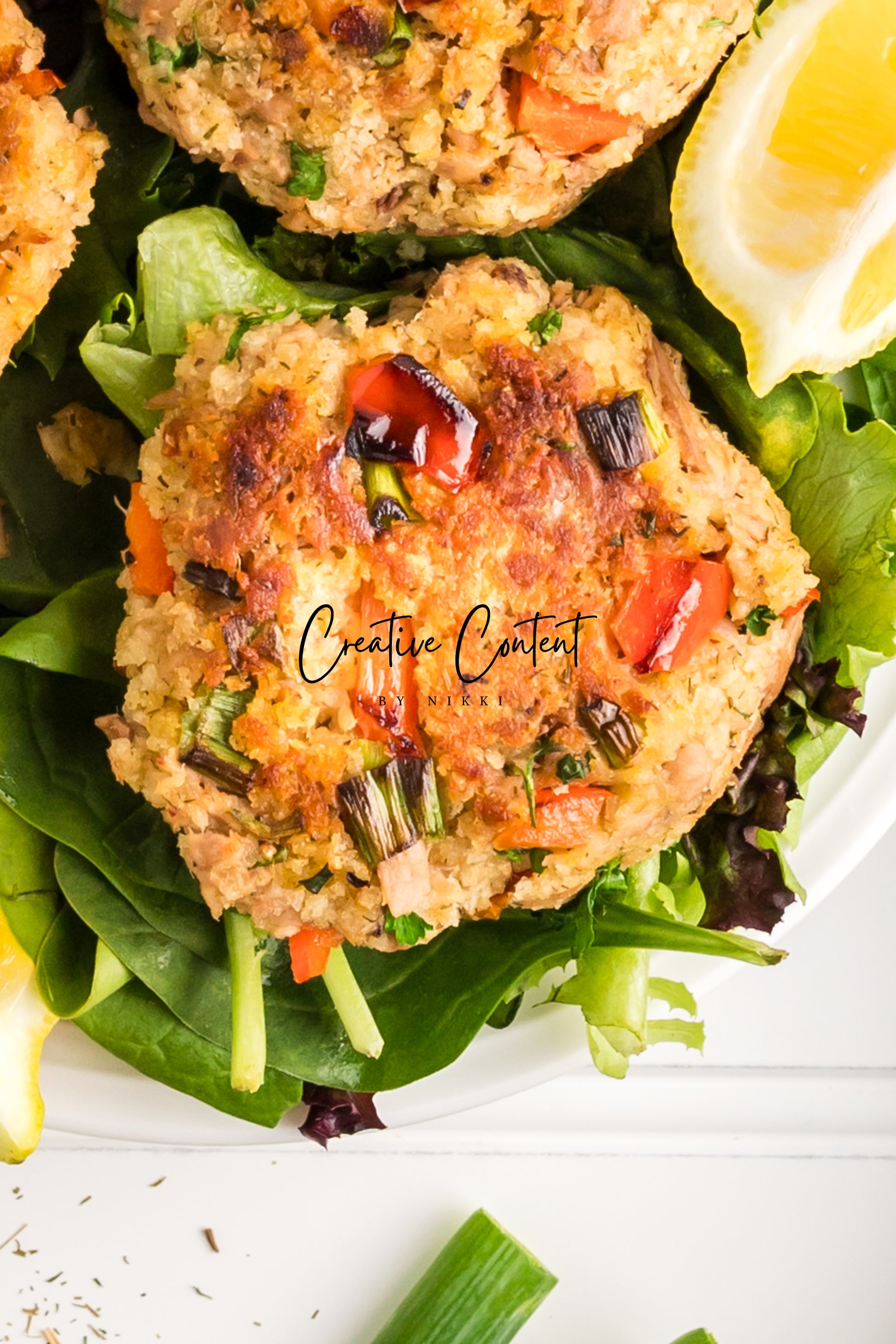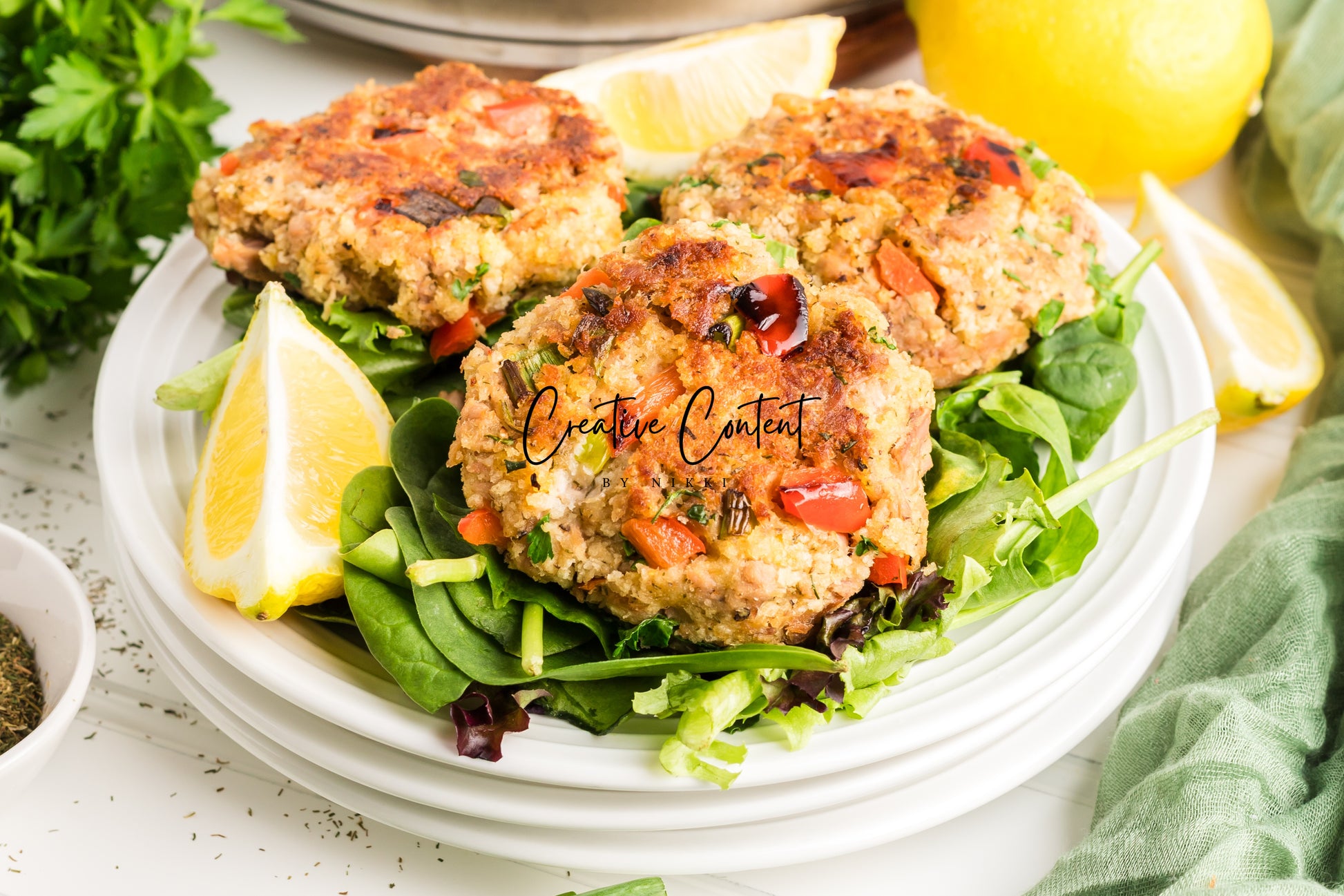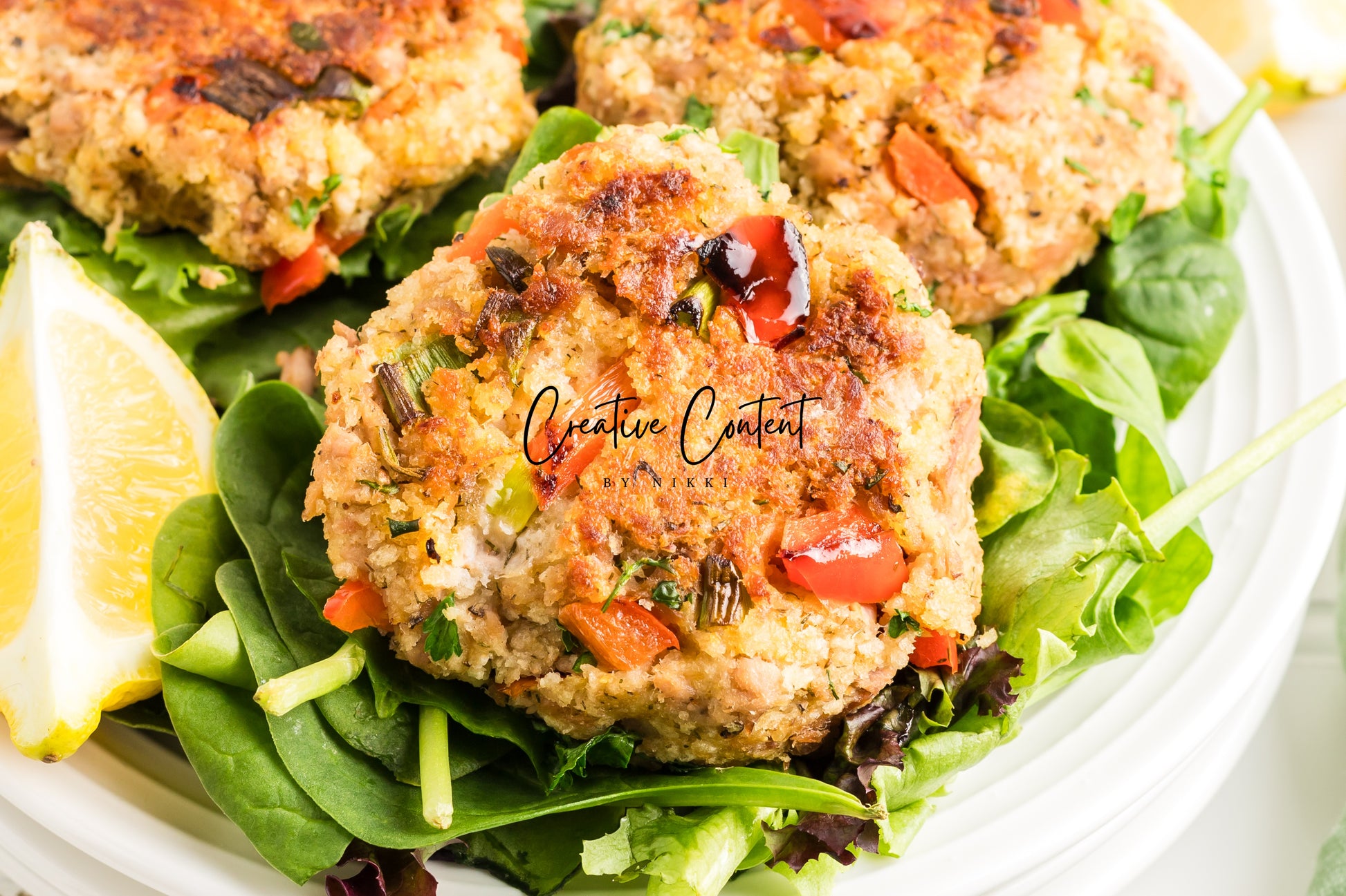 - Featured Ingredients; avocado oil, tuna, breadcrumbs, red bell peppers, mayonnaise, egg, parsley, lemon juice, old bay seasoning, garlic powder, dill weed, black pepper, and green onions.