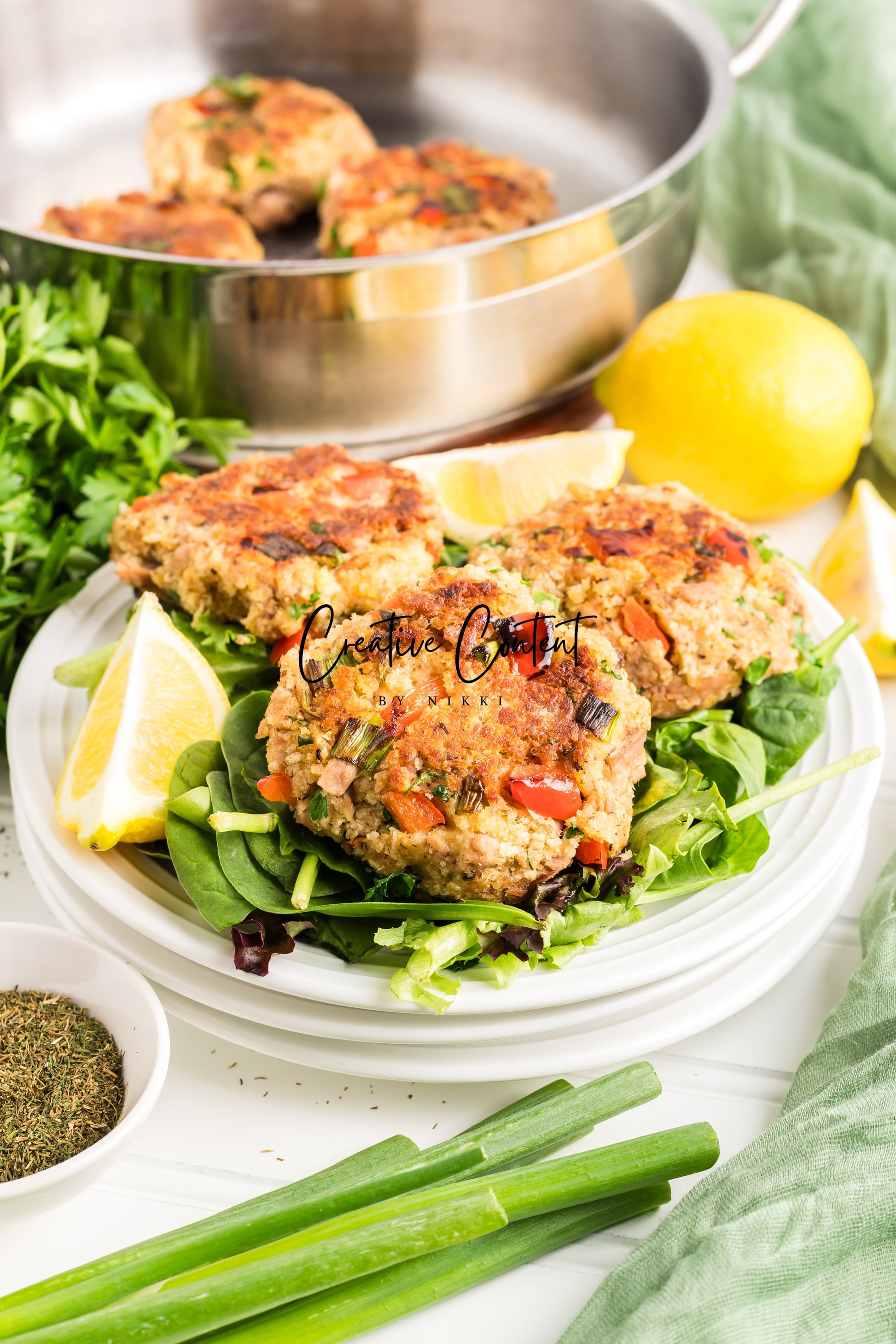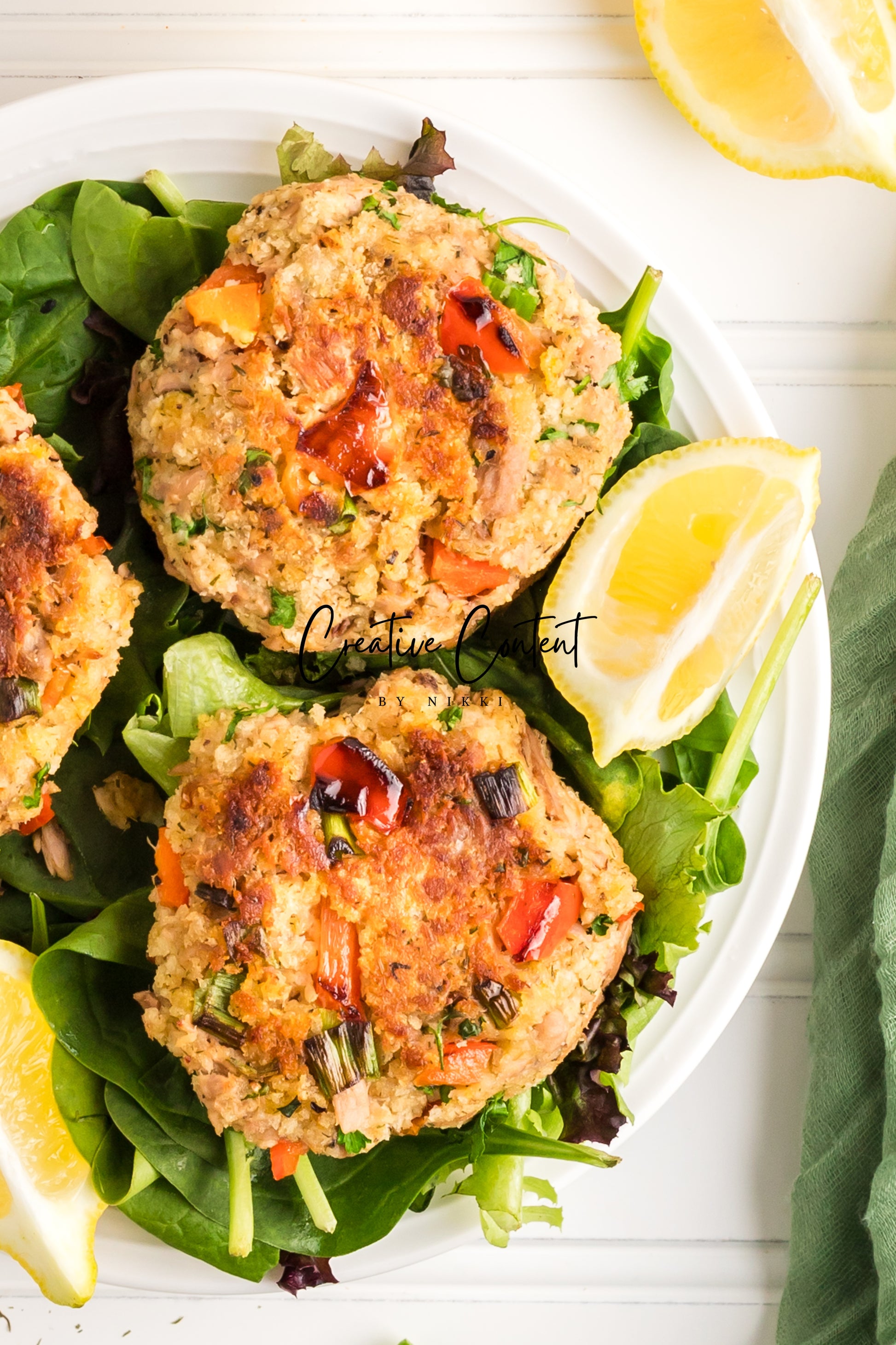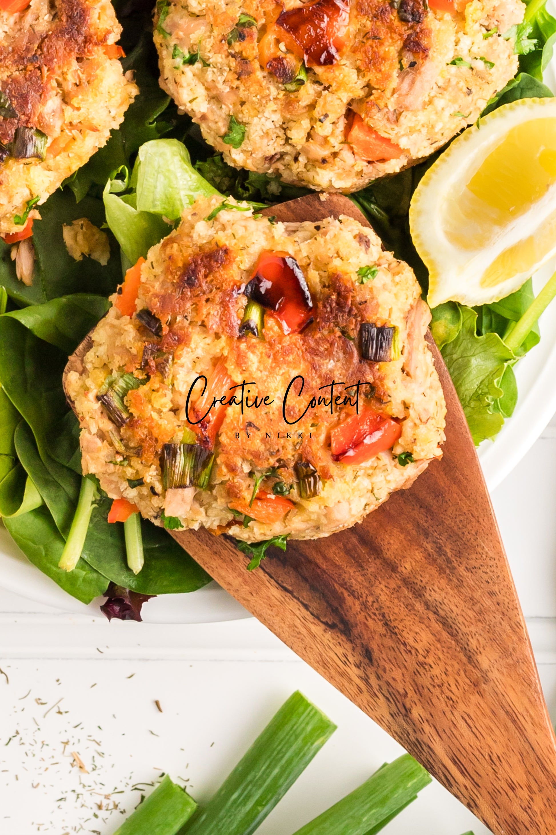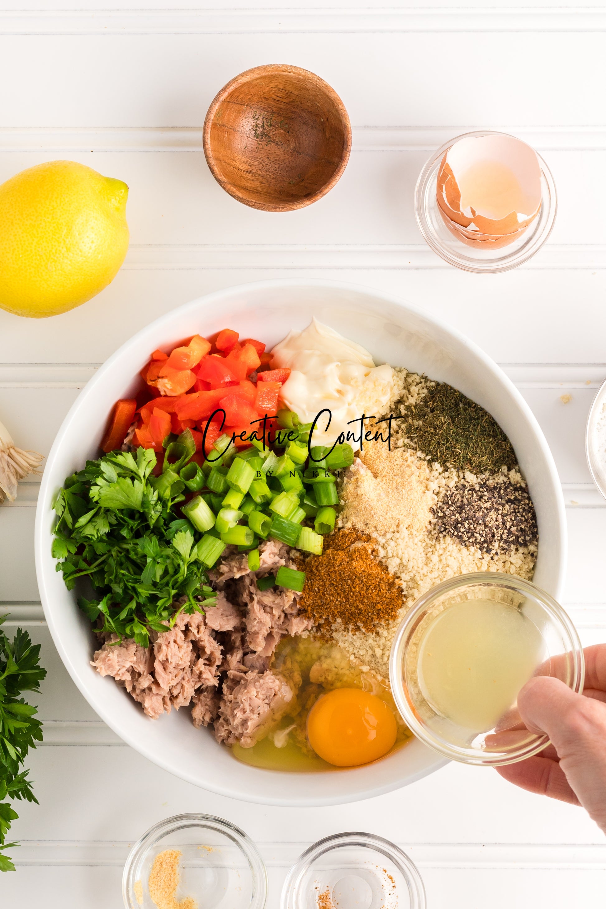 - Featured Ingredients; avocado oil, tuna, breadcrumbs, red bell peppers, mayonnaise, egg, parsley, lemon juice, old bay seasoning, garlic powder, dill weed, black pepper, and green onions.