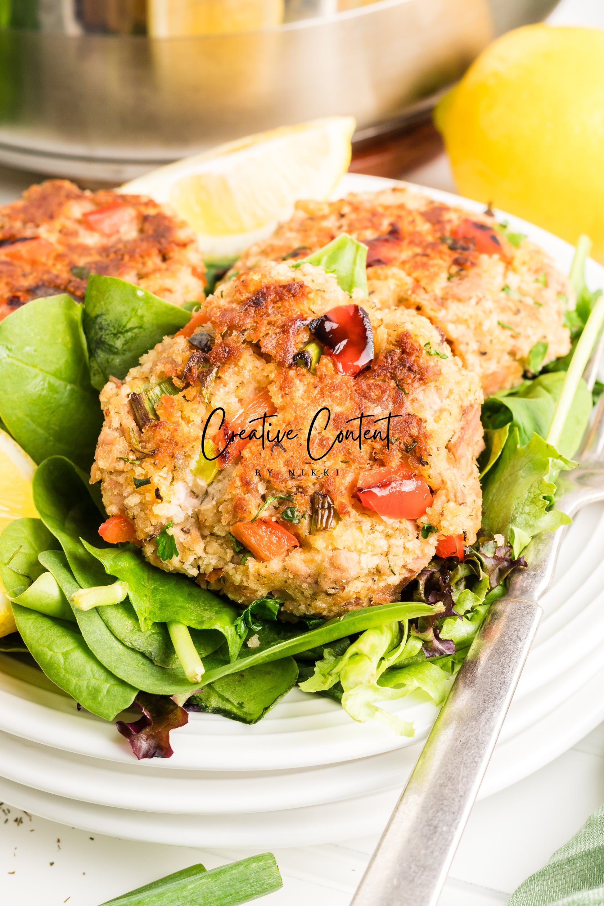 This tuna patties recipe is loaded with chunks of tuna, red bell peppers, lemon juice, dill weed, and fresh green onions. The creamy mayonnaise and crunchy panko breadcrumbs make a patty that cooks to a golden brown perfection. Everything is tossed into a bowl and mixed together for easy cleanup.