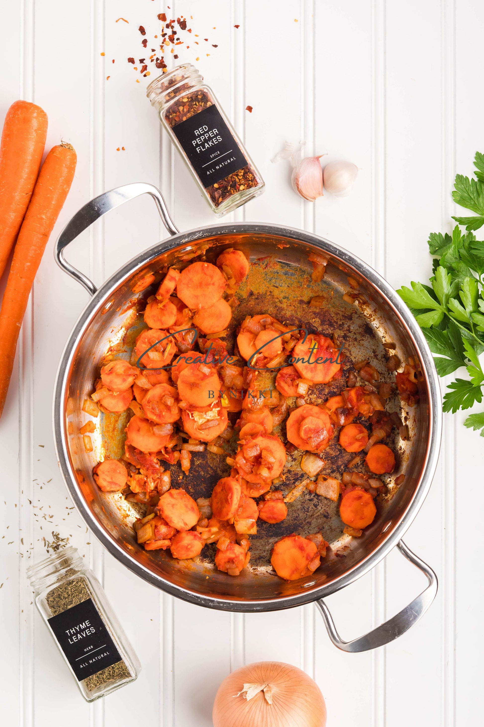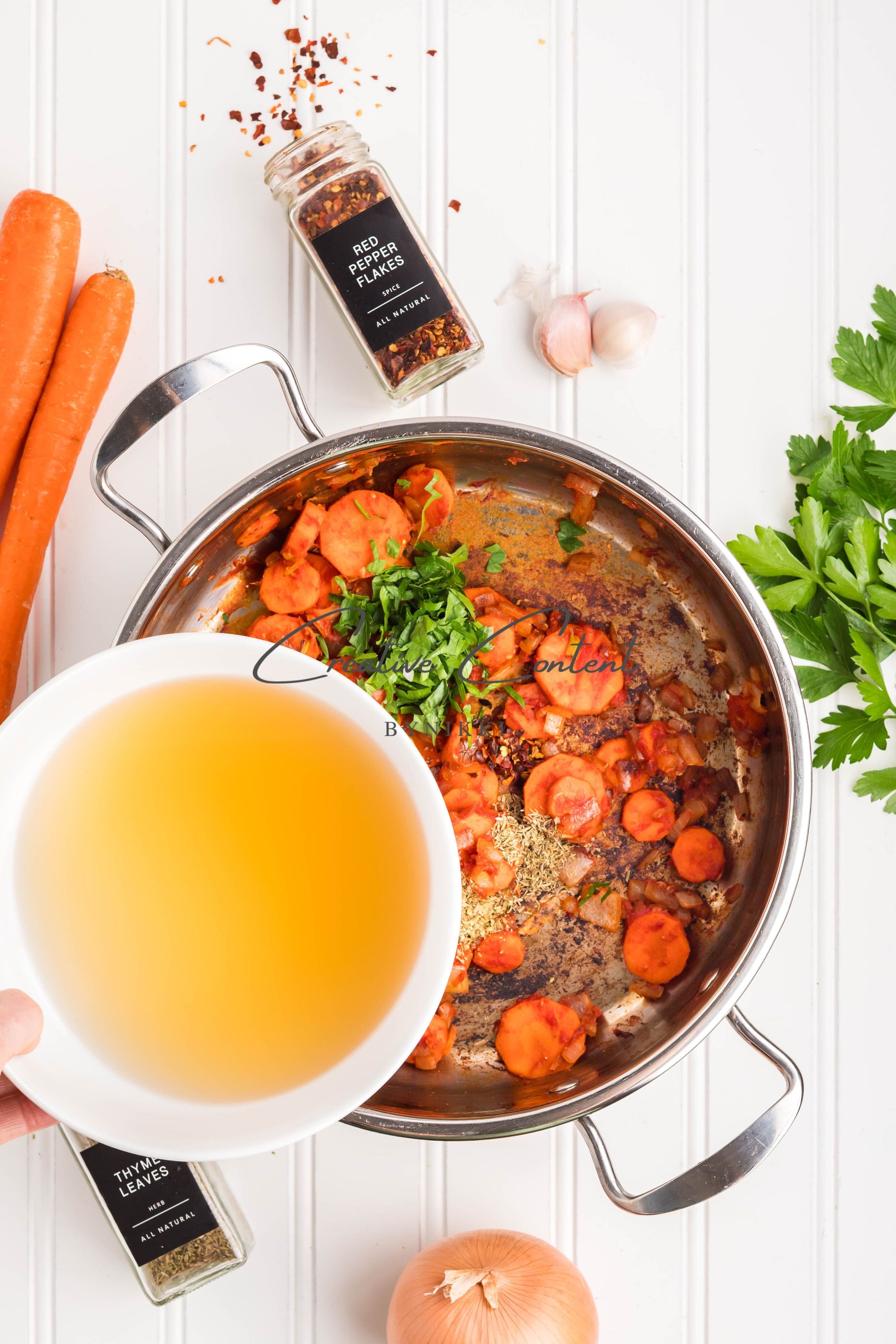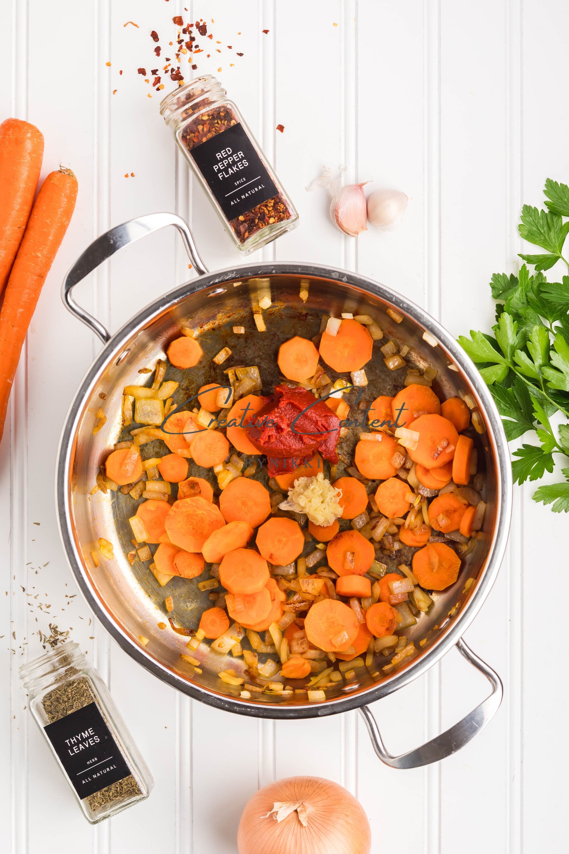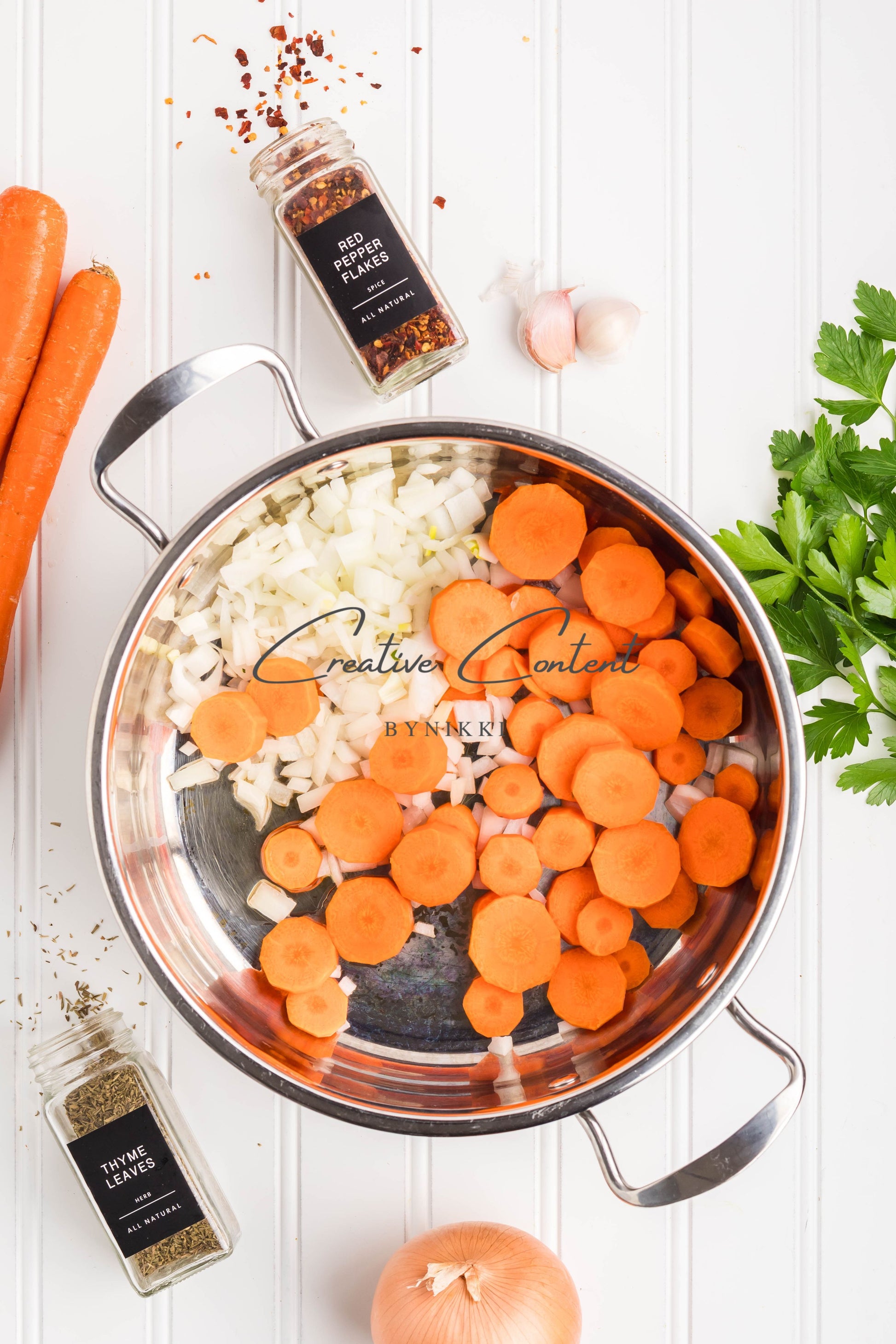 - Ingredients: avocado oil, onion, carrots, garlic, low-sodium chicken stock, fresh thyme leaves, chopped parsley, coarse kosher salt, black pepper, red pepper flakes, oregano, garlic powder, onion powder, cannellini beans, cooked chicken, spinach, parsley