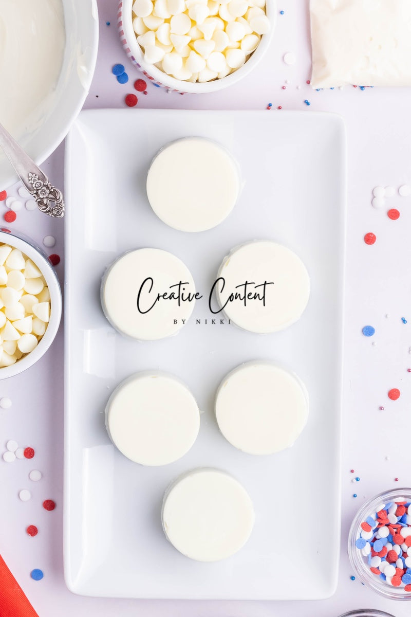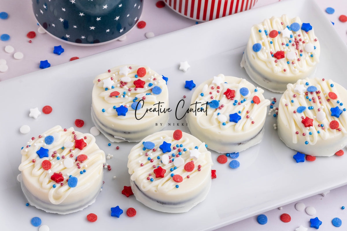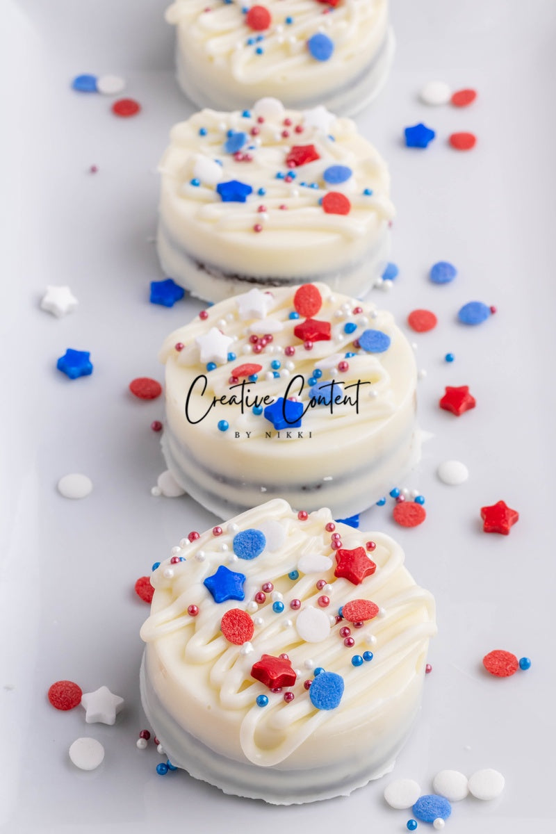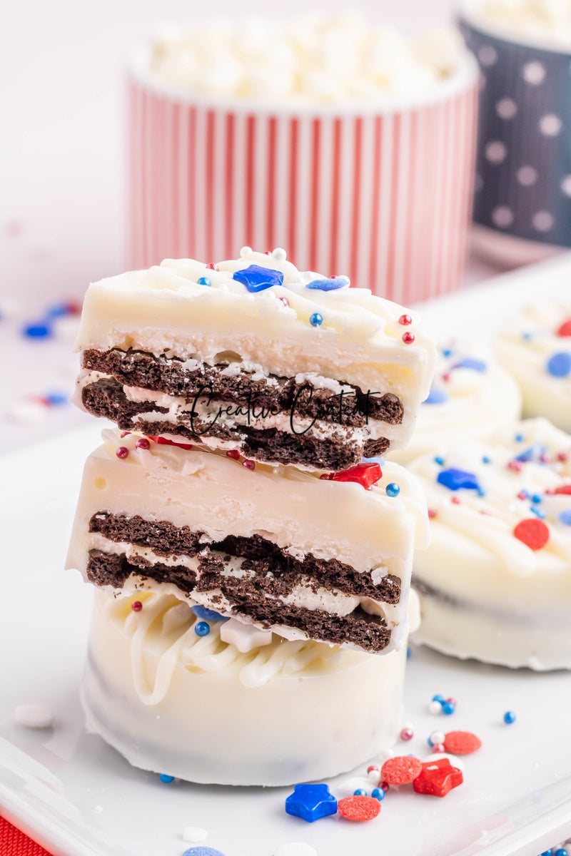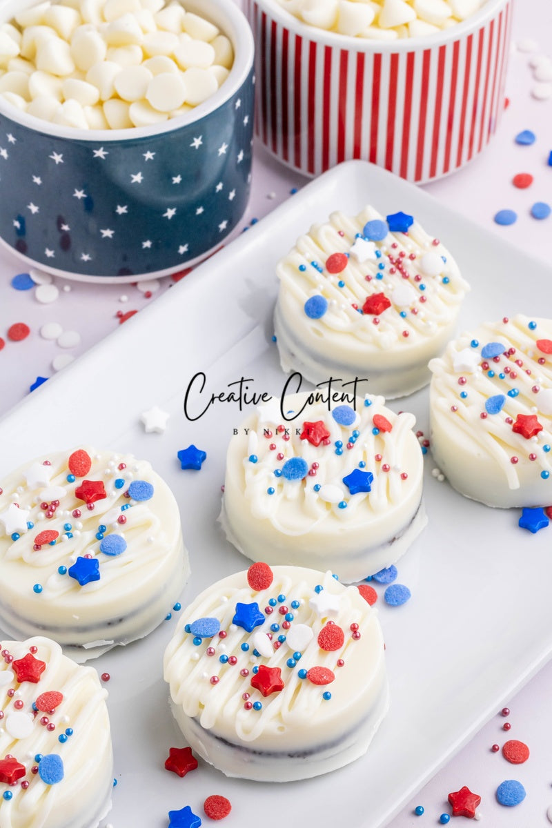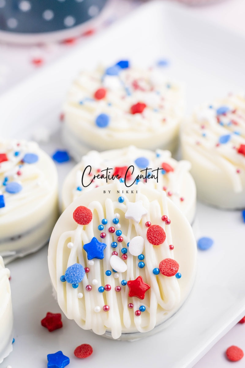 - Ingredients needed: Oreos, white chocolate, and red, white, and blue sprinkles.