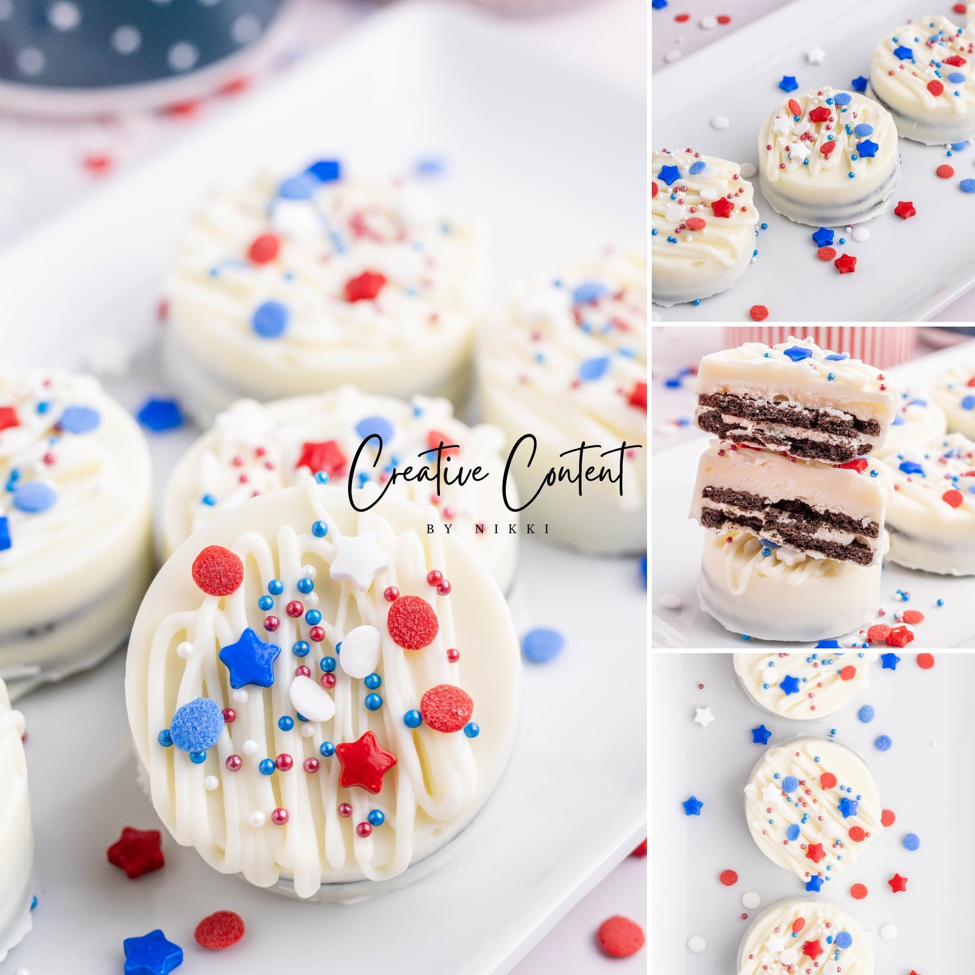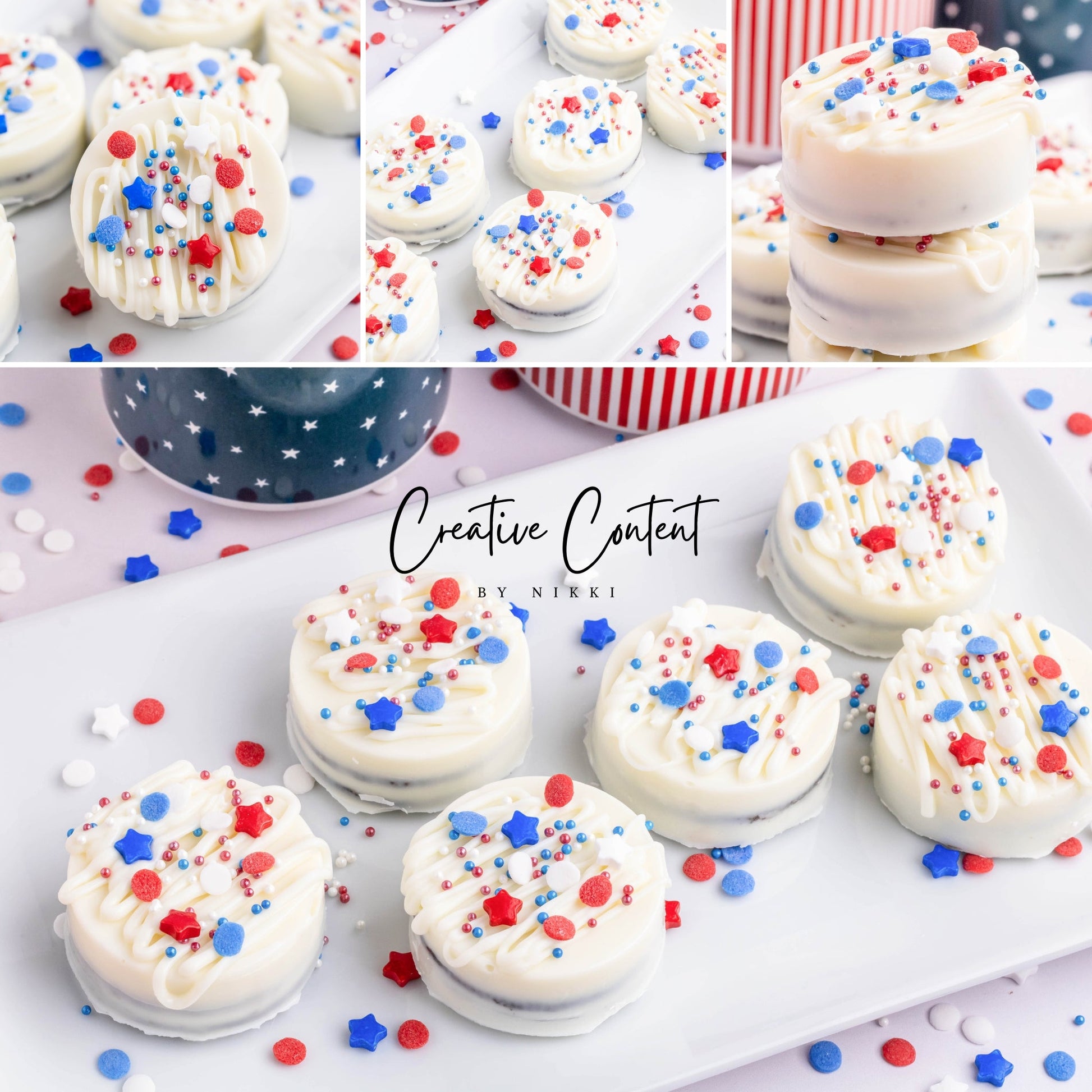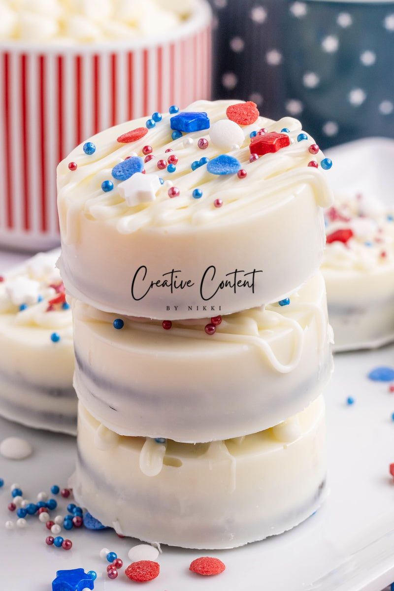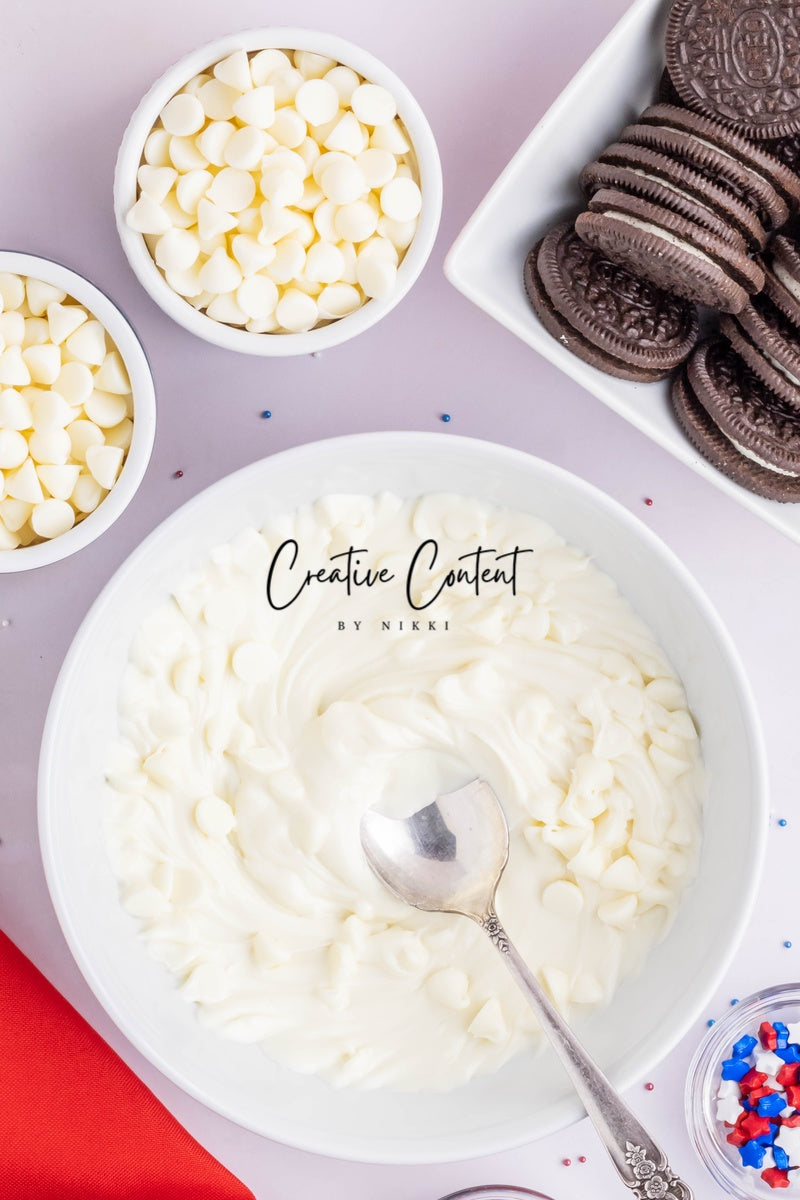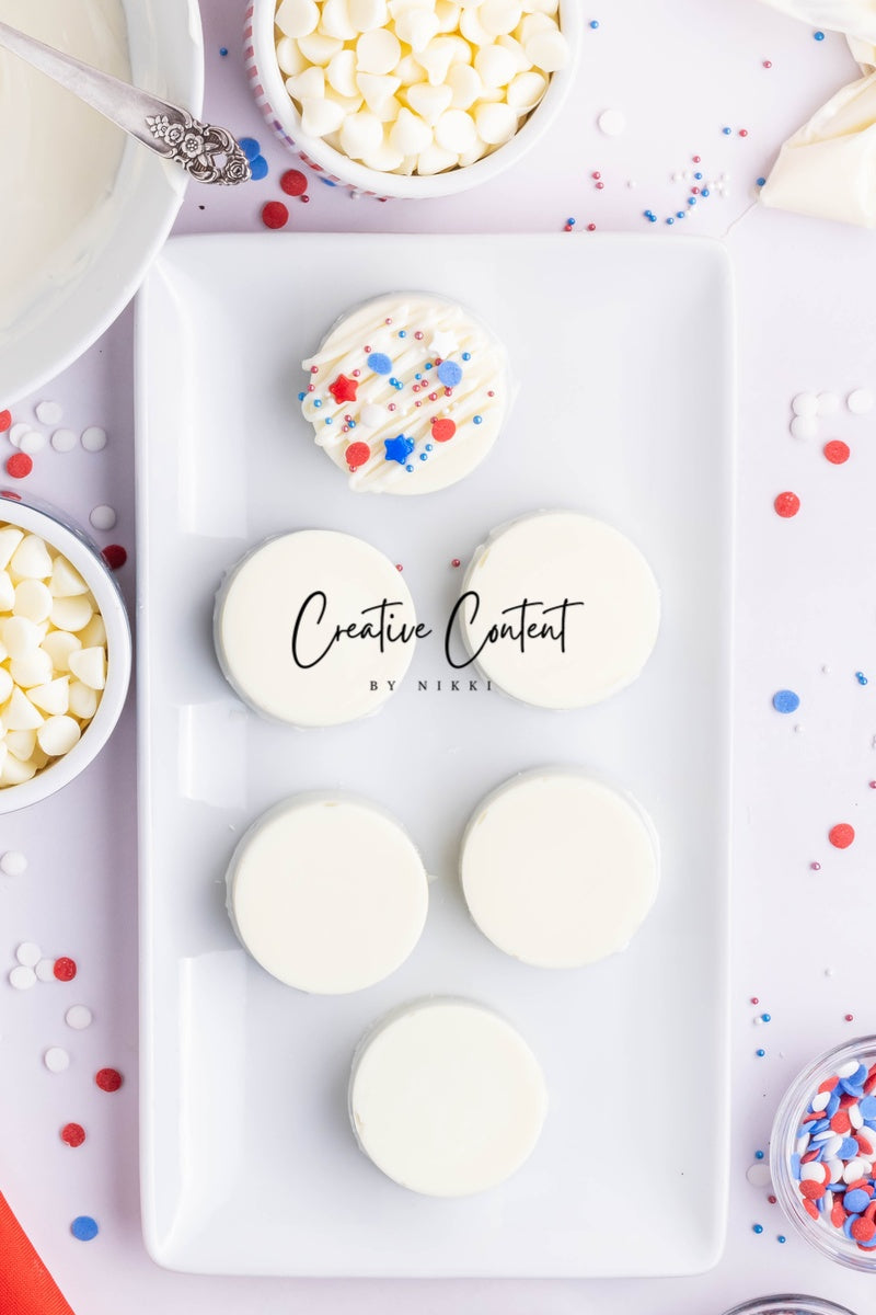 - Ingredients needed: Oreos, white chocolate, and red, white, and blue sprinkles.